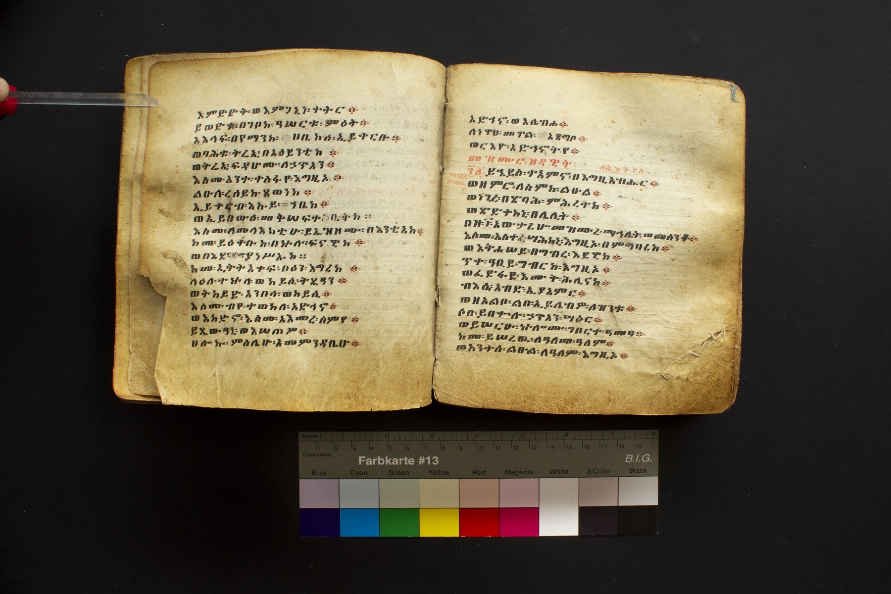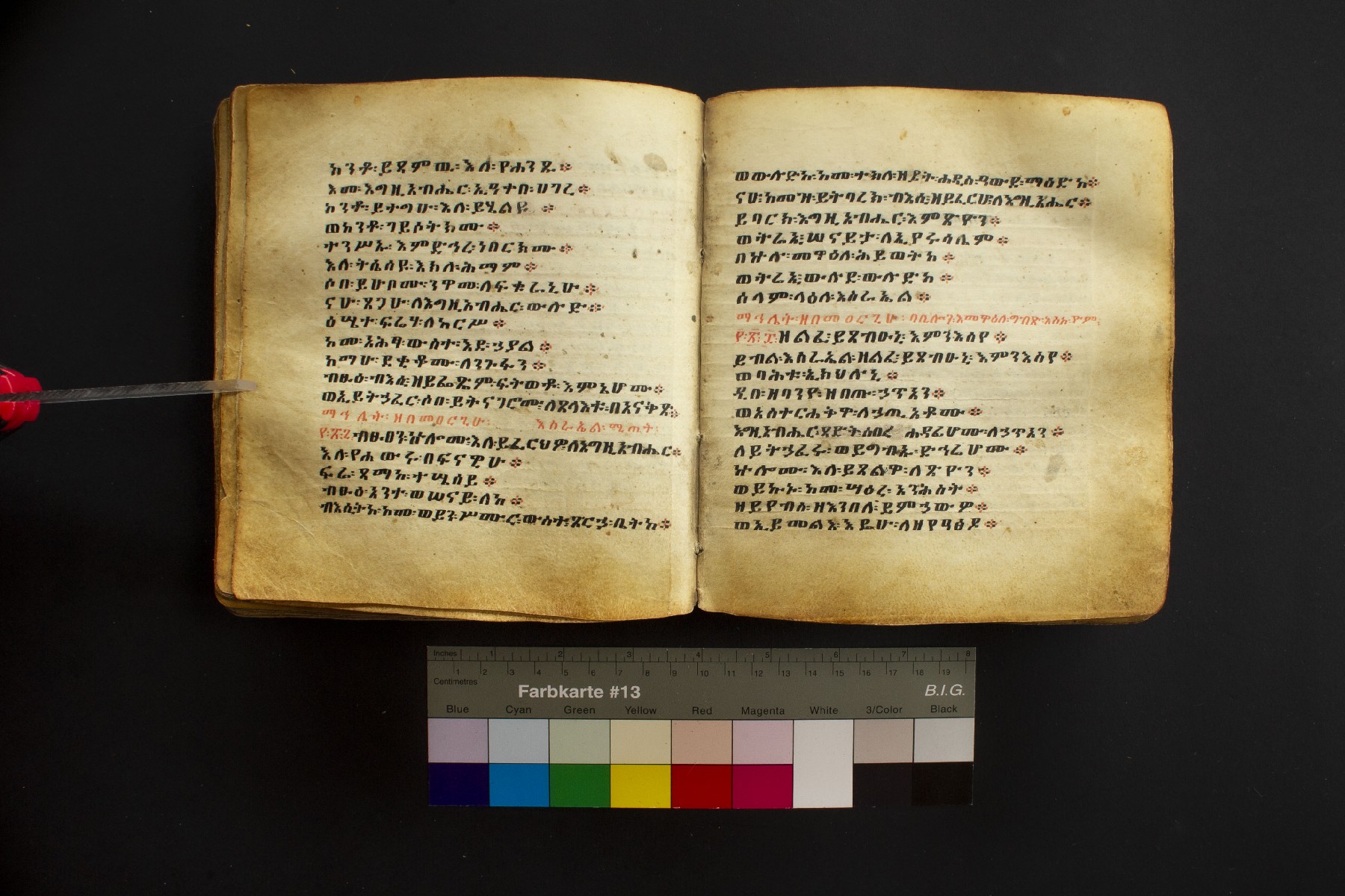 F. 189ra: Oʾǝgziʾǝyä Iyäsus Krǝstos mäḥaränni oʾǝgziʾǝyä Iyäsus Krǝstos täśahalänni (“O my Lord Jesus Christ have mercy on me, o my Lord Jesus Christ be gracious to me”, Hymn to Jesus Christ). Ff. 189ra–190vb: Yǝweddǝsǝwwa mälaʾǝkt läMaryam (“The angels are praising Mary”, Hymn to Virgin Mary, Chaine nr. 388) Ff. 190vb– 193vb: Bäḥakki Maryam ǝmǝnnä ǝgzǝtǝnä tǝmkǝhtomu anti läzämädǝnä (“Hail Mary, our mother, our Lady, you are the glory of our kin”, Hymn to Virgin Mary, Chaine nr. 243) |