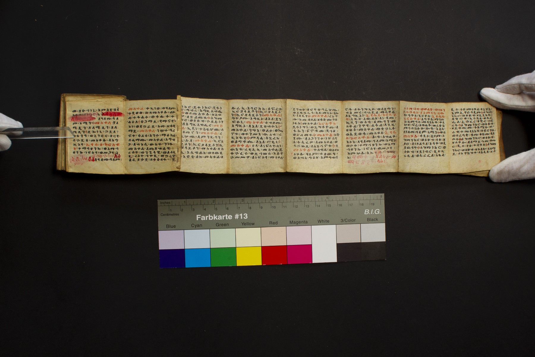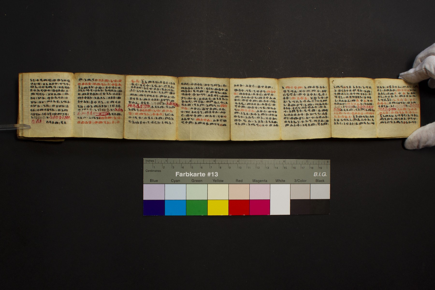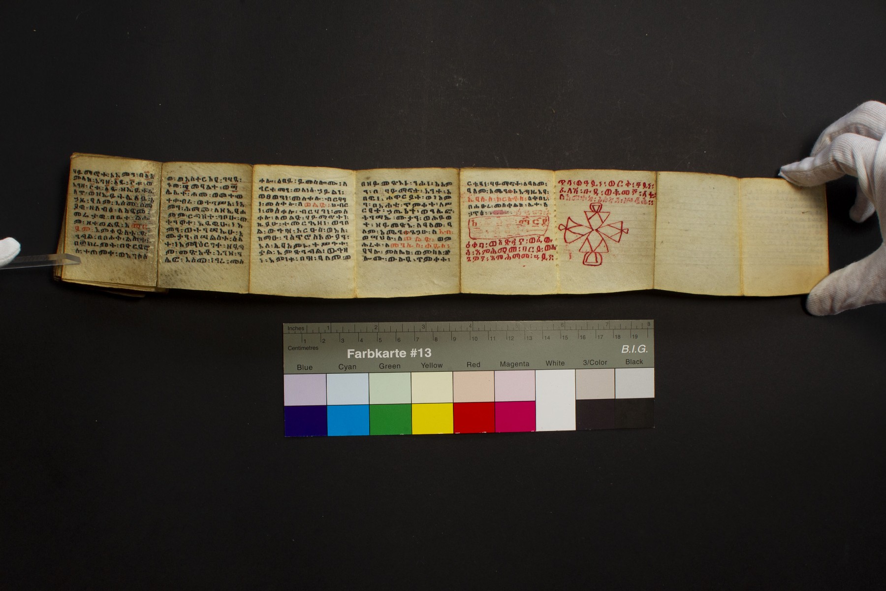 Pp. 3–8: Aʿattǝb wäʾǝtnäśśaʾ (“I make the sign of the cross and rise up”, hymn to God) Incipit: በስመ፡ አብ፡ … አአትብ፡ ወእትነሣእ፡ በስመ፡ አብ፡ ወወልድ፡ ወመንፈስ፡ ቅዱስ፡ ፫ተ፡ አስማተ፡ ነሢእየ፡ እትመረጐዝ፡ እመኒ፡ ወደቁ፡ እትነሣእ፡ ወእመኒ፡ ሖርኩ፡ ውስተ፡ ጽልመት፡ እግዚአብሔር፡ ያበርህ፡ ሊተ፡ በእግዚአብሔር፡ ተወከልኩ። Pp. 8–13: Mäsqäl bǝhil mälʿǝltä kwǝllu nägär (Praise to the Cross) Incipit: በስመ፡ አብ፡ … መስቀል፡ ብሂል፡ መልዕልተ፡ ኵሉ፡ ነገር፡ መስቀል፡ ሐፁር፡ ወጥቅም፡ መስቀል፡ ነሳቴ፡ ፀር፡ መስቀል፡ ለቤተ፡ ክርስቲያን፡ ዓምዳ፡ ወድዳ፡ መስቀል፡ ለቢተ፡ ክርስቲያን፡ Pp. 13–22: Aminyä kiyahu ǝsäbbǝk bäḫaylä mäsqälu ǝnzä ǝbǝl hale luya (“Having faith in Him, I preach the power of the Cross saying ‘hallelujah’”, hymn to the Cross) Incipit: በስመ፡ አብ፡ … ፫አስማተ፡ አብ፡ ወወልድ፡ ወመንፈስ፡ ቅዱስ፡ ለዓለመ፡ ዓለም፡ አሜን። አሚንየ፡ ኪያሁ፡ እሰብክ፡ በኃይለ፡ መስቀሉ፡ እንዘ፡ እብል፡ ሃሌ፡ ሉያ፡ መስቀል፡ እምነቱየ፡ መስቀል፡ ብርሃንየ፡ መስቀል፡ ተስፋየ፡ መስቀል፡ ረድኤትየ፡ ሃሌ፡ ልያ፡ P. 22: Sador alador danat adera rodas (“Sator Arepo Tenet Opera Rotas”, i.e. names of the wounds of Christ, protective text) Full text: በስመ፡ አብ፡ … ሳዶር፡ አላዶር፡ ዳናት፡ አዴራ፡ ሮዳስ፡ በዝንቱ፡ አስማት፡ ቅንዋቲከ፡ አማኅፀንኩ፡ ነፍስየ፡ ወሥጋየ፡ ብእሲትየ፡ ወወሉድየ፡ ወእንስሳየ፡ ከመ፡ ኢይቅረበኒ፡ እኩይ፡ Pp. 22–24: Ḫabekä Ǝgziʾo anqaʿdoku näfsǝyä zätǝnäbbǝr wǝstä sämay (“To you, o Lord, I turn my soul that dwells in heaven”, hymn to the Lord, beginning with Ps 24:1). Incipit: በስመ፡ አብ፡ … ኀቤከ፡ እግዚኦ፡ አንቃዕዶኩ፡ ነፍስየ፡ ዘትነብር<፡> ውስተ፡ ሰማይ፡ ኦመስቀል፡ ወከመ፡ ዓይነ፡ አግብርት፡ ውስተ<፡> እደ፡ አጋዕዝቲሆሙ። Pp. 24–31: Kʷǝllomu śärawitä mälaʾǝkt yǝsebbǝḥǝwwo lämäsqäl (“All hosts of the angels praise the Cross”, hymn to the Cross). Incipit: በስመ፡ አብ፡ … ኵሎሙ፡ ሠራዊተ፡ መላእክት፡ እለ፡ ብዙኃት፡ አዕይንቲሆሙ፡ ወእለ፡ ፮ክነፊሆሙ፡ ይሴብሕዎ፡ ለመስቀል። ሱራፌል፡ ወኪሩቤል፡ እለ፡ ልዑላን፡ በነበልባል፡ ኃይል፡ ይሴብሕዎ፡ ለመስቀል፡ Pp. 31–34: Mäsqäl ǝsmä mǝśṭir yǝssebbaḥ wäyǝʾtakkwät mäsqäl bäʾamsalä betä krǝstiyan (“Cross, that is the Mystery is praised and glorified, Cross in the likeness of the church”, hymn to the Cross) Incipit: በስመ፡ አብ፡ … መስቀል፡ እስመ፡ ምሥጢር፡ ይሴባሕ፡ ወይትአኰት፡ መስቀል፡ በአምሳለ፡ ቤተ፡ ክርስቲያን፡ ማዕዘን፡ ወአፍረየ፡ ሠናየ፡ እለ፡ አብቈለ፡ ሥከ፡ ወአሜከላ፡ መስቀል፡ ክቡር፡ ገብር፡ Pp. 34–42: Sälam läŚǝllus Qǝddus aḫaze kwǝllu ʿaläm wäzäʾiyǝtmäwwaʾ läḍärr (“Salutation to the Holy Trinity, ruler of all the world and undefeated by the enemy”, hymn to the Cross) Incipit: በስመ፡ አብ፡ … ሰላም፡ ለሥሉስ፡ ቅዱስ፡ አኃዜ፡ ኵሉ፡ ዓለም፡ ወዘኢይትመዋዕ፡ ለፀር። ሰላም፡ ለአብ፡ ለፈጣሬ፡ ኵሉ፡ ዓለም፡ ሰላም፡ ለሥሉስ፡ ቅዱስ፡ ለአኃዜ፡ ኃይል። Pp. 42–48: Ǝgziʾabǝḥer zätäsäqlä bäqǝddusan yǝtqeddäs wäʾǝmḫabä mälaʾǝkt yǝtweddäs (“God who was crucified is sanctified among the saints and praised from the angels”) Incipit: በስመ፡ አብ፡ … እግዚአብሔር፡ ዘተሰቅለ፡ በቅዱሳን፡ ይትቄደስ፡ ወእምኀበ፡ መላእክት፡ ይትዌደስ፡ ዘበድማሬ፡ ይሤለስ፡ ሎቱ፡ ስብሐት፡ እስከ፡ ለዓለመ፡ ዓለም፡ አሜን። ግነዩ፡ ለእግዚአብሔር Pp. 48–52: Qǝddus Ǝgziʾabǝḥer qǝddus ḫayyal qǝddus ḥǝyaw zäʾiyǝmäwwǝt zätäwäldä ǝmMaryam (“Holy God, holy, mighty, living, immortal, begotten by Mary”, supplication to the Lord) Incipit: በስመ፡ አብ፡ … ቅዱስ፡ እግዚአብሔር፡ ቅዱስ፡ ኃያል። ቅዱስ፡ ሕያው፡ ዘኢይመውት፡ ዘተወልደ፡ እማርያም፡ እምቅድስት፡ ድንግል፡ ተሣሃለነ፡ እግዚኦ። Pp. 53–59: Mäsqäl mǝḥrät wäśahl wäqǝddus ḫayyal omäsqäl (“Cross, mercy, compassion, holy, mighty, o Cross”, hymn to the Cross) Incipit: በስመ፡ አብ፡ … መስቀል፡ ምሕረት፡ ወሣህል፡ ወቅዱስ፡ ኃይል፡ ኦመስቀል፡ ምሕረት፡ ወሰላም፡ ወቅዱስ፡ ኃይል፡ መስቀል፡ ታው፡ ለትቅረብ፡ ስእለትየ፡ ኀቤከ፡ እግዚኦ። Pp. 60–63: Awlogǝyos geryos Iyäsus Krǝstos agyos manṭos (“Blessed Lord [cp. Gr. κύριος] Jesus Christ, holy [cp. Gr. ἅγιος], manṭos” hymn to the Lord) Incipit: በስመ፡ አብ፡ … አውሎግዮስ፡ ጌርዮስ፡ ኢየሱስ፡ ክርስቶስ፡ አግዮስ፡ ማንጦስ፡ እምኀበ፡ መላእክት፡ ተአኵተ፡ ፍሬ፡ ስብሐት፡ ሠረፀ፡ እምኀበ፡ አቡሁ፡ ሎቱ፡ እስከ፡ ለዓለመ፡ ዓለም፡ አሜን። Pp. 64–71: Wäld ǝḫuyä wärädä wǝstä gännät (“The son, my brother, descended in Paradi