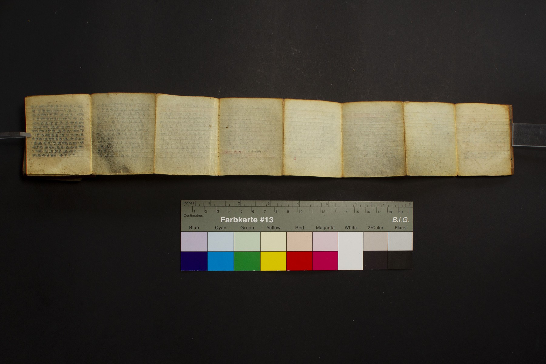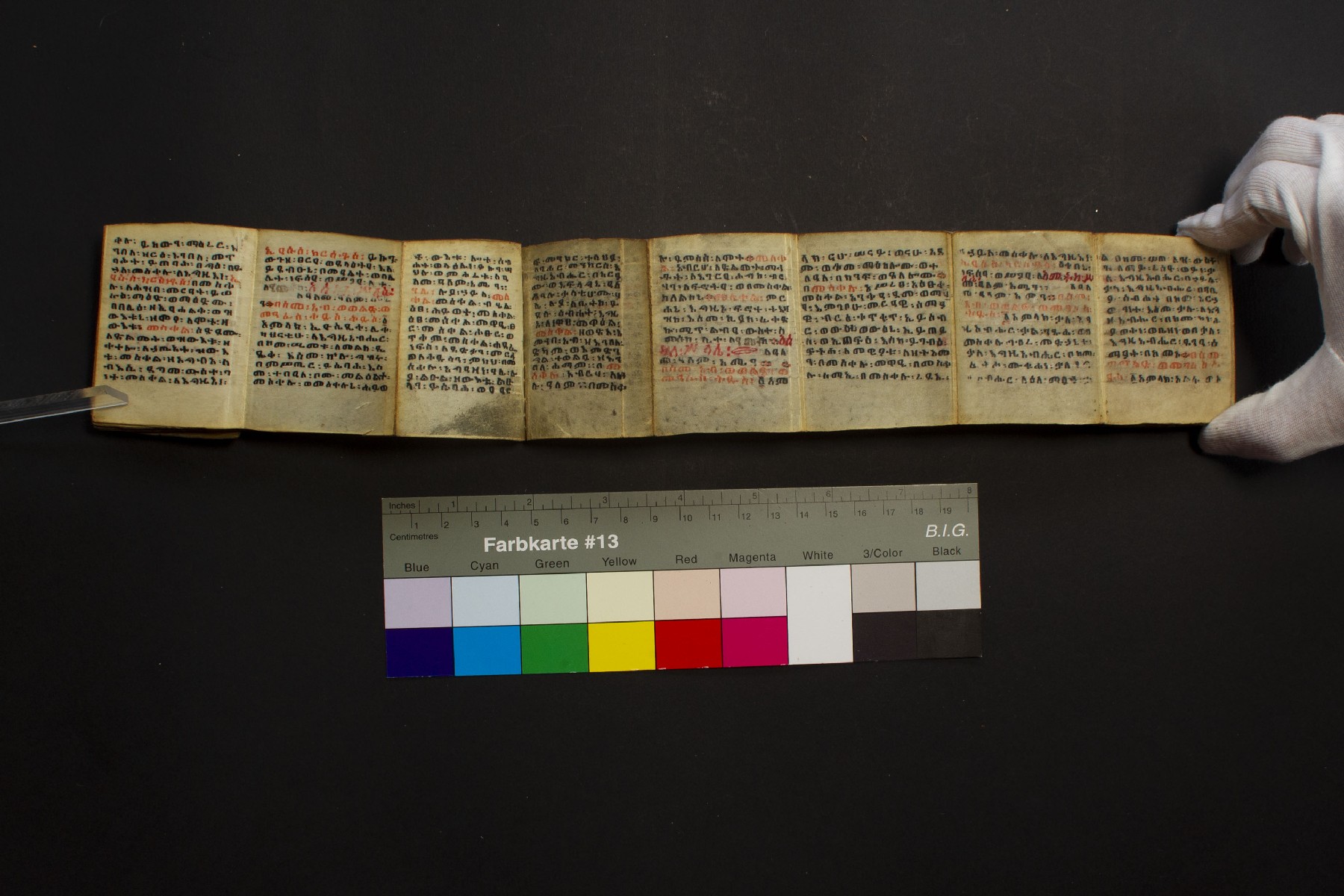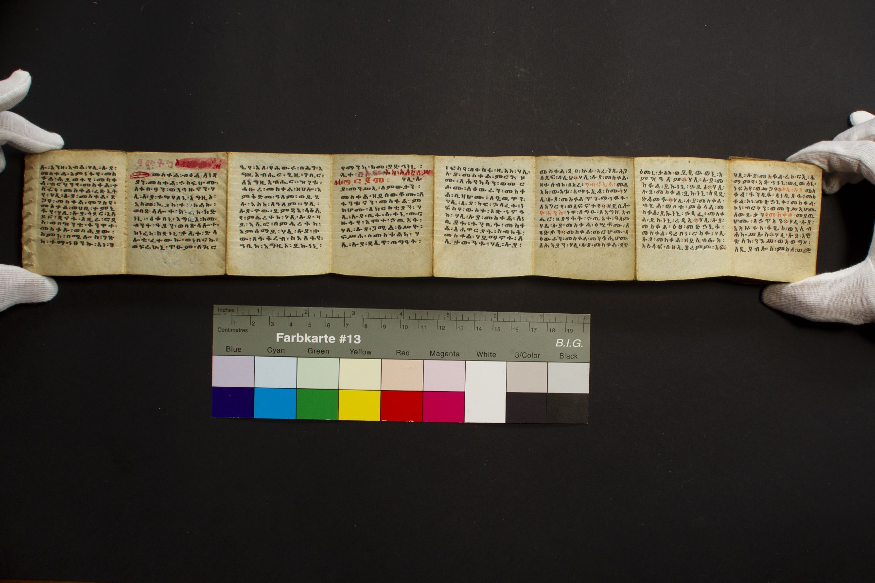 Pp. 3–8: Aʿattǝb wäʾǝtnäśśaʾ (“I make the sign of the cross and rise up”, hymn to God) Incipit: በስመ፡ አብ፡ … አአትብ፡ ወእትነሣእ፡ በስመ፡ አብ፡ ወወልድ፡ ወመንፈስ፡ ቅዱስ፡ ፫ተ፡ አስማተ፡ ነሢእየ፡ እትመረጐዝ፡ እመኒ፡ ወደቁ፡ እትነሣእ፡ ወእመኒ፡ ሖርኩ፡ ውስተ፡ ጽልመት፡ እግዚአብሔር፡ ያበርህ፡ ሊተ፡ በእግዚአብሔር፡ ተወከልኩ። Pp. 8–13: Mäsqäl bǝhil mälʿǝltä kwǝllu nägär (Praise to the Cross) Incipit: በስመ፡ አብ፡ … መስቀል፡ ብሂል፡ መልዕልተ፡ ኵሉ፡ ነገር፡ መስቀል፡ ሐፁር፡ ወጥቅም፡ መስቀል፡ ነሳቴ፡ ፀር፡ መስቀል፡ ለቤተ፡ ክርስቲያን፡ ዓምዳ፡ ወድዳ፡ መስቀል፡ ለቢተ፡ ክርስቲያን፡ Pp. 13–22: Aminyä kiyahu ǝsäbbǝk bäḫaylä mäsqälu ǝnzä ǝbǝl hale luya (“Having faith in Him, I preach the power of the Cross saying ‘hallelujah’”, hymn to the Cross) Incipit: በስመ፡ አብ፡ … ፫አስማተ፡ አብ፡ ወወልድ፡ ወመንፈስ፡ ቅዱስ፡ ለዓለመ፡ ዓለም፡ አሜን። አሚንየ፡ ኪያሁ፡ እሰብክ፡ በኃይለ፡ መስቀሉ፡ እንዘ፡ እብል፡ ሃሌ፡ ሉያ፡ መስቀል፡ እምነቱየ፡ መስቀል፡ ብርሃንየ፡ መስቀል፡ ተስፋየ፡ መስቀል፡ ረድኤትየ፡ ሃሌ፡ ልያ፡ P. 22: Sador alador danat adera rodas (“Sator Arepo Tenet Opera Rotas”, i.e. names of the wounds of Christ, protective text) Full text: በስመ፡ አብ፡ … ሳዶር፡ አላዶር፡ ዳናት፡ አዴራ፡ ሮዳስ፡ በዝንቱ፡ አስማት፡ ቅንዋቲከ፡ አማኅፀንኩ፡ ነፍስየ፡ ወሥጋየ፡ ብእሲትየ፡ ወወሉድየ፡ ወእንስሳየ፡ ከመ፡ ኢይቅረበኒ፡ እኩይ፡ Pp. 22–24: Ḫabekä Ǝgziʾo anqaʿdoku näfsǝyä zätǝnäbbǝr wǝstä sämay (“To you, o Lord, I turn my soul that dwells in heaven”, hymn to the Lord, beginning with Ps 24:1). Incipit: በስመ፡ አብ፡ … ኀቤከ፡ እግዚኦ፡ አንቃዕዶኩ፡ ነፍስየ፡ ዘትነብር<፡> ውስተ፡ ሰማይ፡ ኦመስቀል፡ ወከመ፡ ዓይነ፡ አግብርት፡ ውስተ<፡> እደ፡ አጋዕዝቲሆሙ። Pp. 24–31: Kʷǝllomu śärawitä mälaʾǝkt yǝsebbǝḥǝwwo lämäsqäl (“All hosts of the angels praise the Cross”, hymn to the Cross). Incipit: በስመ፡ አብ፡ … ኵሎሙ፡ ሠራዊተ፡ መላእክት፡ እለ፡ ብዙኃት፡ አዕይንቲሆሙ፡ ወእለ፡ ፮ክነፊሆሙ፡ ይሴብሕዎ፡ ለመስቀል። ሱራፌል፡ ወኪሩቤል፡ እለ፡ ልዑላን፡ በነበልባል፡ ኃይል፡ ይሴብሕዎ፡ ለመስቀል፡ Pp. 31–34: Mäsqäl ǝsmä mǝśṭir yǝssebbaḥ wäyǝʾtakkwät mäsqäl bäʾamsalä betä krǝstiyan (“Cross, that is the Mystery is praised and glorified, Cross in the likeness of the church”, hymn to the Cross) Incipit: በስመ፡ አብ፡ … መስቀል፡ እስመ፡ ምሥጢር፡ ይሴባሕ፡ ወይትአኰት፡ መስቀል፡ በአምሳለ፡ ቤተ፡ ክርስቲያን፡ ማዕዘን፡ ወአፍረየ፡ ሠናየ፡ እለ፡ አብቈለ፡ ሥከ፡ ወአሜከላ፡ መስቀል፡ ክቡር፡ ገብር፡ Pp. 34–42: Sälam läŚǝllus Qǝddus aḫaze kwǝllu ʿaläm wäzäʾiyǝtmäwwaʾ läḍärr (“Salutation to the Holy Trinity, ruler of all the world and undefeated by the enemy”, hymn to the Cross) Incipit: በስመ፡ አብ፡ … ሰላም፡ ለሥሉስ፡ ቅዱስ፡ አኃዜ፡ ኵሉ፡ ዓለም፡ ወዘኢይትመዋዕ፡ ለፀር። ሰላም፡ ለአብ፡ ለፈጣሬ፡ ኵሉ፡ ዓለም፡ ሰላም፡ ለሥሉስ፡ ቅዱስ፡ ለአኃዜ፡ ኃይል። Pp. 42–48: Ǝgziʾabǝḥer zätäsäqlä bäqǝddusan yǝtqeddäs wäʾǝmḫabä mälaʾǝkt yǝtweddäs (“God who was crucified is sanctified among the saints and praised from the angels”) Incipit: በስመ፡ አብ፡ … እግዚአብሔር፡ ዘተሰቅለ፡ በቅዱሳን፡ ይትቄደስ፡ ወእምኀበ፡ መላእክት፡ ይትዌደስ፡ ዘበድማሬ፡ ይሤለስ፡ ሎቱ፡ ስብሐት፡ እስከ፡ ለዓለመ፡ ዓለም፡ አሜን። ግነዩ፡ ለእግዚአብሔር Pp. 48–52: Qǝddus Ǝgziʾabǝḥer qǝddus ḫayyal qǝddus ḥǝyaw zäʾiyǝmäwwǝt zätäwäldä ǝmMaryam (“Holy God, holy, mighty, living, immortal, begotten by Mary”, supplication to the Lord) Incipit: በስመ፡ አብ፡ … ቅዱስ፡ እግዚአብሔር፡ ቅዱስ፡ ኃያል። ቅዱስ፡ ሕያው፡ ዘኢይመውት፡ ዘተወልደ፡ እማርያም፡ እምቅድስት፡ ድንግል፡ ተሣሃለነ፡ እግዚኦ። Pp. 53–59: Mäsqäl mǝḥrät wäśahl wäqǝddus ḫayyal omäsqäl (“Cross, mercy, compassion, holy, mighty, o Cross”, hymn to the Cross) Incipit: በስመ፡ አብ፡ … መስቀል፡ ምሕረት፡ ወሣህል፡ ወቅዱስ፡ ኃይል፡ ኦመስቀል፡ ምሕረት፡ ወሰላም፡ ወቅዱስ፡ ኃይል፡ መስቀል፡ ታው፡ ለትቅረብ፡ ስእለትየ፡ ኀቤከ፡ እግዚኦ። Pp. 60–63: Awlogǝyos geryos Iyäsus Krǝstos agyos manṭos (“Blessed Lord [cp. Gr. κύριος] Jesus Christ, holy [cp. Gr. ἅγιος], manṭos” hymn to the Lord) Incipit: በስመ፡ አብ፡ … አውሎግዮስ፡ ጌርዮስ፡ ኢየሱስ፡ ክርስቶስ፡ አግዮስ፡ ማንጦስ፡ እምኀበ፡ መላእክት፡ ተአኵተ፡ ፍሬ፡ ስብሐት፡ ሠረፀ፡ እምኀበ፡ አቡሁ፡ ሎቱ፡ እስከ፡ ለዓለመ፡ ዓለም፡ አሜን። Pp. 64–71: Wäld ǝḫuyä wärädä wǝstä gännät (“The son, my brother, descended in Paradi