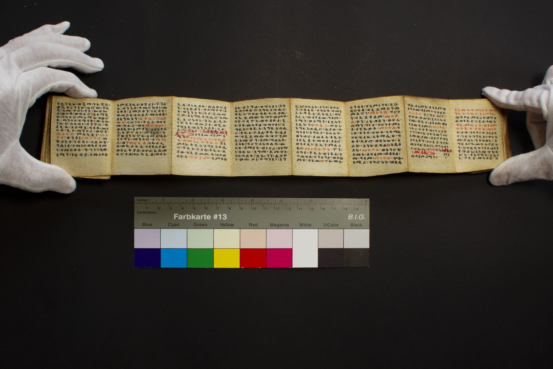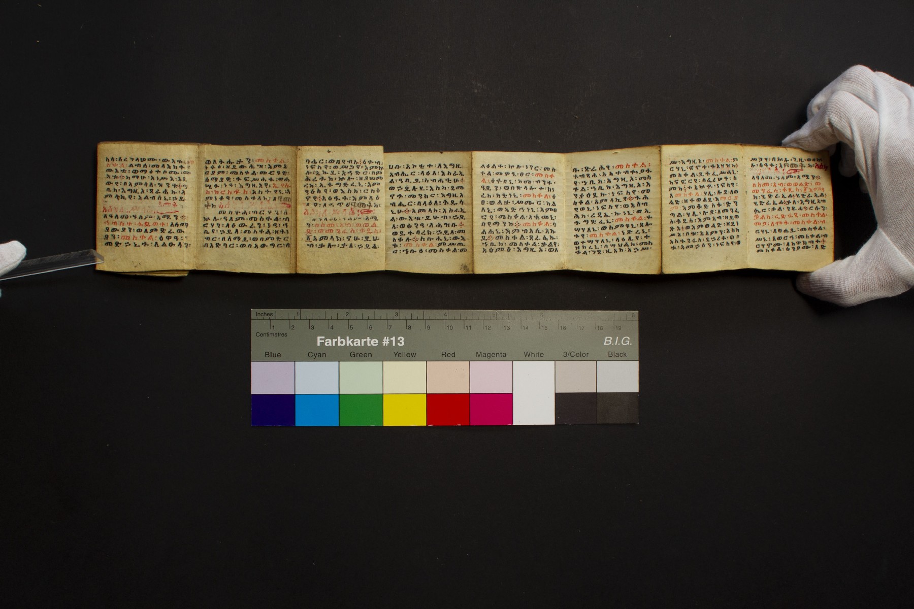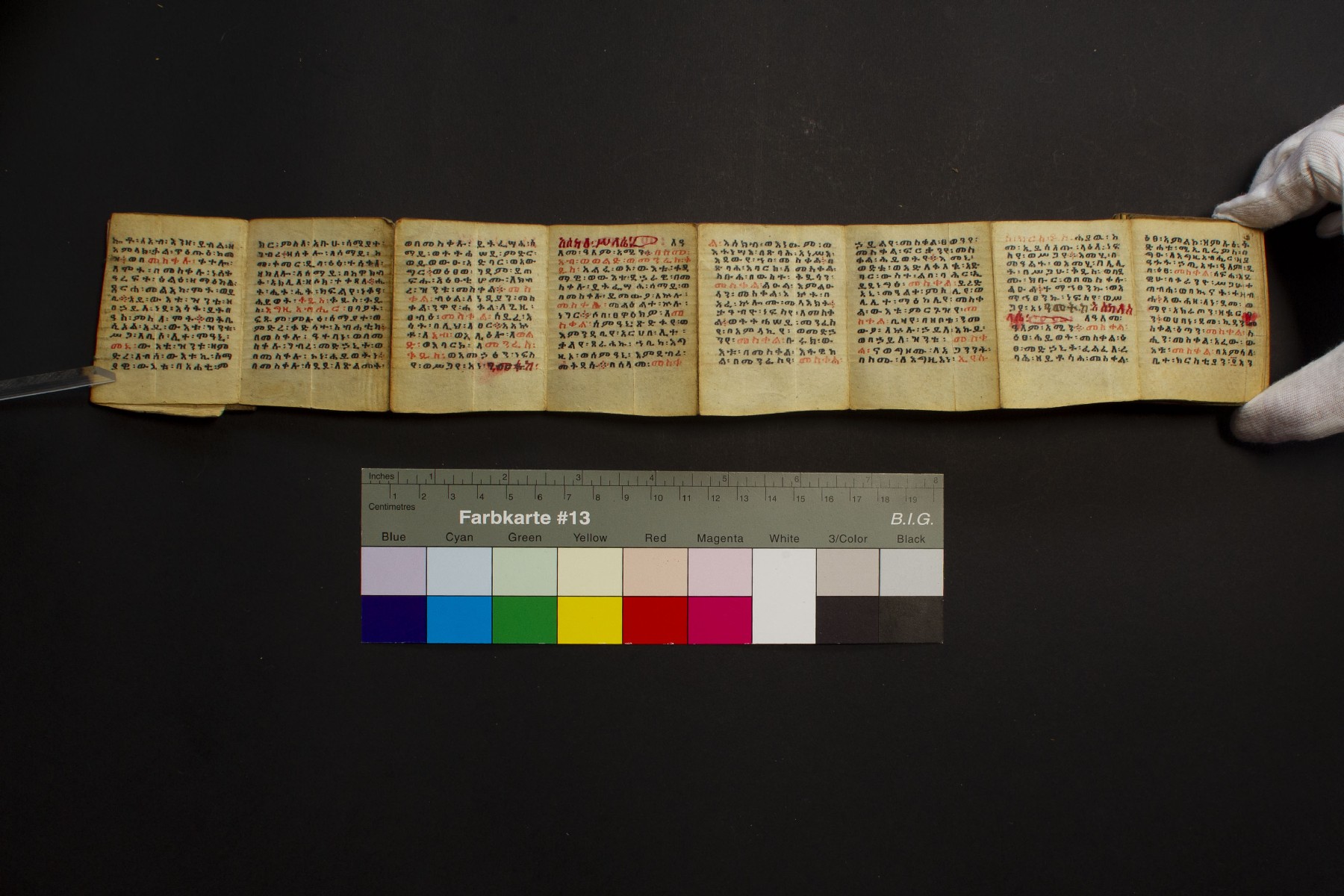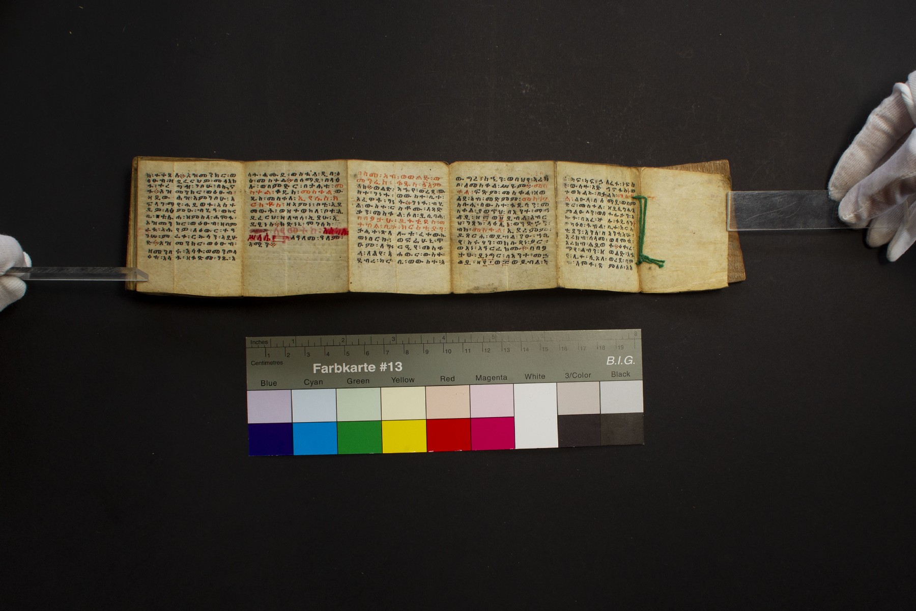 1. Pp. 112–113: a short supplication against the diseases caused by the demons is added in red ink by a less trained hand. The text reads as follows: ዕቀባ፡ ወአድኅና፡ ወፈውሳ፡ እምሕማመ፡ ባርያ፡ ወሌጌዎን፡ እምሕማመ፡ ዓይነ፡ ጥላ፡ ወዓይነ፡ ወርቅ፡ ዓይነ፡ ፈለሻ፡ ቡዳ፡ ወቁመኛ፡ ላቲ፡ ለአመትከ፡ [….]፡ ሥላሴ።. The name of the supplicant [….] Śǝllase (most probably Askalä Śǝllase) is partly illegible due to erasure of the last line. Another name (most probably that of Wälättä Maryam), written in red ink and encircled in a frame, has been erased at the top of the supplication. |
