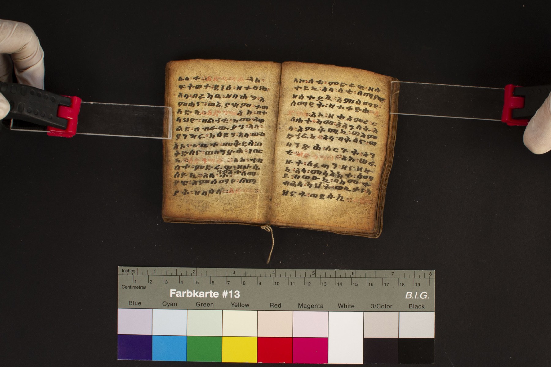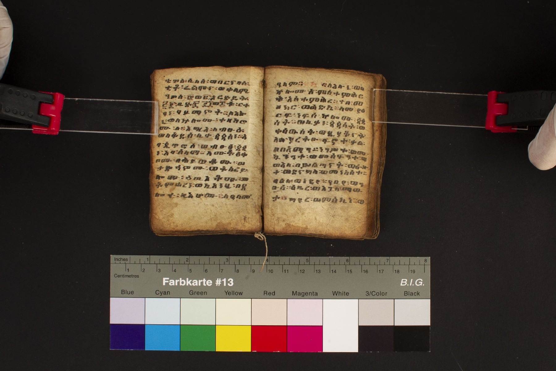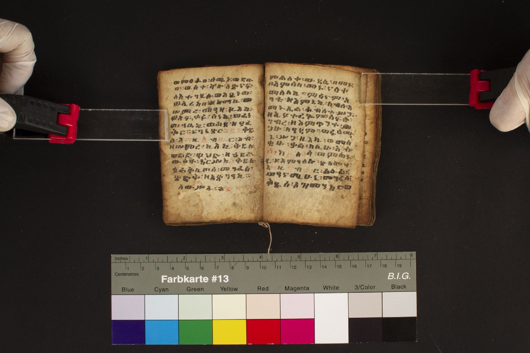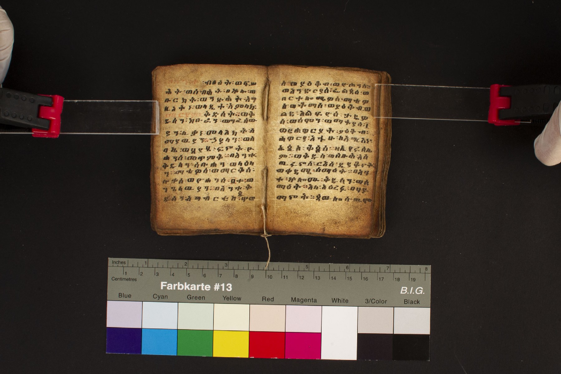 Ff. 1v–2r: asmat-prayer written in black ink an untrained hand. Incipit: [.]ጠል፡ አቂቱ፡ ናባል፡ አወል፡ ዙቤላሄል፡ ወደክል፡ በናጫ፡ ንረምድ፡ ክፍጅን፡ ቹን፡. On f. 2r the text reads, in the same hand: በስመ፡ አብ፡ … ጸሎት፡ በዕንተ፡ ግርማ፡ ሞገስ፡ ዘወሀበ<፡> ለሙሴ፡ “In the name of the Father … Prayer on the glory of the benevolence, which was granted to Moses”. |