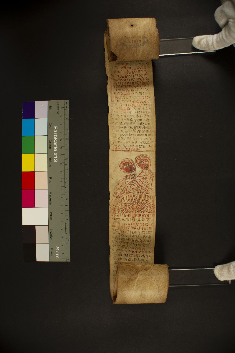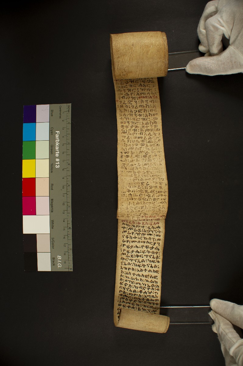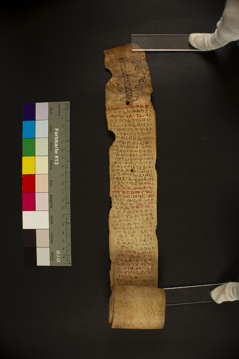 1) Unidentified asmat-prayer (Gäfä gäfä ḥaṣin gärraṭ). The prayer contains supplications for undoing charms and to the Archangels Michael and Gabriel. Incipit: በስመ፡ … ገፈ፡ ገፈ፡ ገፈ፡ ሐጺን፡ ገራጥ፡ አዐፎአኤር፡ እክኤል፡ አስተይናወር፡ መሎስ፡ ሰይእ[.]ት፡ በዝንቱ፡ ቡዳ፡ ወአልስሕ፡ ወሠ[.]፡ ሥራየ፡ ብእሲ፡ ወብእሲት፡ ሥራየ፡ 2) Unidentified asmat-invocation for undoing charms (“Abunazǝr Sǝmunazǝr, dispel and disperse, remove and dissolve the charm of the man and the woman”). Incipit: በስመ፡ … አቡናዝር፡ ስሙናዝር፡ ፍታሕ፡ ወዘርዝር፡ ሠዓር፡ ወመንዝር፡ ሥራየ፡ ብእሲ፡ ወብእሲት፡ ወአስማተ፡ ካህን፡ ዘተገብረ፡ በላዕለ፡ ገብርከ፡ ተክለ፡ ሰንበት፡ ፍሐዝር፡ ፍሐዝር፡ ፍሐዝር፡ በአማን፡ 3) Ṣälot bäʾǝntä śǝray wä-kin (“Prayer against [any] incantation and stratagem”). Incipit: በስመ፡ … ጸሎተ፡ በእንተ፡ ሥራይ፡ ወኪን፡ ፍታሔ፡ ተፈታሕ፡ ወተረኃው፡ ብሂሊ፡ (!) ከማሁ፡ ተፈታሕ፡ ኵሉ፡ ሥራይ፡ ወኪን፡ ወ[..]ዎን፡ ወባርያ፡ 4) Unidentified asmat-invocation for undoing charms (“Sǝfaḫazǝr Sǝfaḫazǝr Sǝfaḫazǝr in truth Sǝfaḫazǝr dispel and disperse, remove and dissolve any charm”). Incipit: በስመ፡ … ስፉኃዝር፡ ስፉኃዝር፡ ስፉኃዝር፡ በአማን፡ ስፉኃዝር፡ ፍታሕ፡ ወዘርዝር፡ ሰአር፡ ወመንዝር፡ ኵሉ፡ ሥራይ፡ እምላዕለ፡ ገብርከ፡ ተክለ፡ ሰንበት፡ 5) Ṣälotä fǝtḥatä śǝrayä aganǝnt (“Prayer for undoing the charms of the demons”). Incipit: በስመ፡ … ጸሎተ፡ ፍትሐተ፡ ሥራይ፡ (!) አጋንንት፡ ሥራይ፡ ኵሎሙ፡ መናፍስተ፡ ርኩሳን፡ ሥራዮ፡ ሙለመሰርያን፡ ዮፍታሔ፡ ዮፍታሔ፡ ዮፍታሔ፡ ፍትሐተ፡ ሥራይ፡ ቅርጥናኤል፡ ቅርጥናኤል፡ ክፍትናኤል፡ |