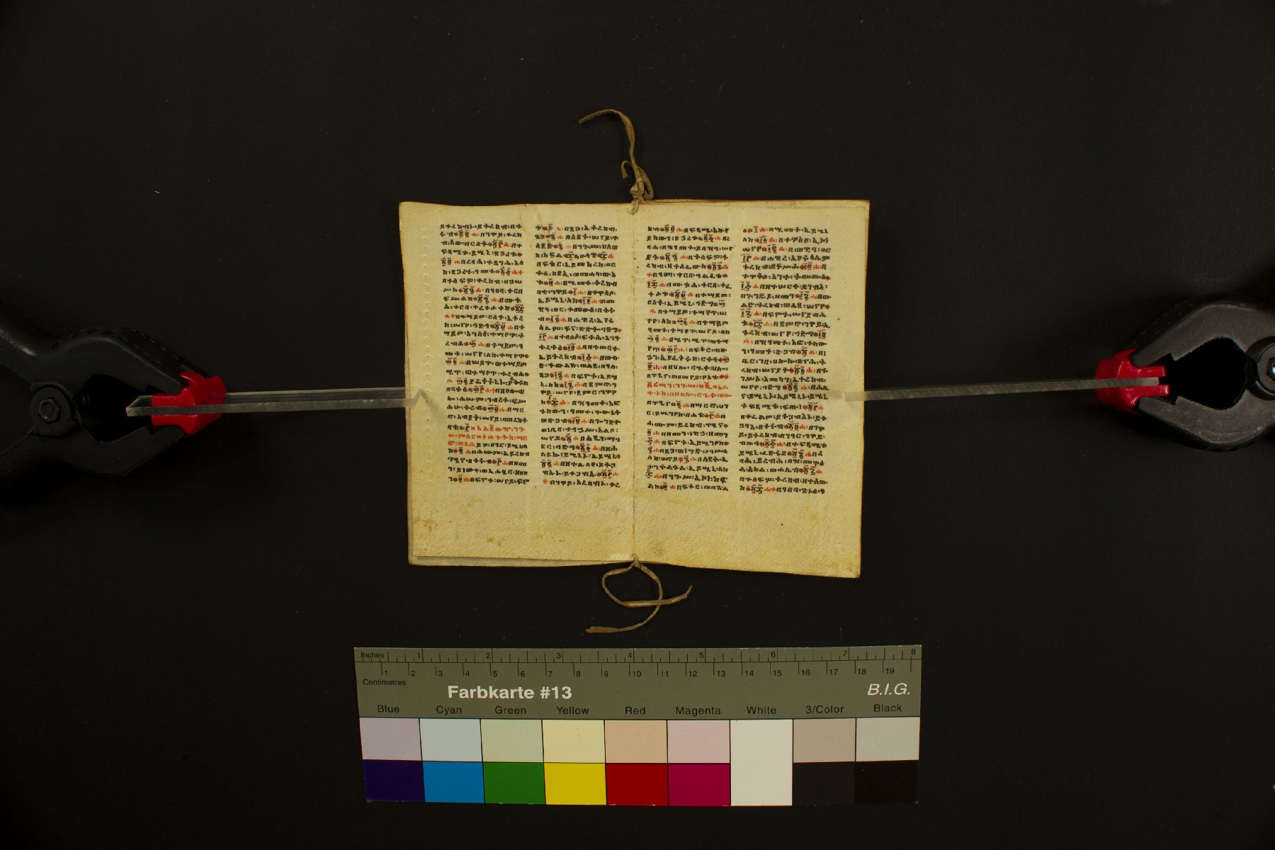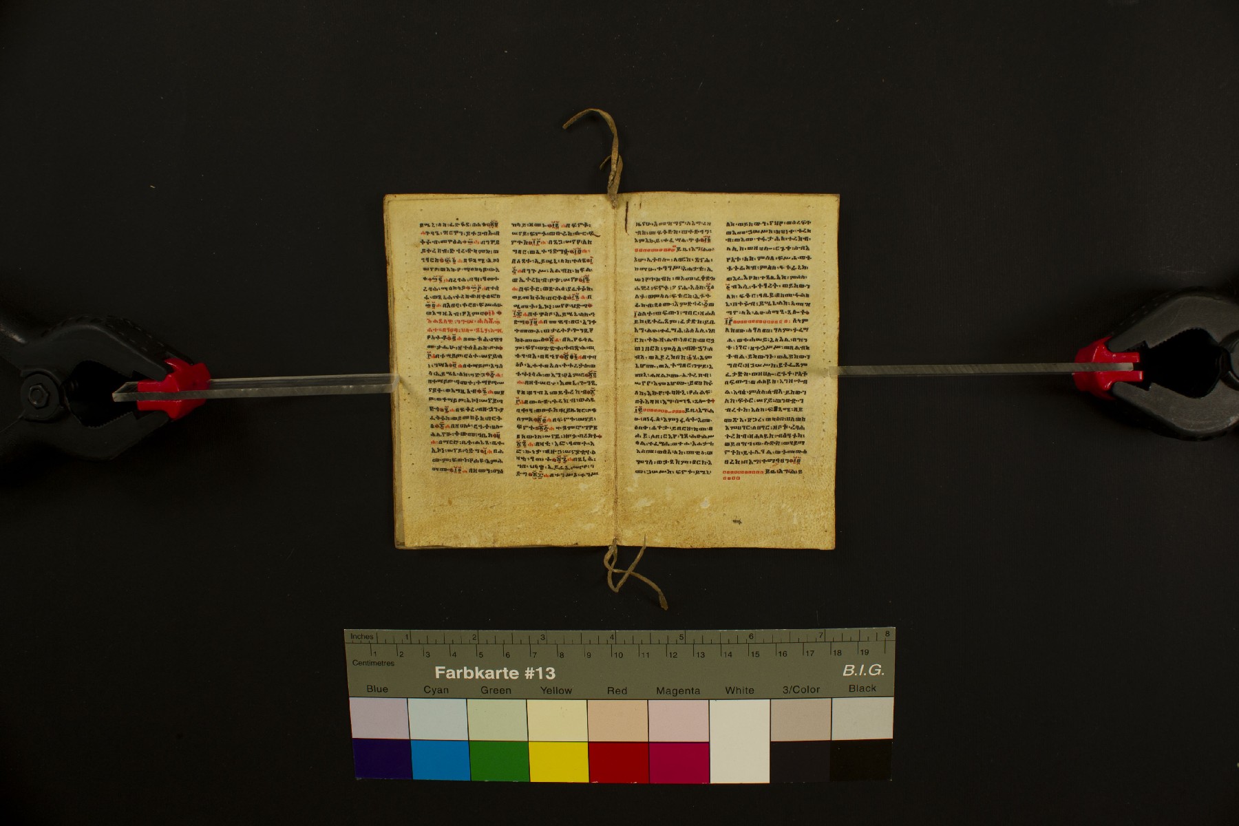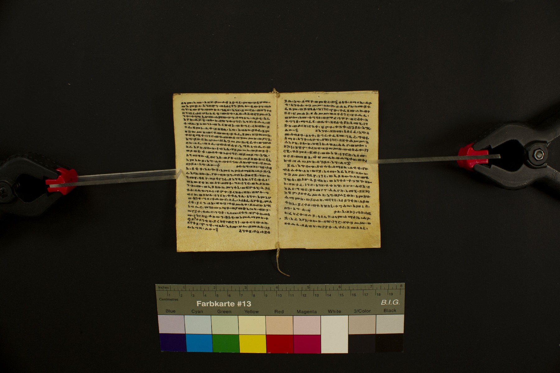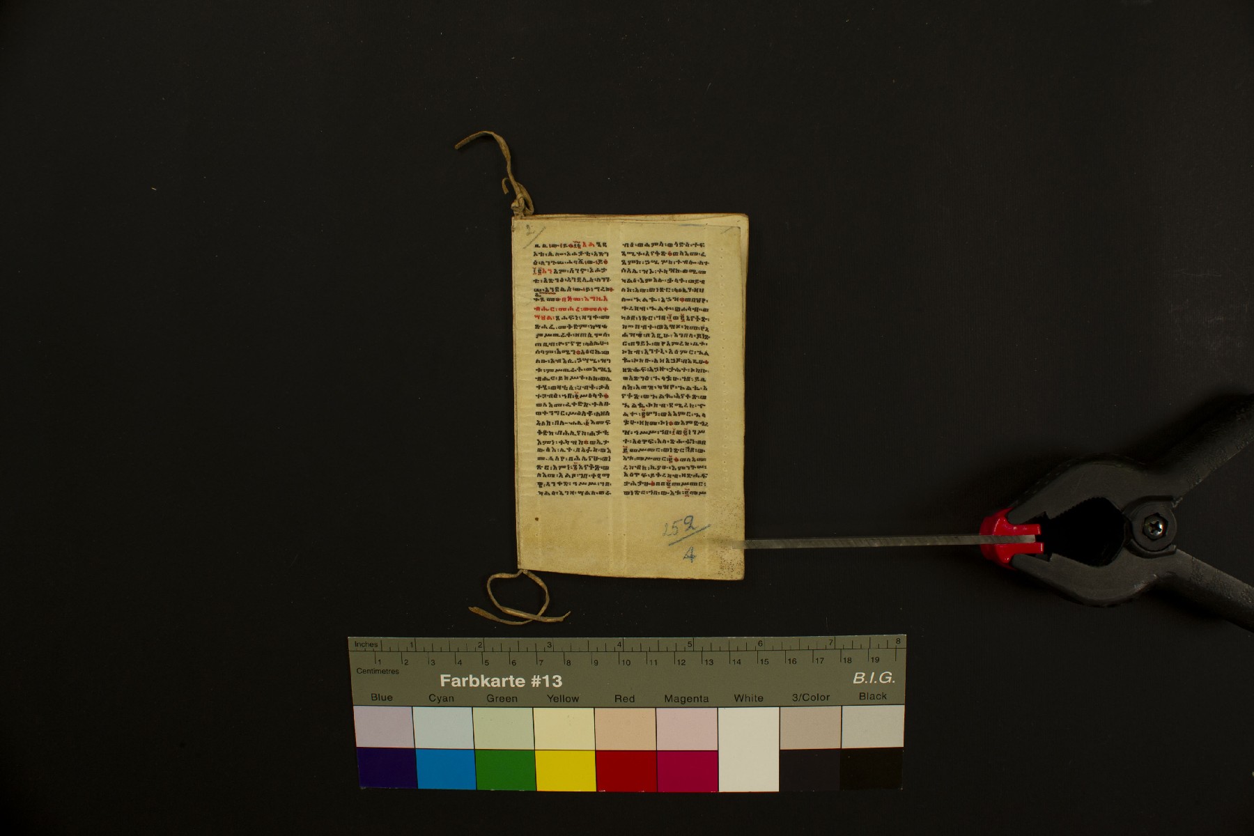 Ff. 1ra–6vb: Mäṣḥafä mäqdǝm käśate mǝśṭirat zäṬäsimos (sic) ṭäbib yonanawi (“Book of the introduction revealing the mysteries of Ptolemy the wise Greek”, or Liber de revelatione misteriorum). Incipit: በስመ፡ እግዚአብሔር፡ መሐሪ፡ ወመስተሣህል፡ ጸሐፍነ፡ ዘንተ፡ መጽሐፈ፡ መቅድም፡ ከሣቴ፡ ምሥጢራት፡ ዘጠሲሞስ፡ (!) ጠቢብ፡ ዮናናዊ፡ ላዕሌሁ፡ ሰላም፡ አሜን። አዕርኬ፡ ወለቡ፡ ኦብእሲ፡ ኃሣሤ፡ ዝንቱ፡ ምሥጢራት፡ ወእግዚአብሔር፡ ይክሥት፡ ለከ፡ Then follow 12 chapters, each entitled after one of the twelve ‘kings of the world’, i.e. one of the signs of the zodiac. Each chapter contains 34 numbered formulas for prediction called ḥatäta. The text is incomplete due to material loss: it ends up abruptly at ch. 11. Explicit: ፳፮ሐ፡ በዛቲ፡ እፎ፡ ዓመት፡ እፎ፡ ኩነታ፡ ብዙኃ፡ ሠናያቲሃ፡ ለዛቲ፡ ዓመት። ፳፯ሐ<፡> በጸኒሕ፡ ኀበ፡ ህላዌ፡ ኢይሬኒ፡ ሠናየ፡ ኅድግ። ፳፰ሐ<፡> በተንሥኦ፡ ተንሥ Ff. 7ra–8r: Unidentified divinatory text in 16 chapters. The text is incomplete, the beginning is missing due to material loss. Only the end of ch. 10 and chs 11–16 are preserved. Incipit: ዜናሁ፡ አመዝግኖ፡ ለእግ፡ ረከብከ፡ መፍቅድከ፡ ወትድኅን፡ እምእኩይ፡ ተፈሣሕ፡ ጥቀ። ፲፩ይቤ፡ እግ፡ ልዑ፡ ኦሆ፡ ኢትበሎ፡ ለፀርከ፡ ጽናሕ፡ ከማሁ፡ ተዓገሥ፡ ኦሐታቲ፡ ኢሠነየ፡ ኮከብከ፡ ወእመ፡ ፈቅድከ፡ The text is followed on ff. 7v–8r by seven circular diagrams: six are in black and red ink and contain writings in the main hand. The seventh diagram is in red ink and is divided into 12 sections, each numbered and titled after one of the zodiacal signs. Ff.8va–b; 1ra: Unidentified divinatory text in 12 chapters (anqäṣ). Each chapter is entitled after one of the signs of the zodiac. The conclusion follows on f. 1ra (the original sequence of the textblock is perturbed). Incipit (f. 8va): ፩አንቀጽ፡ ሐመል፡ አሳታዊ፡ በግዕ፡ አሰአሌ፡ ኢትኅድጎ፡ ለጣዖሰ፡ ዖፍ፡ ውእቱ፡ ይነግረከ። ፪አንቀ<፡> ተወር፡ መሬታዊ፡ ብዕራይ<፡> አኃሣሤ፡ ዜና፡ ኢትኅድጎ፡ ለዖፈ፡ አልኢታብ፡ ውእ፡ ይነ። |