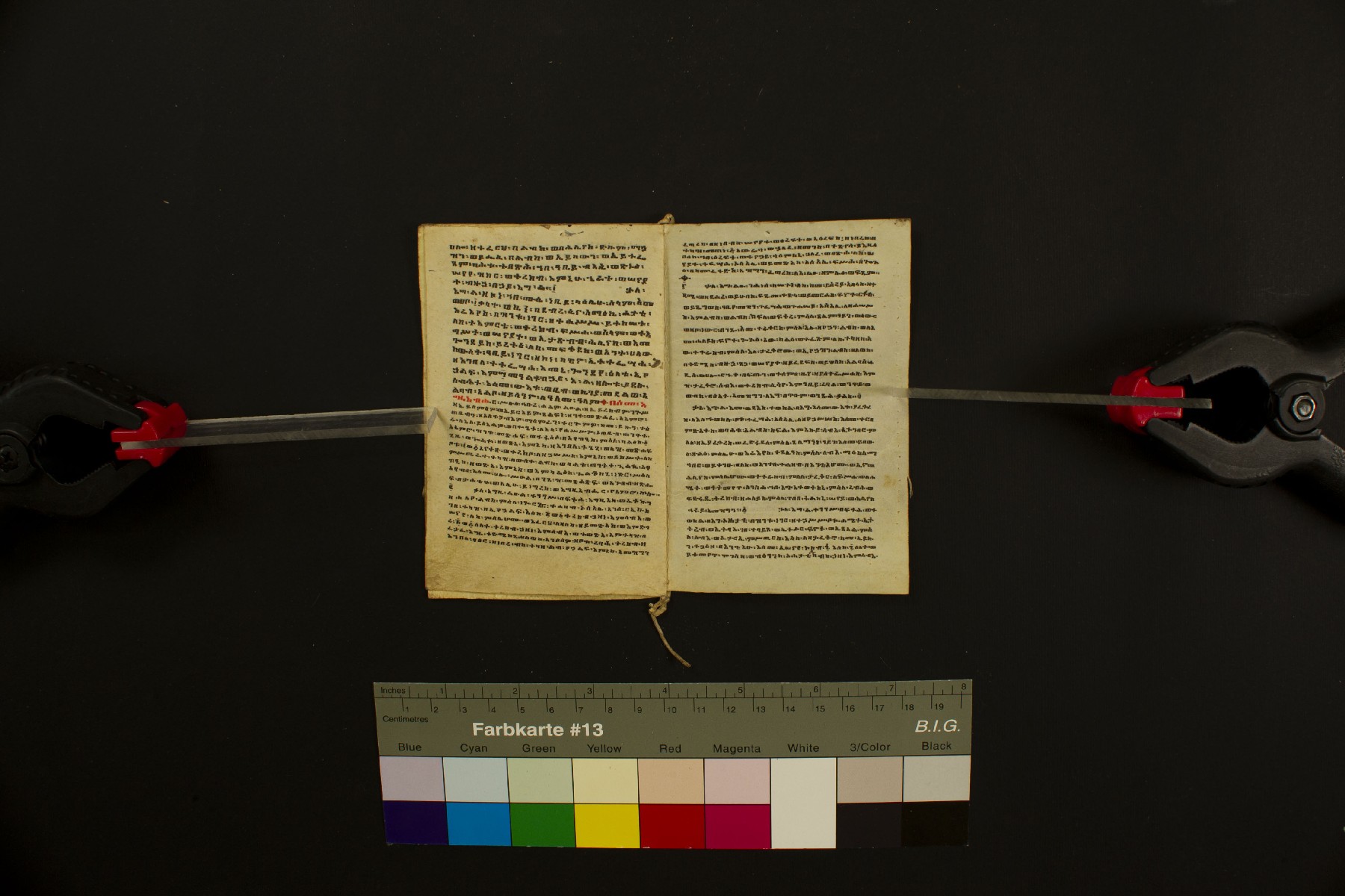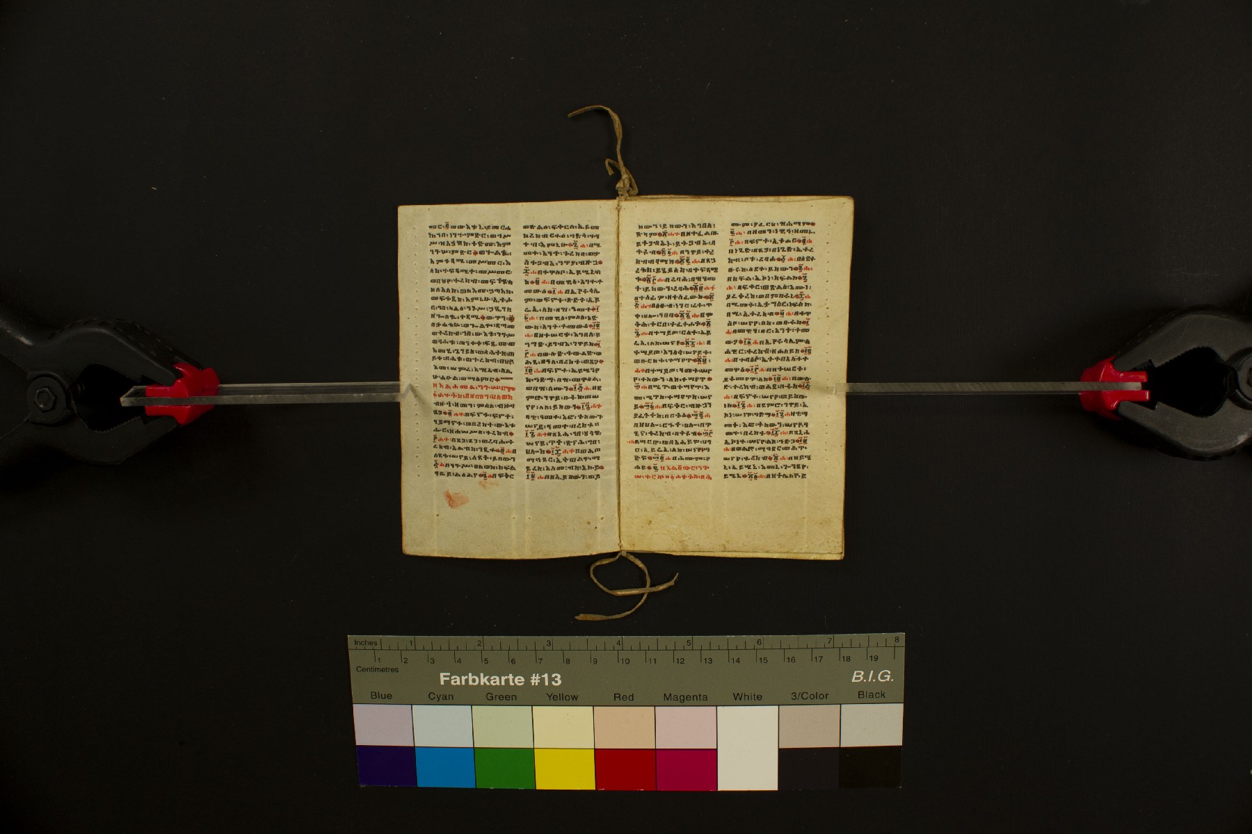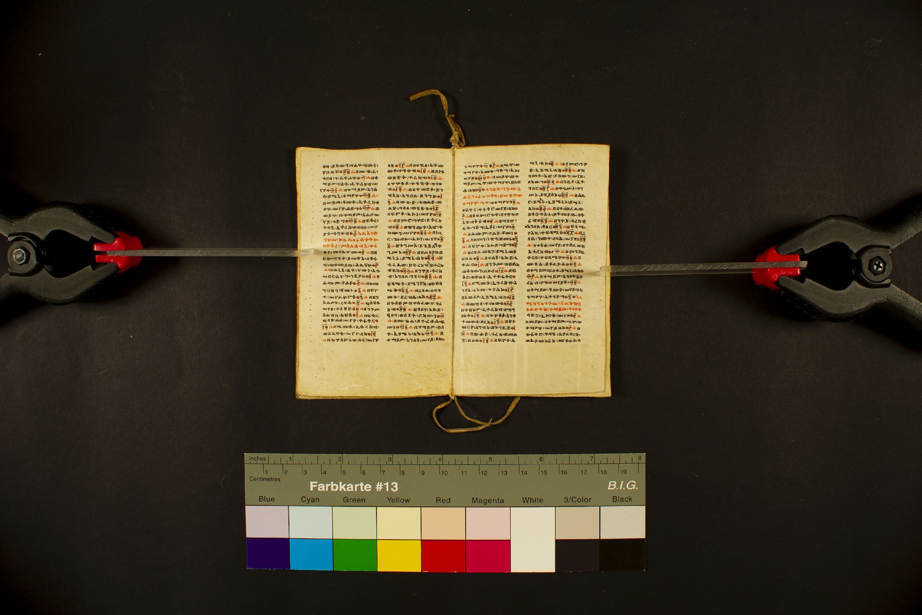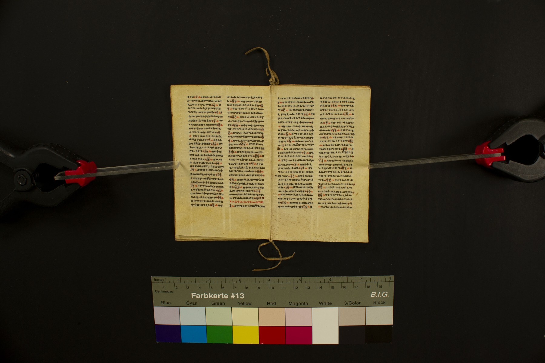 Ff. 1ra–6vb: Mäṣḥafä mäqdǝm käśate mǝśṭirat zäṬäsimos (sic) ṭäbib yonanawi (“Book of the introduction revealing the mysteries of Ptolemy the wise Greek”, or Liber de revelatione misteriorum). Incipit: በስመ፡ እግዚአብሔር፡ መሐሪ፡ ወመስተሣህል፡ ጸሐፍነ፡ ዘንተ፡ መጽሐፈ፡ መቅድም፡ ከሣቴ፡ ምሥጢራት፡ ዘጠሲሞስ፡ (!) ጠቢብ፡ ዮናናዊ፡ ላዕሌሁ፡ ሰላም፡ አሜን። አዕርኬ፡ ወለቡ፡ ኦብእሲ፡ ኃሣሤ፡ ዝንቱ፡ ምሥጢራት፡ ወእግዚአብሔር፡ ይክሥት፡ ለከ፡ Then follow 12 chapters, each entitled after one of the twelve ‘kings of the world’, i.e. one of the signs of the zodiac. Each chapter contains 34 numbered formulas for prediction called ḥatäta. The text is incomplete due to material loss: it ends up abruptly at ch. 11. Explicit: ፳፮ሐ፡ በዛቲ፡ እፎ፡ ዓመት፡ እፎ፡ ኩነታ፡ ብዙኃ፡ ሠናያቲሃ፡ ለዛቲ፡ ዓመት። ፳፯ሐ<፡> በጸኒሕ፡ ኀበ፡ ህላዌ፡ ኢይሬኒ፡ ሠናየ፡ ኅድግ። ፳፰ሐ<፡> በተንሥኦ፡ ተንሥ Ff. 7ra–8r: Unidentified divinatory text in 16 chapters. The text is incomplete, the beginning is missing due to material loss. Only the end of ch. 10 and chs 11–16 are preserved. Incipit: ዜናሁ፡ አመዝግኖ፡ ለእግ፡ ረከብከ፡ መፍቅድከ፡ ወትድኅን፡ እምእኩይ፡ ተፈሣሕ፡ ጥቀ። ፲፩ይቤ፡ እግ፡ ልዑ፡ ኦሆ፡ ኢትበሎ፡ ለፀርከ፡ ጽናሕ፡ ከማሁ፡ ተዓገሥ፡ ኦሐታቲ፡ ኢሠነየ፡ ኮከብከ፡ ወእመ፡ ፈቅድከ፡ The text is followed on ff. 7v–8r by seven circular diagrams: six are in black and red ink and contain writings in the main hand. The seventh diagram is in red ink and is divided into 12 sections, each numbered and titled after one of the zodiacal signs. Ff.8va–b; 1ra: Unidentified divinatory text in 12 chapters (anqäṣ). Each chapter is entitled after one of the signs of the zodiac. The conclusion follows on f. 1ra (the original sequence of the textblock is perturbed). Incipit (f. 8va): ፩አንቀጽ፡ ሐመል፡ አሳታዊ፡ በግዕ፡ አሰአሌ፡ ኢትኅድጎ፡ ለጣዖሰ፡ ዖፍ፡ ውእቱ፡ ይነግረከ። ፪አንቀ<፡> ተወር፡ መሬታዊ፡ ብዕራይ<፡> አኃሣሤ፡ ዜና፡ ኢትኅድጎ፡ ለዖፈ፡ አልኢታብ፡ ውእ፡ ይነ። |