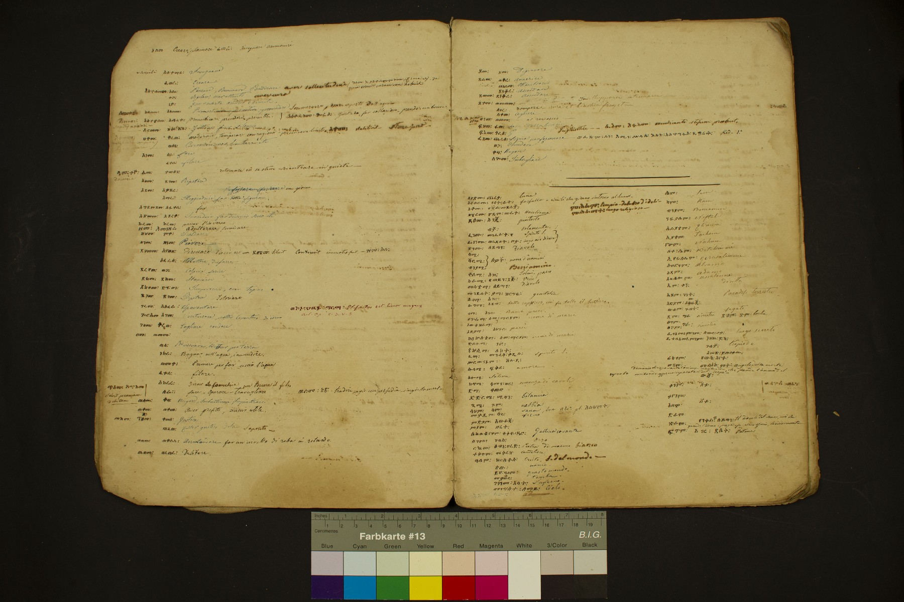 The manuscript was written by Padre Giovanni Stella (1822–1869) in 1854. The vocabulary was expanded by P. Stella over the following years. The manuscript came into possession of the Società Geografica Italiana at some time between 1869, when P. Stella died, and 1930, when the existence of this material was first reported in Giuseppe Gabrieli’s Manoscritti e carte orientali nelle biblioteche e negli archivi d'Italia: dati statistici e bibliografici delle collezioni, loro storia e catalogazione, 1930. The manuscript is also mentioned in Silvio Zanutto’s Bibliografia etiopica (1932). |