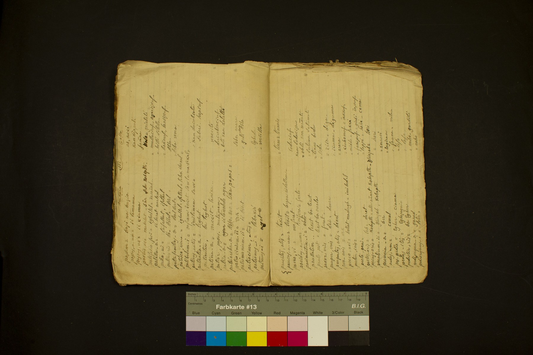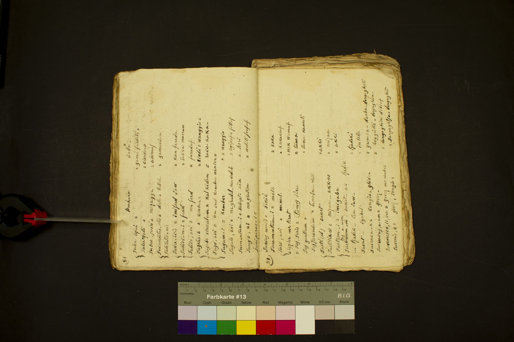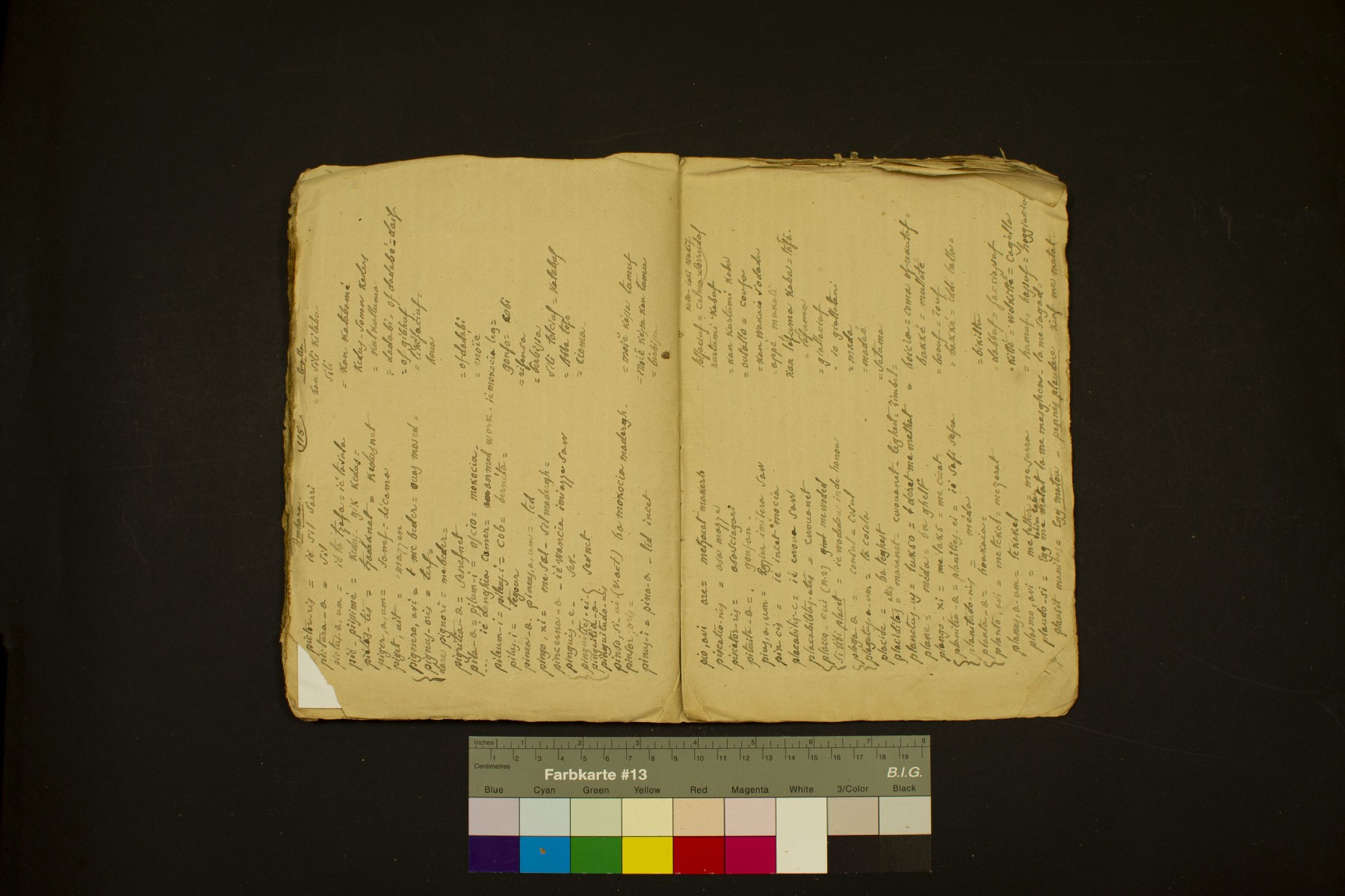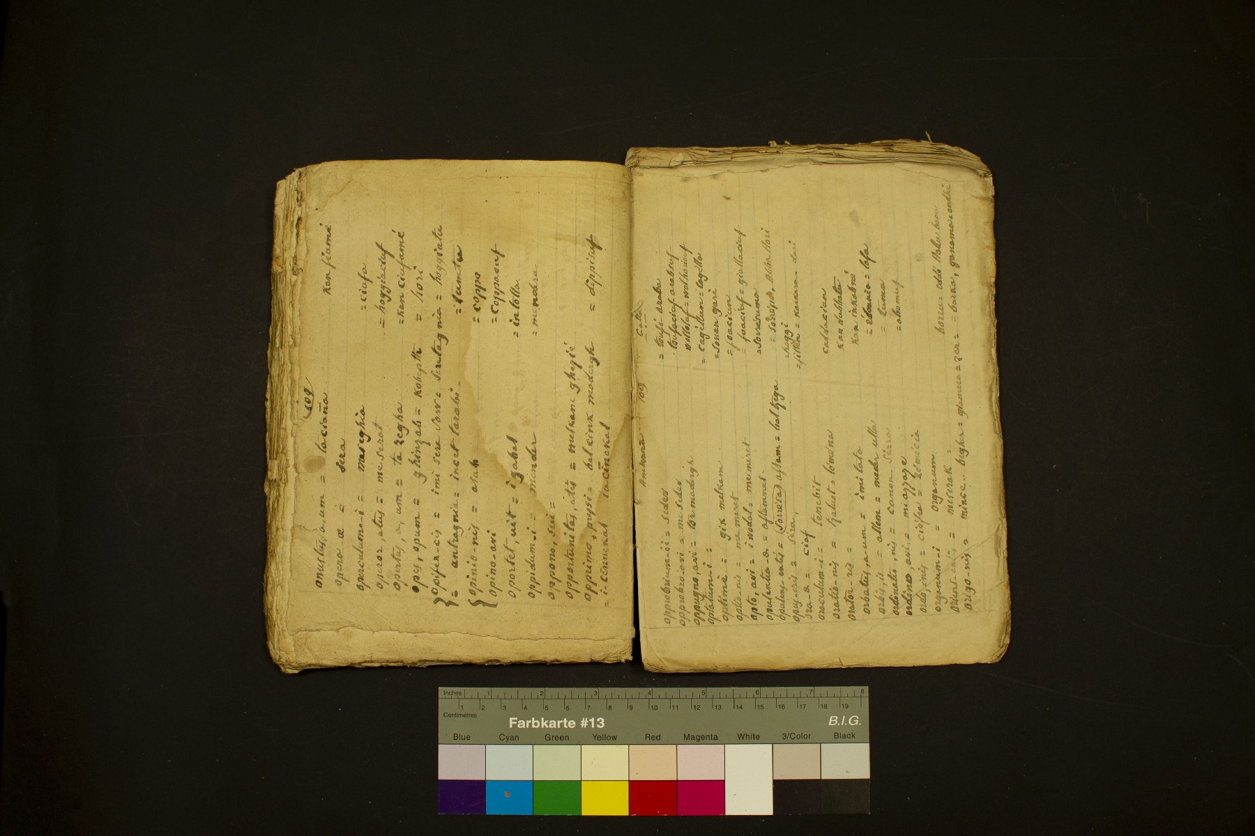 The item also includes two additional loose quires, labelled 1 and 2. Quire 1 is a medium-size paper bifolium. Ff. 1–2 contain a wordlist in an unidentified Ethiopian language written in black ink in Latin script, in all likelihood by Léon des Avanchers. Each entry is accompanied by the respective meaning in Italian. Ff. 3–4 are blank.