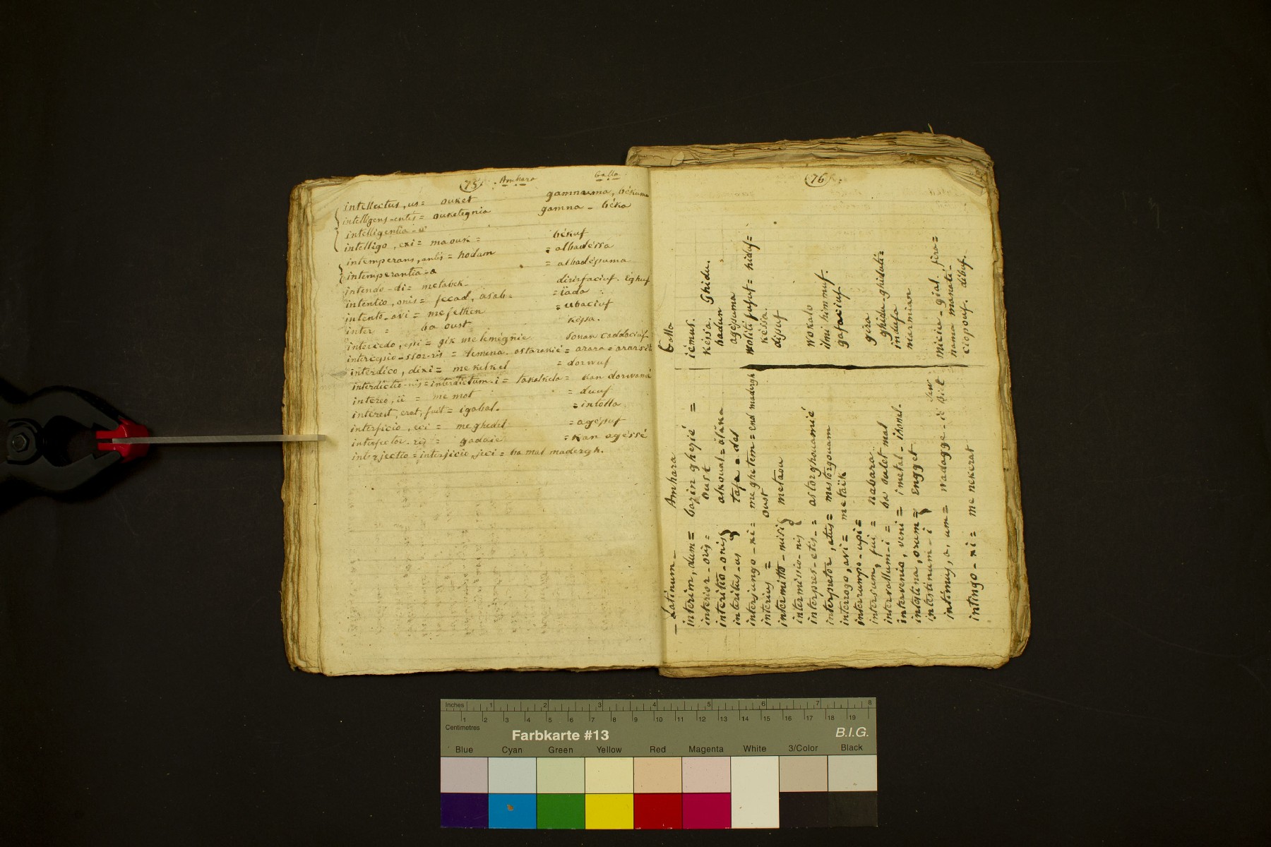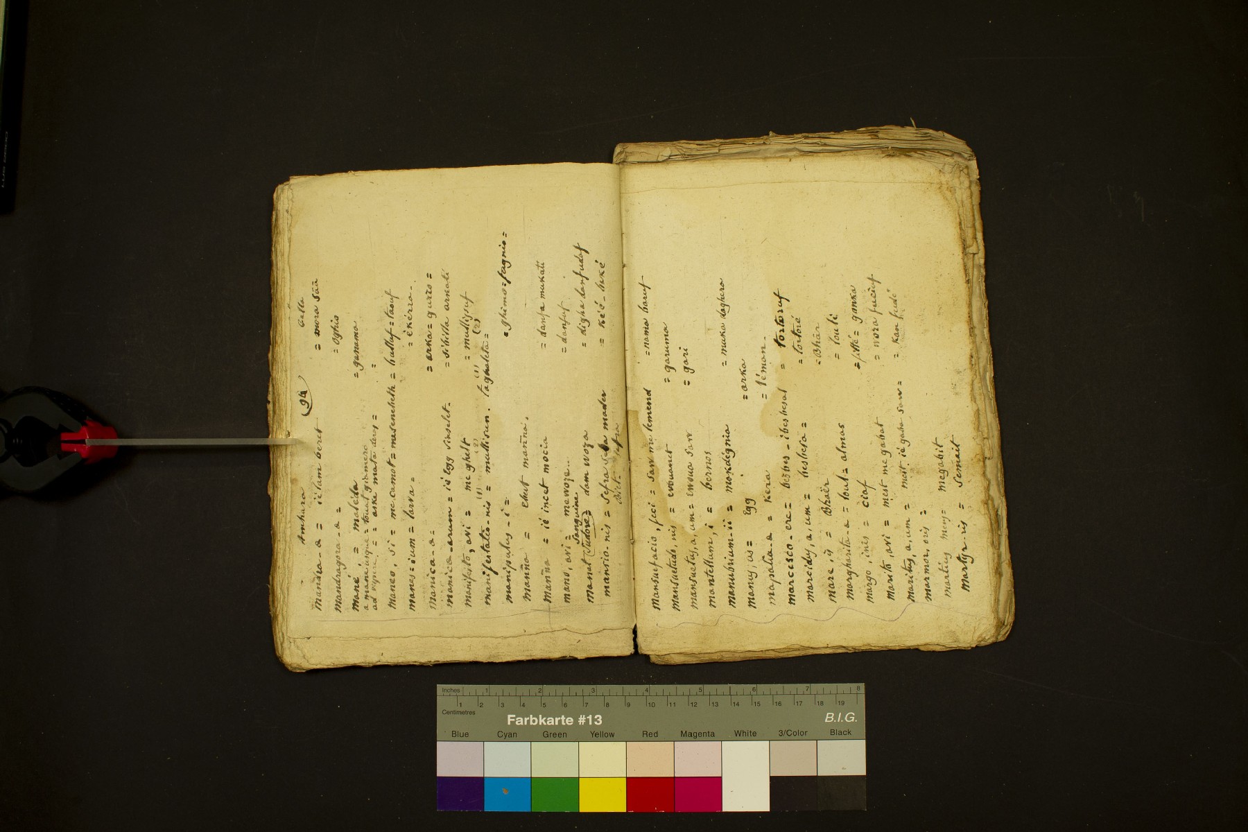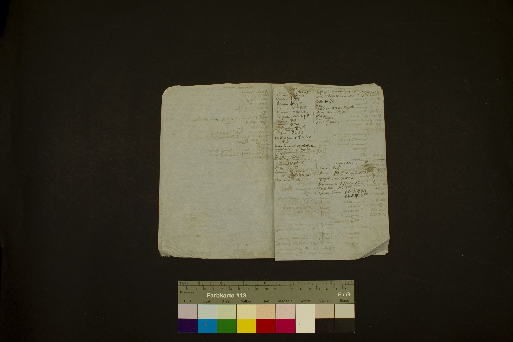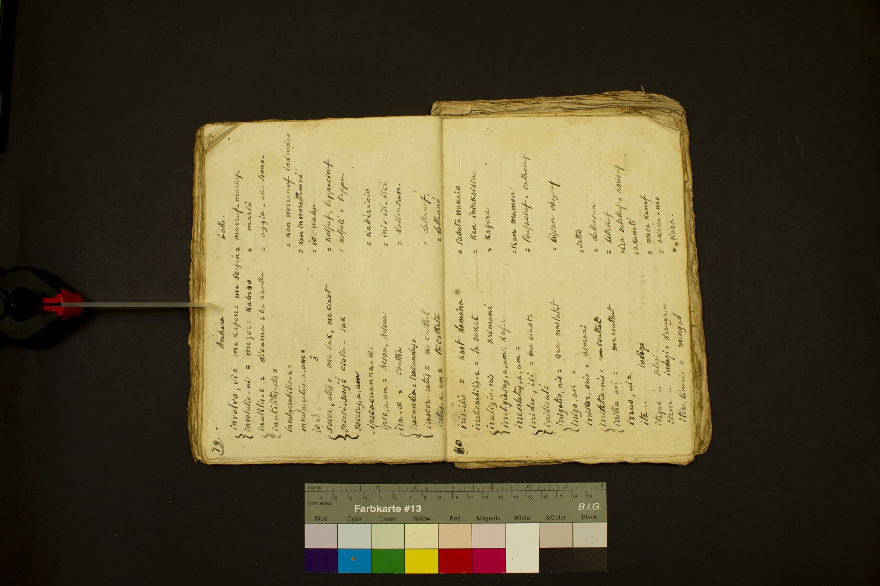 The item also includes two additional loose quires, labelled 1 and 2. Quire 1 is a medium-size paper bifolium. Ff. 1–2 contain a wordlist in an unidentified Ethiopian language written in black ink in Latin script, in all likelihood by Léon des Avanchers. Each entry is accompanied by the respective meaning in Italian. Ff. 3–4 are blank.