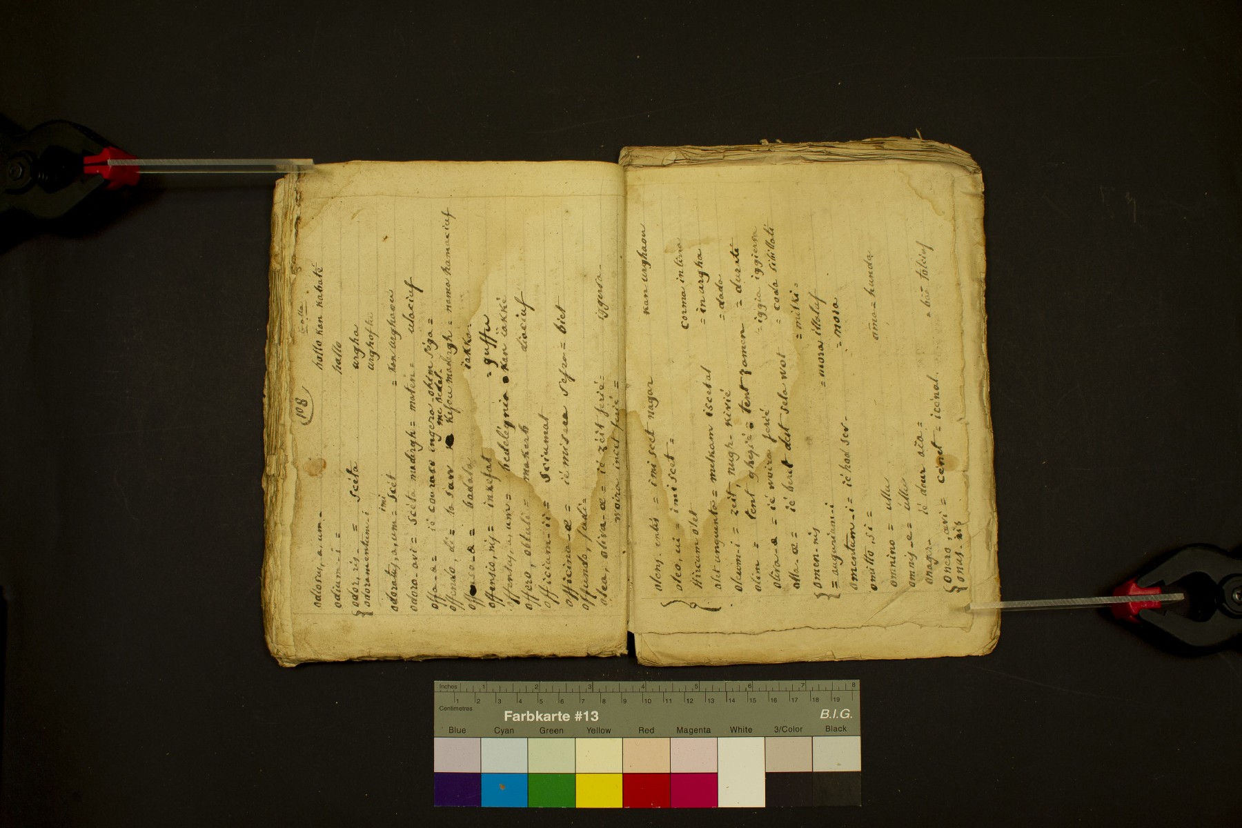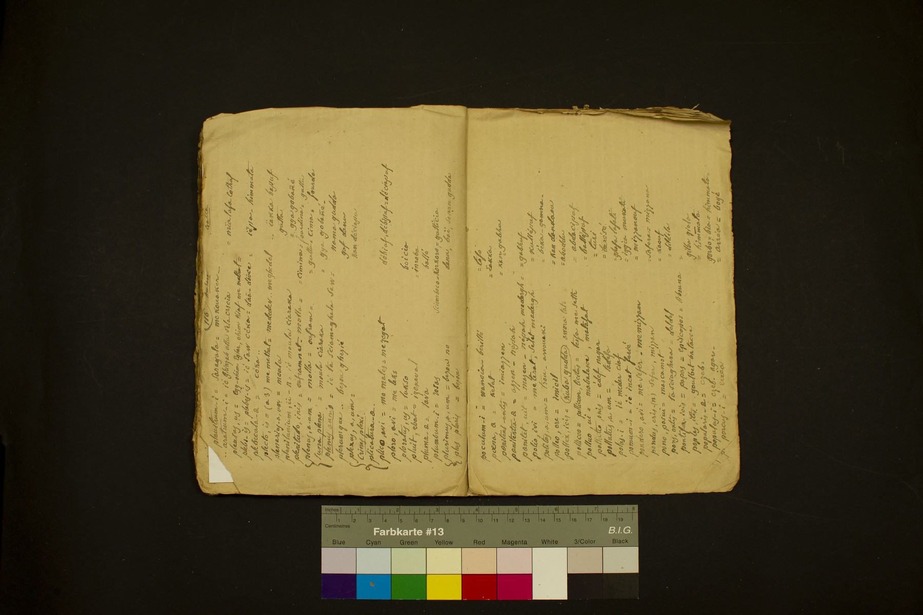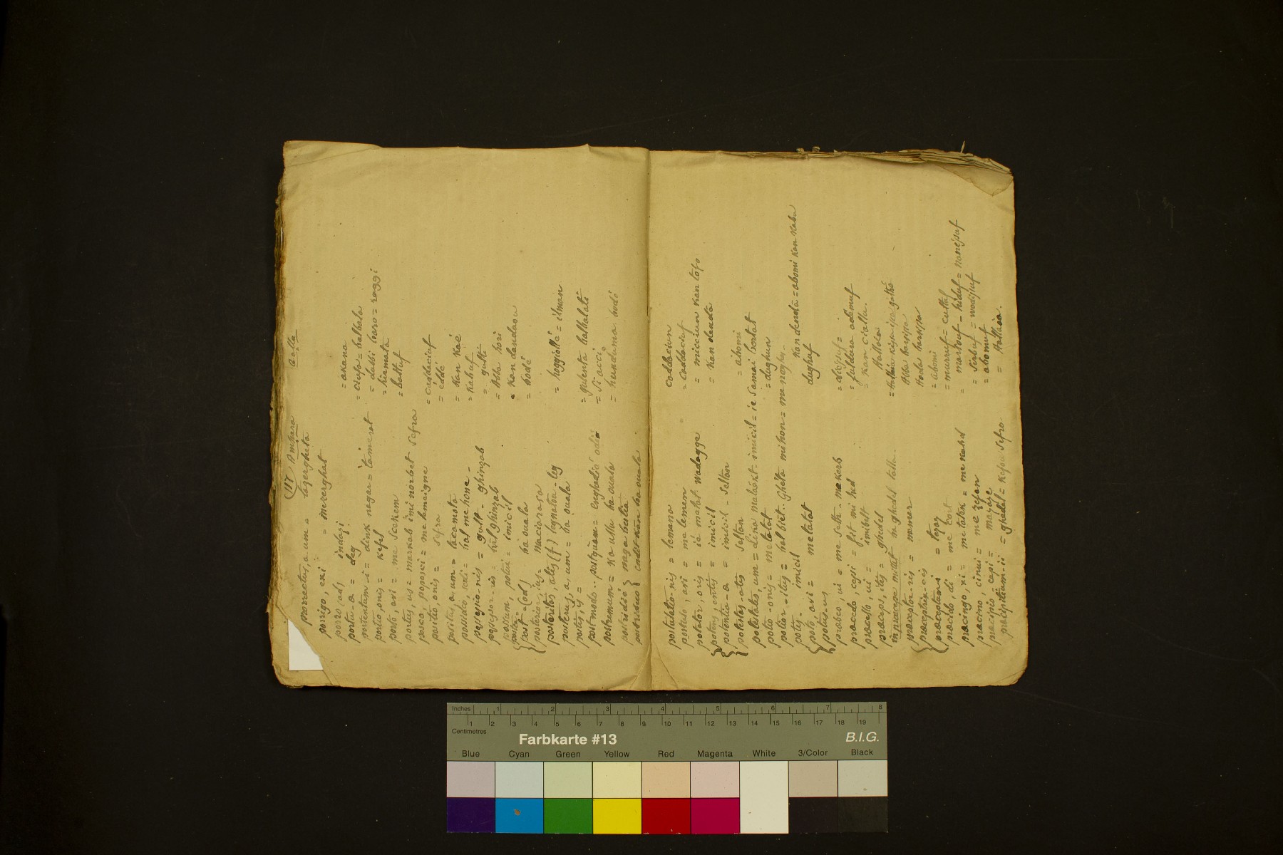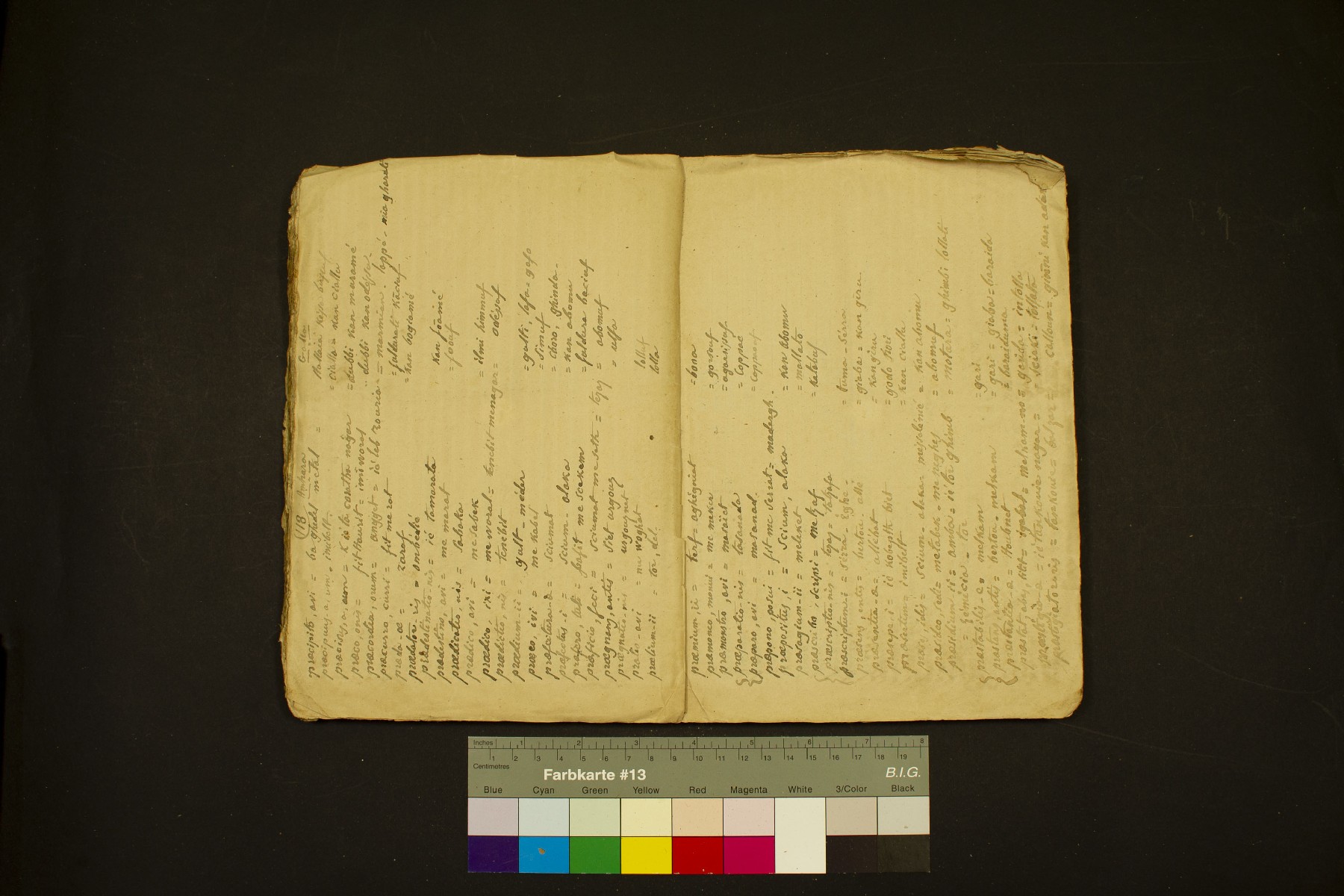The item also includes two additional loose quires, labelled 1 and 2. Quire 1 is a medium-size paper bifolium. Ff. 1–2 contain a wordlist in an unidentified Ethiopian language written in black ink in Latin script, in all likelihood by Léon des Avanchers. Each entry is accompanied by the respective meaning in Italian. Ff. 3–4 are blank.
