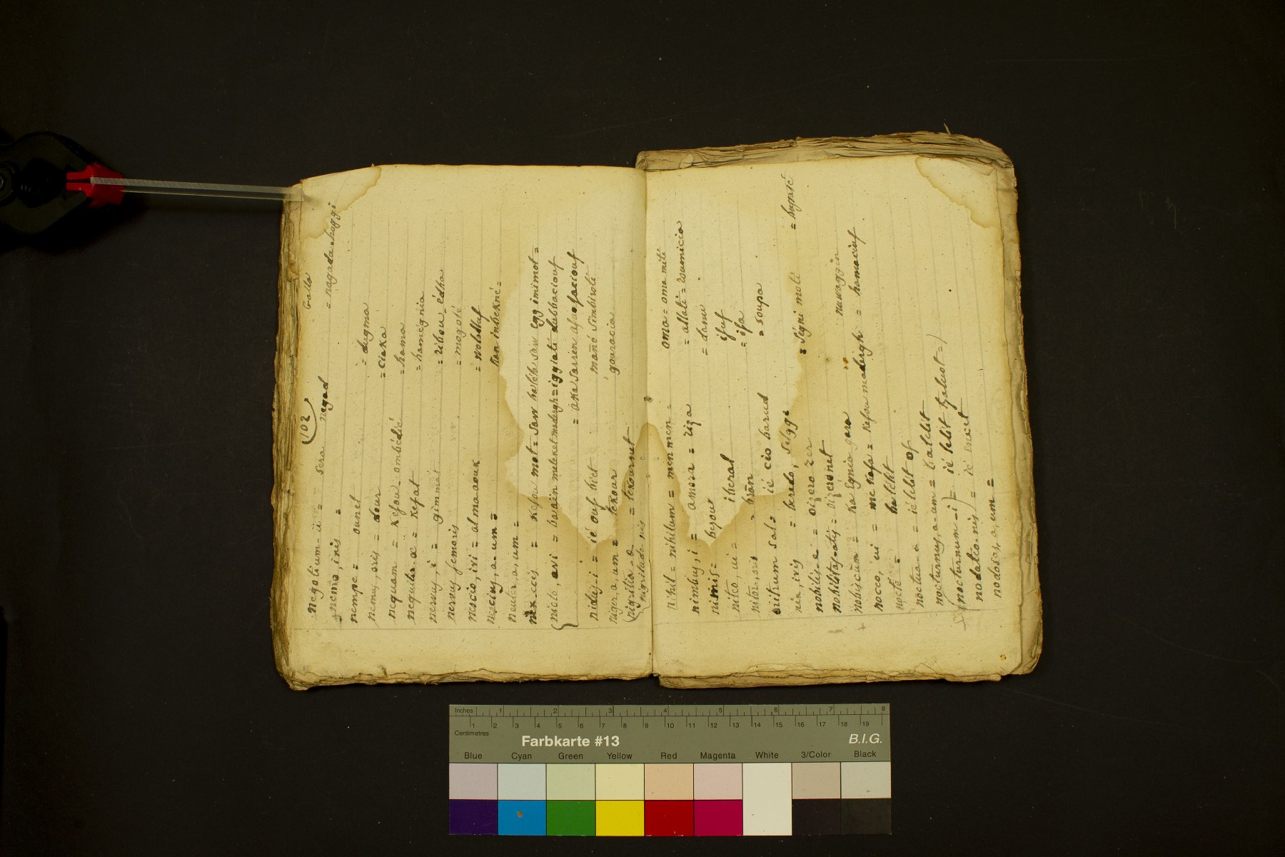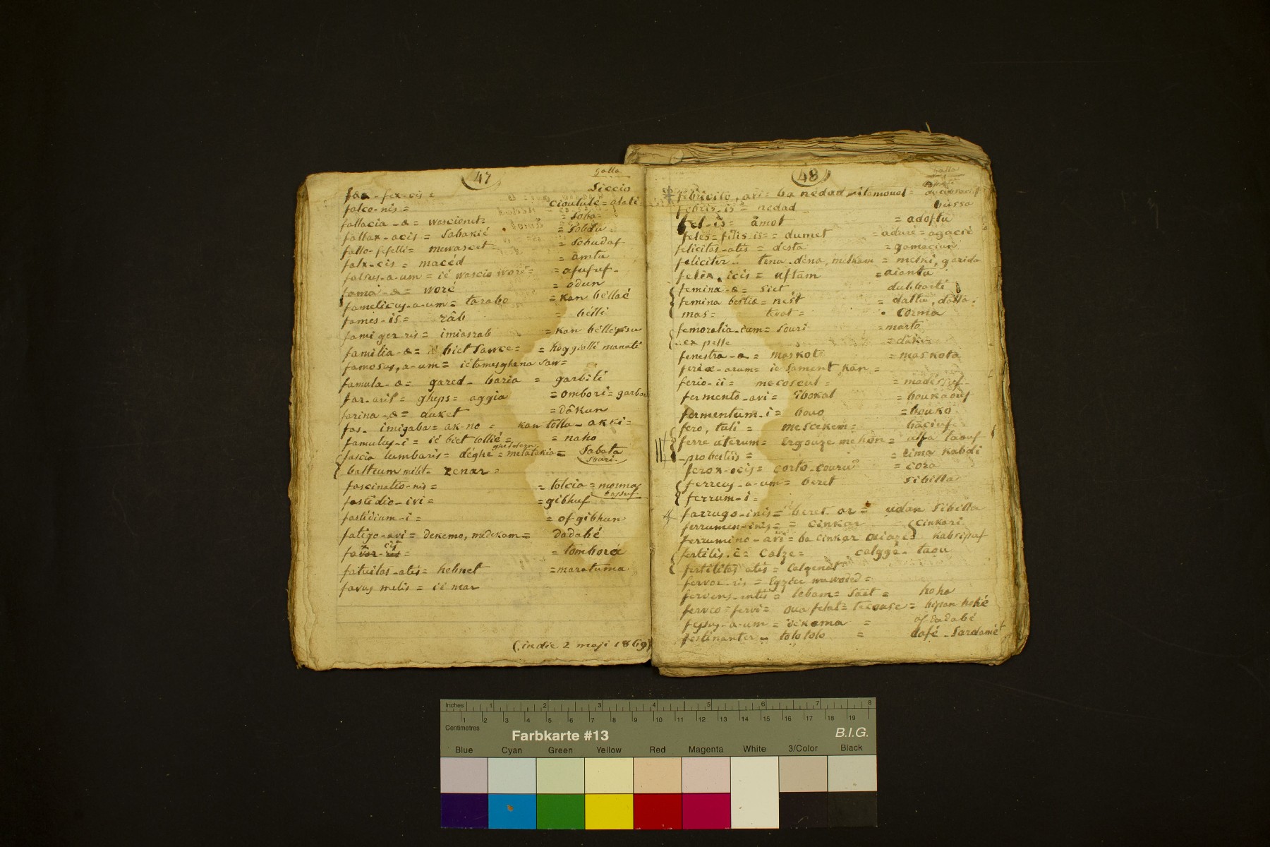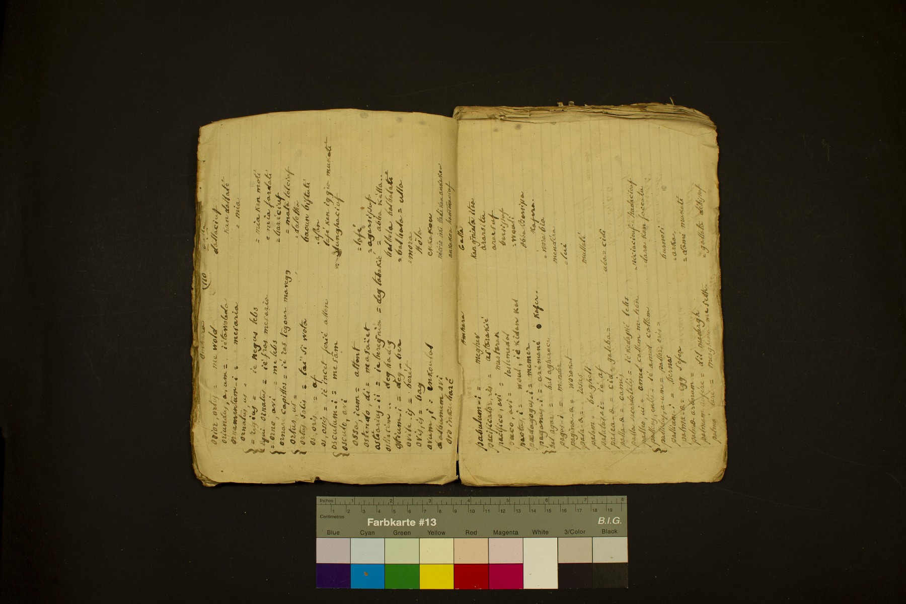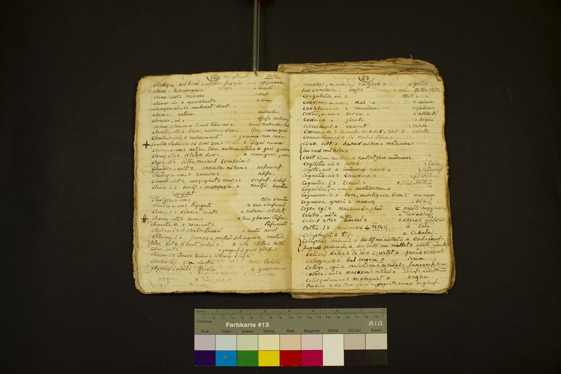 The manuscript was compiled by Father Léon des Avanchers in 1865. Léon des Avanchers was involved in the SGI expedition (also known as the Antinori Expedition, 1876–1882) for his knowledge of the region. Des Avanchers was imprisoned by Queen Genne Gummiti, together with the engineer and geologist Giovanni Chiarini and Antonio Cecchi, navy captain. Only Cecchi survived. Des Avanchers died in captivity on 2 August 1879 in Geeraa (in Käfa), possibly poisoned (Cecchi A., 1886, Da Zeila alle frontiere del Caffa: Viaggi di Antonio Cecchi, II, 415–30). On the verge of death Léon des Avanchers donated his books to Antonio Cecchi. Cecchi was finally freed in August 1880 through the intercession of Nǝgus Täklä Haymanot and returned to Italy in January 1882. It is possible that Des Avanchers’ materials reached the Società Geografica Italiana with the return of the expedition survivors in 1882. The third volume of Cecchi’s work Da Zeila alle frontiere del Caffa: Viaggi di Antonio Cecchi, vol. III (1887) contains linguistic notes by Léon des Avanchers and Chiarini, taken from these manuscripts and edited by Ettore Viterbo |
