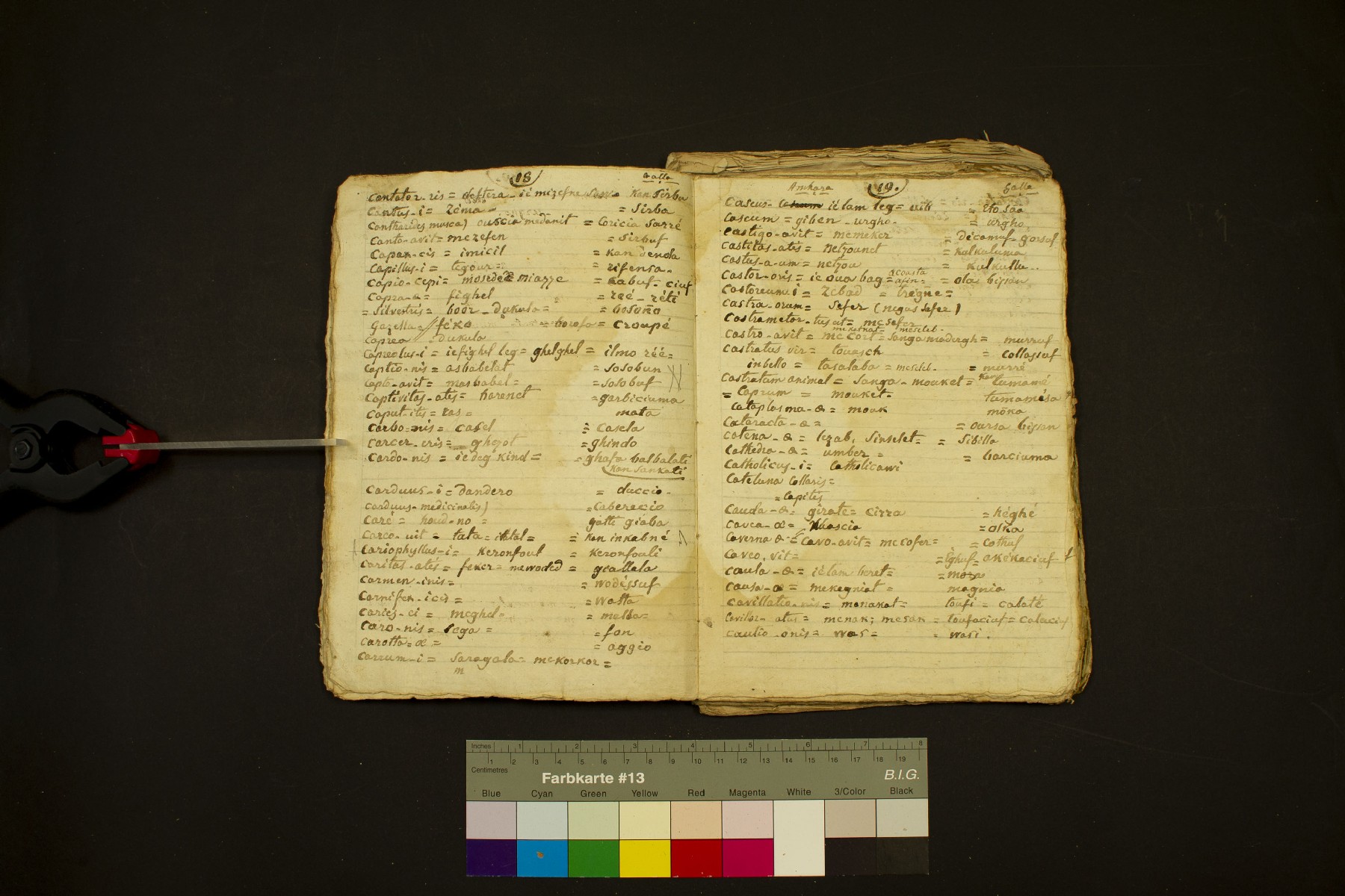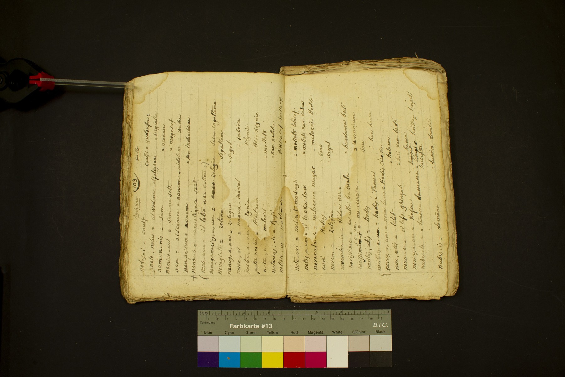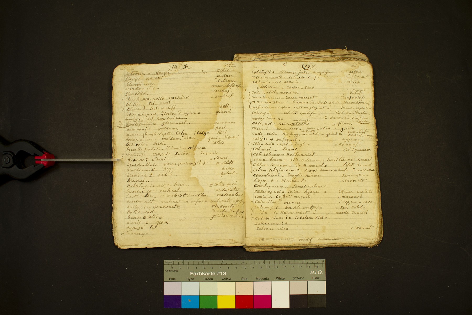 The manuscript was compiled by Father Léon des Avanchers in 1865. Léon des Avanchers was involved in the SGI expedition (also known as the Antinori Expedition, 1876–1882) for his knowledge of the region. Des Avanchers was imprisoned by Queen Genne Gummiti, together with the engineer and geologist Giovanni Chiarini and Antonio Cecchi, navy captain. Only Cecchi survived. Des Avanchers died in captivity on 2 August 1879 in Geeraa (in Käfa), possibly poisoned (Cecchi A., 1886, Da Zeila alle frontiere del Caffa: Viaggi di Antonio Cecchi, II, 415–30). On the verge of death Léon des Avanchers donated his books to Antonio Cecchi. Cecchi was finally freed in August 1880 through the intercession of Nǝgus Täklä Haymanot and returned to Italy in January 1882. It is possible that Des Avanchers’ materials reached the Società Geografica Italiana with the return of the expedition survivors in 1882. The third volume of Cecchi’s work Da Zeila alle frontiere del Caffa: Viaggi di Antonio Cecchi, vol. III (1887) contains linguistic notes by Léon des Avanchers and Chiarini, taken from these manuscripts and edited by Ettore Viterbo |