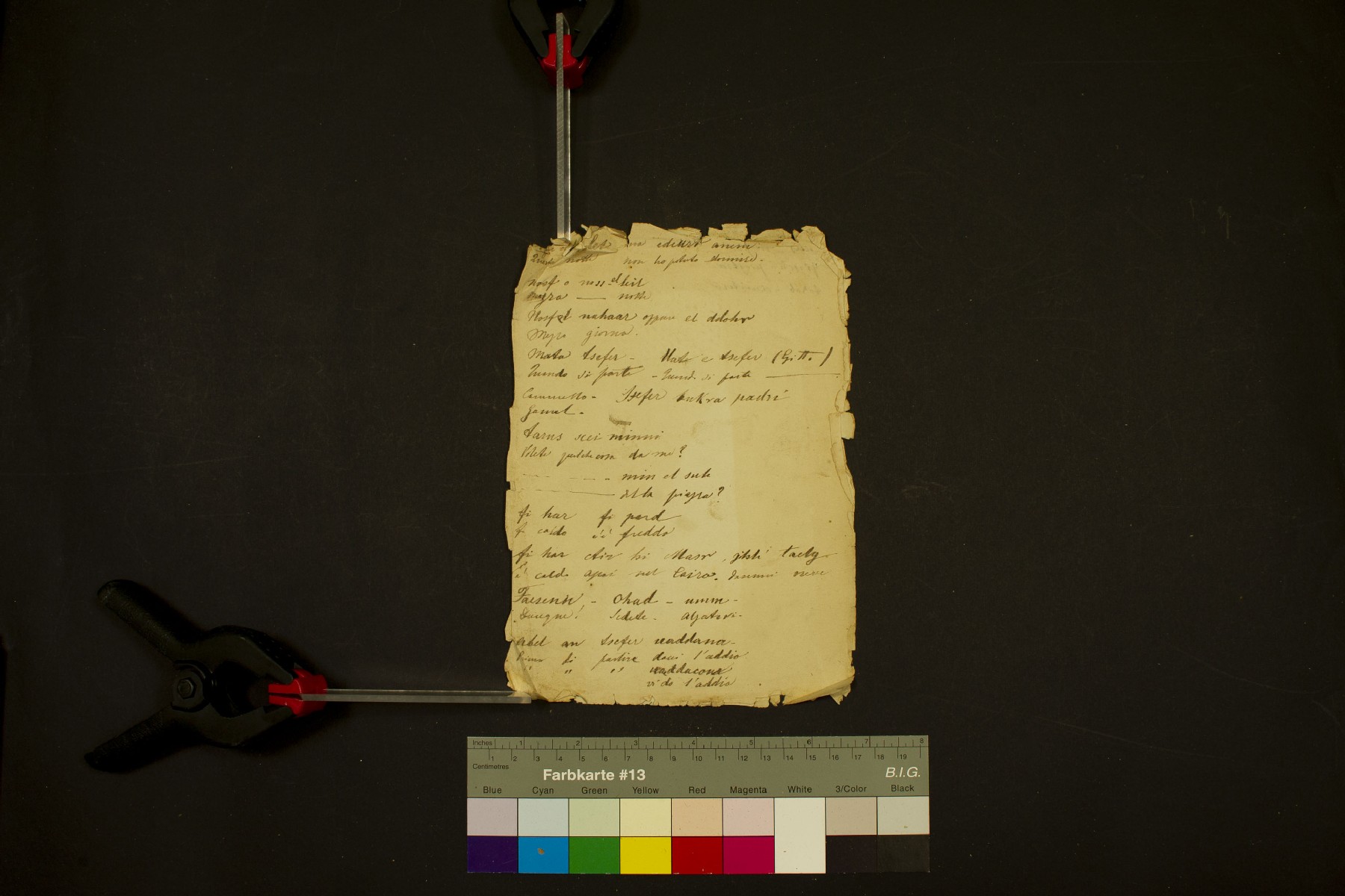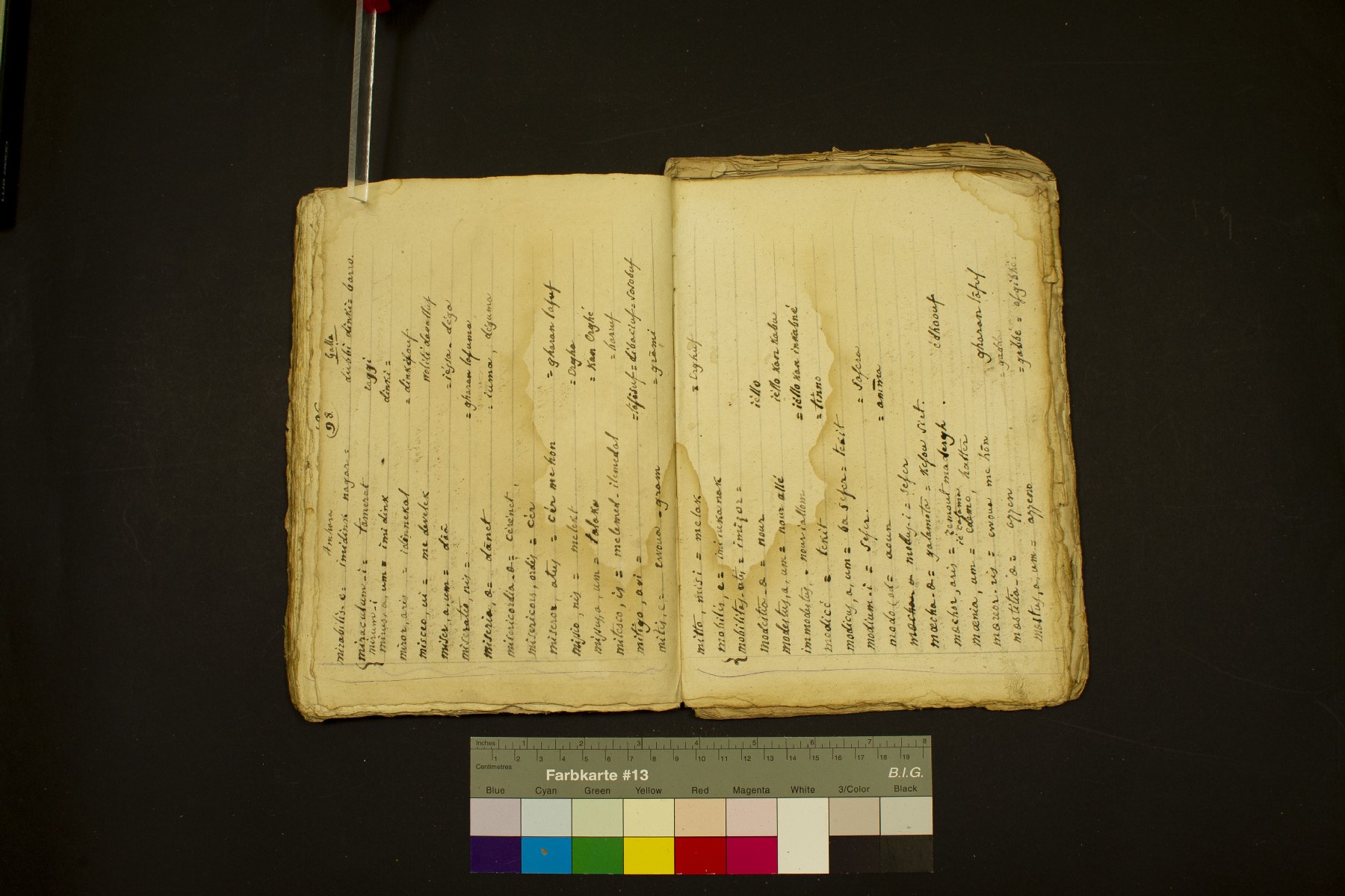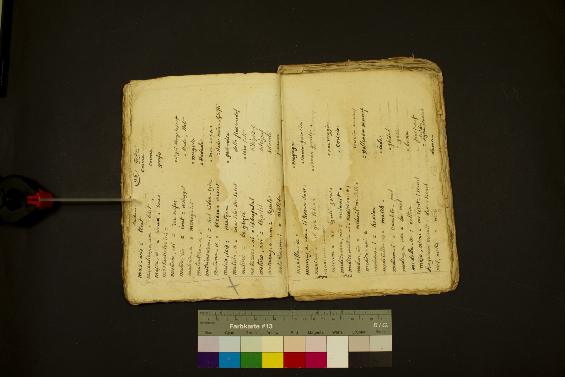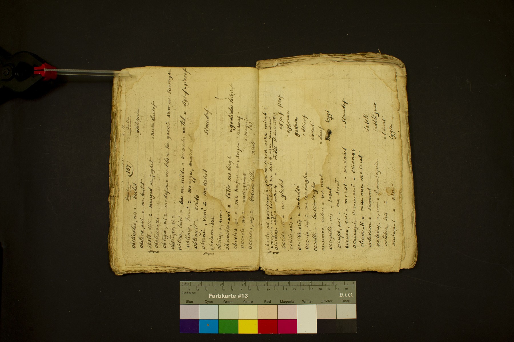 The manuscript was compiled by Father Léon des Avanchers in 1865. Léon des Avanchers was involved in the SGI expedition (also known as the Antinori Expedition, 1876–1882) for his knowledge of the region. Des Avanchers was imprisoned by Queen Genne Gummiti, together with the engineer and geologist Giovanni Chiarini and Antonio Cecchi, navy captain. Only Cecchi survived. Des Avanchers died in captivity on 2 August 1879 in Geeraa (in Käfa), possibly poisoned (Cecchi A., 1886, Da Zeila alle frontiere del Caffa: Viaggi di Antonio Cecchi, II, 415–30). On the verge of death Léon des Avanchers donated his books to Antonio Cecchi. Cecchi was finally freed in August 1880 through the intercession of Nǝgus Täklä Haymanot and returned to Italy in January 1882. It is possible that Des Avanchers’ materials reached the Società Geografica Italiana with the return of the expedition survivors in 1882. The third volume of Cecchi’s work Da Zeila alle frontiere del Caffa: Viaggi di Antonio Cecchi, vol. III (1887) contains linguistic notes by Léon des Avanchers and Chiarini, taken from these manuscripts and edited by Ettore Viterbo |