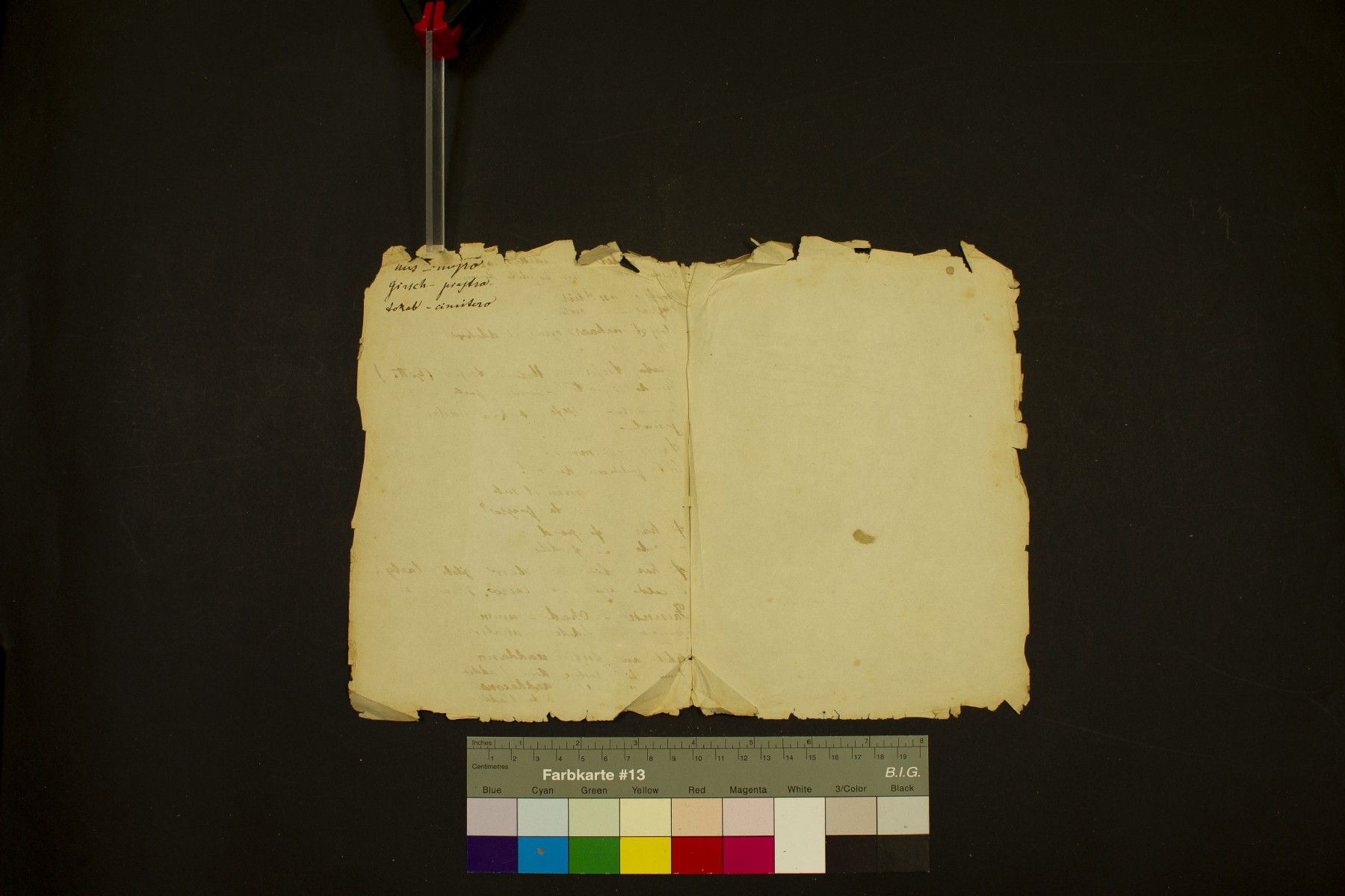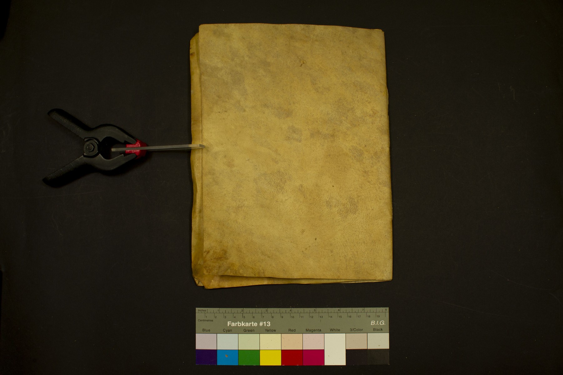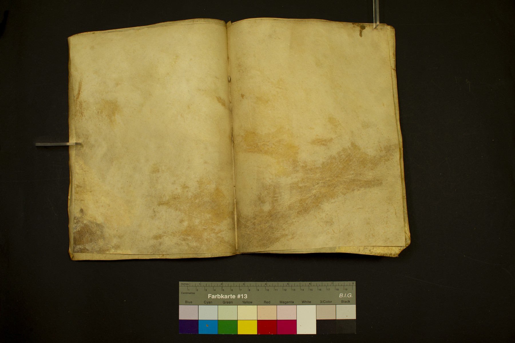 Discrete. The textblock is heavily stiffened but has no mechanical damage. There are coherent and inconsistent superficial deposits. |