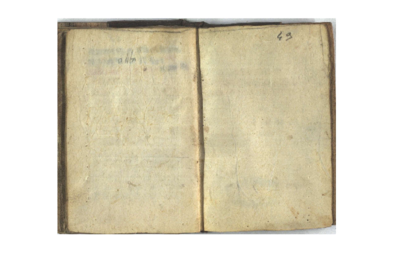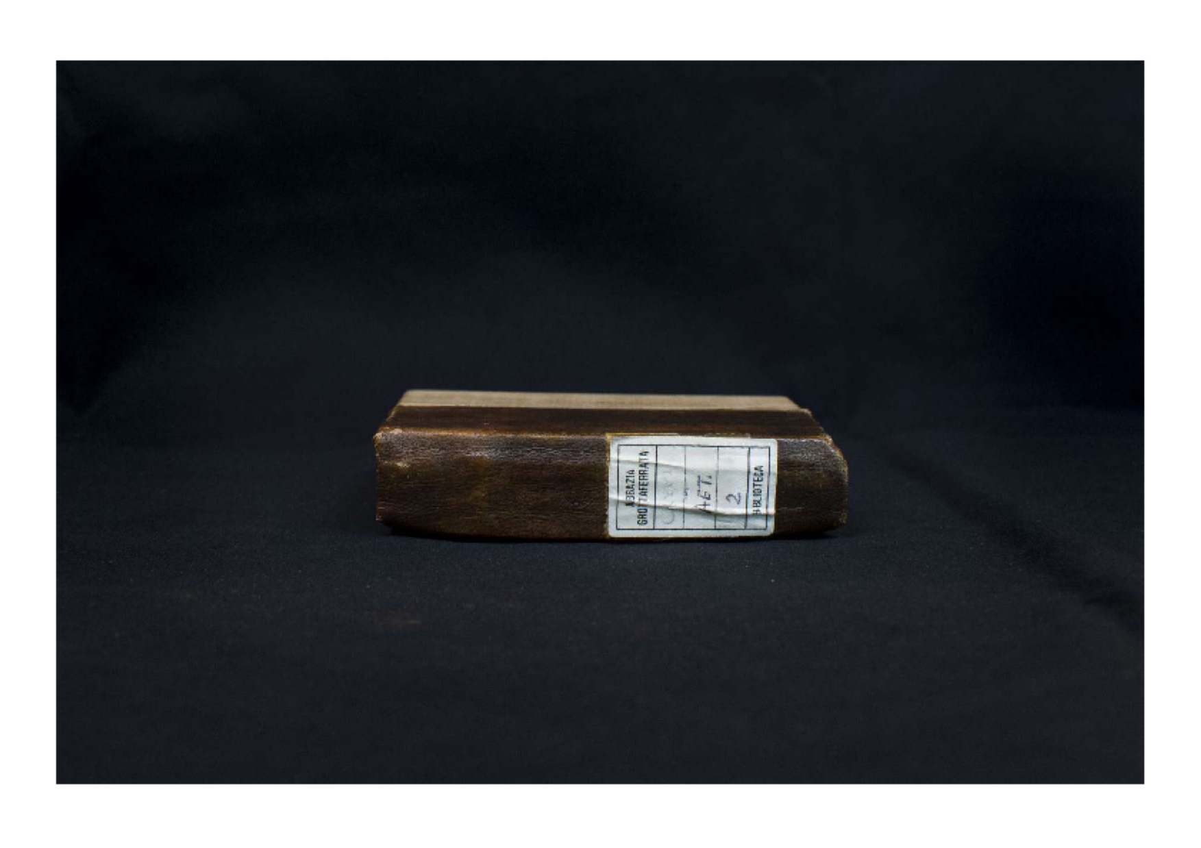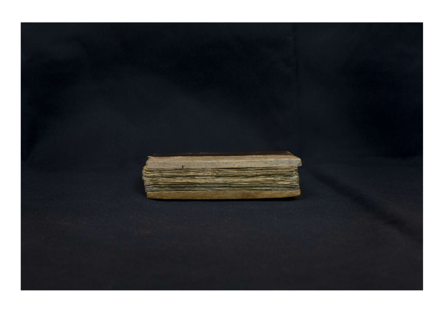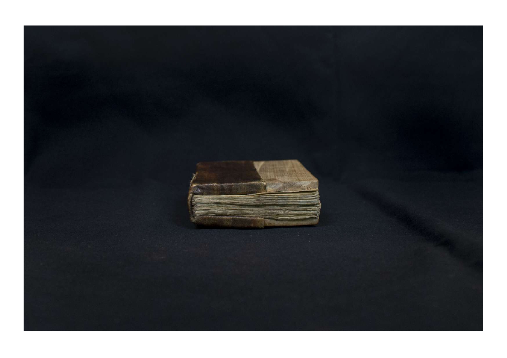 Two wooden boards covered with brown leather. Two sewing stations. |