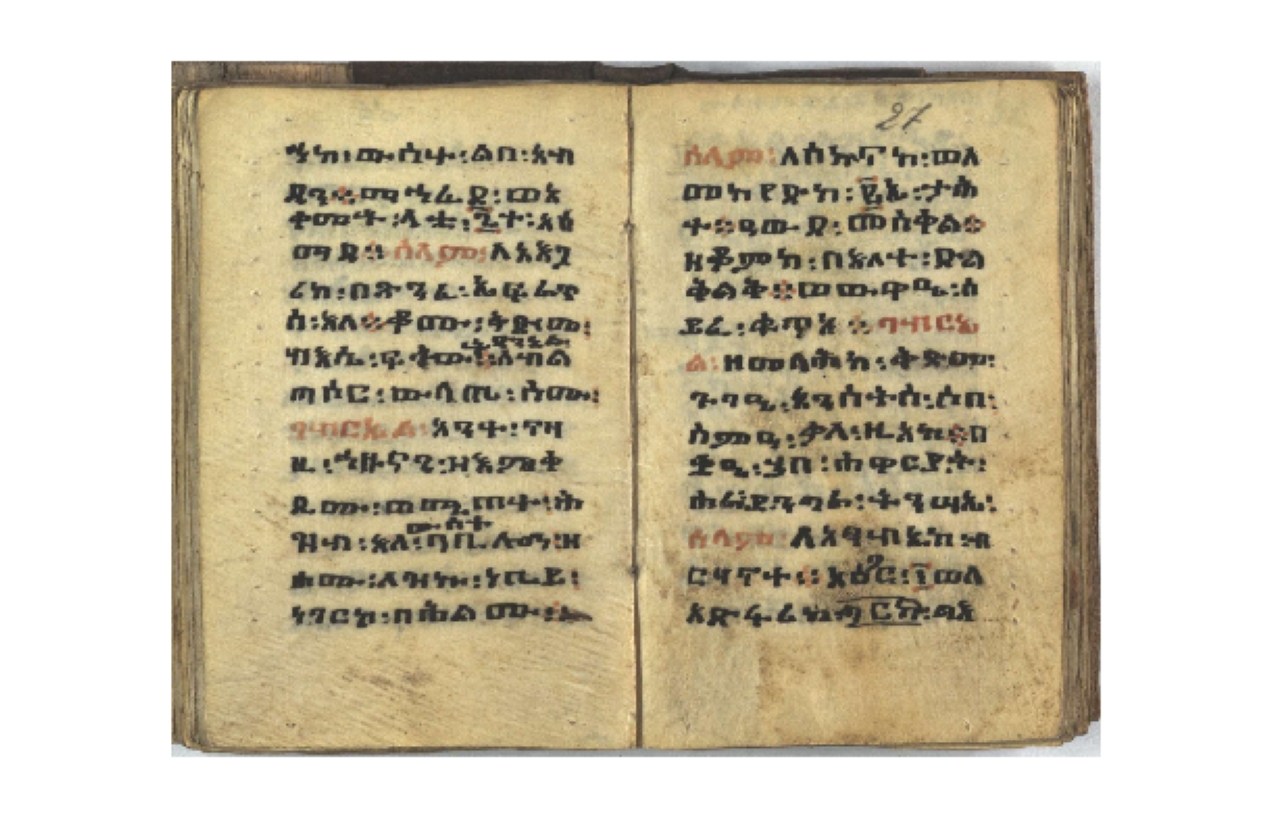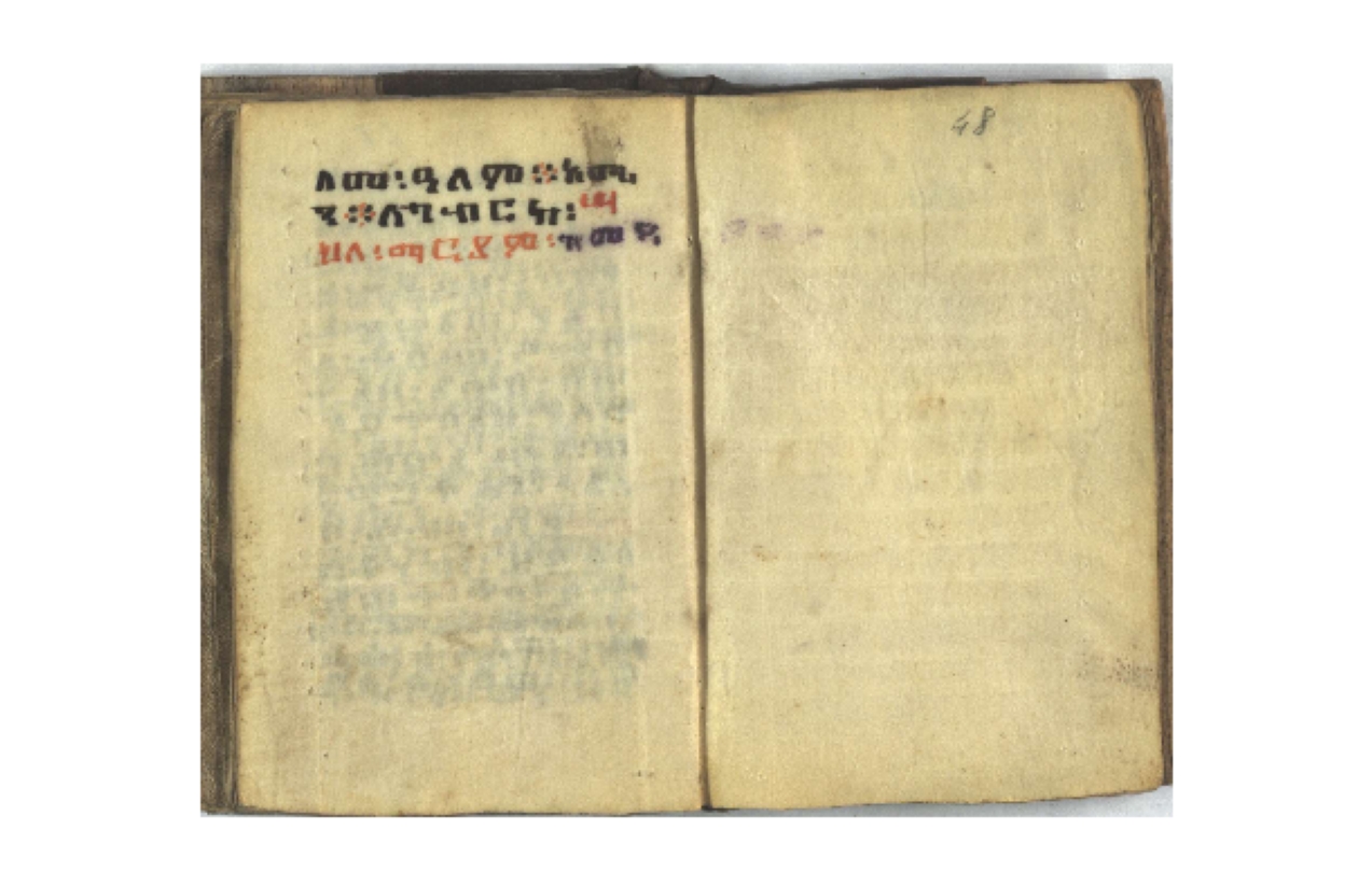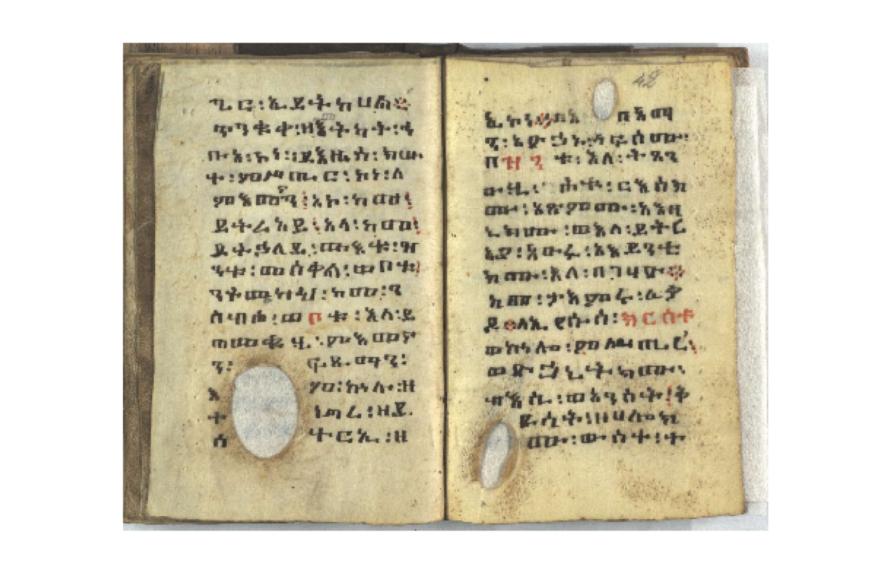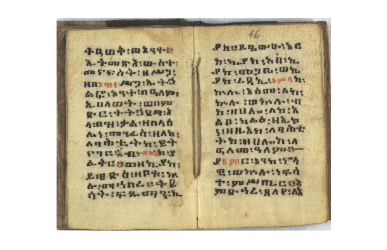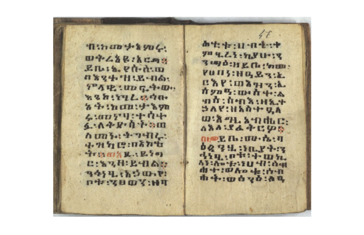Ff. 1r–18v: Mälkǝʾa Mikaʾel (Mälkǝʾ-hymn to St Michael, Chaine nr. 119) Incipit: ሰላም፡ ለዝክረ፡ ስምከ፡ ምስለ፡ ስመ፡ ልዑል፡ ዘተሳተፈ፡ ወልደ፡ ያሬድ፡ ሄኖክ፡ በከመ፡ ጸሐፈ፡ ሶበ፡ እጼውዕ፡ ስመከ፡ ከሲትየ፡ አፈ፡ ረዳኤ፡ ምንዱባን፡ ሚካኤል፡ በከመ፡ ታለምድ፡ ዘልፈ፡ ለረዲኦትየ፡ ነዓ፡ Ff. 19r–28v: Mälkǝʾa Gäbrǝʾel (Mälkǝʾ-hymn to St Gabriel, Chaine nr. 246) Incipit: ሰላመ፡ ገብርኤል፡ መልአክ፡ በላዕለ፡ ማርያም፡ ዘአእረፈ፡ ከመ፡ እዜኑ፡ ሕዳጠ፡ ወአኮ፡ ትሩፈ፡ እግዚአብሔር፡ ሀበኒ። ሲሳየ፡ ልቡና፡ መጽሐፈ፡ ወአፉየ፡ ሙሴ፡ F. 29r–35r: Mälkǝʾa Giyorgis (Mälkǝʾ-hymn to St George, Chaine nr. 208). Incipit: ሰላም፡ ለፅንሰትከ፡ ወለልደትከ፡ ቡሩክ፡ በላዕለ፡ ድንግል፡ ቅድስት፡ ወመስቀሉ፡ [ለ]ክርስቶስ፡ አምላክ፡ ገባሬ፡ መንክራት፡ ጊዮርጊስ፡ በዓውደ፡ ዱድያኖስ፡ ምዑክ፡ አጽራርየ፡ እለ፡ ተንሥኡ፡ በነገረ። Ff. 35v–47v: Tǝmhǝrtä ḫǝbuʾat (“The Doctrine of Mysteries”) Incipit: በእንተ፡ ትኅምረተ፡ (sic) ኅቡአት፡ ቅድመ፡ ዘትትነገር፡ እምጵርስ፡ ፎራ፡ ለምእመናን፡ ኅቡአት፡ ትእምርተ፡ (sic) ኅቡአትሰ፡ ከመዝ፡ ንግር፡ ዘቅድመ፡ ሀሎ፡ ወይሄሉ፡ ዘመጽአ፡ ዘሐመ፡ ወሞተ፡ ወተቀብረ። |