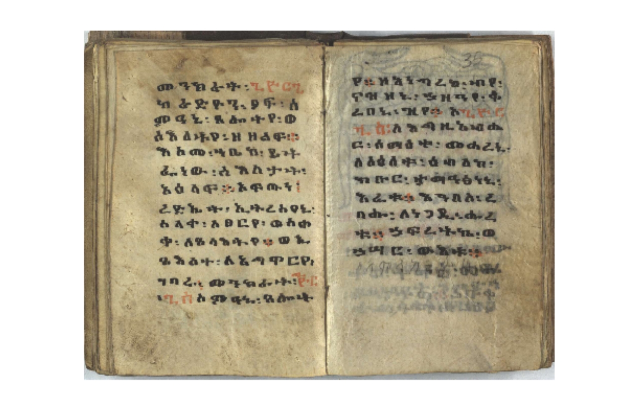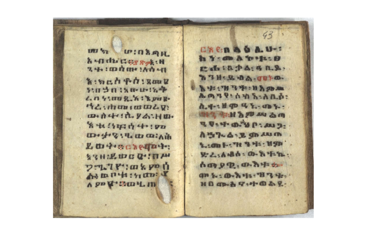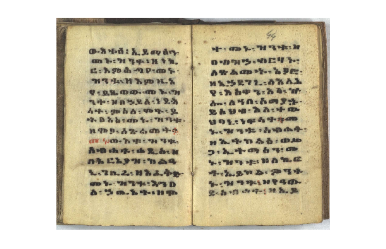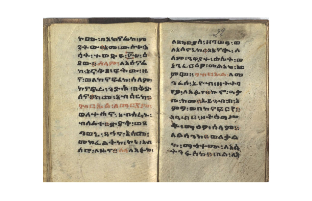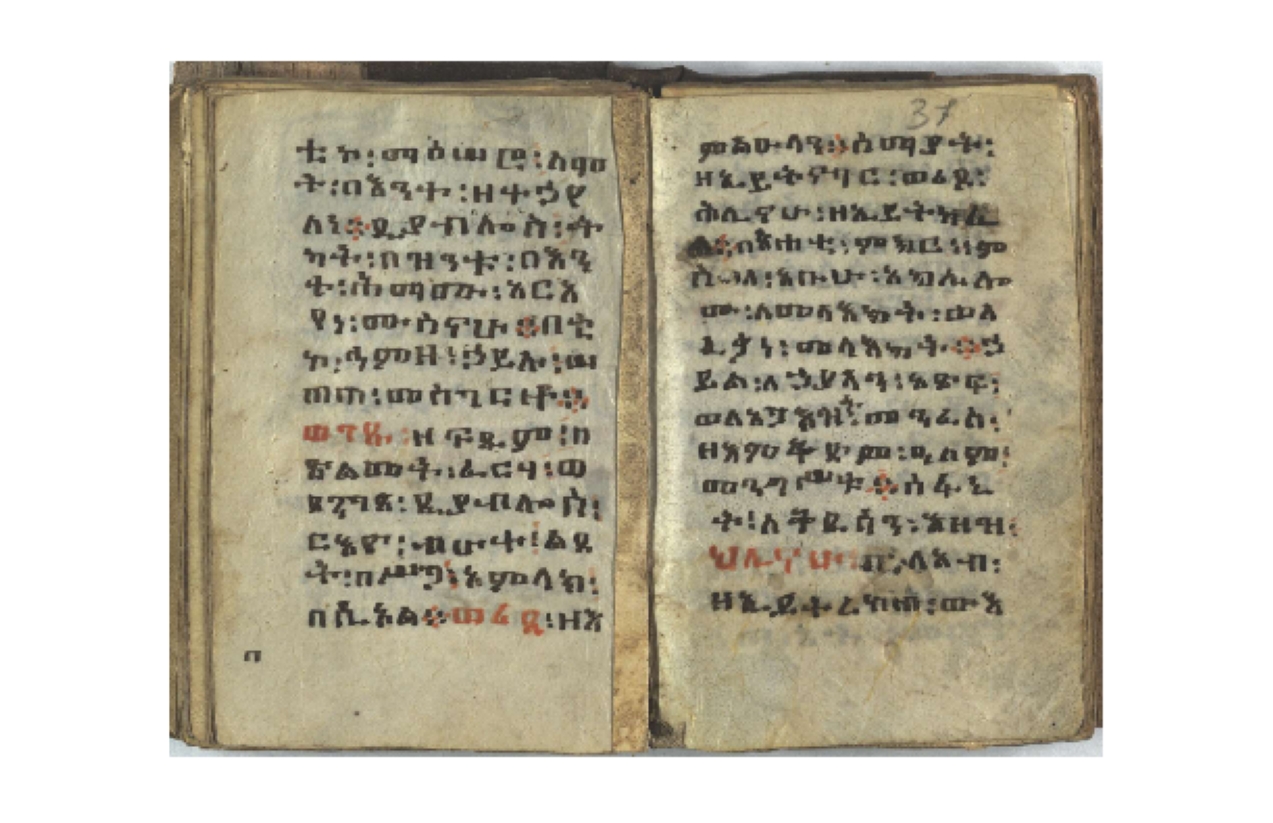 Ff. 1r–18v: Mälkǝʾa Mikaʾel (Mälkǝʾ-hymn to St Michael, Chaine nr. 119) Incipit: ሰላም፡ ለዝክረ፡ ስምከ፡ ምስለ፡ ስመ፡ ልዑል፡ ዘተሳተፈ፡ ወልደ፡ ያሬድ፡ ሄኖክ፡ በከመ፡ ጸሐፈ፡ ሶበ፡ እጼውዕ፡ ስመከ፡ ከሲትየ፡ አፈ፡ ረዳኤ፡ ምንዱባን፡ ሚካኤል፡ በከመ፡ ታለምድ፡ ዘልፈ፡ ለረዲኦትየ፡ ነዓ፡ Ff. 19r–28v: Mälkǝʾa Gäbrǝʾel (Mälkǝʾ-hymn to St Gabriel, Chaine nr. 246) Incipit: ሰላመ፡ ገብርኤል፡ መልአክ፡ በላዕለ፡ ማርያም፡ ዘአእረፈ፡ ከመ፡ እዜኑ፡ ሕዳጠ፡ ወአኮ፡ ትሩፈ፡ እግዚአብሔር፡ ሀበኒ። ሲሳየ፡ ልቡና፡ መጽሐፈ፡ ወአፉየ፡ ሙሴ፡ F. 29r–35r: Mälkǝʾa Giyorgis (Mälkǝʾ-hymn to St George, Chaine nr. 208). Incipit: ሰላም፡ ለፅንሰትከ፡ ወለልደትከ፡ ቡሩክ፡ በላዕለ፡ ድንግል፡ ቅድስት፡ ወመስቀሉ፡ [ለ]ክርስቶስ፡ አምላክ፡ ገባሬ፡ መንክራት፡ ጊዮርጊስ፡ በዓውደ፡ ዱድያኖስ፡ ምዑክ፡ አጽራርየ፡ እለ፡ ተንሥኡ፡ በነገረ። Ff. 35v–47v: Tǝmhǝrtä ḫǝbuʾat (“The Doctrine of Mysteries”) Incipit: በእንተ፡ ትኅምረተ፡ (sic) ኅቡአት፡ ቅድመ፡ ዘትትነገር፡ እምጵርስ፡ ፎራ፡ ለምእመናን፡ ኅቡአት፡ ትእምርተ፡ (sic) ኅቡአትሰ፡ ከመዝ፡ ንግር፡ ዘቅድመ፡ ሀሎ፡ ወይሄሉ፡ ዘመጽአ፡ ዘሐመ፡ ወሞተ፡ ወተቀብረ። |
