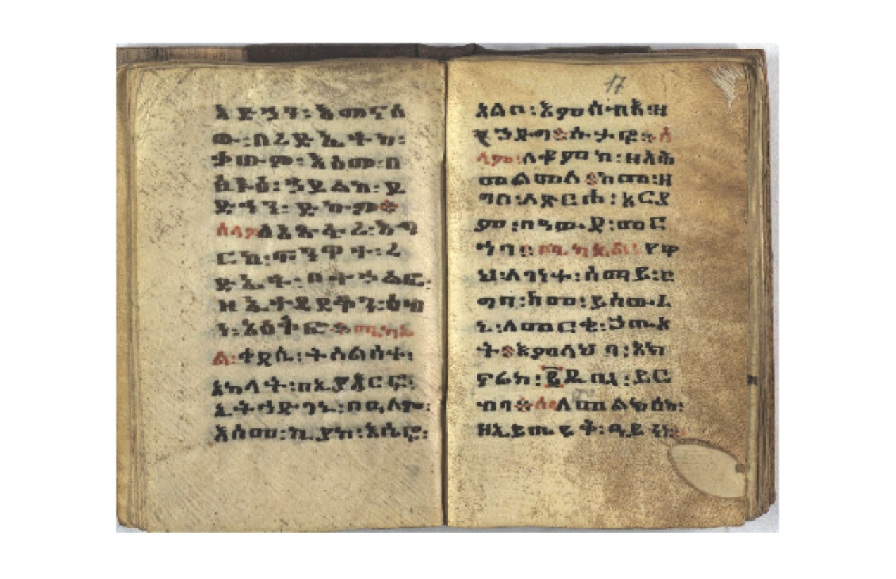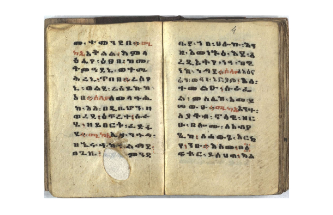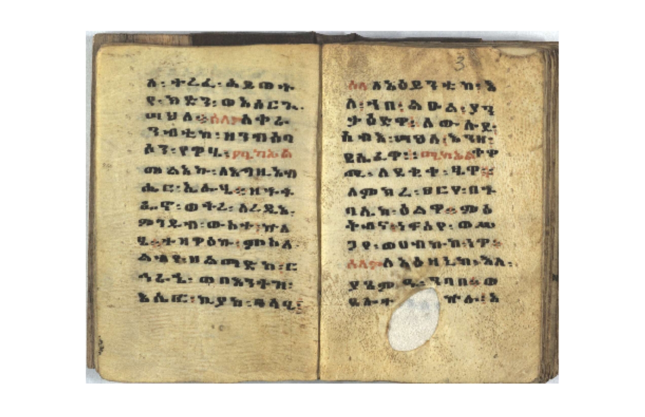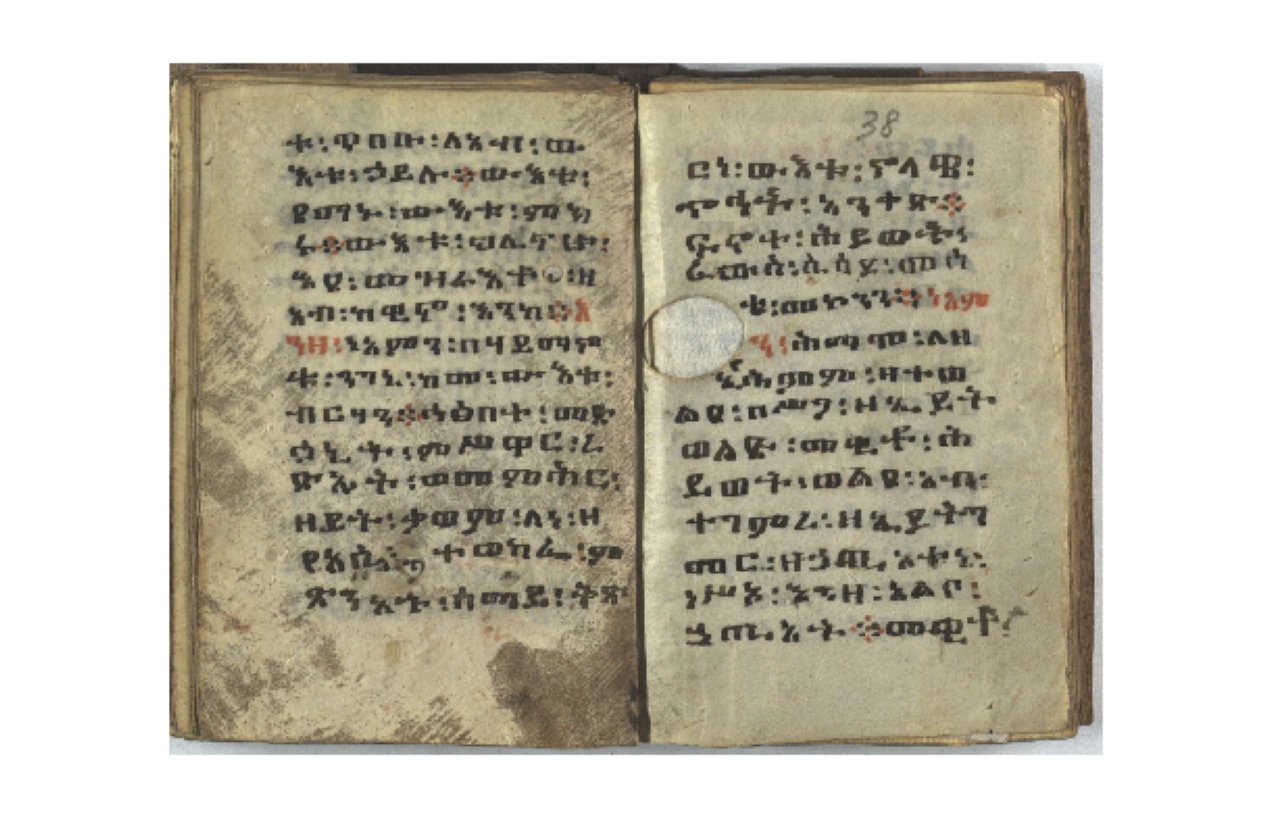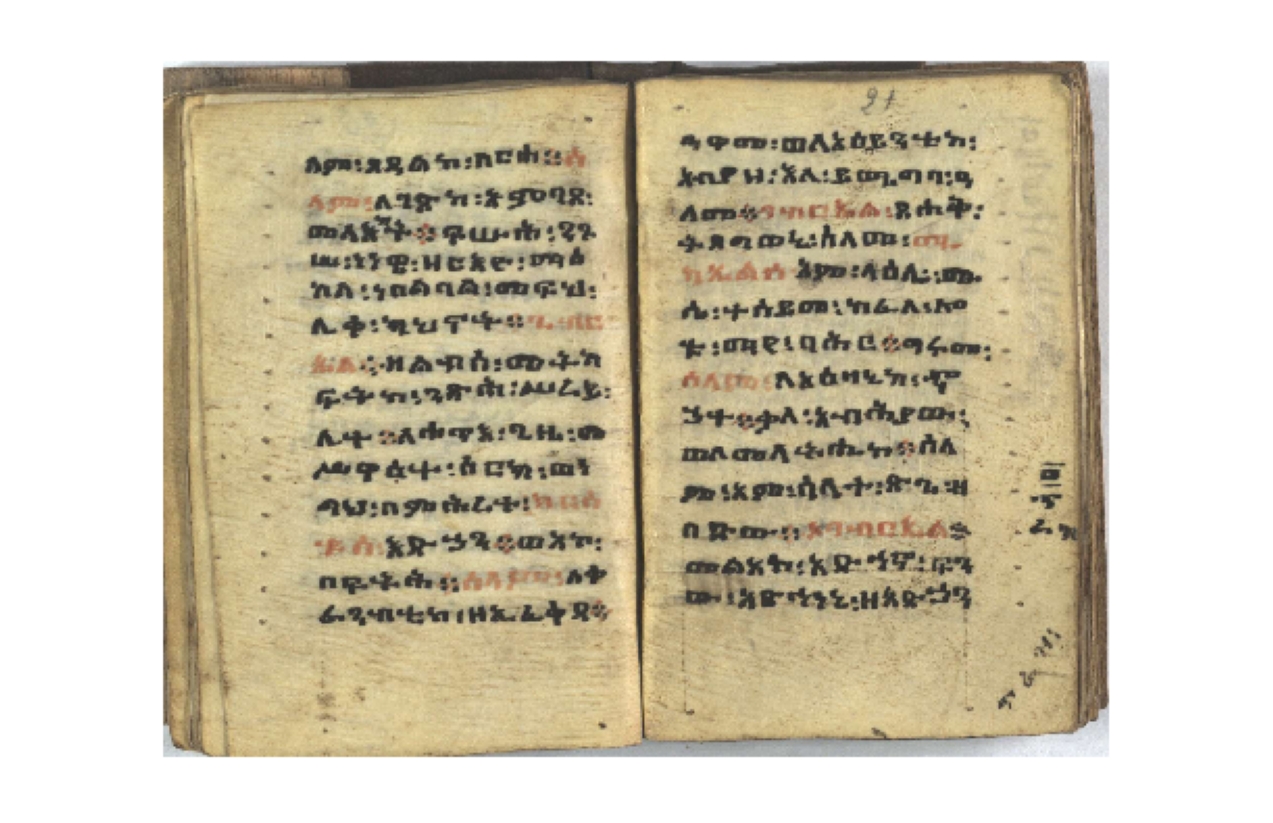 Ff. 1r–18v: Mälkǝʾa Mikaʾel (Mälkǝʾ-hymn to St Michael, Chaine nr. 119) Incipit: ሰላም፡ ለዝክረ፡ ስምከ፡ ምስለ፡ ስመ፡ ልዑል፡ ዘተሳተፈ፡ ወልደ፡ ያሬድ፡ ሄኖክ፡ በከመ፡ ጸሐፈ፡ ሶበ፡ እጼውዕ፡ ስመከ፡ ከሲትየ፡ አፈ፡ ረዳኤ፡ ምንዱባን፡ ሚካኤል፡ በከመ፡ ታለምድ፡ ዘልፈ፡ ለረዲኦትየ፡ ነዓ፡ Ff. 19r–28v: Mälkǝʾa Gäbrǝʾel (Mälkǝʾ-hymn to St Gabriel, Chaine nr. 246) Incipit: ሰላመ፡ ገብርኤል፡ መልአክ፡ በላዕለ፡ ማርያም፡ ዘአእረፈ፡ ከመ፡ እዜኑ፡ ሕዳጠ፡ ወአኮ፡ ትሩፈ፡ እግዚአብሔር፡ ሀበኒ። ሲሳየ፡ ልቡና፡ መጽሐፈ፡ ወአፉየ፡ ሙሴ፡ F. 29r–35r: Mälkǝʾa Giyorgis (Mälkǝʾ-hymn to St George, Chaine nr. 208). Incipit: ሰላም፡ ለፅንሰትከ፡ ወለልደትከ፡ ቡሩክ፡ በላዕለ፡ ድንግል፡ ቅድስት፡ ወመስቀሉ፡ [ለ]ክርስቶስ፡ አምላክ፡ ገባሬ፡ መንክራት፡ ጊዮርጊስ፡ በዓውደ፡ ዱድያኖስ፡ ምዑክ፡ አጽራርየ፡ እለ፡ ተንሥኡ፡ በነገረ። Ff. 35v–47v: Tǝmhǝrtä ḫǝbuʾat (“The Doctrine of Mysteries”) Incipit: በእንተ፡ ትኅምረተ፡ (sic) ኅቡአት፡ ቅድመ፡ ዘትትነገር፡ እምጵርስ፡ ፎራ፡ ለምእመናን፡ ኅቡአት፡ ትእምርተ፡ (sic) ኅቡአትሰ፡ ከመዝ፡ ንግር፡ ዘቅድመ፡ ሀሎ፡ ወይሄሉ፡ ዘመጽአ፡ ዘሐመ፡ ወሞተ፡ ወተቀብረ። |