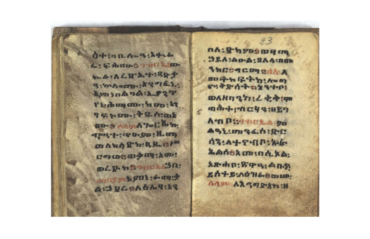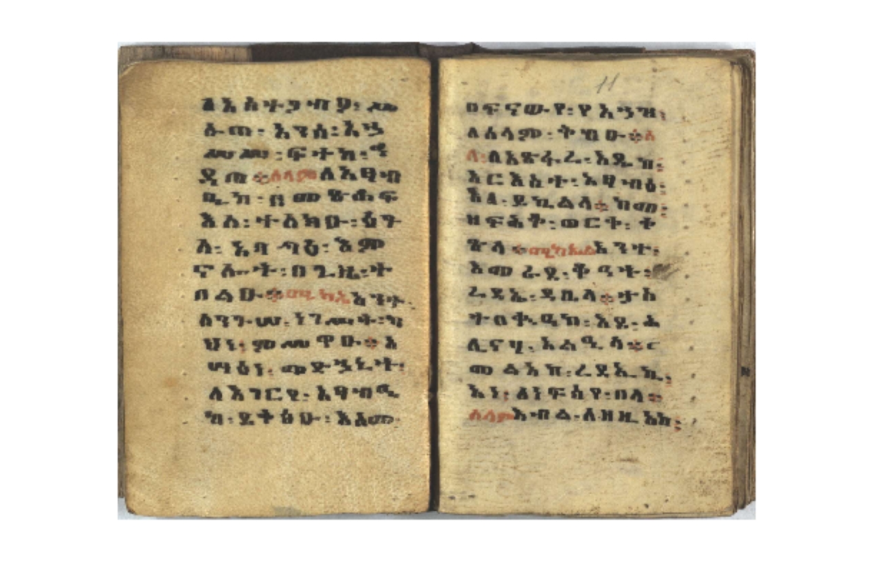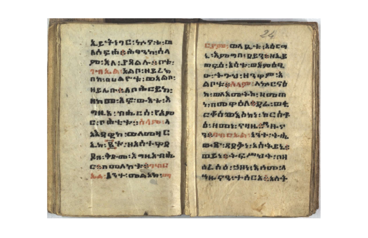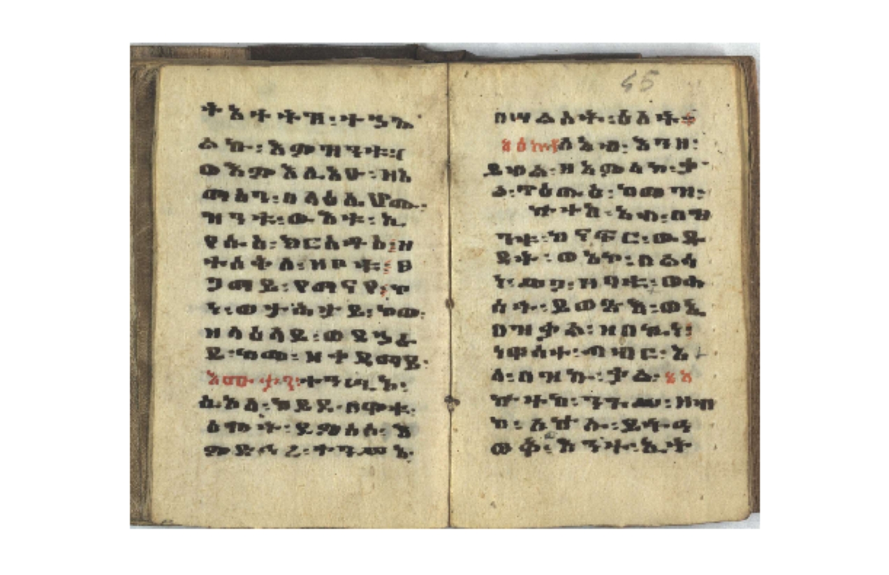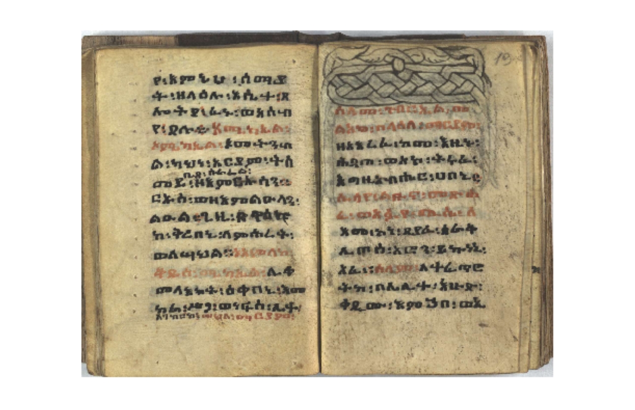 Ff. 1r–18v: Mälkǝʾa Mikaʾel (Mälkǝʾ-hymn to St Michael, Chaine nr. 119) Incipit: ሰላም፡ ለዝክረ፡ ስምከ፡ ምስለ፡ ስመ፡ ልዑል፡ ዘተሳተፈ፡ ወልደ፡ ያሬድ፡ ሄኖክ፡ በከመ፡ ጸሐፈ፡ ሶበ፡ እጼውዕ፡ ስመከ፡ ከሲትየ፡ አፈ፡ ረዳኤ፡ ምንዱባን፡ ሚካኤል፡ በከመ፡ ታለምድ፡ ዘልፈ፡ ለረዲኦትየ፡ ነዓ፡ Ff. 19r–28v: Mälkǝʾa Gäbrǝʾel (Mälkǝʾ-hymn to St Gabriel, Chaine nr. 246) Incipit: ሰላመ፡ ገብርኤል፡ መልአክ፡ በላዕለ፡ ማርያም፡ ዘአእረፈ፡ ከመ፡ እዜኑ፡ ሕዳጠ፡ ወአኮ፡ ትሩፈ፡ እግዚአብሔር፡ ሀበኒ። ሲሳየ፡ ልቡና፡ መጽሐፈ፡ ወአፉየ፡ ሙሴ፡ F. 29r–35r: Mälkǝʾa Giyorgis (Mälkǝʾ-hymn to St George, Chaine nr. 208). Incipit: ሰላም፡ ለፅንሰትከ፡ ወለልደትከ፡ ቡሩክ፡ በላዕለ፡ ድንግል፡ ቅድስት፡ ወመስቀሉ፡ [ለ]ክርስቶስ፡ አምላክ፡ ገባሬ፡ መንክራት፡ ጊዮርጊስ፡ በዓውደ፡ ዱድያኖስ፡ ምዑክ፡ አጽራርየ፡ እለ፡ ተንሥኡ፡ በነገረ። Ff. 35v–47v: Tǝmhǝrtä ḫǝbuʾat (“The Doctrine of Mysteries”) Incipit: በእንተ፡ ትኅምረተ፡ (sic) ኅቡአት፡ ቅድመ፡ ዘትትነገር፡ እምጵርስ፡ ፎራ፡ ለምእመናን፡ ኅቡአት፡ ትእምርተ፡ (sic) ኅቡአትሰ፡ ከመዝ፡ ንግር፡ ዘቅድመ፡ ሀሎ፡ ወይሄሉ፡ ዘመጽአ፡ ዘሐመ፡ ወሞተ፡ ወተቀብረ። |