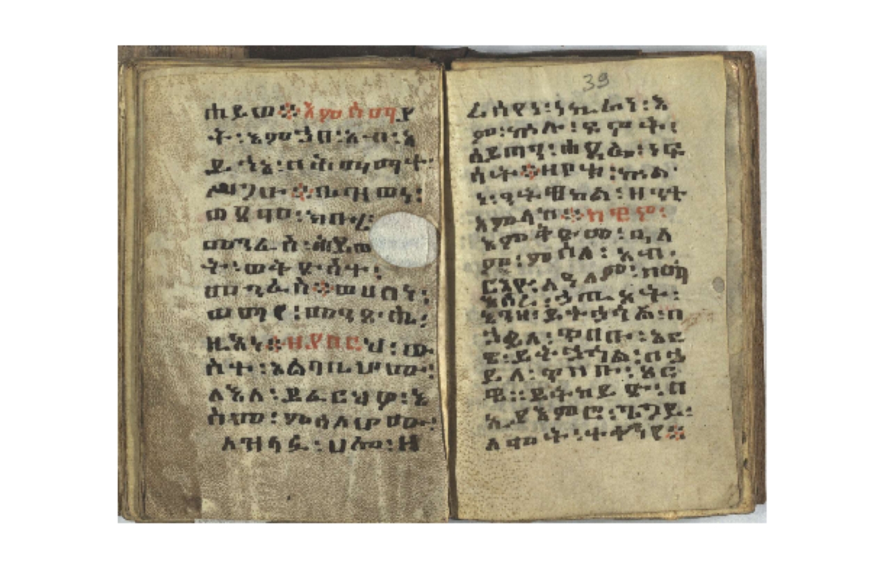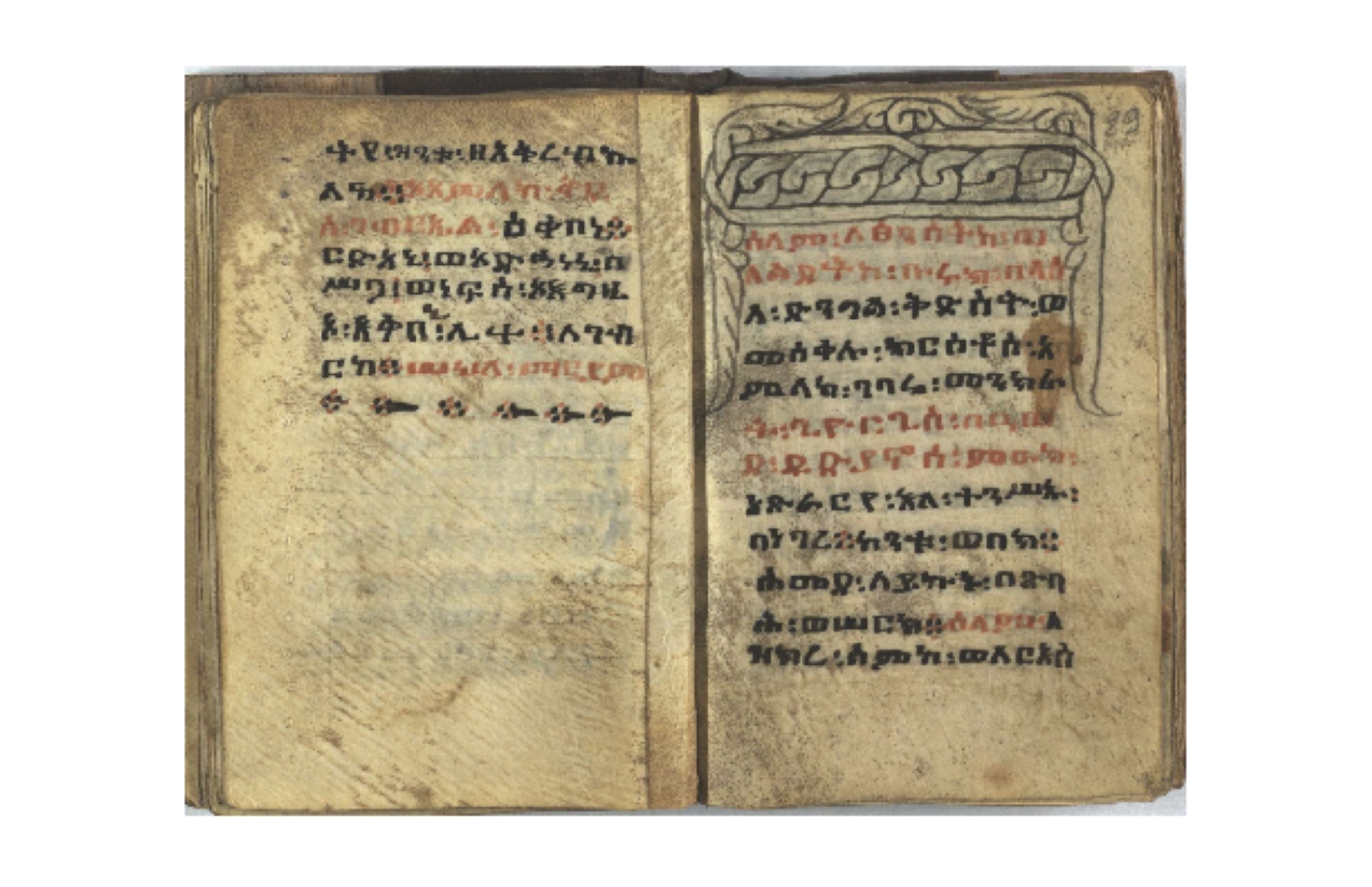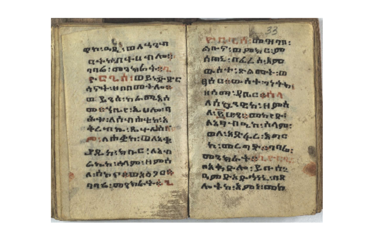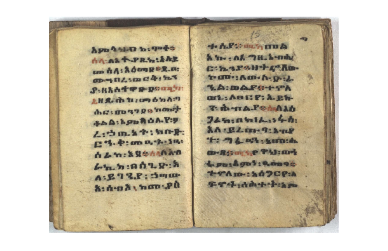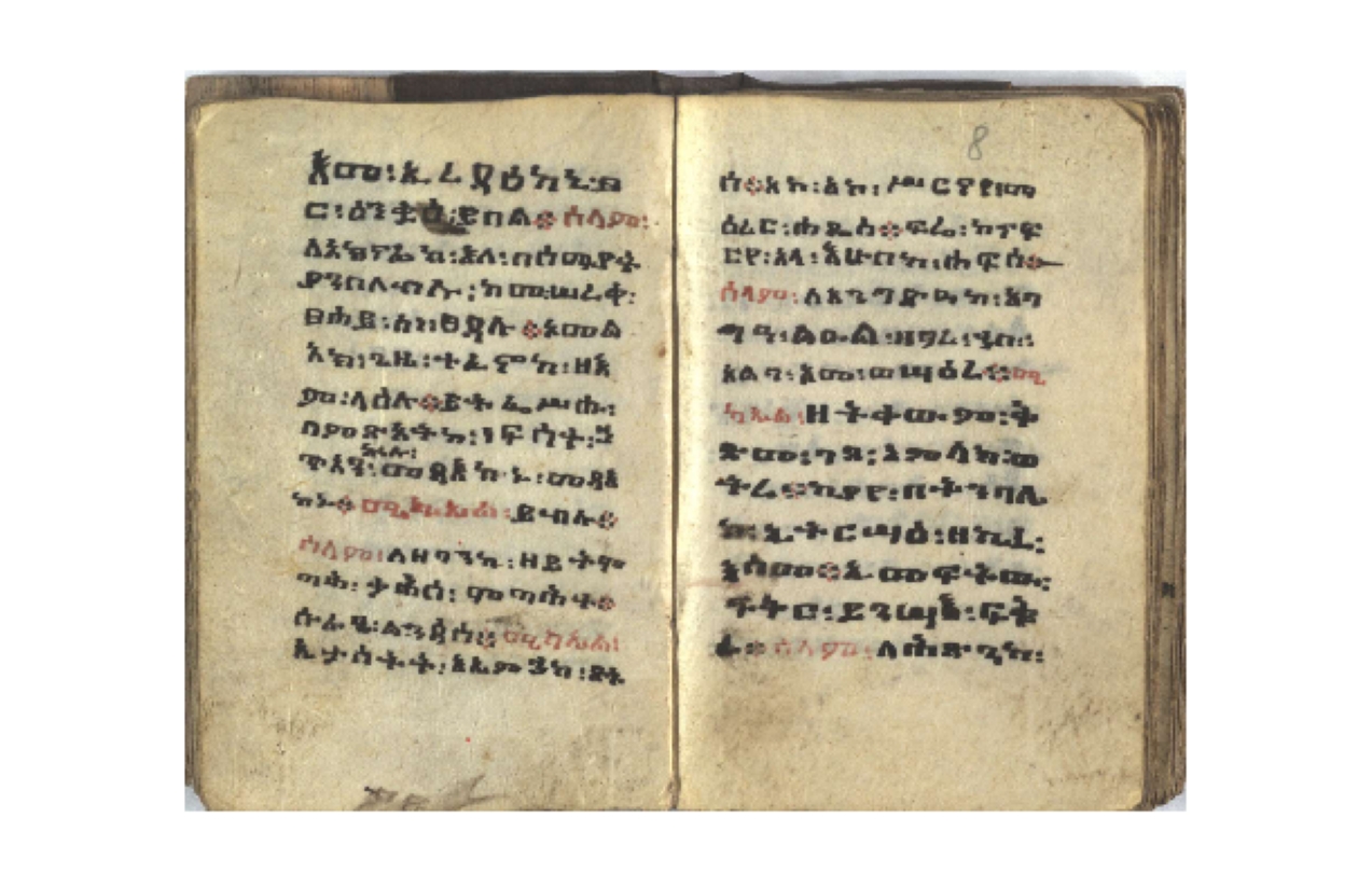 Ff. 1r–18v: Mälkǝʾa Mikaʾel (Mälkǝʾ-hymn to St Michael, Chaine nr. 119) Incipit: ሰላም፡ ለዝክረ፡ ስምከ፡ ምስለ፡ ስመ፡ ልዑል፡ ዘተሳተፈ፡ ወልደ፡ ያሬድ፡ ሄኖክ፡ በከመ፡ ጸሐፈ፡ ሶበ፡ እጼውዕ፡ ስመከ፡ ከሲትየ፡ አፈ፡ ረዳኤ፡ ምንዱባን፡ ሚካኤል፡ በከመ፡ ታለምድ፡ ዘልፈ፡ ለረዲኦትየ፡ ነዓ፡ Ff. 19r–28v: Mälkǝʾa Gäbrǝʾel (Mälkǝʾ-hymn to St Gabriel, Chaine nr. 246) Incipit: ሰላመ፡ ገብርኤል፡ መልአክ፡ በላዕለ፡ ማርያም፡ ዘአእረፈ፡ ከመ፡ እዜኑ፡ ሕዳጠ፡ ወአኮ፡ ትሩፈ፡ እግዚአብሔር፡ ሀበኒ። ሲሳየ፡ ልቡና፡ መጽሐፈ፡ ወአፉየ፡ ሙሴ፡ F. 29r–35r: Mälkǝʾa Giyorgis (Mälkǝʾ-hymn to St George, Chaine nr. 208). Incipit: ሰላም፡ ለፅንሰትከ፡ ወለልደትከ፡ ቡሩክ፡ በላዕለ፡ ድንግል፡ ቅድስት፡ ወመስቀሉ፡ [ለ]ክርስቶስ፡ አምላክ፡ ገባሬ፡ መንክራት፡ ጊዮርጊስ፡ በዓውደ፡ ዱድያኖስ፡ ምዑክ፡ አጽራርየ፡ እለ፡ ተንሥኡ፡ በነገረ። Ff. 35v–47v: Tǝmhǝrtä ḫǝbuʾat (“The Doctrine of Mysteries”) Incipit: በእንተ፡ ትኅምረተ፡ (sic) ኅቡአት፡ ቅድመ፡ ዘትትነገር፡ እምጵርስ፡ ፎራ፡ ለምእመናን፡ ኅቡአት፡ ትእምርተ፡ (sic) ኅቡአትሰ፡ ከመዝ፡ ንግር፡ ዘቅድመ፡ ሀሎ፡ ወይሄሉ፡ ዘመጽአ፡ ዘሐመ፡ ወሞተ፡ ወተቀብረ። |