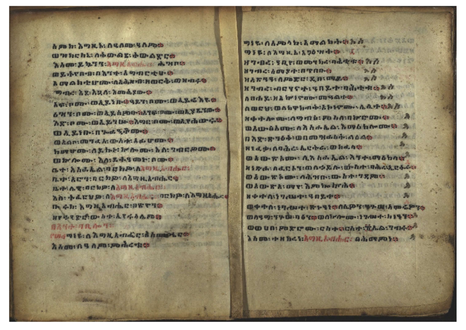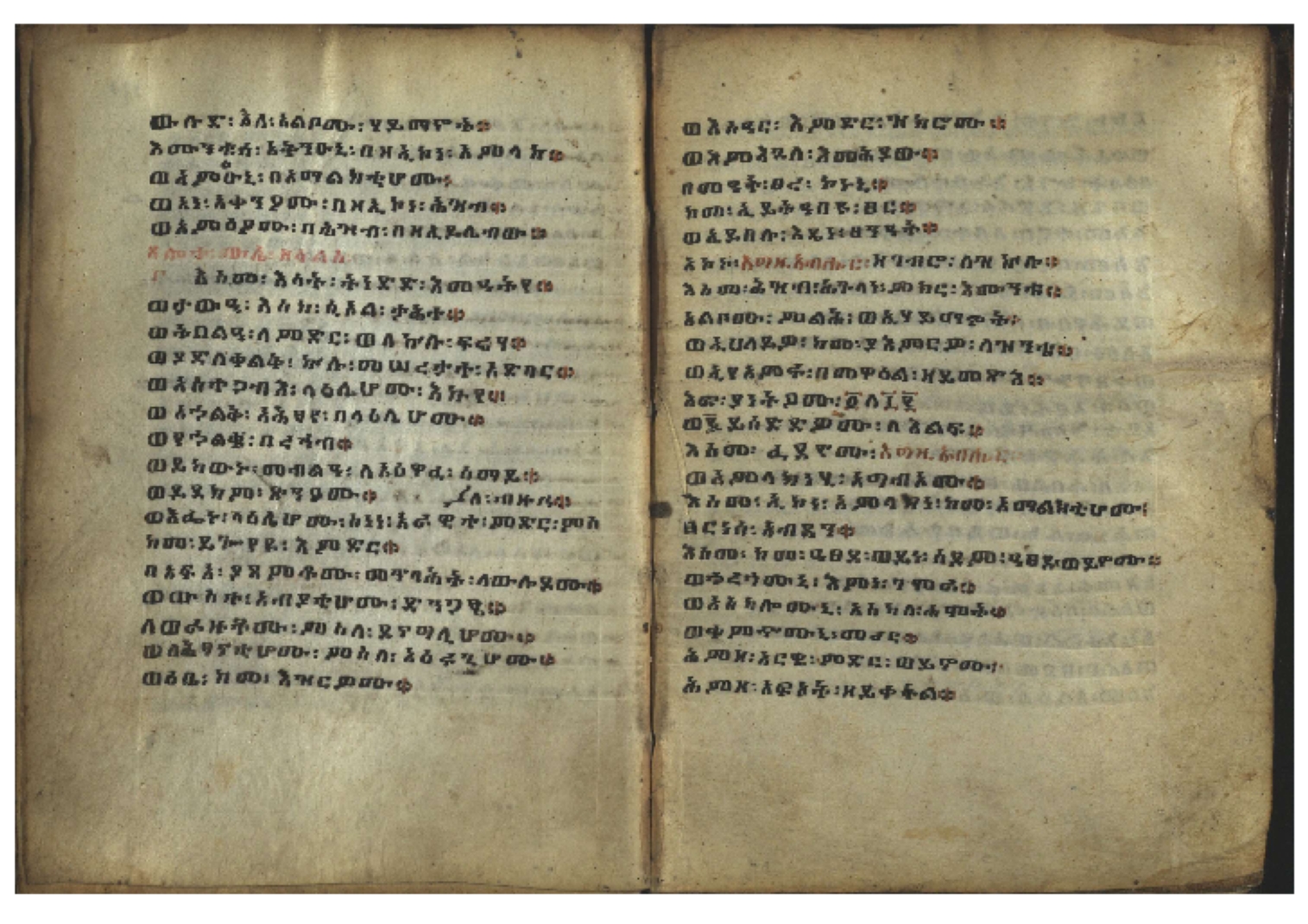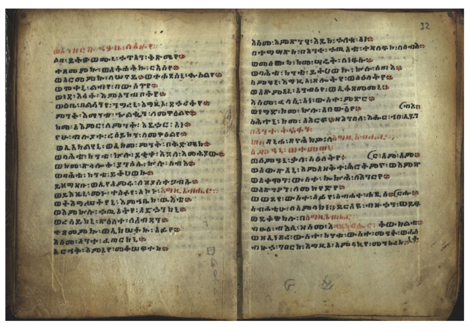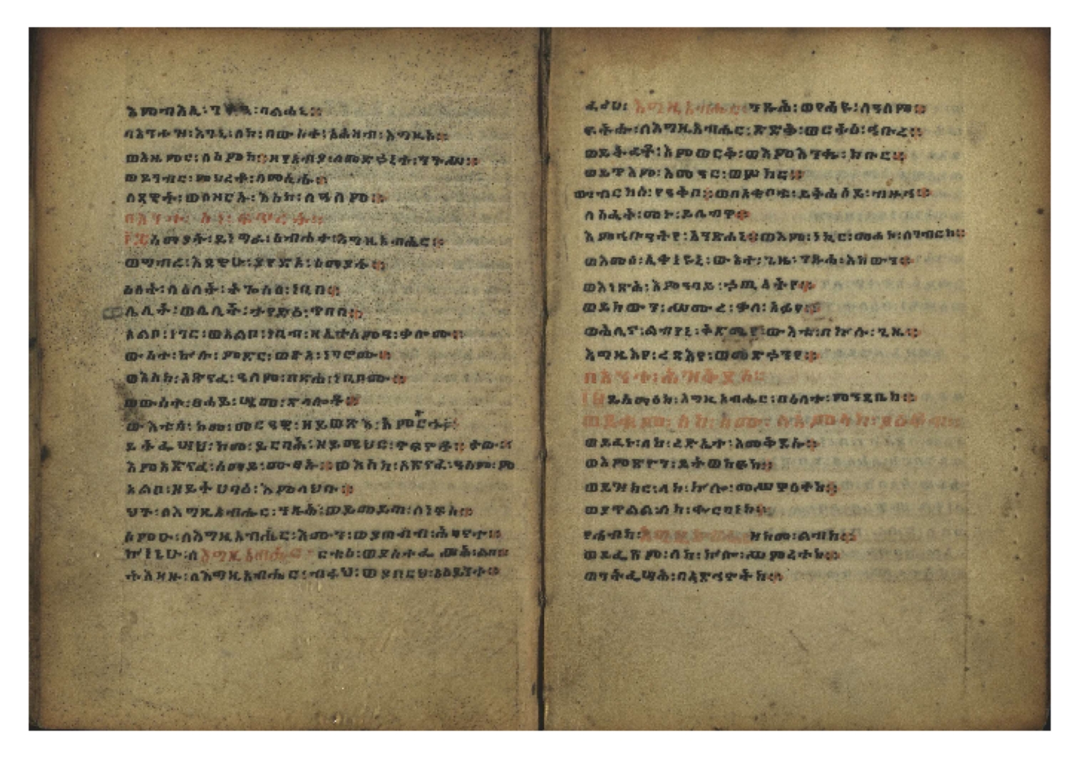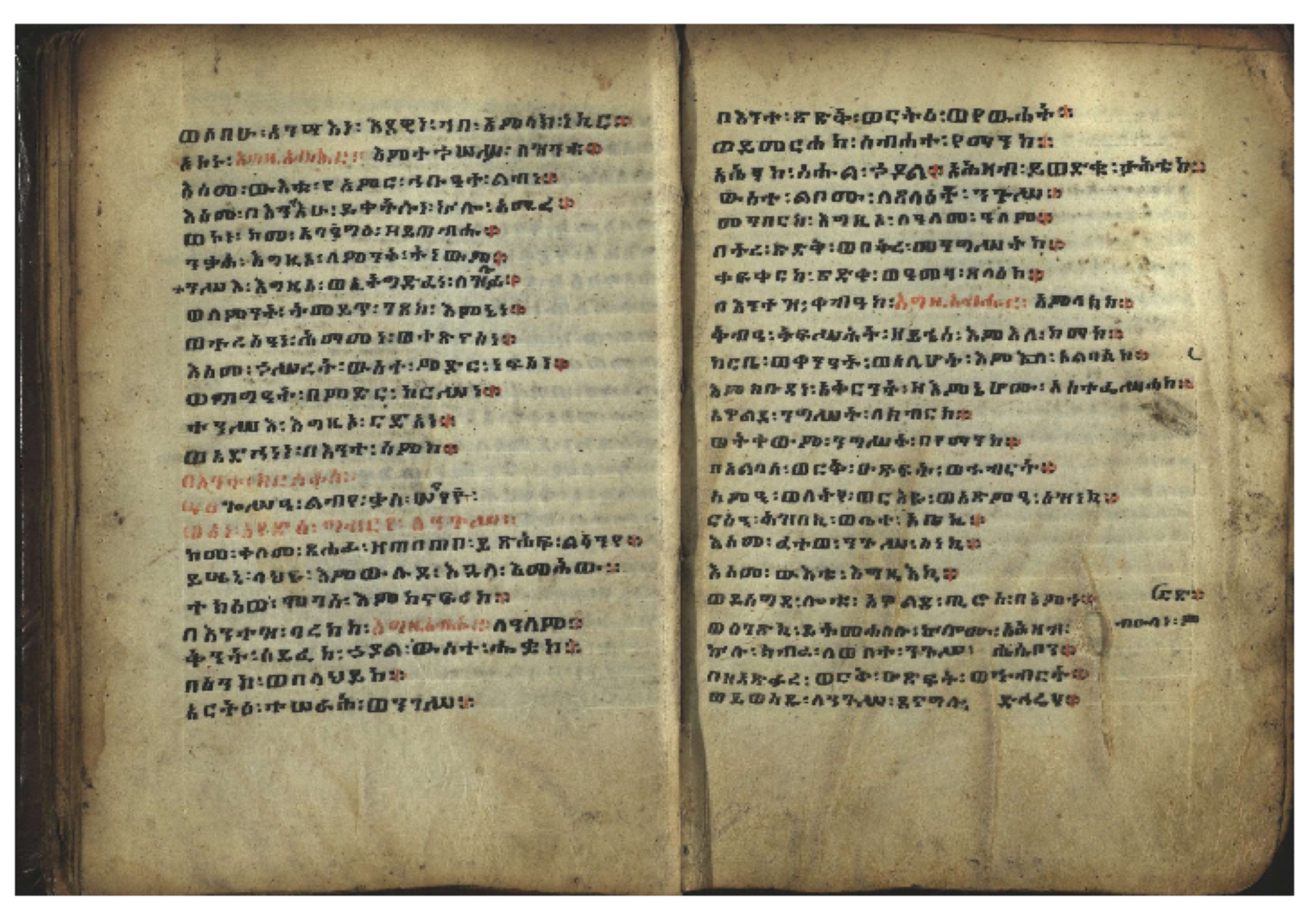 1. F. 1r–v: Mälkǝʾ-hymn to St Michael (Chaine nr. 119), written in an inaccurate hand. The words ሰላም፡ and ሚካኤል፡ are rubricated. Incipit: ሰላም፡ ለዝክረ፡ ስምከ፡ ምስለ፡ ስመ፡ ልዑል፡ ዘተሳተፈ። ወልደ፡ ያሬድ፡ ሄኖክ፡ በከመ፡ ጸሐፈ፡ ሶበ፡ እጼ<ውዕ፡> ስመከ፡ ከሲትየ፡ አፈ፡ ረዳኤ።. The text is incomplete. 2. Ff. 1v–2v: pen trials and other minor scribbles in pencil. 3. F. 156rb–v: Note on the commission of the manuscript, written in Amharic. It mentions the commissioner Aläqa Wäldä Śǝllase and the recipient Lǝǧǧ Abärra Nǝguse. Incipit: መጋቢት፡ ፲፩ቀን፡ አለቃ፡ ወልደ፡ ሥላሴ፡ ለልጅ፡ አበራ፡ ንጉሴ፡ የብራና፡ ዳዊት፡ ሲሸጥ፡ እማኝ፡ ቄስ፡ ኪዳኑ፡ የልጅ፡ አበራ፡ የሸቃ፡. ተእምራ(156v)ት፡ መድህን፡ አለቃ፡ ሐደረ፡ በሶስት፡ ብር፡ ታላድ፡ ሶሽጥ፡ በሶስት፡ ብር፡ ታላድ፡ ሺገዛ፡ ፈጣሚ፡ ብላ፡ ገብሩ፡. |