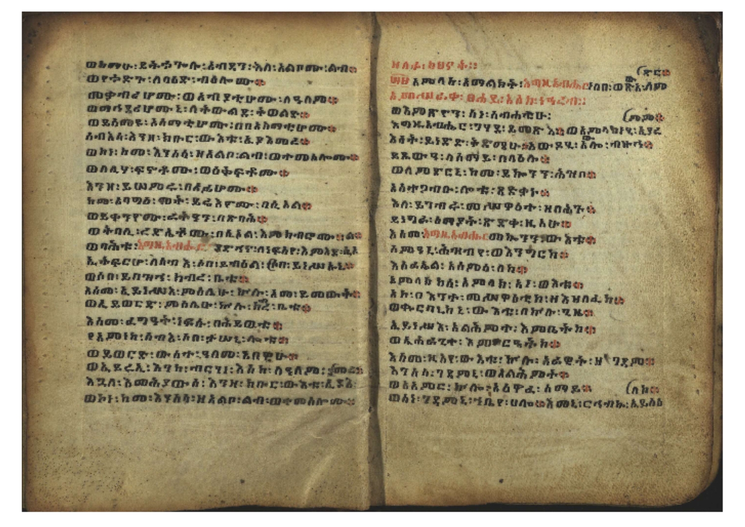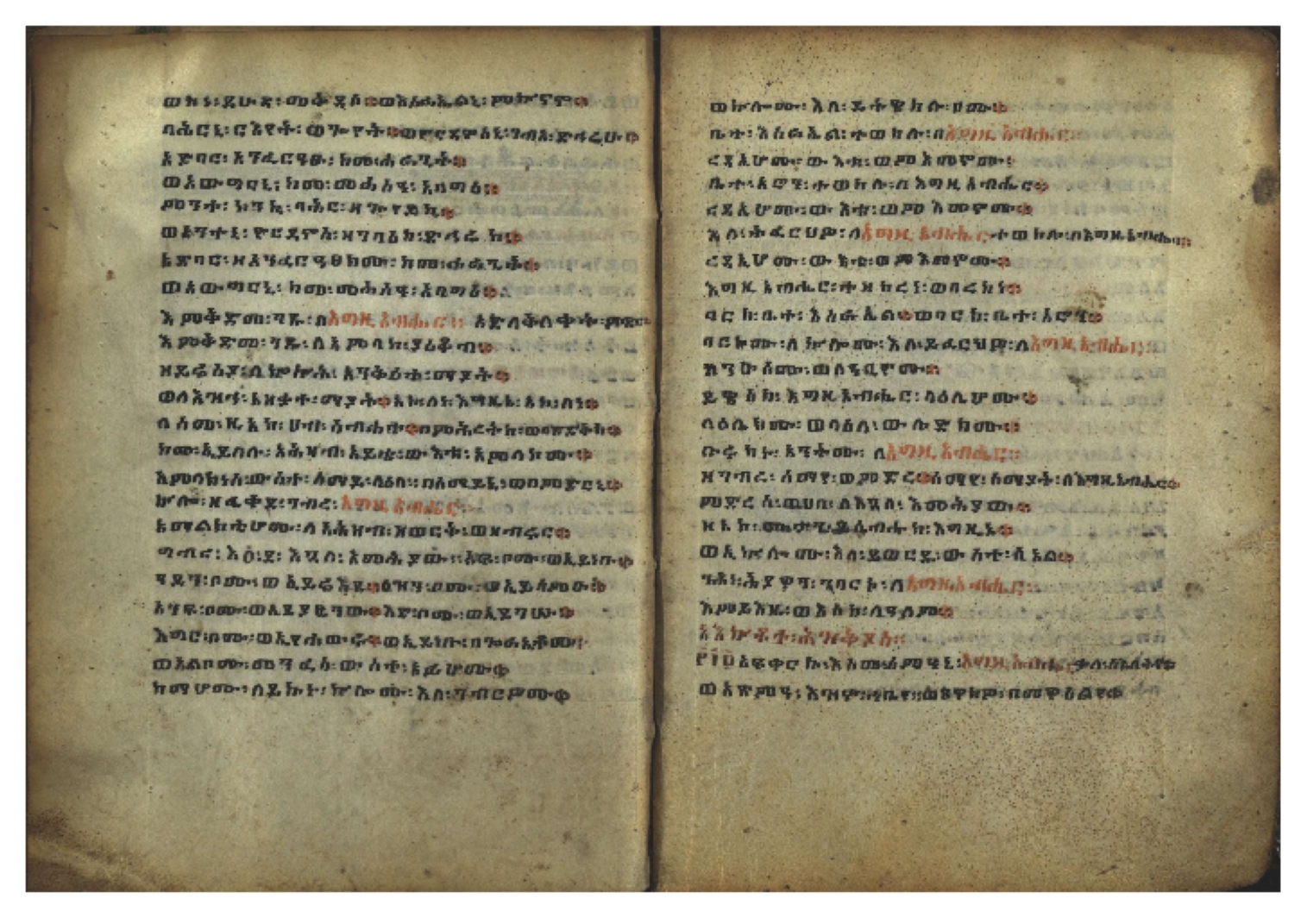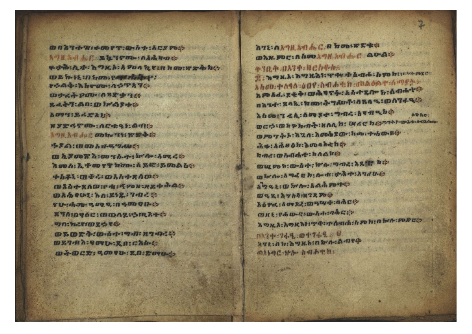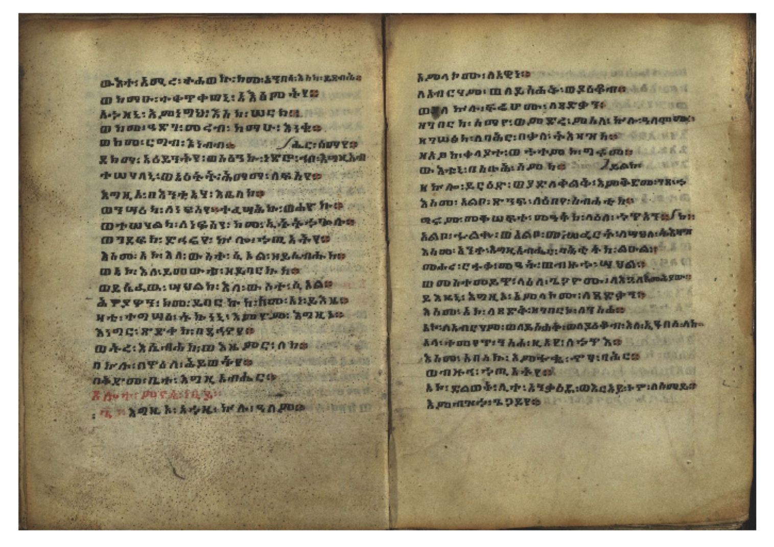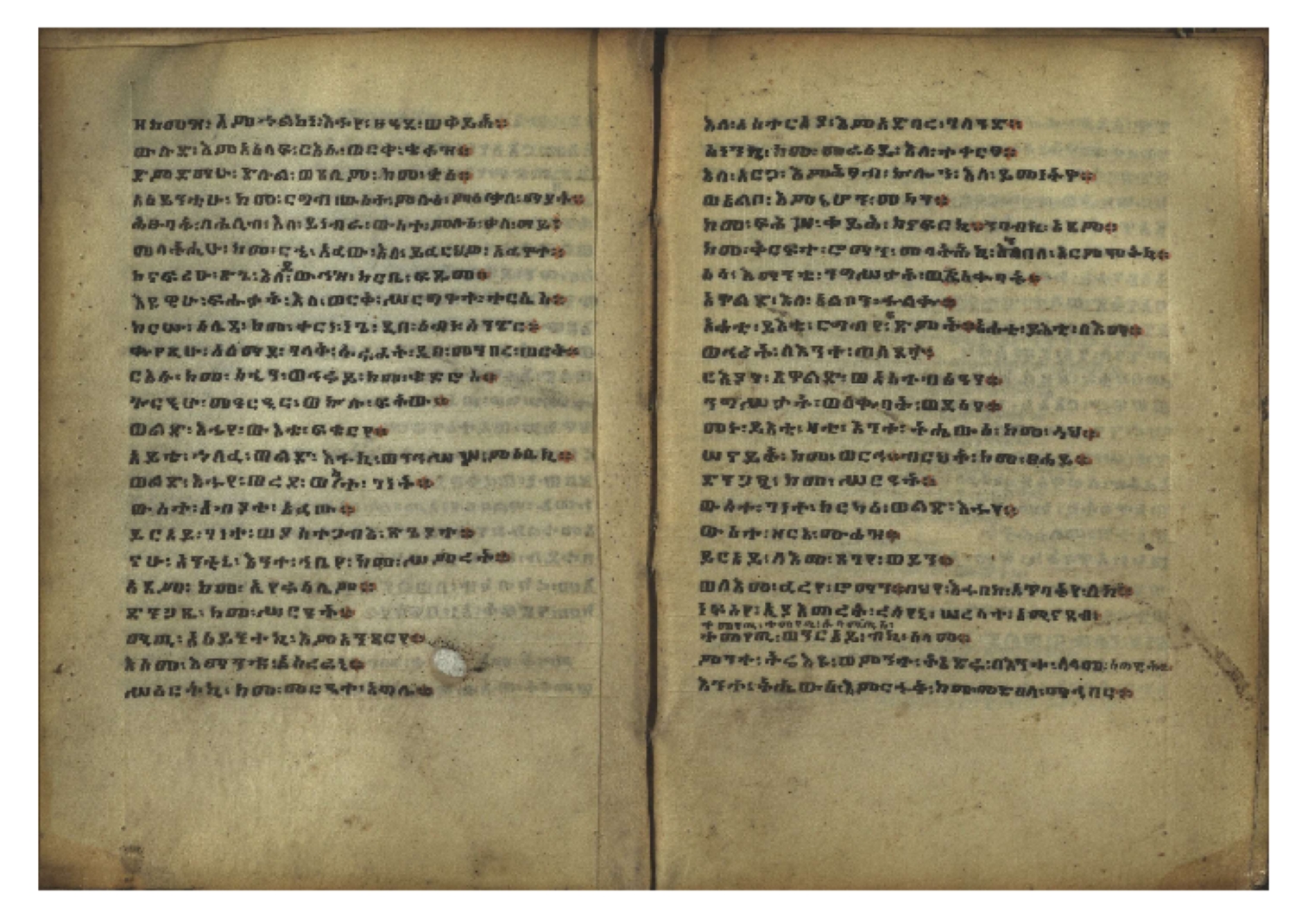 1. F. 1r–v: Mälkǝʾ-hymn to St Michael (Chaine nr. 119), written in an inaccurate hand. The words ሰላም፡ and ሚካኤል፡ are rubricated. Incipit: ሰላም፡ ለዝክረ፡ ስምከ፡ ምስለ፡ ስመ፡ ልዑል፡ ዘተሳተፈ። ወልደ፡ ያሬድ፡ ሄኖክ፡ በከመ፡ ጸሐፈ፡ ሶበ፡ እጼ<ውዕ፡> ስመከ፡ ከሲትየ፡ አፈ፡ ረዳኤ።. The text is incomplete. 2. Ff. 1v–2v: pen trials and other minor scribbles in pencil. 3. F. 156rb–v: Note on the commission of the manuscript, written in Amharic. It mentions the commissioner Aläqa Wäldä Śǝllase and the recipient Lǝǧǧ Abärra Nǝguse. Incipit: መጋቢት፡ ፲፩ቀን፡ አለቃ፡ ወልደ፡ ሥላሴ፡ ለልጅ፡ አበራ፡ ንጉሴ፡ የብራና፡ ዳዊት፡ ሲሸጥ፡ እማኝ፡ ቄስ፡ ኪዳኑ፡ የልጅ፡ አበራ፡ የሸቃ፡. ተእምራ(156v)ት፡ መድህን፡ አለቃ፡ ሐደረ፡ በሶስት፡ ብር፡ ታላድ፡ ሶሽጥ፡ በሶስት፡ ብር፡ ታላድ፡ ሺገዛ፡ ፈጣሚ፡ ብላ፡ ገብሩ፡. |