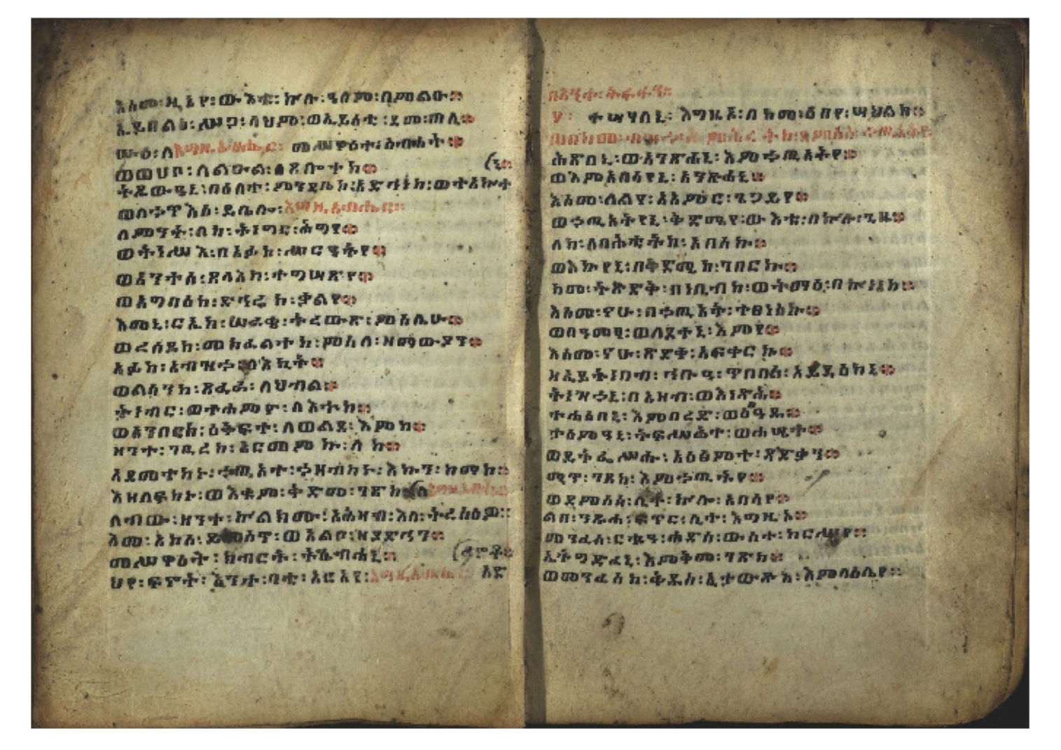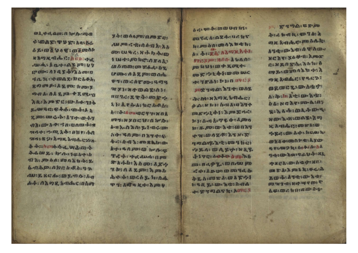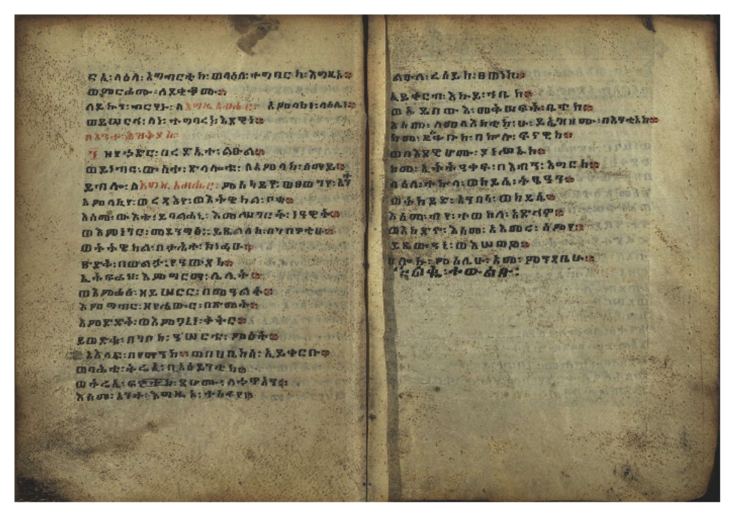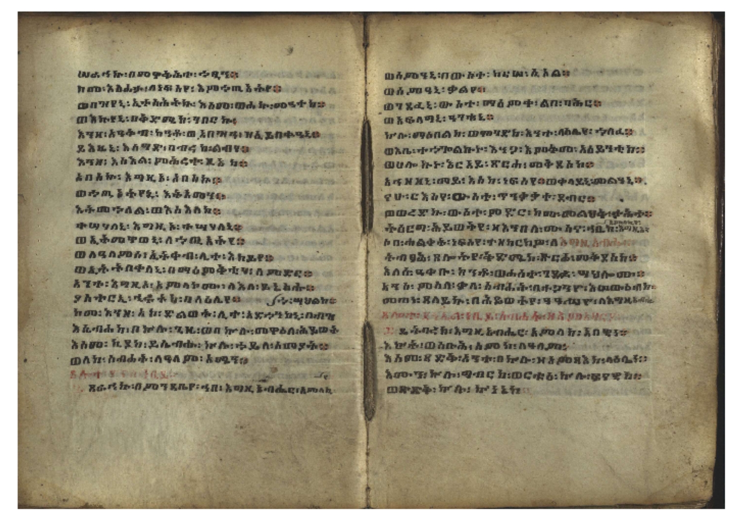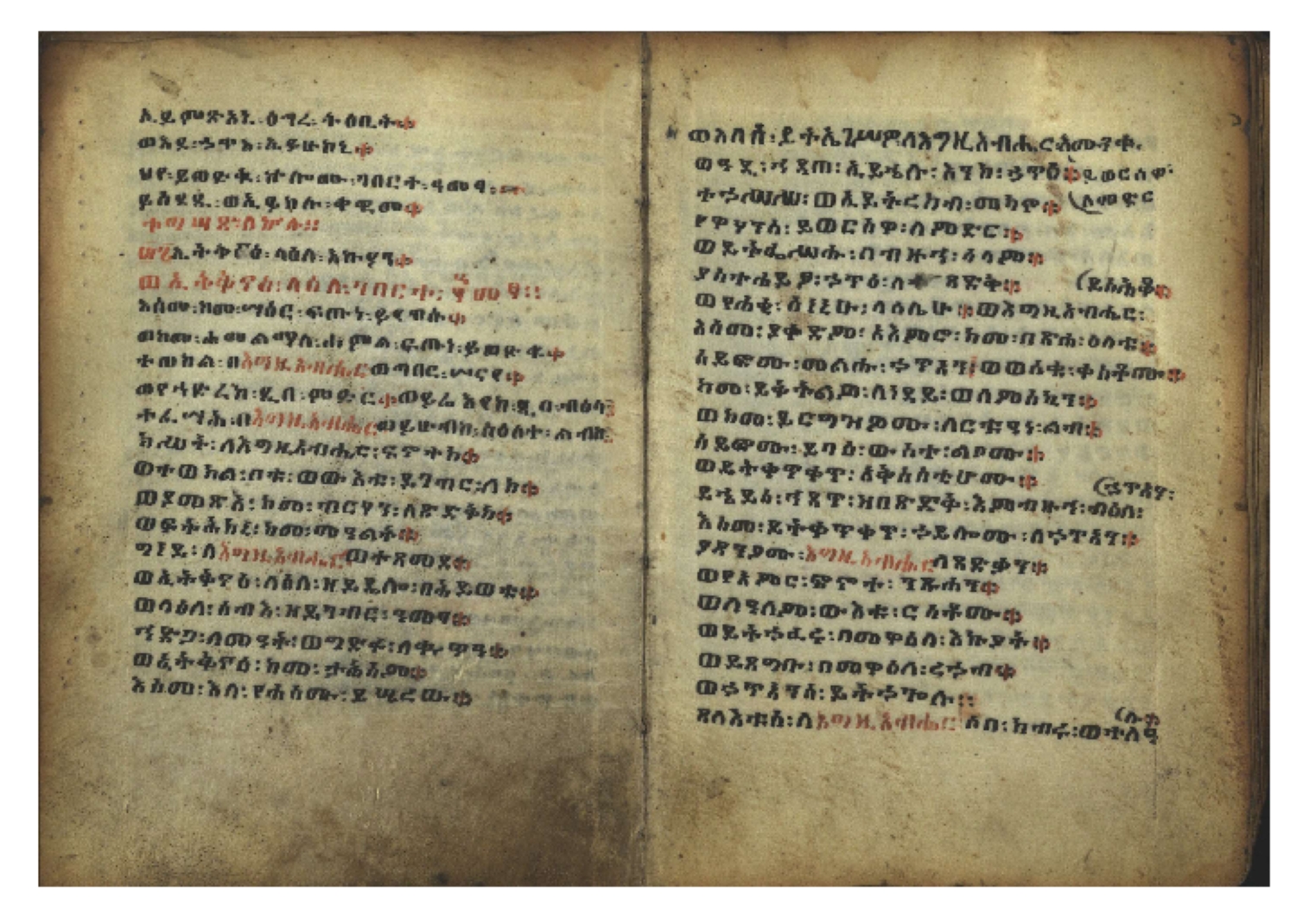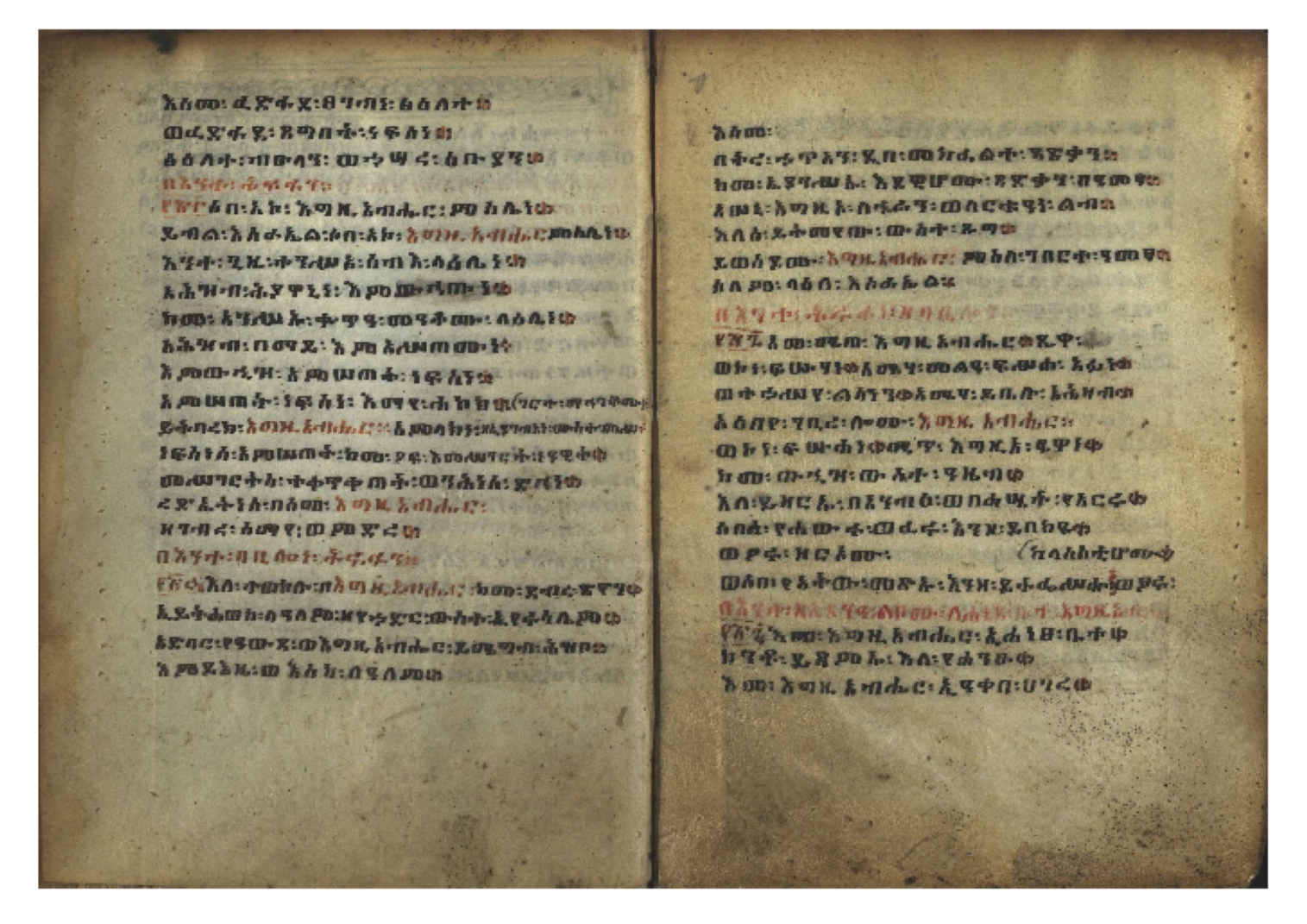 1. F. 1r–v: Mälkǝʾ-hymn to St Michael (Chaine nr. 119), written in an inaccurate hand. The words ሰላም፡ and ሚካኤል፡ are rubricated. Incipit: ሰላም፡ ለዝክረ፡ ስምከ፡ ምስለ፡ ስመ፡ ልዑል፡ ዘተሳተፈ። ወልደ፡ ያሬድ፡ ሄኖክ፡ በከመ፡ ጸሐፈ፡ ሶበ፡ እጼ<ውዕ፡> ስመከ፡ ከሲትየ፡ አፈ፡ ረዳኤ።. The text is incomplete. 2. Ff. 1v–2v: pen trials and other minor scribbles in pencil. 3. F. 156rb–v: Note on the commission of the manuscript, written in Amharic. It mentions the commissioner Aläqa Wäldä Śǝllase and the recipient Lǝǧǧ Abärra Nǝguse. Incipit: መጋቢት፡ ፲፩ቀን፡ አለቃ፡ ወልደ፡ ሥላሴ፡ ለልጅ፡ አበራ፡ ንጉሴ፡ የብራና፡ ዳዊት፡ ሲሸጥ፡ እማኝ፡ ቄስ፡ ኪዳኑ፡ የልጅ፡ አበራ፡ የሸቃ፡. ተእምራ(156v)ት፡ መድህን፡ አለቃ፡ ሐደረ፡ በሶስት፡ ብር፡ ታላድ፡ ሶሽጥ፡ በሶስት፡ ብር፡ ታላድ፡ ሺገዛ፡ ፈጣሚ፡ ብላ፡ ገብሩ፡. |