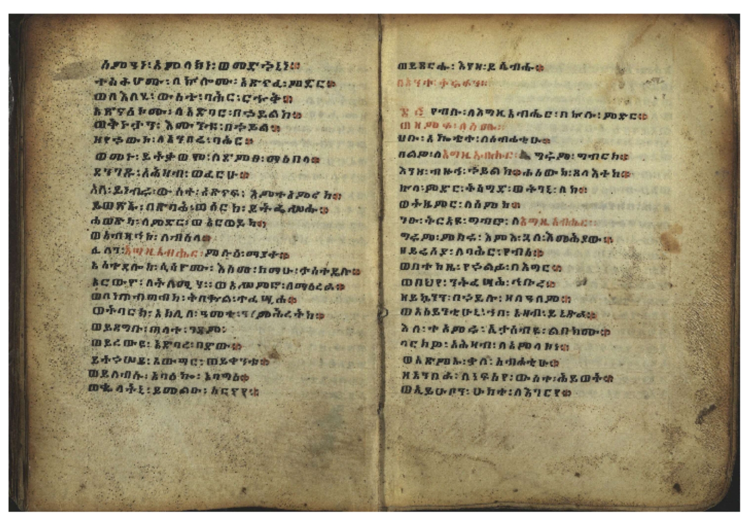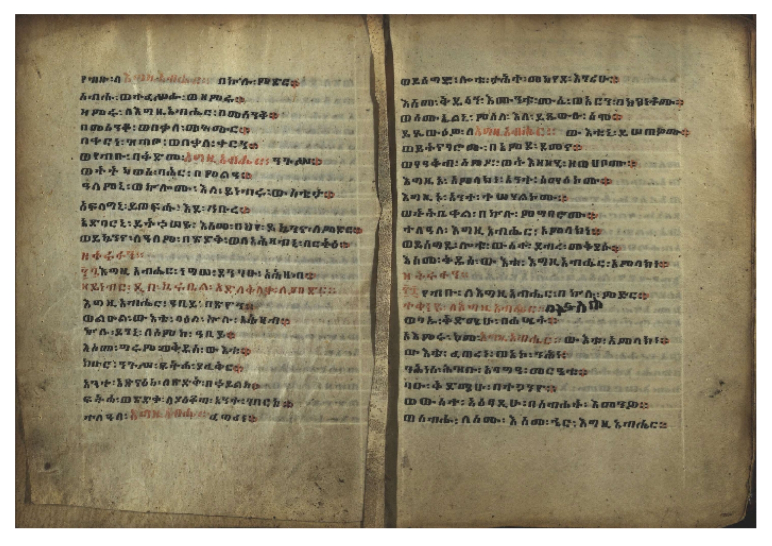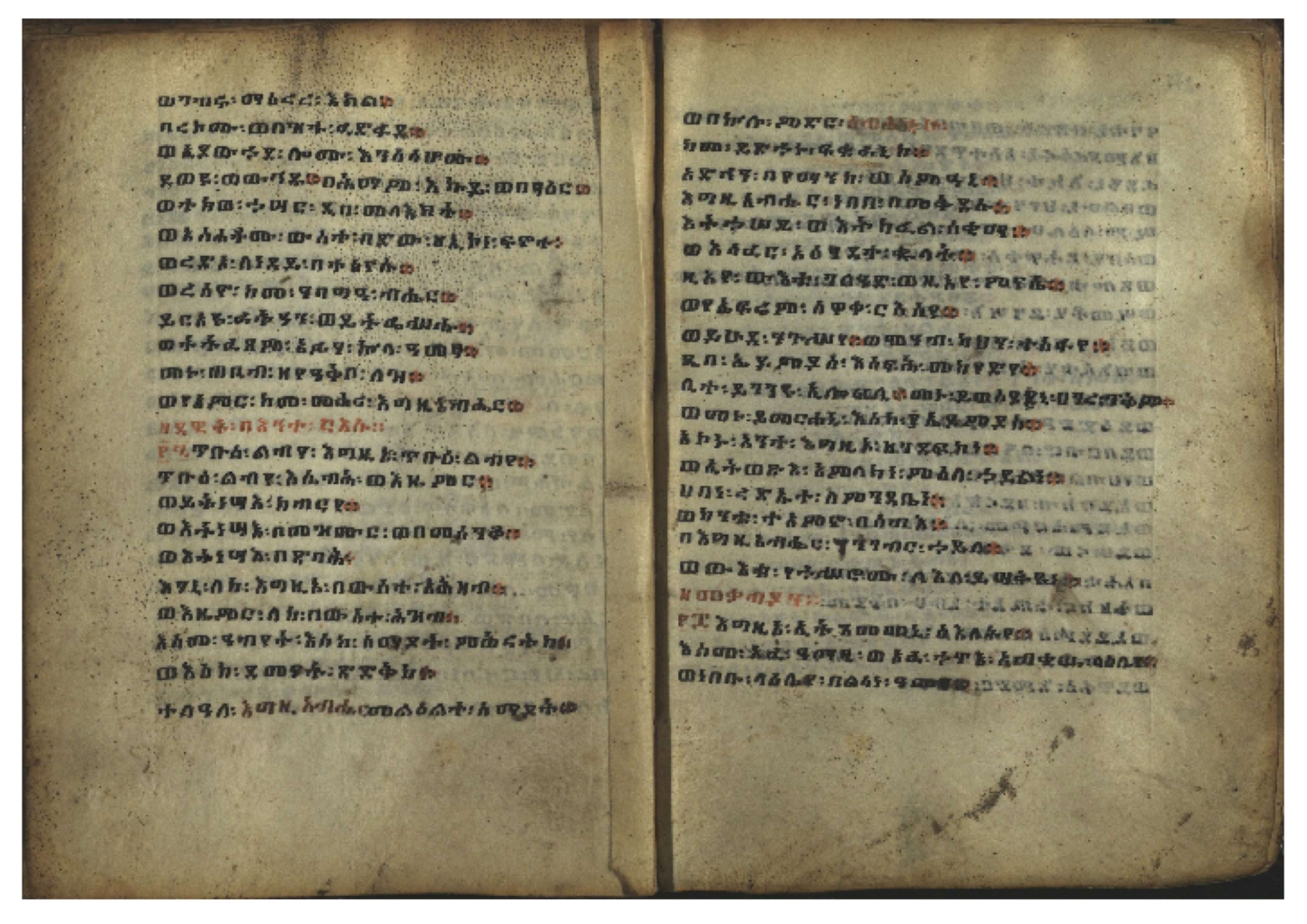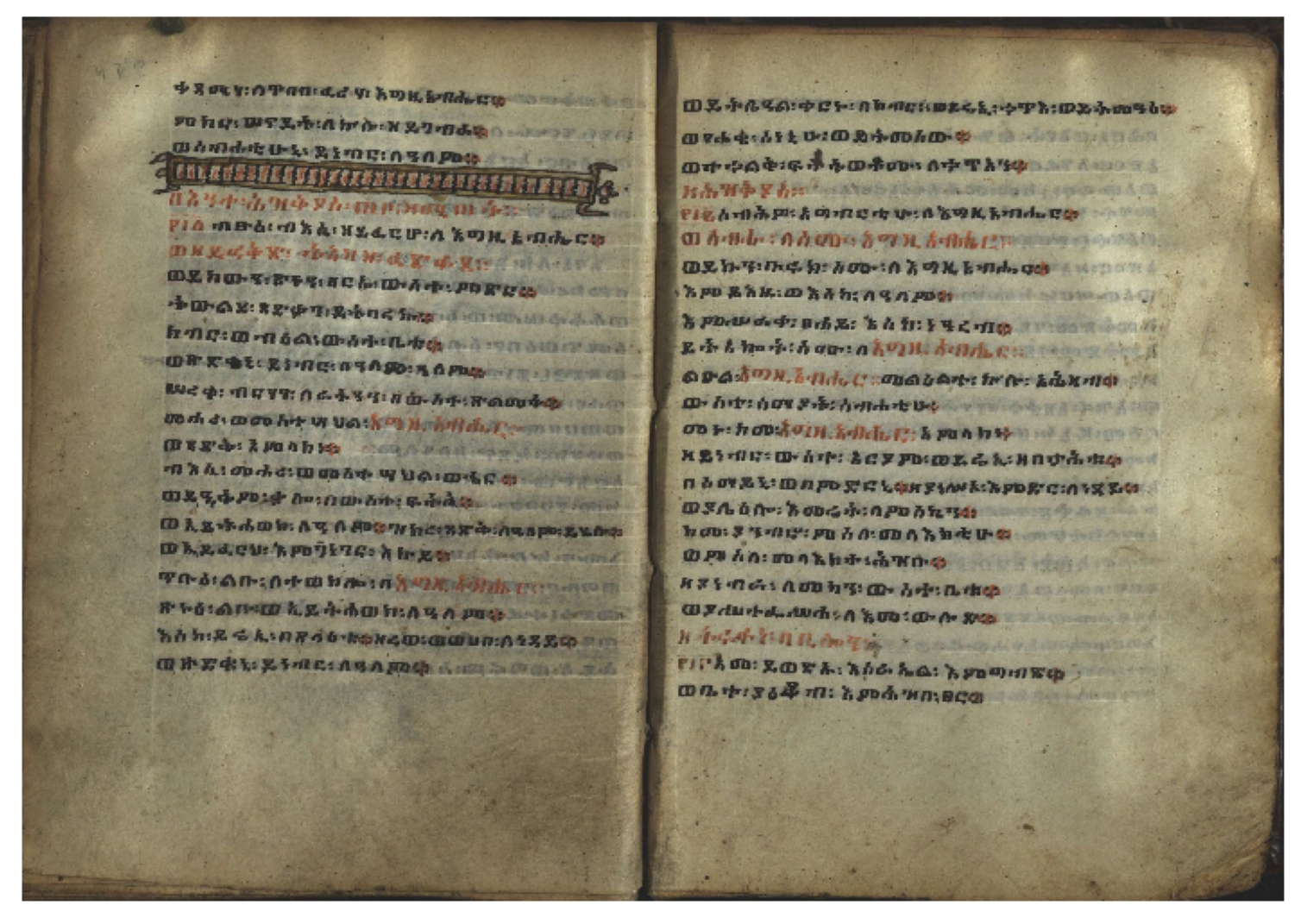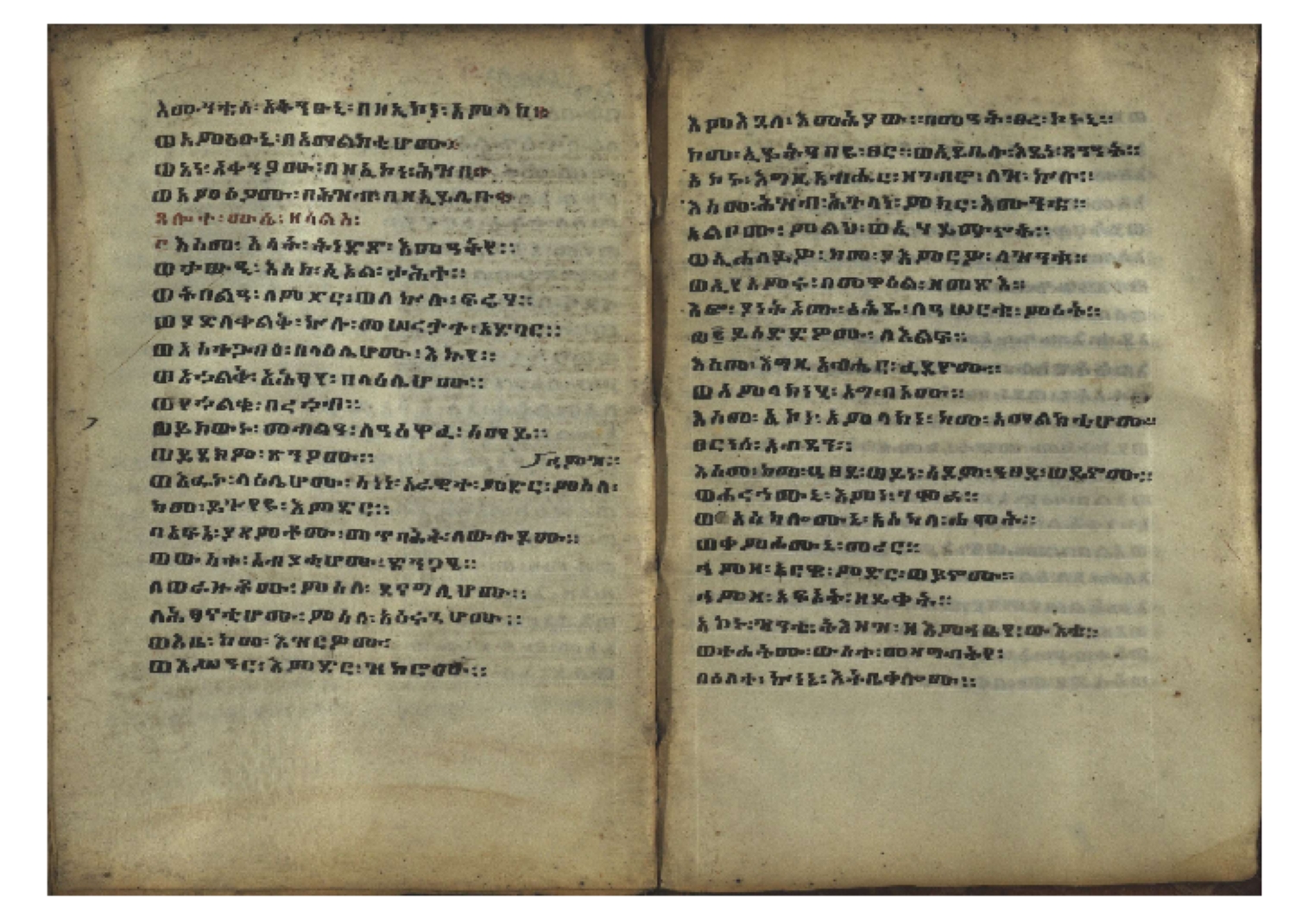 1. F. 1r–v: Mälkǝʾ-hymn to St Michael (Chaine nr. 119), written in an inaccurate hand. The words ሰላም፡ and ሚካኤል፡ are rubricated. Incipit: ሰላም፡ ለዝክረ፡ ስምከ፡ ምስለ፡ ስመ፡ ልዑል፡ ዘተሳተፈ። ወልደ፡ ያሬድ፡ ሄኖክ፡ በከመ፡ ጸሐፈ፡ ሶበ፡ እጼ<ውዕ፡> ስመከ፡ ከሲትየ፡ አፈ፡ ረዳኤ።. The text is incomplete. 2. Ff. 1v–2v: pen trials and other minor scribbles in pencil. 3. F. 156rb–v: Note on the commission of the manuscript, written in Amharic. It mentions the commissioner Aläqa Wäldä Śǝllase and the recipient Lǝǧǧ Abärra Nǝguse. Incipit: መጋቢት፡ ፲፩ቀን፡ አለቃ፡ ወልደ፡ ሥላሴ፡ ለልጅ፡ አበራ፡ ንጉሴ፡ የብራና፡ ዳዊት፡ ሲሸጥ፡ እማኝ፡ ቄስ፡ ኪዳኑ፡ የልጅ፡ አበራ፡ የሸቃ፡. ተእምራ(156v)ት፡ መድህን፡ አለቃ፡ ሐደረ፡ በሶስት፡ ብር፡ ታላድ፡ ሶሽጥ፡ በሶስት፡ ብር፡ ታላድ፡ ሺገዛ፡ ፈጣሚ፡ ብላ፡ ገብሩ፡. |