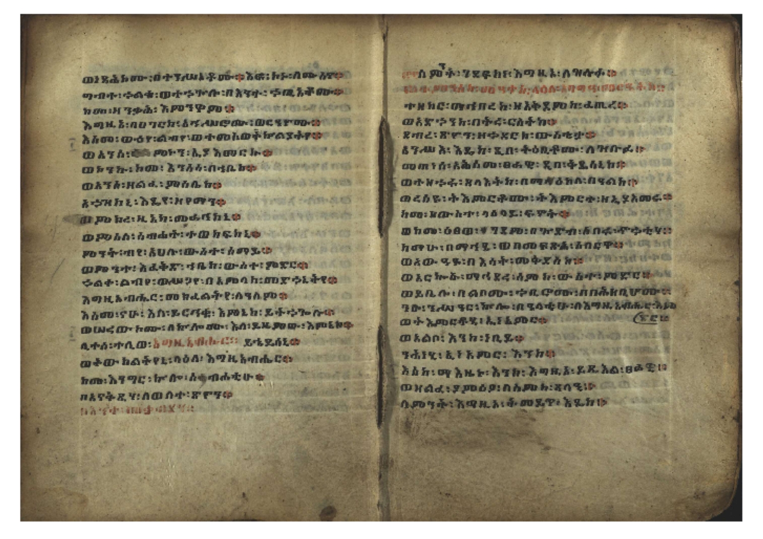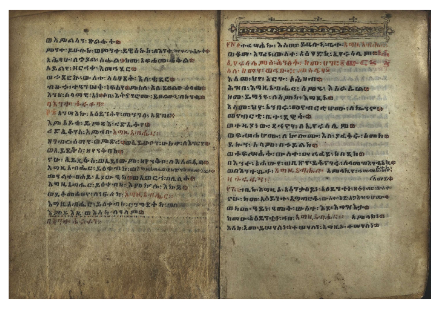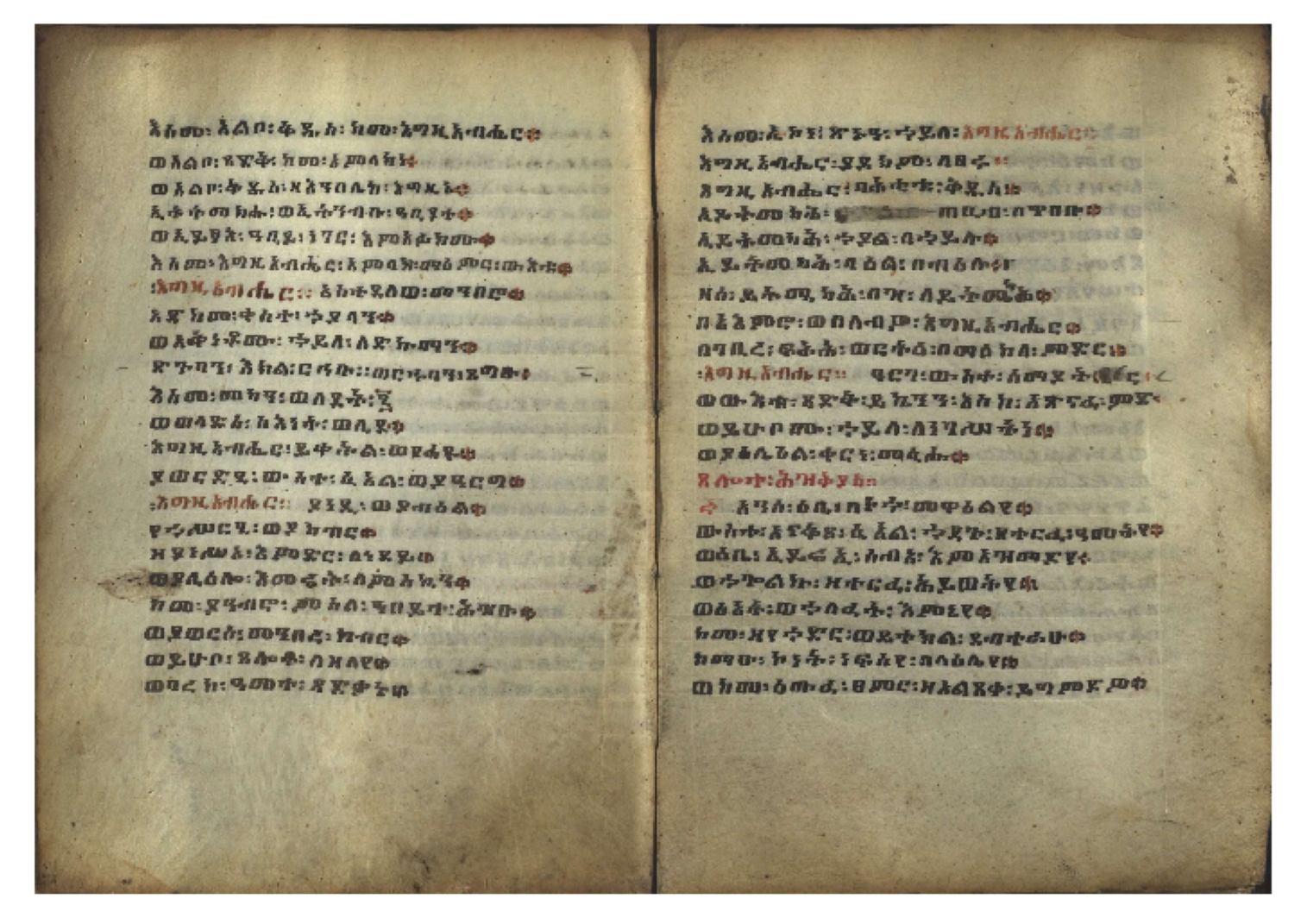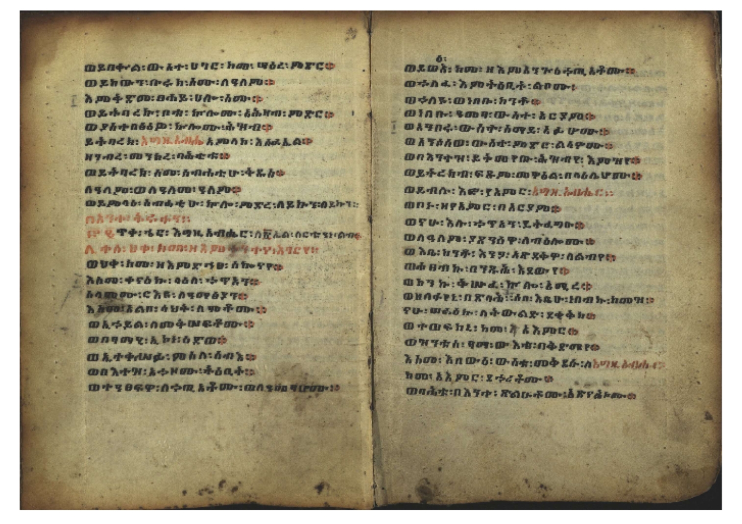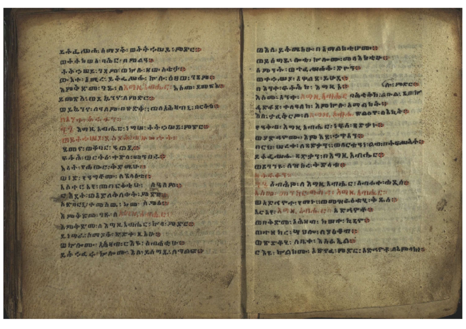 1. F. 1r–v: Mälkǝʾ-hymn to St Michael (Chaine nr. 119), written in an inaccurate hand. The words ሰላም፡ and ሚካኤል፡ are rubricated. Incipit: ሰላም፡ ለዝክረ፡ ስምከ፡ ምስለ፡ ስመ፡ ልዑል፡ ዘተሳተፈ። ወልደ፡ ያሬድ፡ ሄኖክ፡ በከመ፡ ጸሐፈ፡ ሶበ፡ እጼ<ውዕ፡> ስመከ፡ ከሲትየ፡ አፈ፡ ረዳኤ።. The text is incomplete. 2. Ff. 1v–2v: pen trials and other minor scribbles in pencil. 3. F. 156rb–v: Note on the commission of the manuscript, written in Amharic. It mentions the commissioner Aläqa Wäldä Śǝllase and the recipient Lǝǧǧ Abärra Nǝguse. Incipit: መጋቢት፡ ፲፩ቀን፡ አለቃ፡ ወልደ፡ ሥላሴ፡ ለልጅ፡ አበራ፡ ንጉሴ፡ የብራና፡ ዳዊት፡ ሲሸጥ፡ እማኝ፡ ቄስ፡ ኪዳኑ፡ የልጅ፡ አበራ፡ የሸቃ፡. ተእምራ(156v)ት፡ መድህን፡ አለቃ፡ ሐደረ፡ በሶስት፡ ብር፡ ታላድ፡ ሶሽጥ፡ በሶስት፡ ብር፡ ታላድ፡ ሺገዛ፡ ፈጣሚ፡ ብላ፡ ገብሩ፡. |