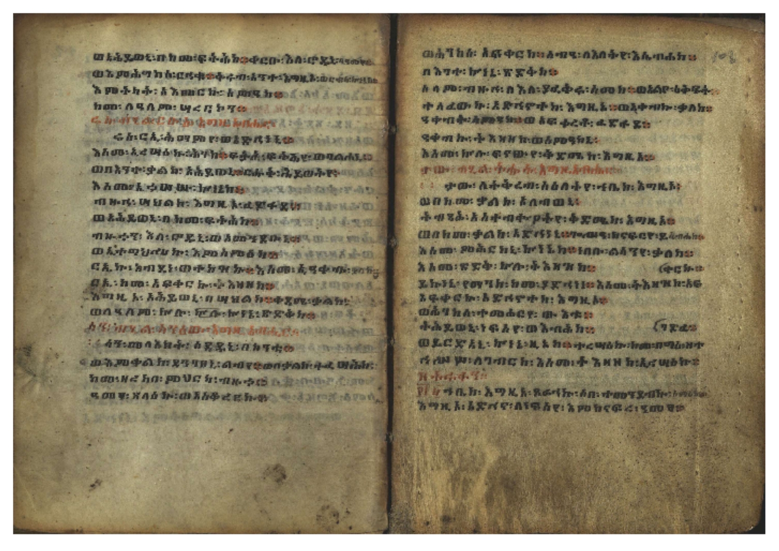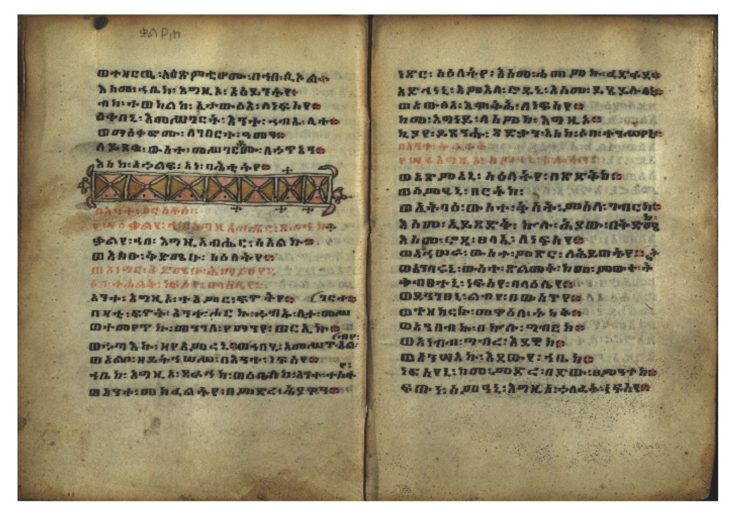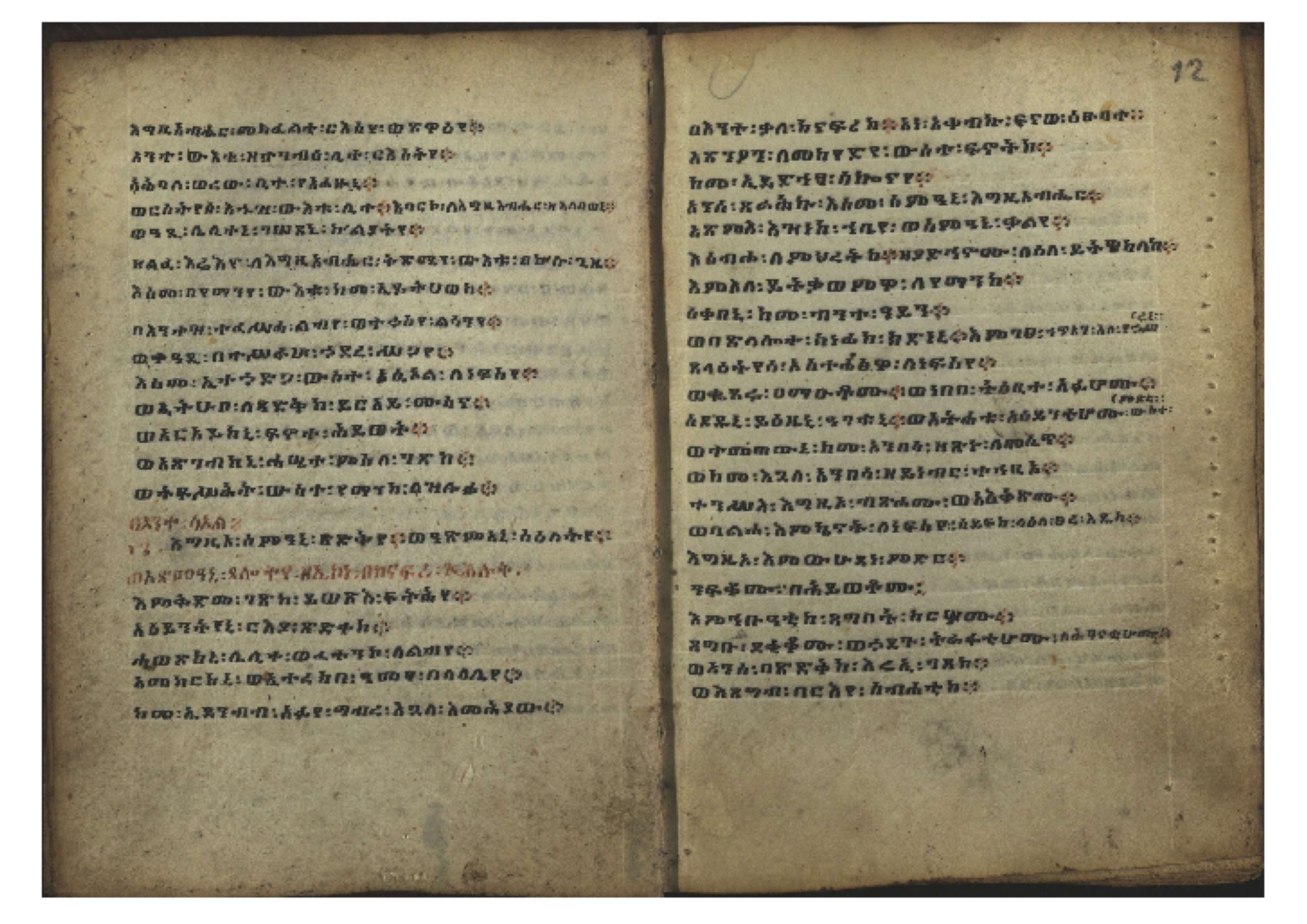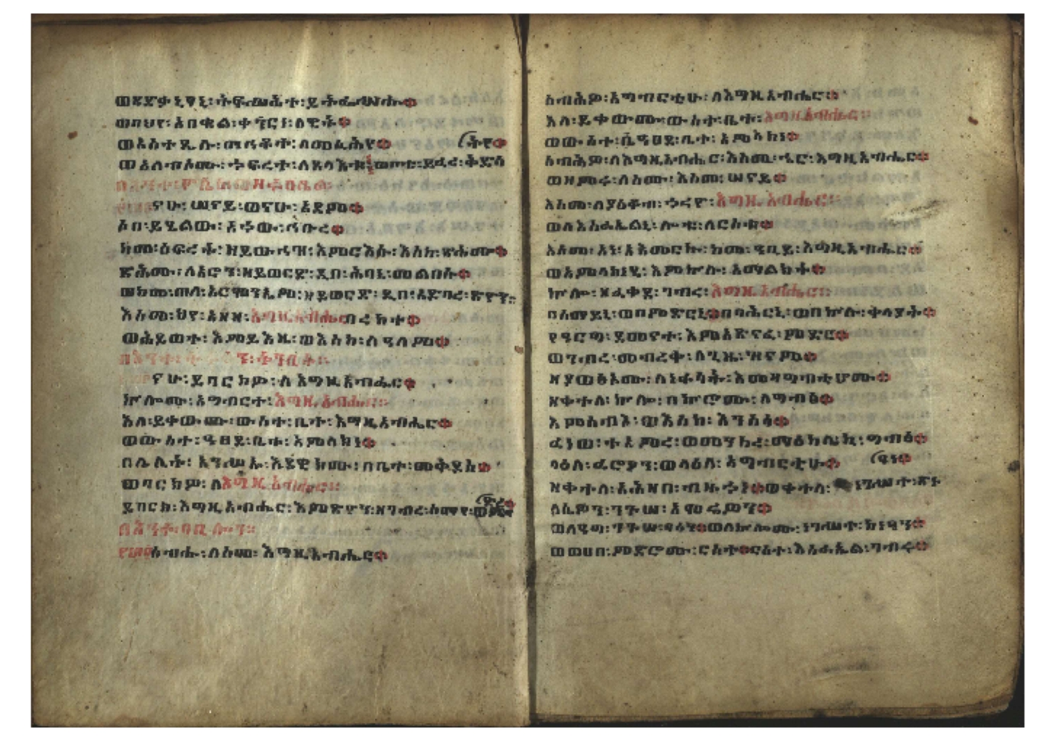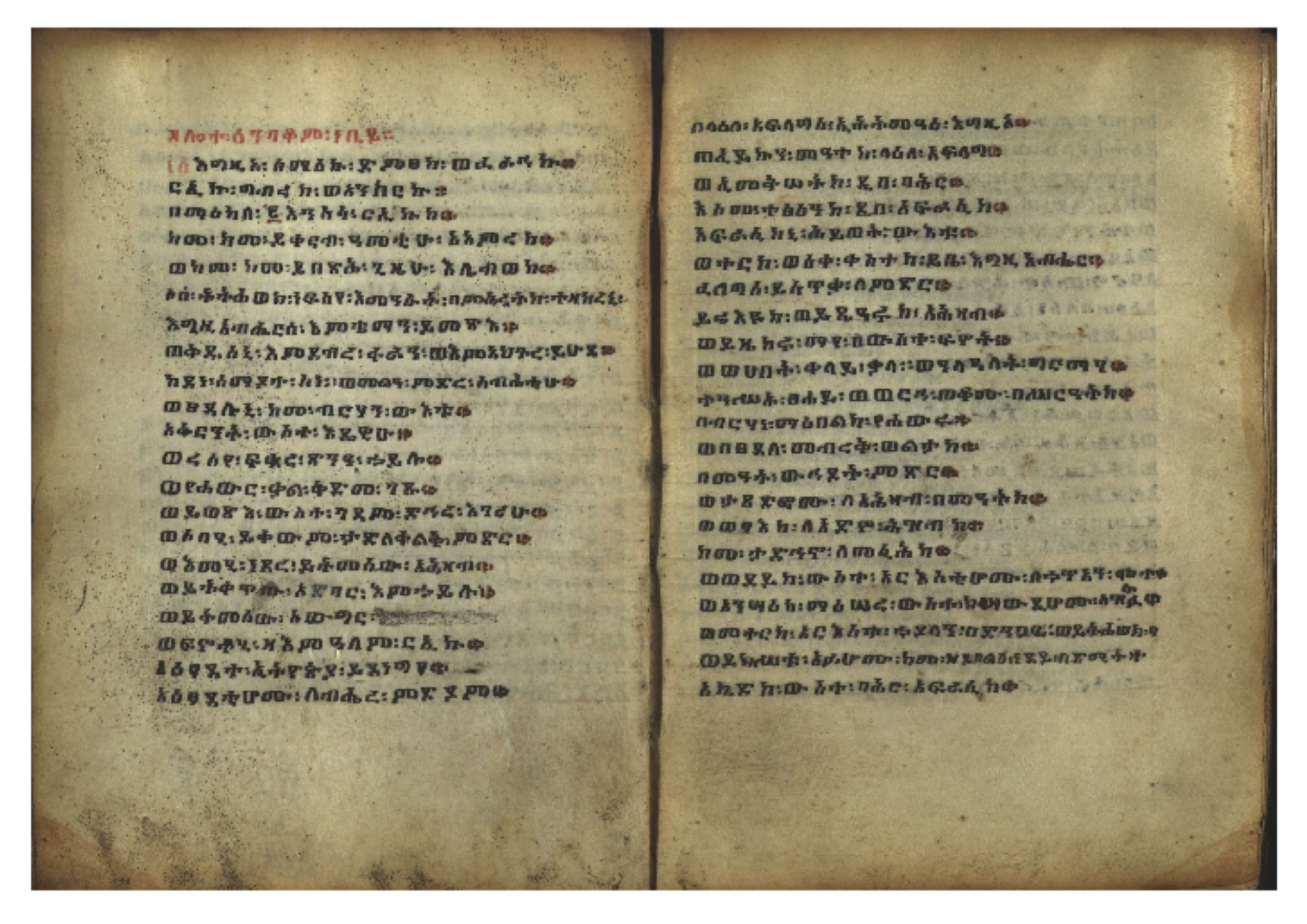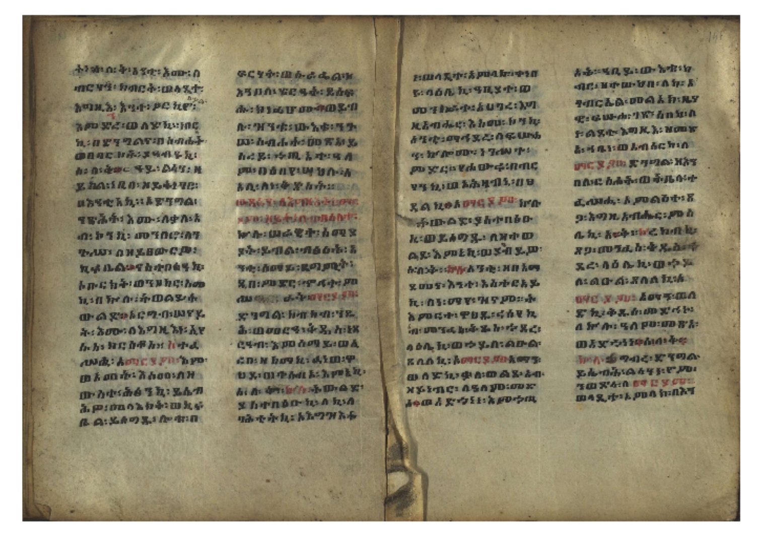 1. F. 1r–v: Mälkǝʾ-hymn to St Michael (Chaine nr. 119), written in an inaccurate hand. The words ሰላም፡ and ሚካኤል፡ are rubricated. Incipit: ሰላም፡ ለዝክረ፡ ስምከ፡ ምስለ፡ ስመ፡ ልዑል፡ ዘተሳተፈ። ወልደ፡ ያሬድ፡ ሄኖክ፡ በከመ፡ ጸሐፈ፡ ሶበ፡ እጼ<ውዕ፡> ስመከ፡ ከሲትየ፡ አፈ፡ ረዳኤ።. The text is incomplete. 2. Ff. 1v–2v: pen trials and other minor scribbles in pencil. 3. F. 156rb–v: Note on the commission of the manuscript, written in Amharic. It mentions the commissioner Aläqa Wäldä Śǝllase and the recipient Lǝǧǧ Abärra Nǝguse. Incipit: መጋቢት፡ ፲፩ቀን፡ አለቃ፡ ወልደ፡ ሥላሴ፡ ለልጅ፡ አበራ፡ ንጉሴ፡ የብራና፡ ዳዊት፡ ሲሸጥ፡ እማኝ፡ ቄስ፡ ኪዳኑ፡ የልጅ፡ አበራ፡ የሸቃ፡. ተእምራ(156v)ት፡ መድህን፡ አለቃ፡ ሐደረ፡ በሶስት፡ ብር፡ ታላድ፡ ሶሽጥ፡ በሶስት፡ ብር፡ ታላድ፡ ሺገዛ፡ ፈጣሚ፡ ብላ፡ ገብሩ፡. |