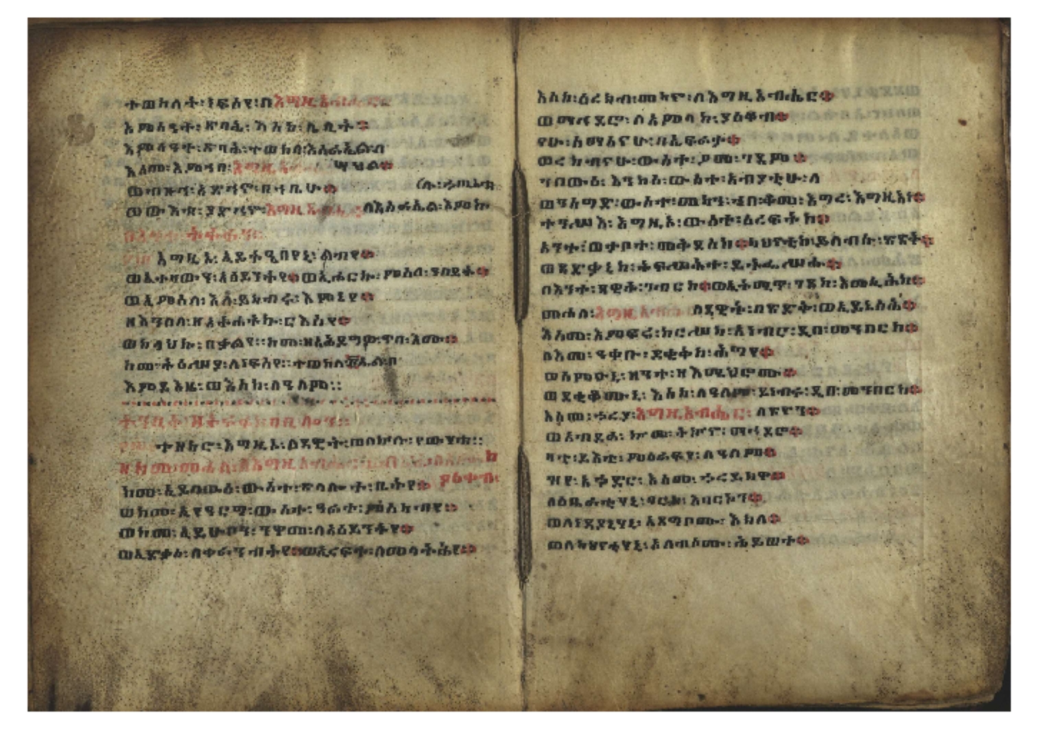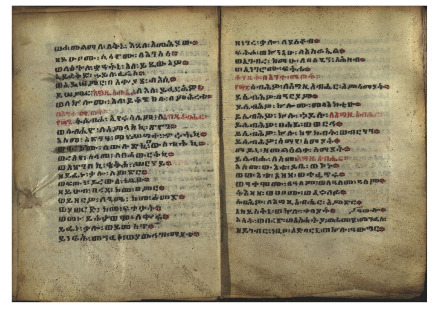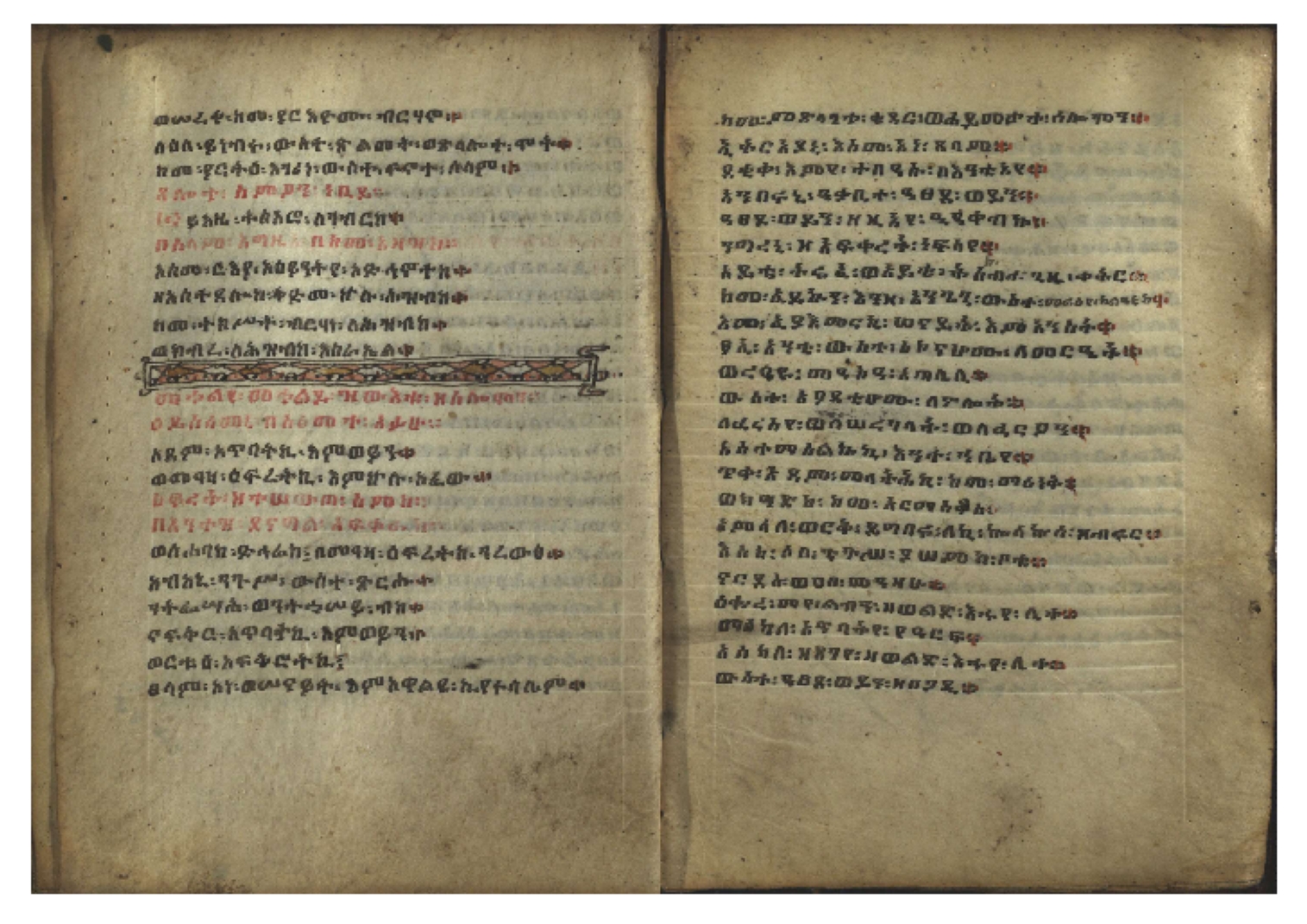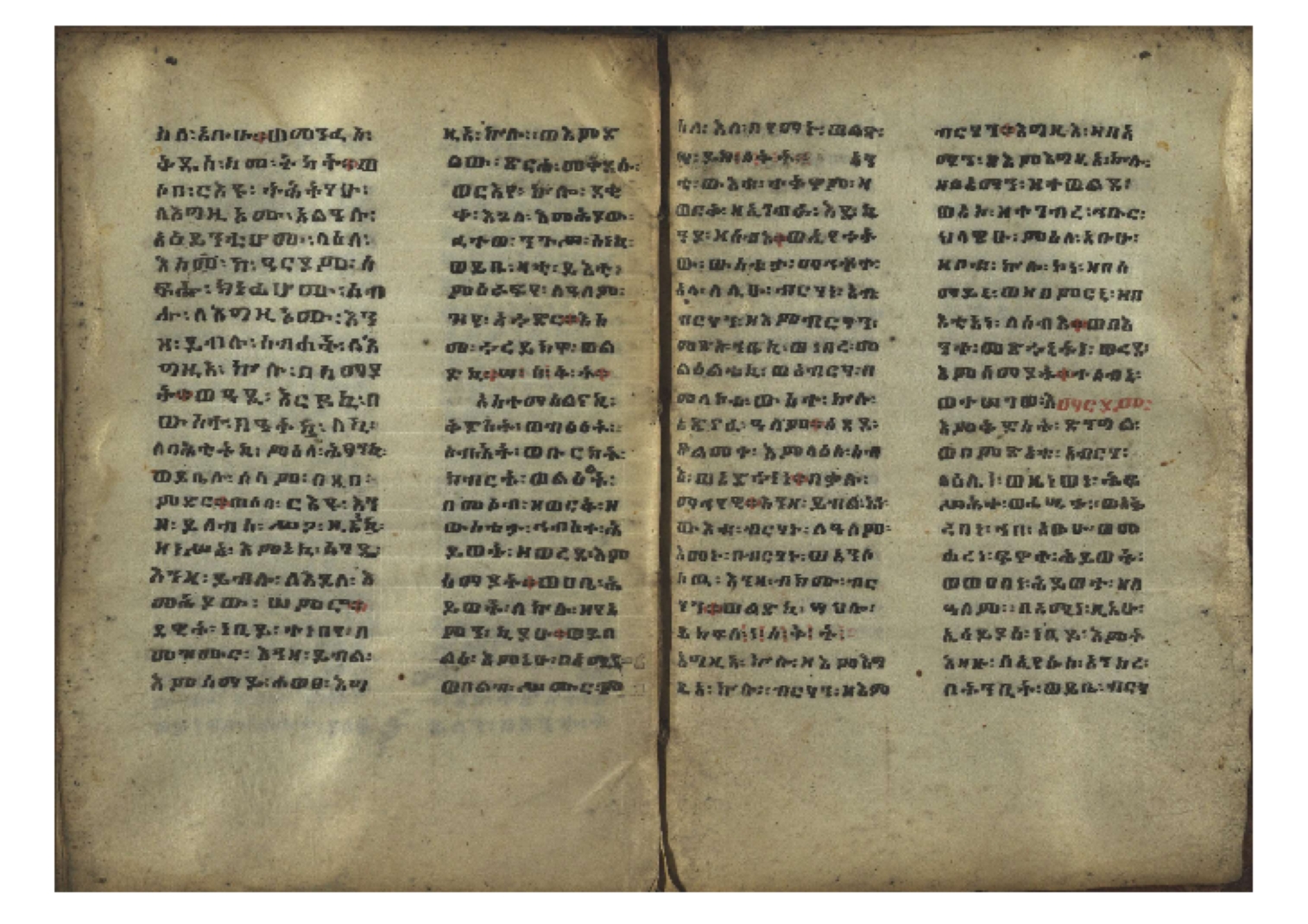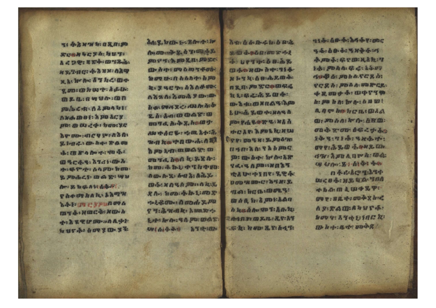 1. F. 1r–v: Mälkǝʾ-hymn to St Michael (Chaine nr. 119), written in an inaccurate hand. The words ሰላም፡ and ሚካኤል፡ are rubricated. Incipit: ሰላም፡ ለዝክረ፡ ስምከ፡ ምስለ፡ ስመ፡ ልዑል፡ ዘተሳተፈ። ወልደ፡ ያሬድ፡ ሄኖክ፡ በከመ፡ ጸሐፈ፡ ሶበ፡ እጼ<ውዕ፡> ስመከ፡ ከሲትየ፡ አፈ፡ ረዳኤ።. The text is incomplete. 2. Ff. 1v–2v: pen trials and other minor scribbles in pencil. 3. F. 156rb–v: Note on the commission of the manuscript, written in Amharic. It mentions the commissioner Aläqa Wäldä Śǝllase and the recipient Lǝǧǧ Abärra Nǝguse. Incipit: መጋቢት፡ ፲፩ቀን፡ አለቃ፡ ወልደ፡ ሥላሴ፡ ለልጅ፡ አበራ፡ ንጉሴ፡ የብራና፡ ዳዊት፡ ሲሸጥ፡ እማኝ፡ ቄስ፡ ኪዳኑ፡ የልጅ፡ አበራ፡ የሸቃ፡. ተእምራ(156v)ት፡ መድህን፡ አለቃ፡ ሐደረ፡ በሶስት፡ ብር፡ ታላድ፡ ሶሽጥ፡ በሶስት፡ ብር፡ ታላድ፡ ሺገዛ፡ ፈጣሚ፡ ብላ፡ ገብሩ፡. |