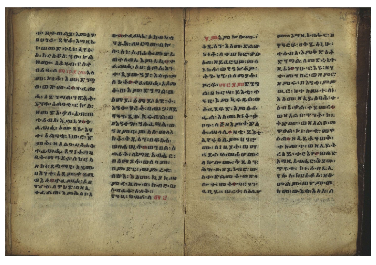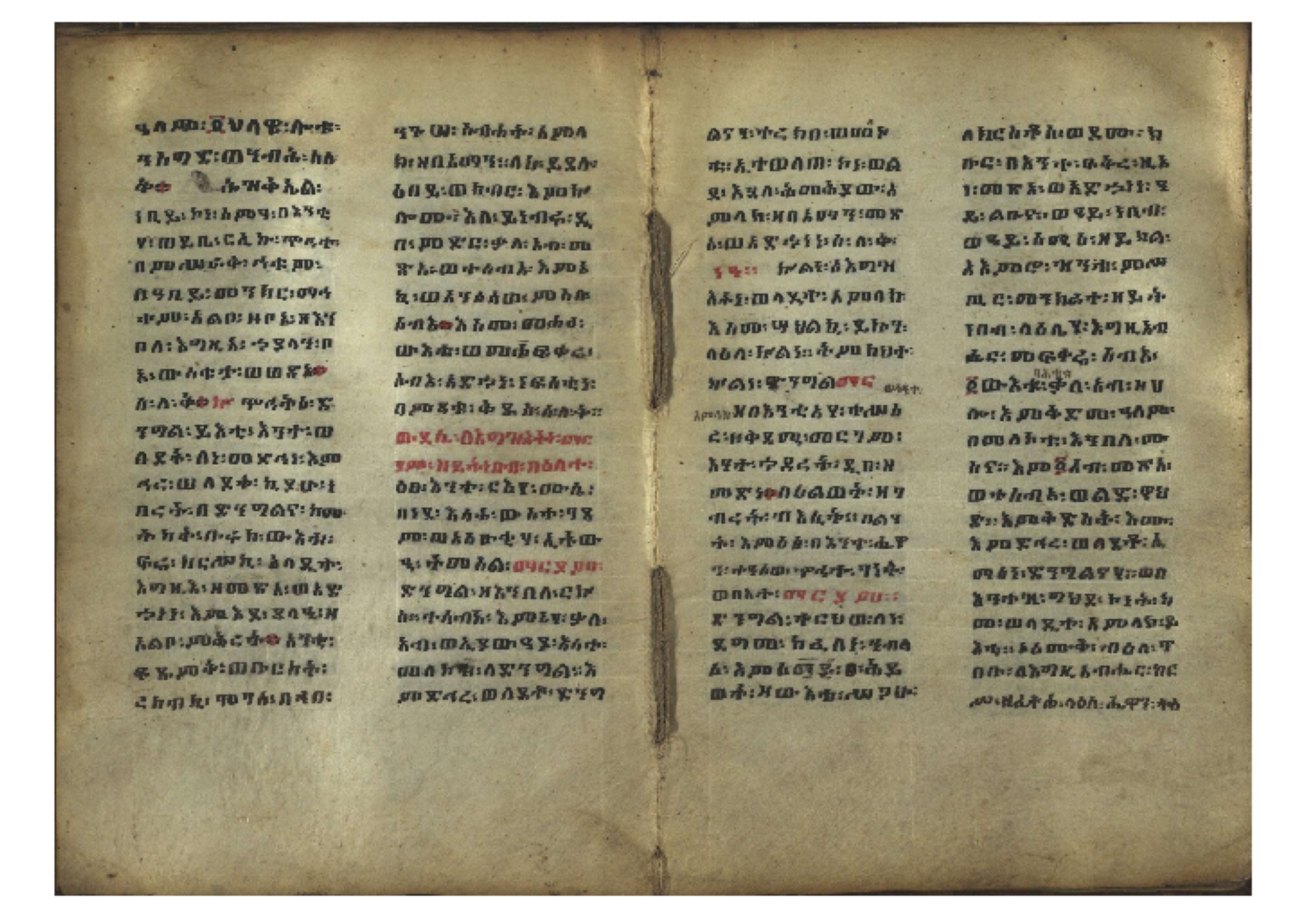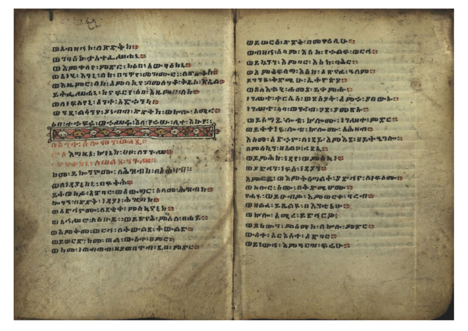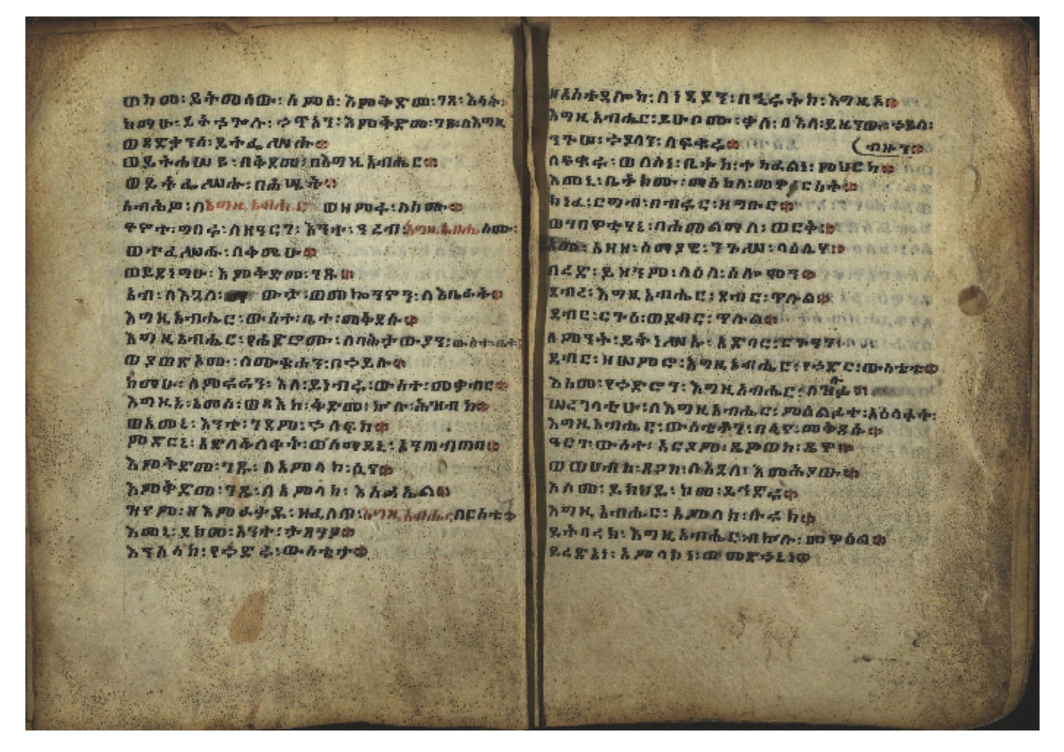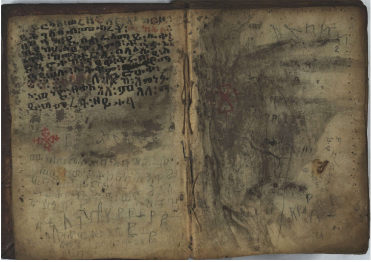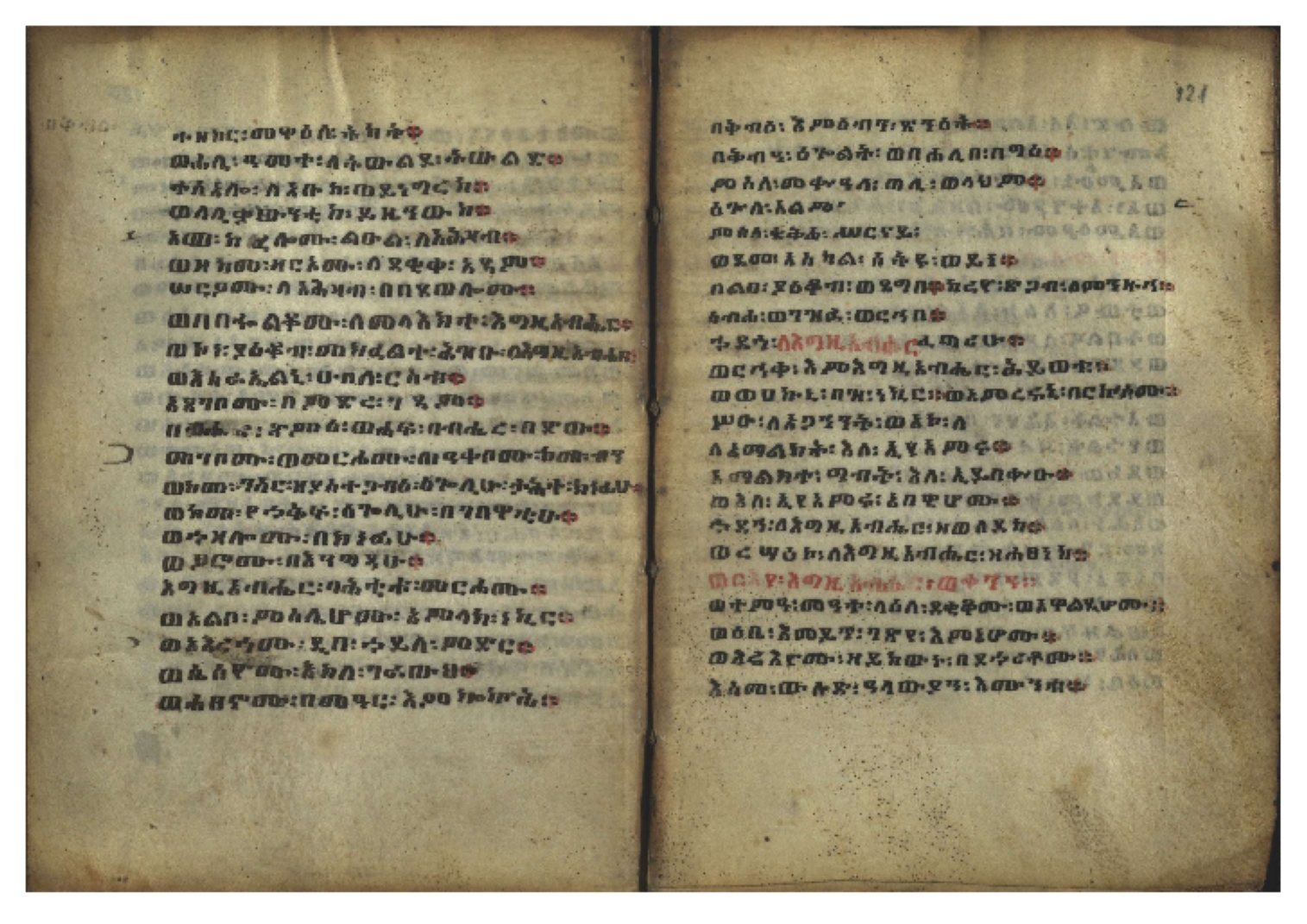 1. F. 1r–v: Mälkǝʾ-hymn to St Michael (Chaine nr. 119), written in an inaccurate hand. The words ሰላም፡ and ሚካኤል፡ are rubricated. Incipit: ሰላም፡ ለዝክረ፡ ስምከ፡ ምስለ፡ ስመ፡ ልዑል፡ ዘተሳተፈ። ወልደ፡ ያሬድ፡ ሄኖክ፡ በከመ፡ ጸሐፈ፡ ሶበ፡ እጼ<ውዕ፡> ስመከ፡ ከሲትየ፡ አፈ፡ ረዳኤ።. The text is incomplete. 2. Ff. 1v–2v: pen trials and other minor scribbles in pencil. 3. F. 156rb–v: Note on the commission of the manuscript, written in Amharic. It mentions the commissioner Aläqa Wäldä Śǝllase and the recipient Lǝǧǧ Abärra Nǝguse. Incipit: መጋቢት፡ ፲፩ቀን፡ አለቃ፡ ወልደ፡ ሥላሴ፡ ለልጅ፡ አበራ፡ ንጉሴ፡ የብራና፡ ዳዊት፡ ሲሸጥ፡ እማኝ፡ ቄስ፡ ኪዳኑ፡ የልጅ፡ አበራ፡ የሸቃ፡. ተእምራ(156v)ት፡ መድህን፡ አለቃ፡ ሐደረ፡ በሶስት፡ ብር፡ ታላድ፡ ሶሽጥ፡ በሶስት፡ ብር፡ ታላድ፡ ሺገዛ፡ ፈጣሚ፡ ብላ፡ ገብሩ፡. |