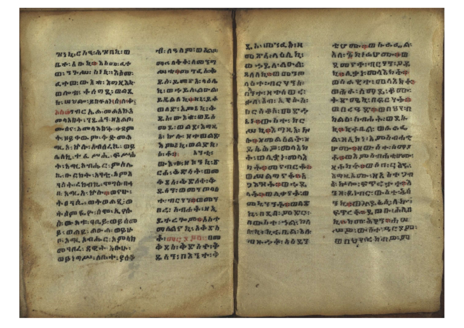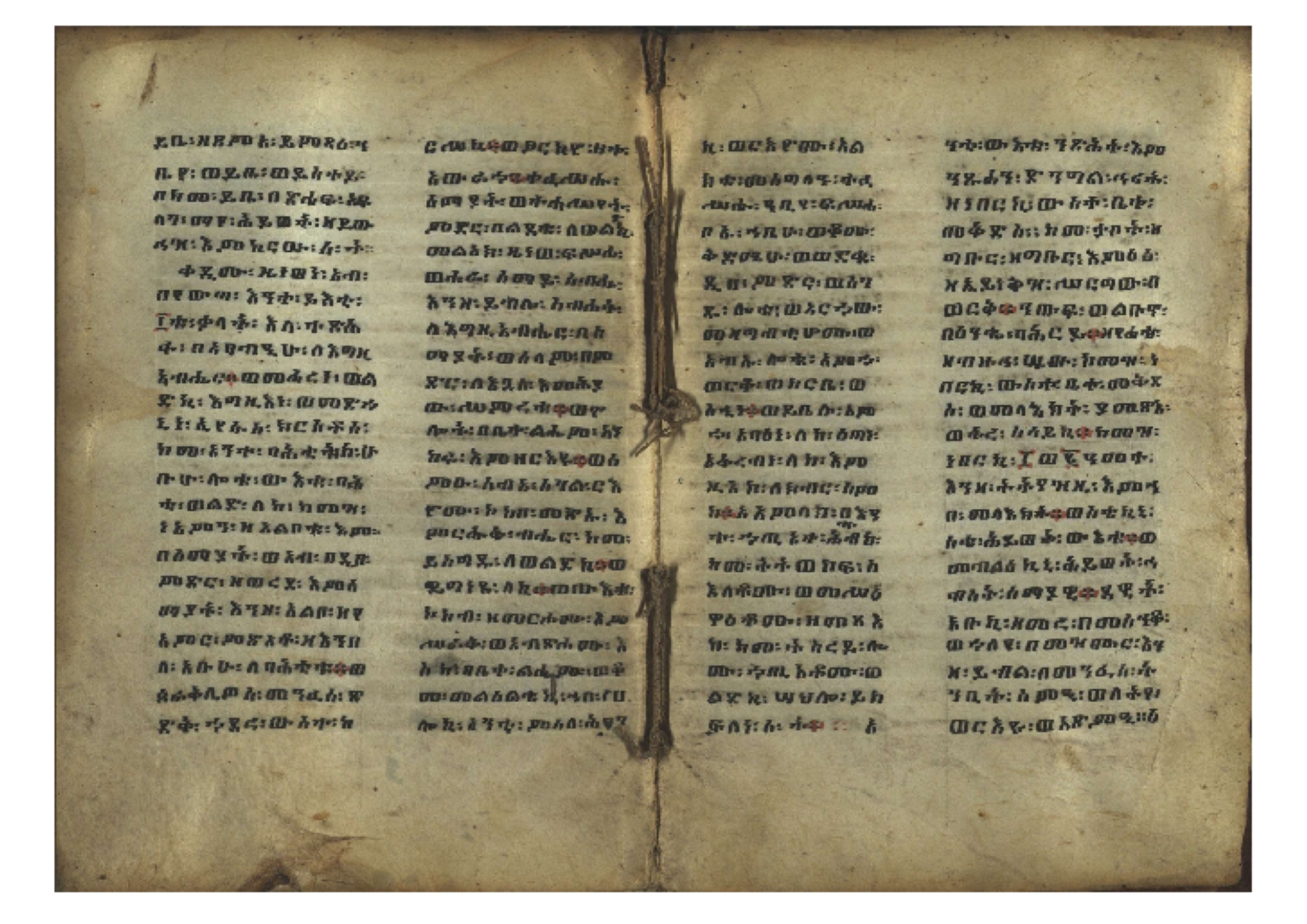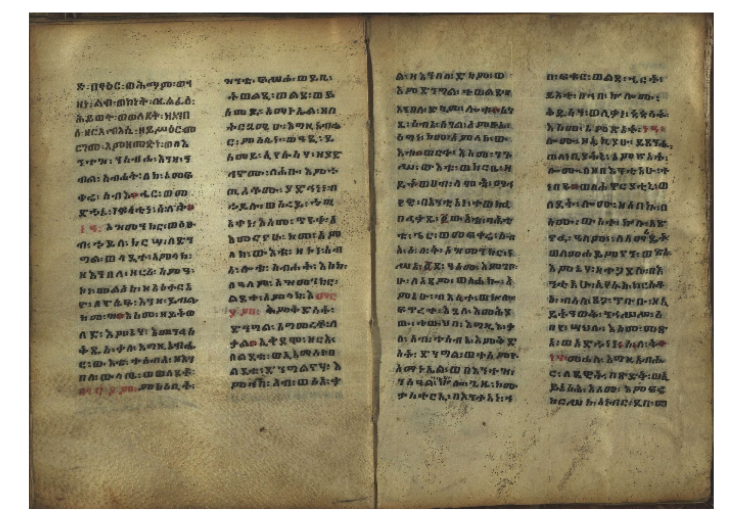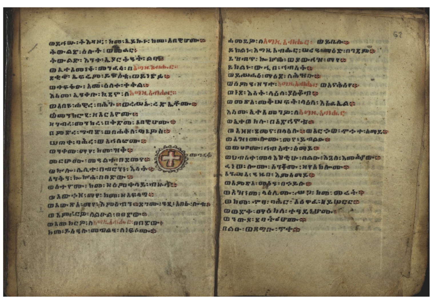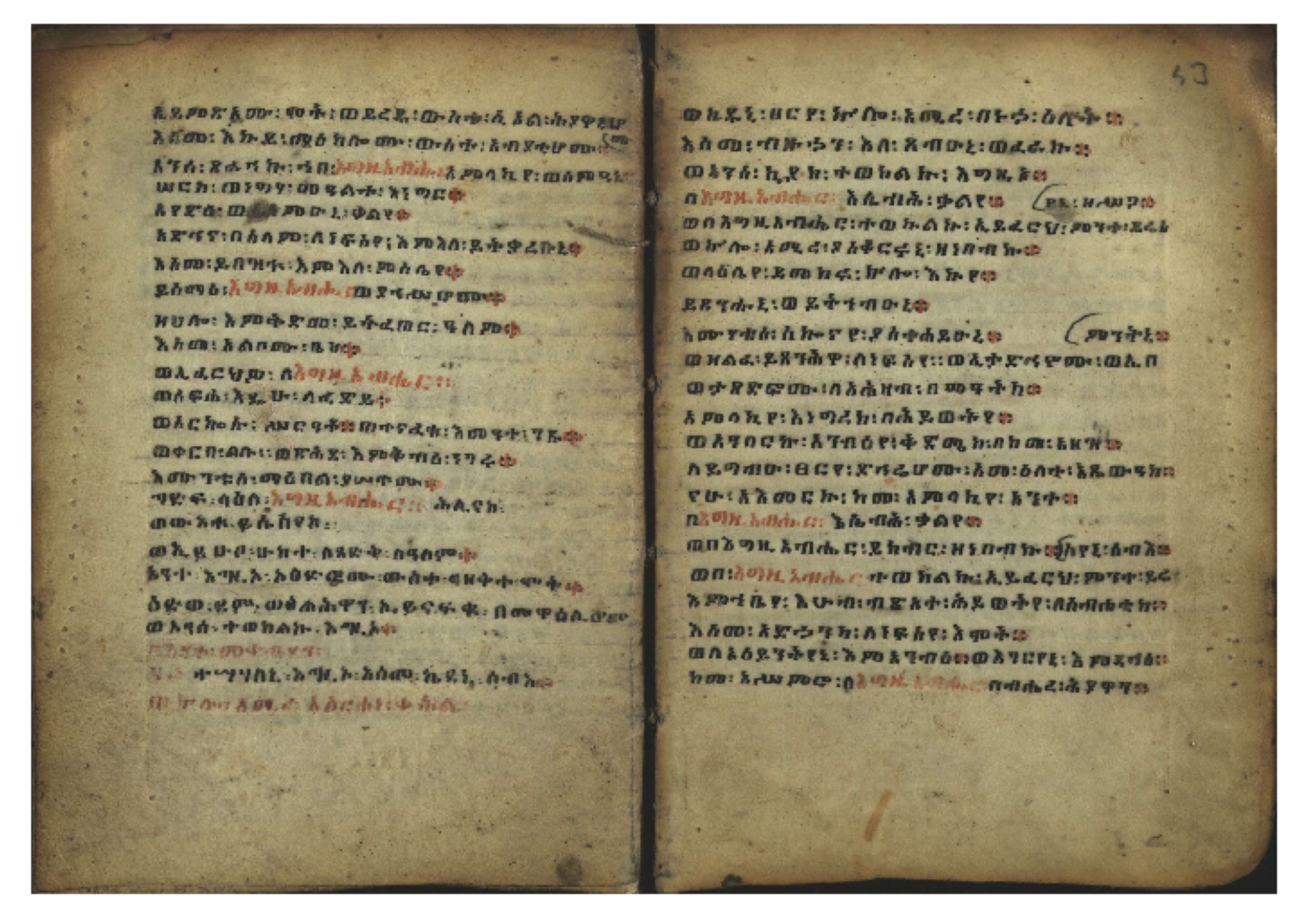 1. F. 1r–v: Mälkǝʾ-hymn to St Michael (Chaine nr. 119), written in an inaccurate hand. The words ሰላም፡ and ሚካኤል፡ are rubricated. Incipit: ሰላም፡ ለዝክረ፡ ስምከ፡ ምስለ፡ ስመ፡ ልዑል፡ ዘተሳተፈ። ወልደ፡ ያሬድ፡ ሄኖክ፡ በከመ፡ ጸሐፈ፡ ሶበ፡ እጼ<ውዕ፡> ስመከ፡ ከሲትየ፡ አፈ፡ ረዳኤ።. The text is incomplete. 2. Ff. 1v–2v: pen trials and other minor scribbles in pencil. 3. F. 156rb–v: Note on the commission of the manuscript, written in Amharic. It mentions the commissioner Aläqa Wäldä Śǝllase and the recipient Lǝǧǧ Abärra Nǝguse. Incipit: መጋቢት፡ ፲፩ቀን፡ አለቃ፡ ወልደ፡ ሥላሴ፡ ለልጅ፡ አበራ፡ ንጉሴ፡ የብራና፡ ዳዊት፡ ሲሸጥ፡ እማኝ፡ ቄስ፡ ኪዳኑ፡ የልጅ፡ አበራ፡ የሸቃ፡. ተእምራ(156v)ት፡ መድህን፡ አለቃ፡ ሐደረ፡ በሶስት፡ ብር፡ ታላድ፡ ሶሽጥ፡ በሶስት፡ ብር፡ ታላድ፡ ሺገዛ፡ ፈጣሚ፡ ብላ፡ ገብሩ፡. |