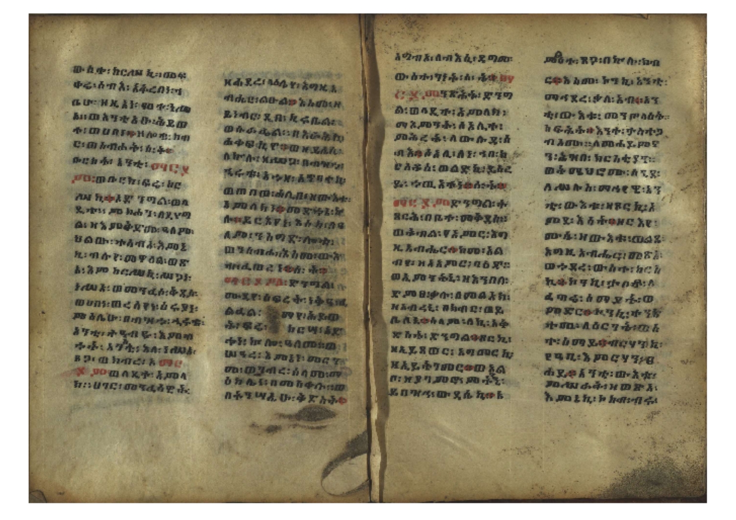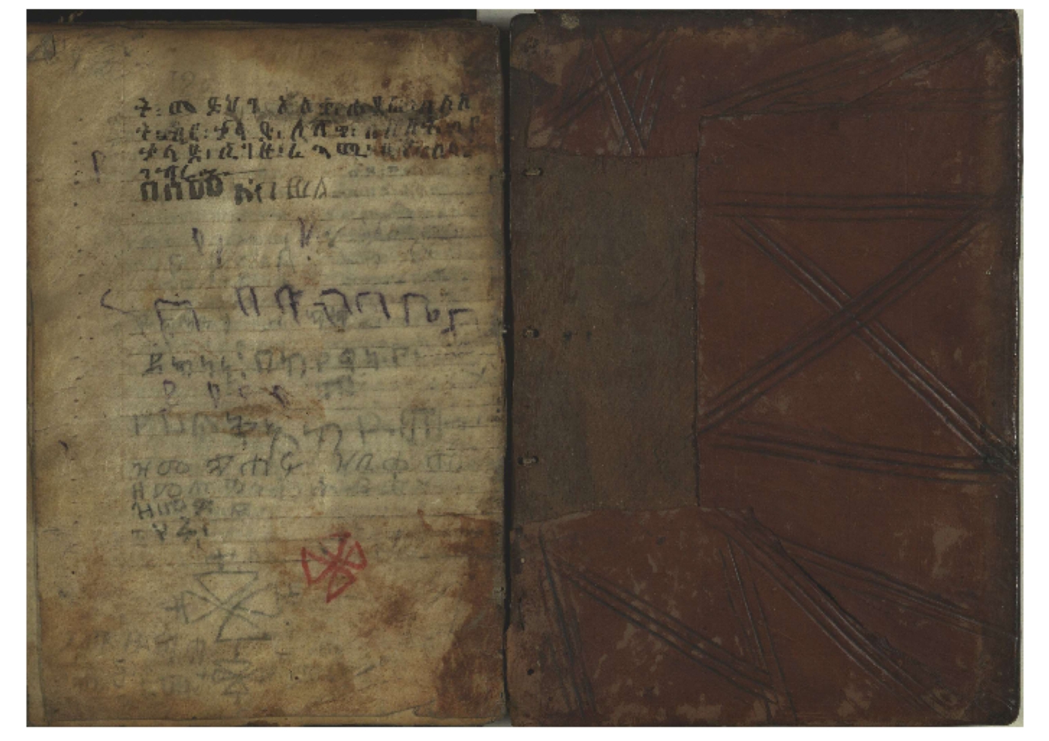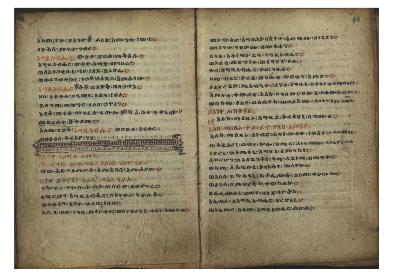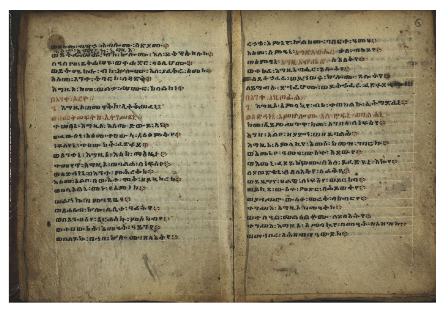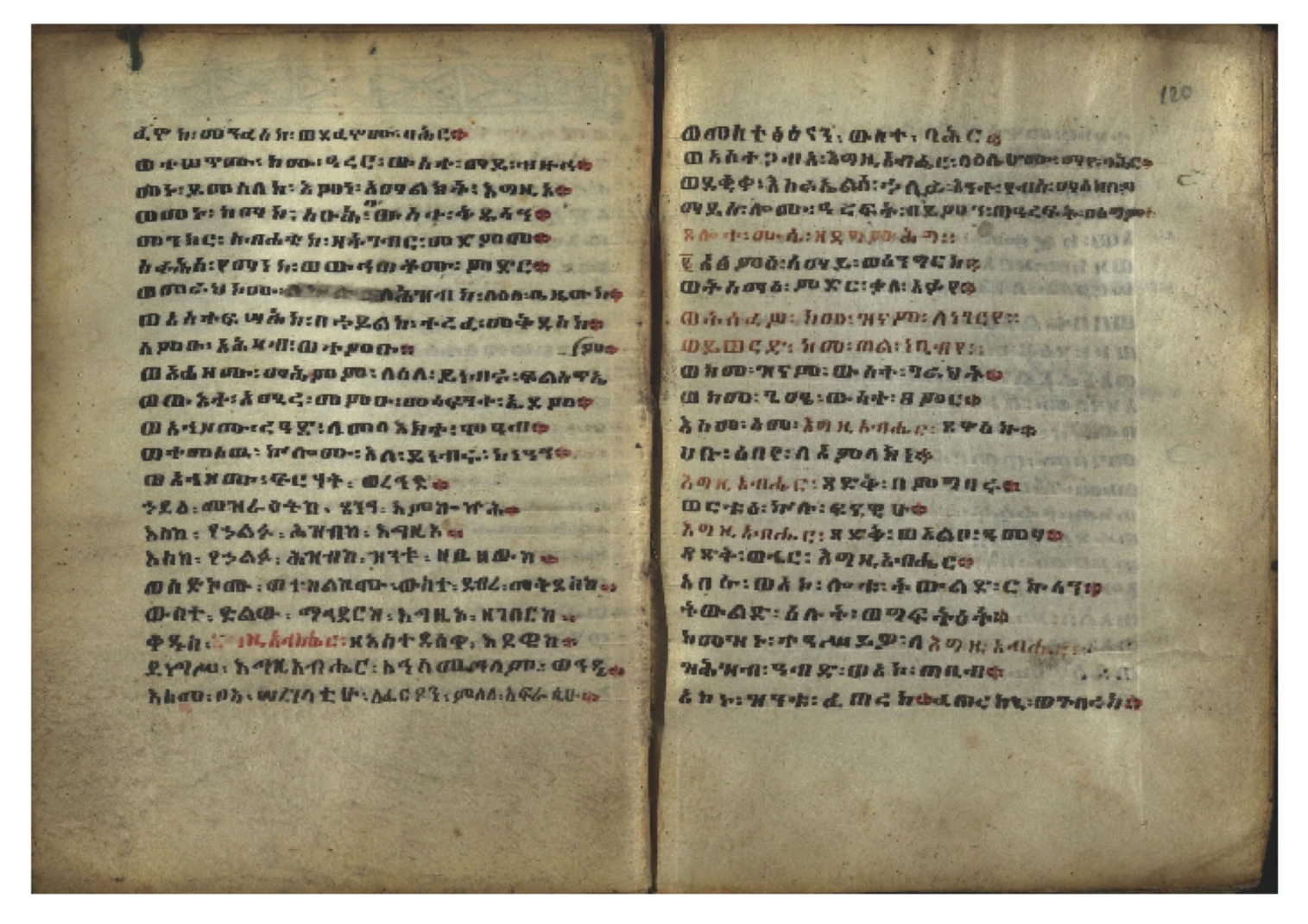 1. F. 1r–v: Mälkǝʾ-hymn to St Michael (Chaine nr. 119), written in an inaccurate hand. The words ሰላም፡ and ሚካኤል፡ are rubricated. Incipit: ሰላም፡ ለዝክረ፡ ስምከ፡ ምስለ፡ ስመ፡ ልዑል፡ ዘተሳተፈ። ወልደ፡ ያሬድ፡ ሄኖክ፡ በከመ፡ ጸሐፈ፡ ሶበ፡ እጼ<ውዕ፡> ስመከ፡ ከሲትየ፡ አፈ፡ ረዳኤ።. The text is incomplete. 2. Ff. 1v–2v: pen trials and other minor scribbles in pencil. 3. F. 156rb–v: Note on the commission of the manuscript, written in Amharic. It mentions the commissioner Aläqa Wäldä Śǝllase and the recipient Lǝǧǧ Abärra Nǝguse. Incipit: መጋቢት፡ ፲፩ቀን፡ አለቃ፡ ወልደ፡ ሥላሴ፡ ለልጅ፡ አበራ፡ ንጉሴ፡ የብራና፡ ዳዊት፡ ሲሸጥ፡ እማኝ፡ ቄስ፡ ኪዳኑ፡ የልጅ፡ አበራ፡ የሸቃ፡. ተእምራ(156v)ት፡ መድህን፡ አለቃ፡ ሐደረ፡ በሶስት፡ ብር፡ ታላድ፡ ሶሽጥ፡ በሶስት፡ ብር፡ ታላድ፡ ሺገዛ፡ ፈጣሚ፡ ብላ፡ ገብሩ፡. |