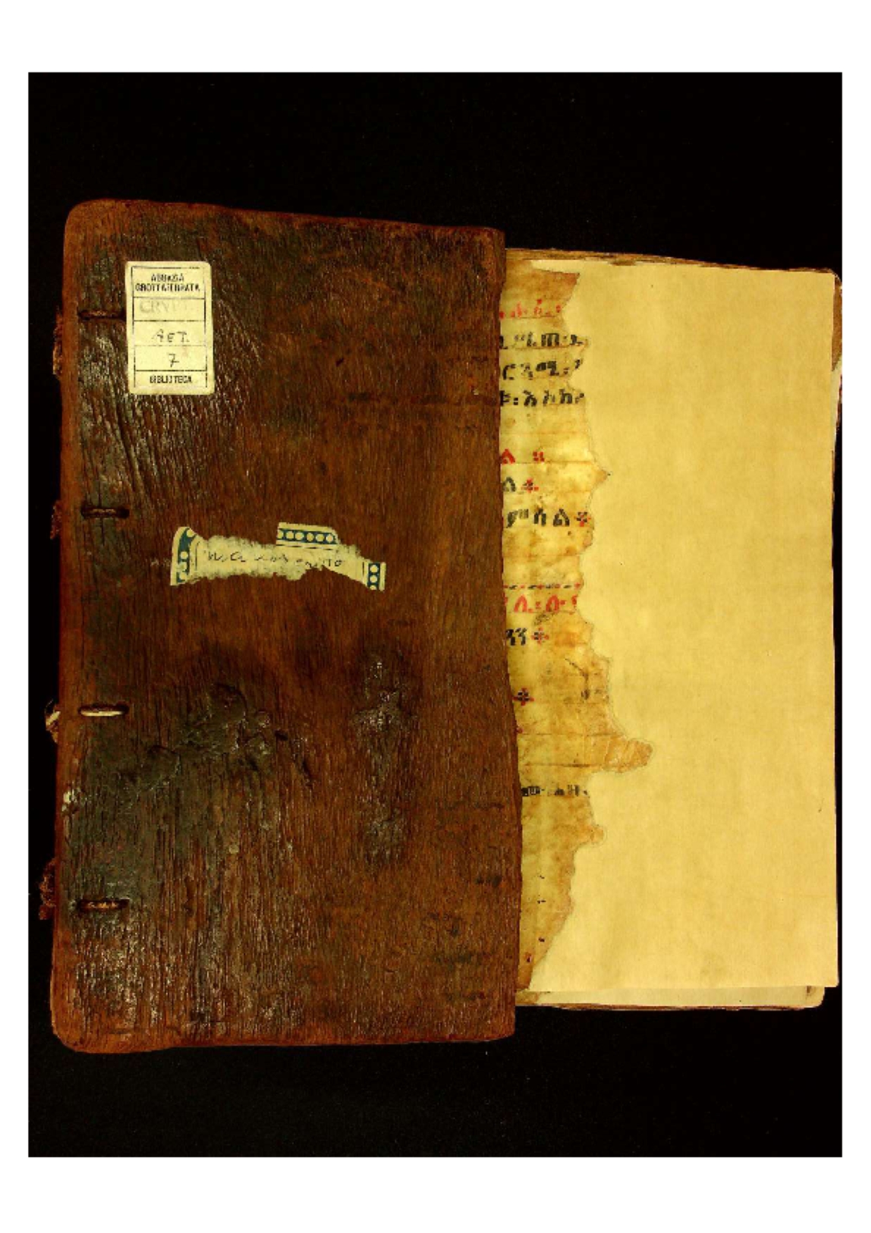 Unknown provenance. The codex probably dates from the second half of the 17th century, in view of the fact that it includes a genealogical note (note 7, f. 220ra–va) that mentions the family members of King Yoḥannǝs I, who reigned from 1667 to 1682. The manuscript then had several possessors. Additional notes 3 (f. 173v) and 6 (f. 199v) mention Däqsǝyos, who indicated himself as gäbrǝkä ‘your servant’. He was probably a later owner of the codex. Another possessor was Däbtära Kiros, mentioned in note 5 (f. 190v) together with his father Gäbrä Maryam and his mother Wälättä Rufaʾel. Däbtära Kiros donated the book to an unspecified church of St Michael. The two notes written in Italian (notes 1 on f. 2r and 2 on f. 5r) both mention the battle of Amba Aradom (It. “Amba Aradam”), south-east of Mekelle. The battle took place on 10–15 February 1936 during the Italian invasion of Ethiopia. Note 1 also states that the book was donated to the Bruschettini family, presumably after being taken as war booty from a church located near Amba Aradom, immediately after the Italian victory in the battle (both notes are dated 16 February 1936, immediately after the end of the battle, and note 2 also includes the time when the codex passed into the hands of the next owner). Note 2 also mentions a certain P. Paloboni. The codex may in particular have come from the church of Ǝnda Mikaʾel Gwəlle (It. Enda Micael Gullè). On this historical reconstruction, see Dal Sasso, E. 2016–2017, Studio codicologico, diagnostica e tecniche di intervento non invasive per il restauro del ms. etiopico CRYPT. AET. 7 della Biblioteca statale del Monumento nazionale Abbazia greca di Grottaferrata, Tesi di laurea magistrale in Conservazione e Restauro dei Beni Culturali (LMR/02) presso l’Istituto Centrale per il Restauro e la Conservazione del Patrimonio Archivistico e librario. The manuscript finally entered the abbey library between 1991 and 2000. It is not mentioned in Raineri O., 1991, ‘Rec. S. Uhlig, Introduction to Ethiopian Palaeography’. Orientalia Christiana Periodica, 58 (1991), 215–16, while it is described in Proverbio D.V., 2000, ‘Inventario sommario dei manoscritti arabi, ebraici, etiopici – con notizia dei turchi – conservati presso la Biblioteca della Badia di Grottaferrata’. Atti della Accademia nazionale dei Lincei, Memorie, Classe di scienze morali, storiche e filologiche, serie IX, 12 (2000), 468–570 (here pp. 493–97). |