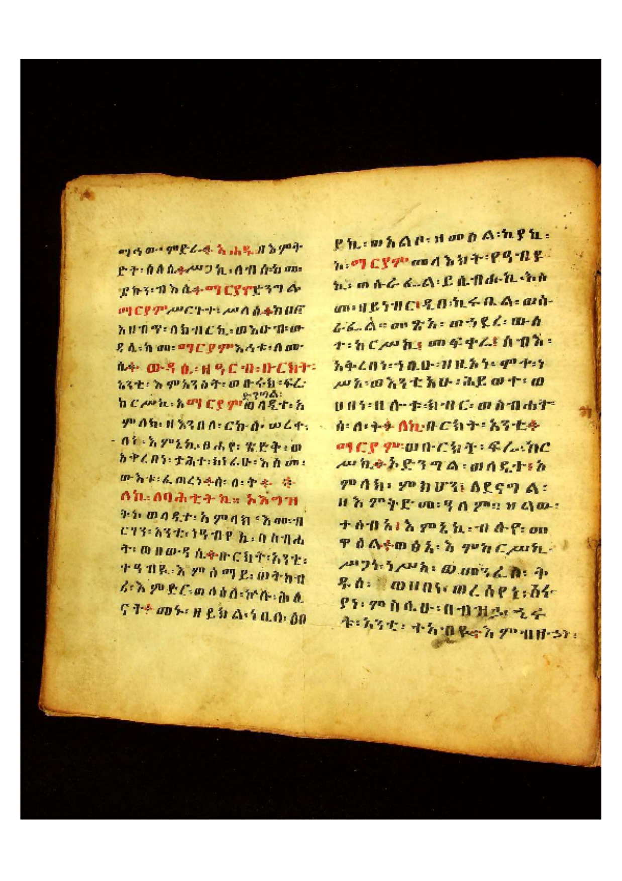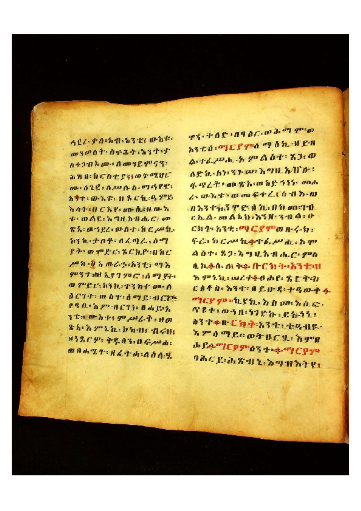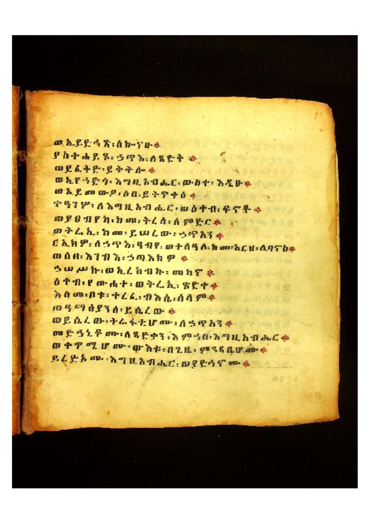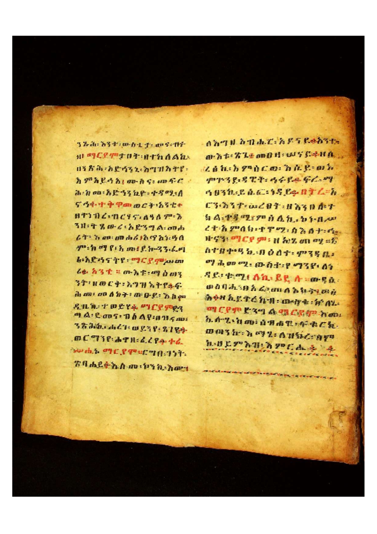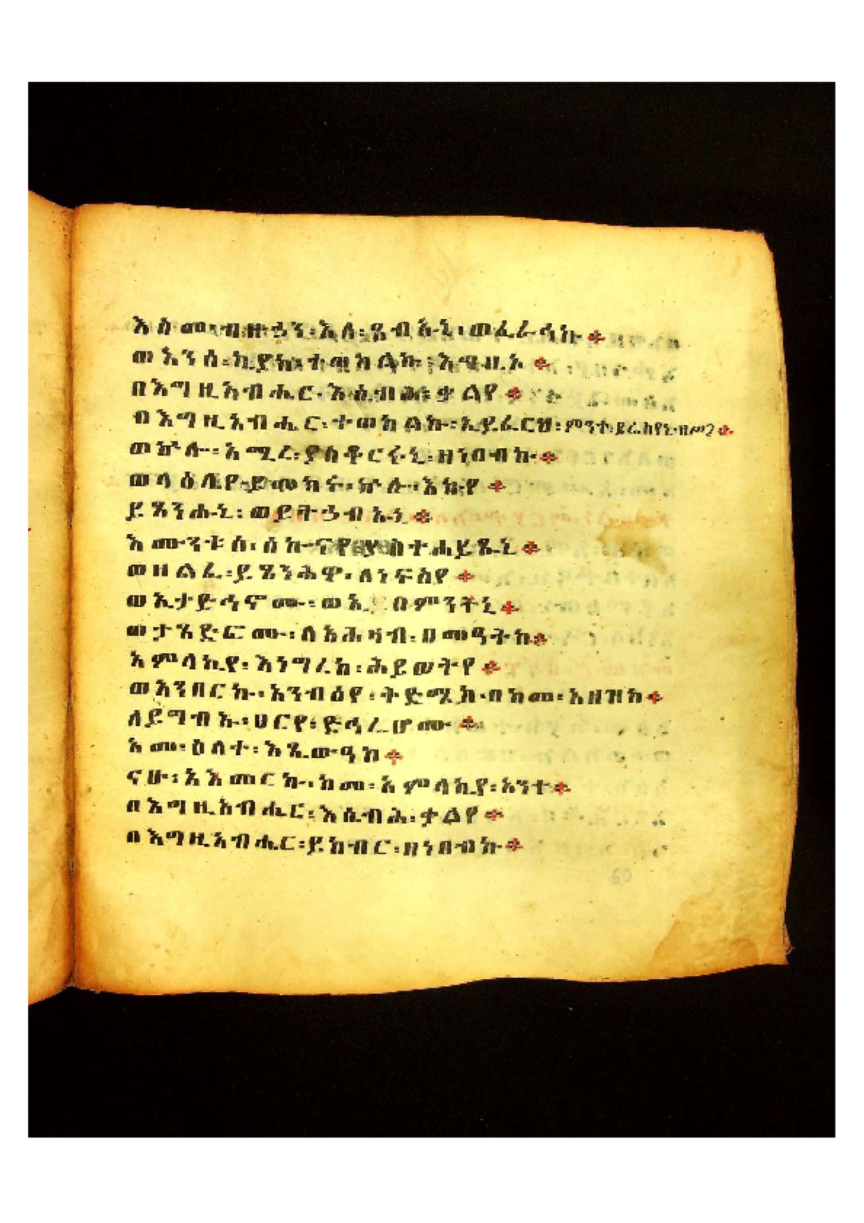1. F. 2r: donation note written vertically in the outer margin, in black ink: “alla famiglia Bruschettini, Pussy […] Battaglia dell’Amba Aradam il 16 febbraio 1936 XIV”. The note, written in Italian and partly illegible, indicates the Bruschettini family as the receiver of the book and mentions the Battle of Amba Aradam, which took place on 16 February 1936. 2. F. 5r: note written in Italian in the outer upper margin, in red pencil: “Amba Aradam 16/2/XIV ore 17.30 P. Paloboni (?)”. This note also mentions the Battle of Amba Aradam, together with an individual whose name is partially unclear (P. Paloboni?). 3. F. 173v: supplication note written in small script in a mediocre hand, at the end of the “Psalms of David”: ዕቀበኒ፡ እምዓይነ፡ ደዌ፡ ወሞት፡ ለገብርከ፡ ደቅስዮስ፡, “protect me, your servant Däqsəyos, from the eye of infirmity and death”. The note mentions a certain Däqsəyos, indicated as “your servant” (possibly a later owner of the codex). 4. F. 173v: incipit of the Gəʿəz and Amharic prayer, perhaps a writing exercise. The note is written in an inaccurate calligraphy on the outer margin of the folio, next to the prayer. The entire text is የህፂ፡ ኖኅን፡ ከማየ[፡] አይኅ። እስራኤልን፡ ከፈርዖን፡ ዳዊትን፡ ከሳኦል፡ ከኢሎፍሊ። ኤ. 5. F. 190v: donation note, written in black ink in a mediocre hand. Text: ዝመጽሐፍ፡ ዘደብተራ፡ ኪሮስ፡ ዘወሀቦ፡ ለታቦተ፡ ሚካኤል፡ ኢትርስዑኒ፡ በአቡነ፡ ዘበሰማያት፡ ዘአቡየ፡ ገብረ፡ ማርያም፡ ወለእምየ፡ ወለተ፡ ሩፋኤል፡, “This book belongs to däbtära Kiros, who donated it to the tabot of [the church of St] Michael. Do not forget me for our Father who is in heaven. [It also belongs] to my father Gäbrä Maryam and my mother Wälättä Rufaʾel”. 6. F. 199v: writings executed in an inaccurate hand, perhaps the same of note 4. The note includes pen trials (ፈቲነ፡ ብርዕ፡ ዘፈረና፡ etc.), reproduces the explicit of the “Song of the songs” (ስብሐታተኪ፡ ማርያም፡ ከመ፡ እንተ፡ ሕልቀት፡ etc.) and the incipit of the “Praise of Mary” (ውዳሴ፡ ዘሰኑይ፡ ፈቀደ፡ እግዚእ፡ etc., partly rubricated). The writings also mention Däqsəyos, indicated as “your servant” (possibly a later owner of the codex) 7. F. 220ra–va: Genealogic note written on two columns. The note illustrates the family tree of King Yoḥannǝs I, who reigned from 1667 to 1682. The text is acephalous. Incipit: [ወለ]ደ፡ እምሐና፡ ብእሲቱ፡ አሦተ፡ ቅዱሳንሃ፡ ወአሦተ፡ ቅዱሳንኒ፡ እምነ፡ ጳውሊ፡ ብእሲሃ፡ ወለደቶሙ፡ ለአቤተኁን፡ ማእምሮ፡ ወለዘሥላሴ፡ ወአቤተኁን፡ ማእምሮኒ፡ ወለደ፡ አቃርዮስ፡ ወአቃርዮስኒ፡ ወለደ፡ እመቤት፡ እኅተ፡ ክርስቶስሃ፡. The text is published and translated in Proverbio D.V., 2000, ‘Inventario sommario dei manoscritti arabi, ebraici, etiopici – con notizia dei turchi – conservati presso la Biblioteca della Badia di Grottaferrata’. Atti della Accademia nazionale dei Lincei, Memorie, Classe di scienze morali, storiche e filologiche, serie IX, 12 (2000), 468–570 (here pp. 496–97, Appendice III). 8. F. 220va–b: Protective prayer against snakes, written on two columns. Incipit: በስመ፡ አብ፡ … ጸሎት፡ በእንተ፡ ዓርዌ፡ ምድር። ሶበ፡ በጽሐ፡ መልእክት፡ ሐሰውከ፡ በል፡ ፫ጊዜ፡ አኂዘከ፡ ዘፈረ፡ ልብሰ፡ ለእመ፡ ሀሎ፡ ርሑቀ፡ አስትዮ፡. The prayer is probably written in the same hand of note 7. 9. F. 220vb: Unidentified magic prayer containing asmat-names. Incipit: በስመ፡ አብ፡ … ኦላዘላህም፡ አህጉረ፡ ቀዳ[.]፡ ፍሖም፡ ሊስ፡ አፍሊስ፡ ምልክዮስ፡ ዘ[..]ማኤል፡ በዝንቱ፡ አስማቲከ፡ [.]ጽ[..] ኃይለ፡ በረድ፡ ወነፋስ፡ ከማሁ፡. |