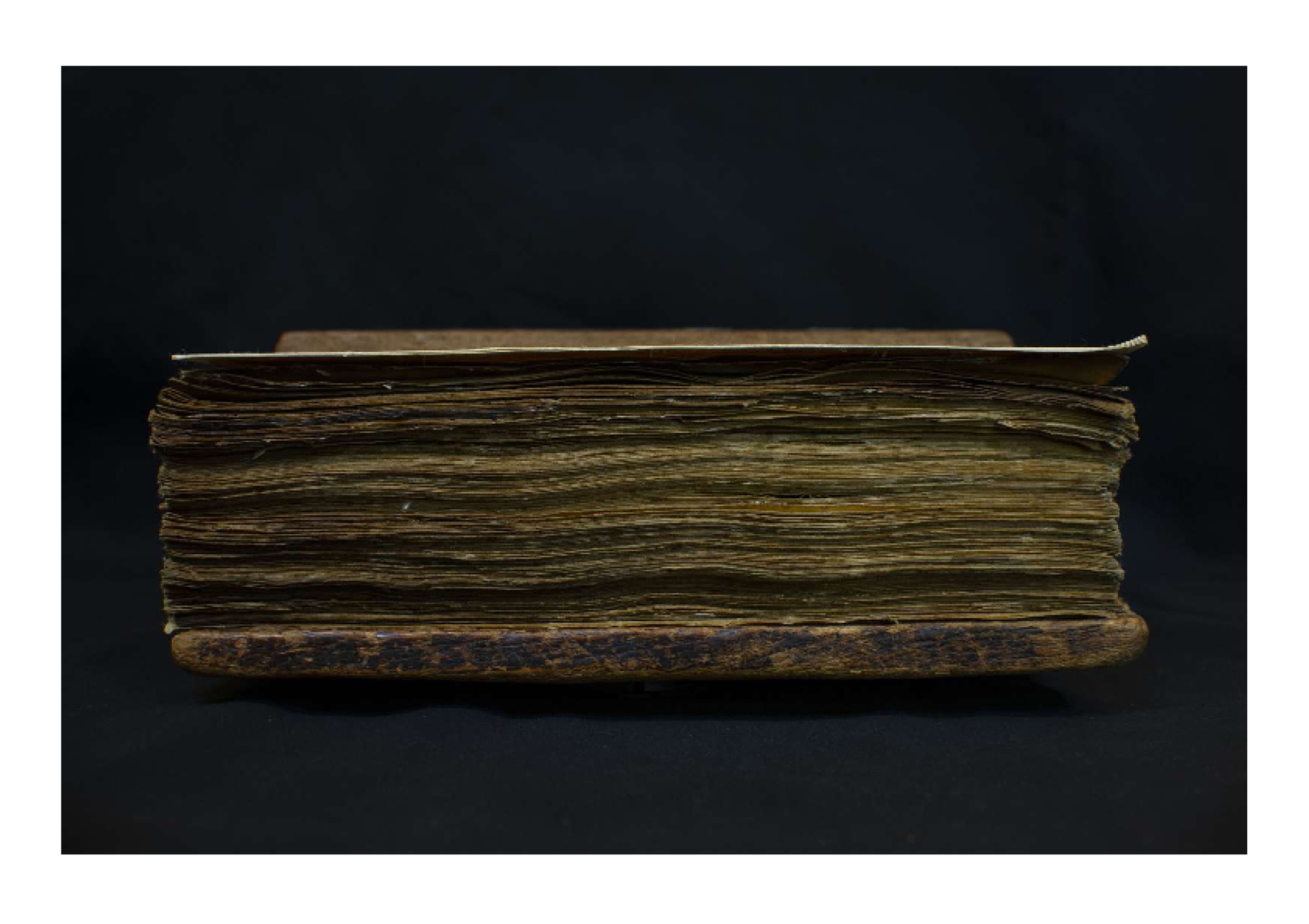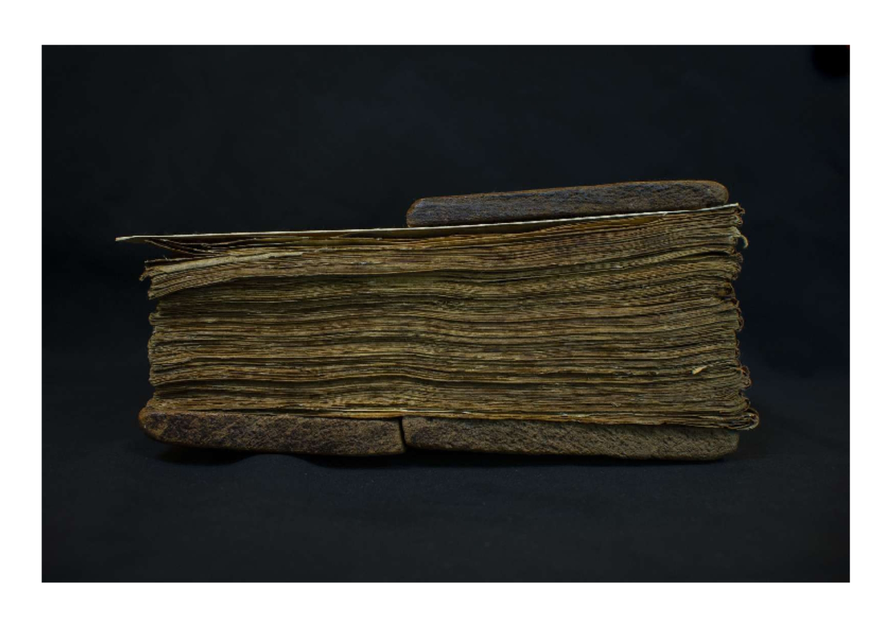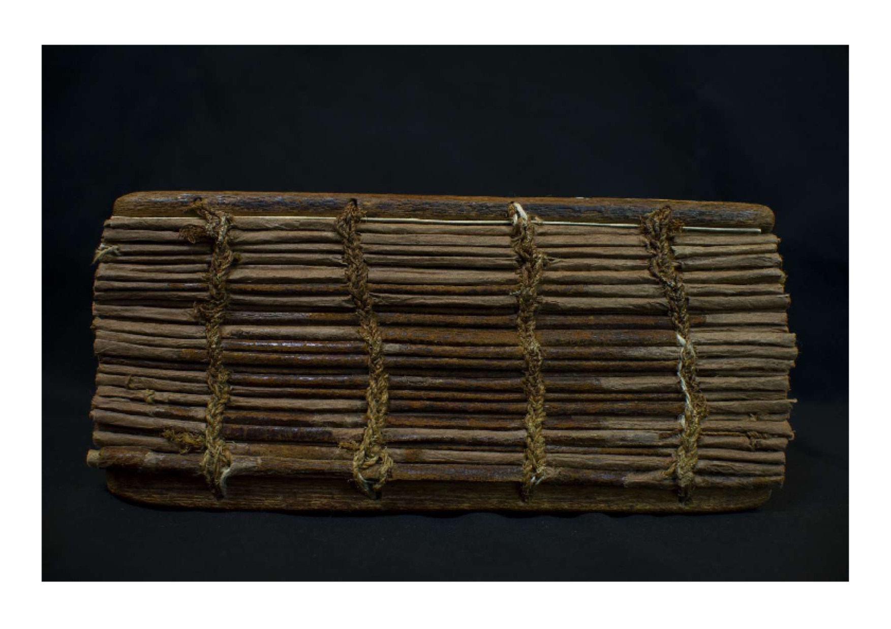 Two wooden boards covered. The spine is uncovered. Four sewing stations. |