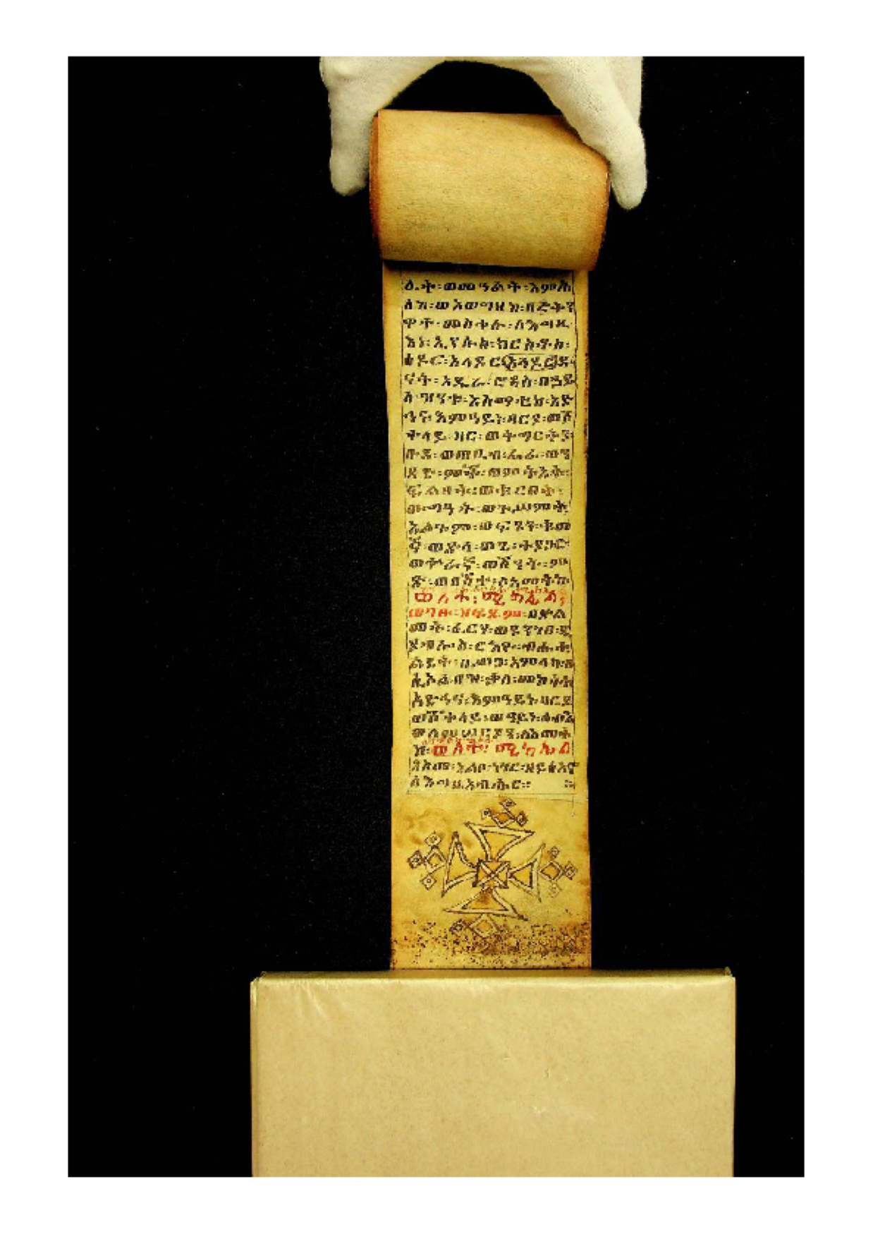 Unknown provenance. The manuscript belonged to a certain, Wälättä Mikaʾel, probably the original owner of the scroll since her name is written in the main hand at the end of the single texts. Another name, that of a certain Täsfa Mikaʾel (possibly a later owner), has been added interlineally. It is not known when the manuscript entered the abbey library, presumably before 1908, year of death of Father Rocchi. The scroll is mentioned in Zanutto S., 1932, Bibliografia etiopica, in continuazione alla «Bibliografia etiopica» di G. Fumagalli, II: Manoscritti etiopici, p. 80 (nr. 153). |