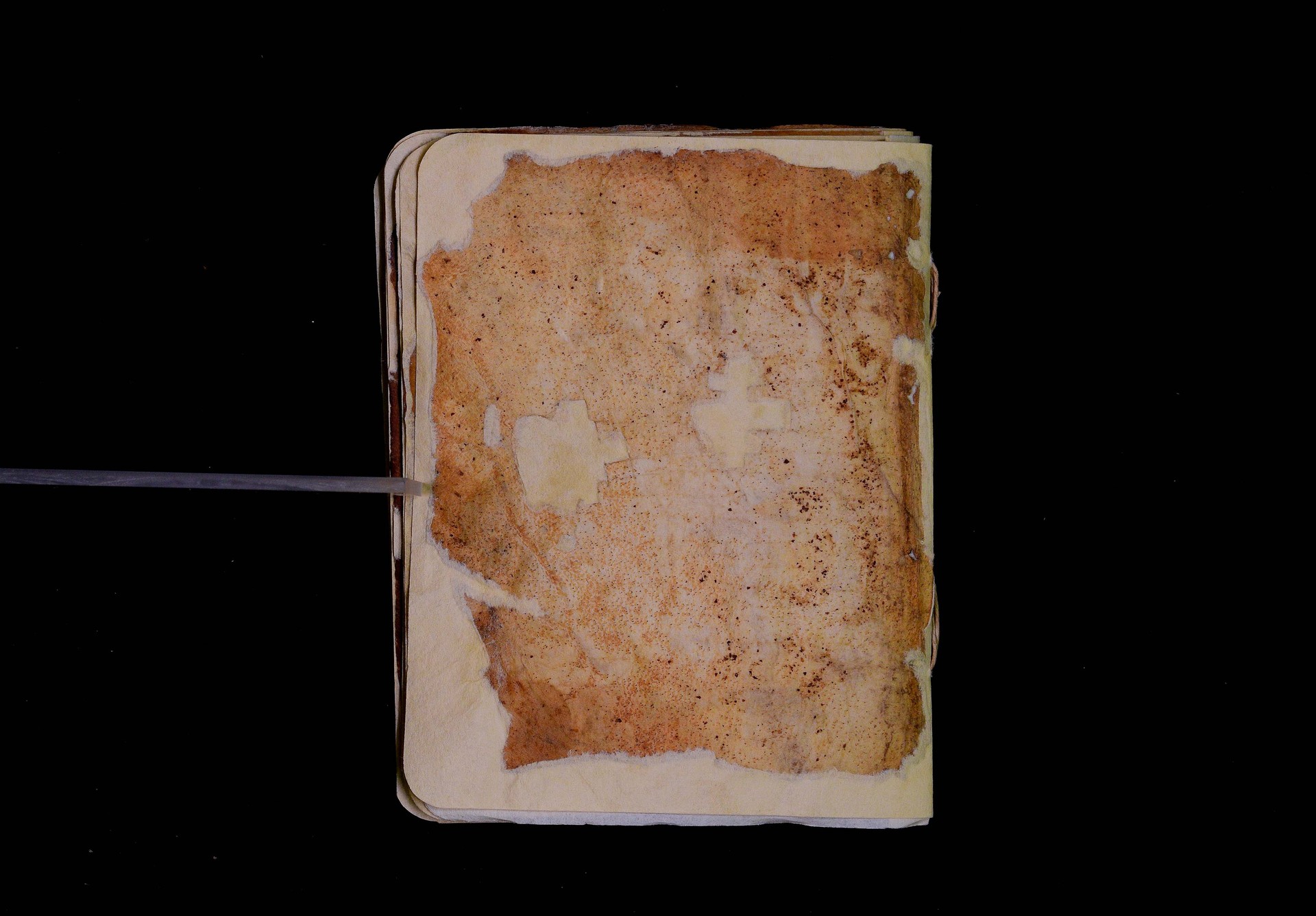 Blind ruling, from outside to inside. Lines are written above the ruling. |