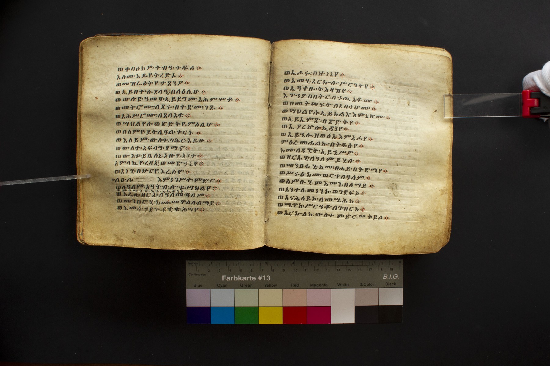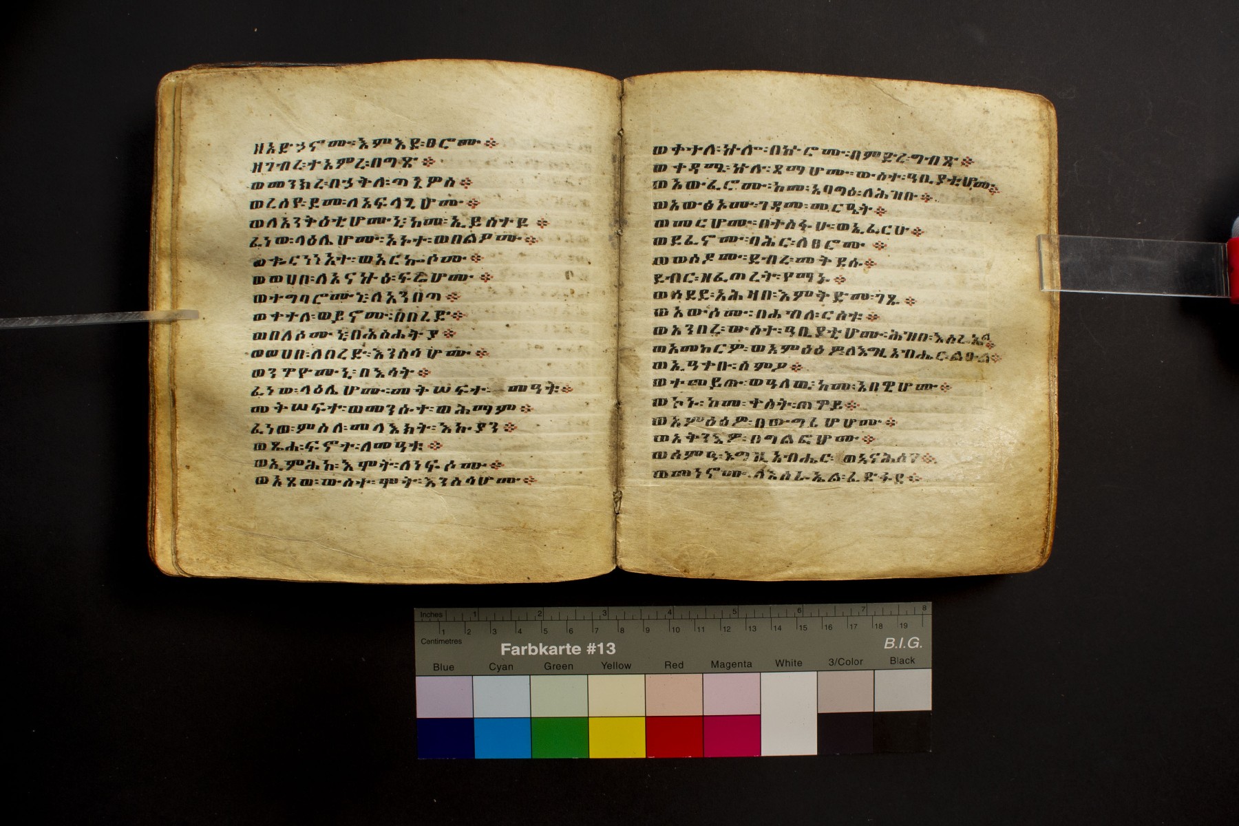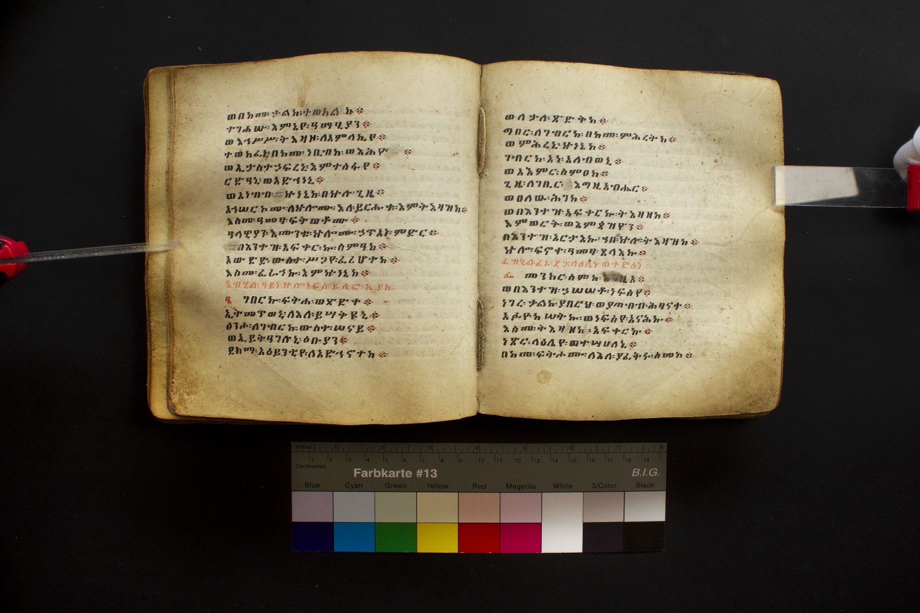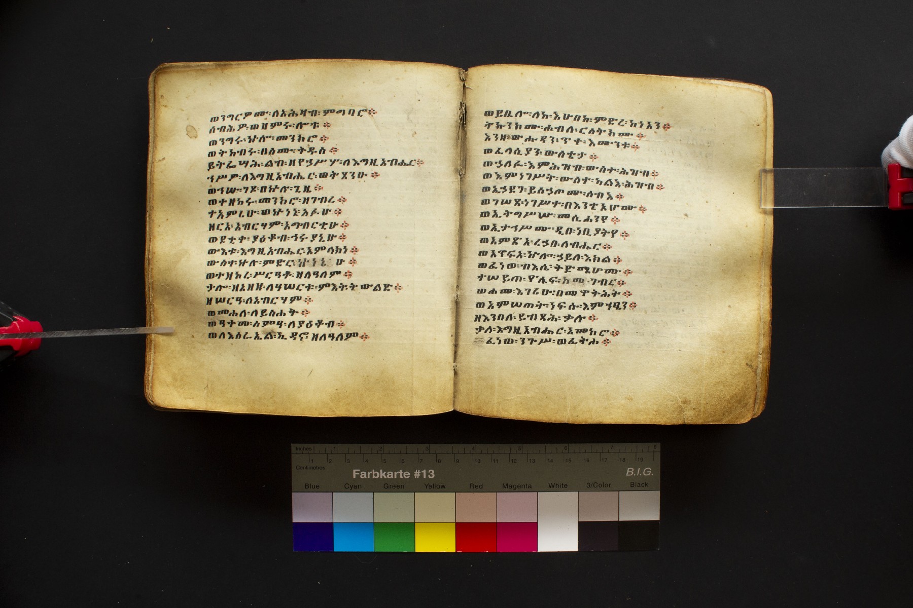 F. 189ra: Oʾǝgziʾǝyä Iyäsus Krǝstos mäḥaränni oʾǝgziʾǝyä Iyäsus Krǝstos täśahalänni (“O my Lord Jesus Christ have mercy on me, o my Lord Jesus Christ be gracious to me”, Hymn to Jesus Christ). Ff. 189ra–190vb: Yǝweddǝsǝwwa mälaʾǝkt läMaryam (“The angels are praising Mary”, Hymn to Virgin Mary, Chaine nr. 388) Ff. 190vb– 193vb: Bäḥakki Maryam ǝmǝnnä ǝgzǝtǝnä tǝmkǝhtomu anti läzämädǝnä (“Hail Mary, our mother, our Lady, you are the glory of our kin”, Hymn to Virgin Mary, Chaine nr. 243) |