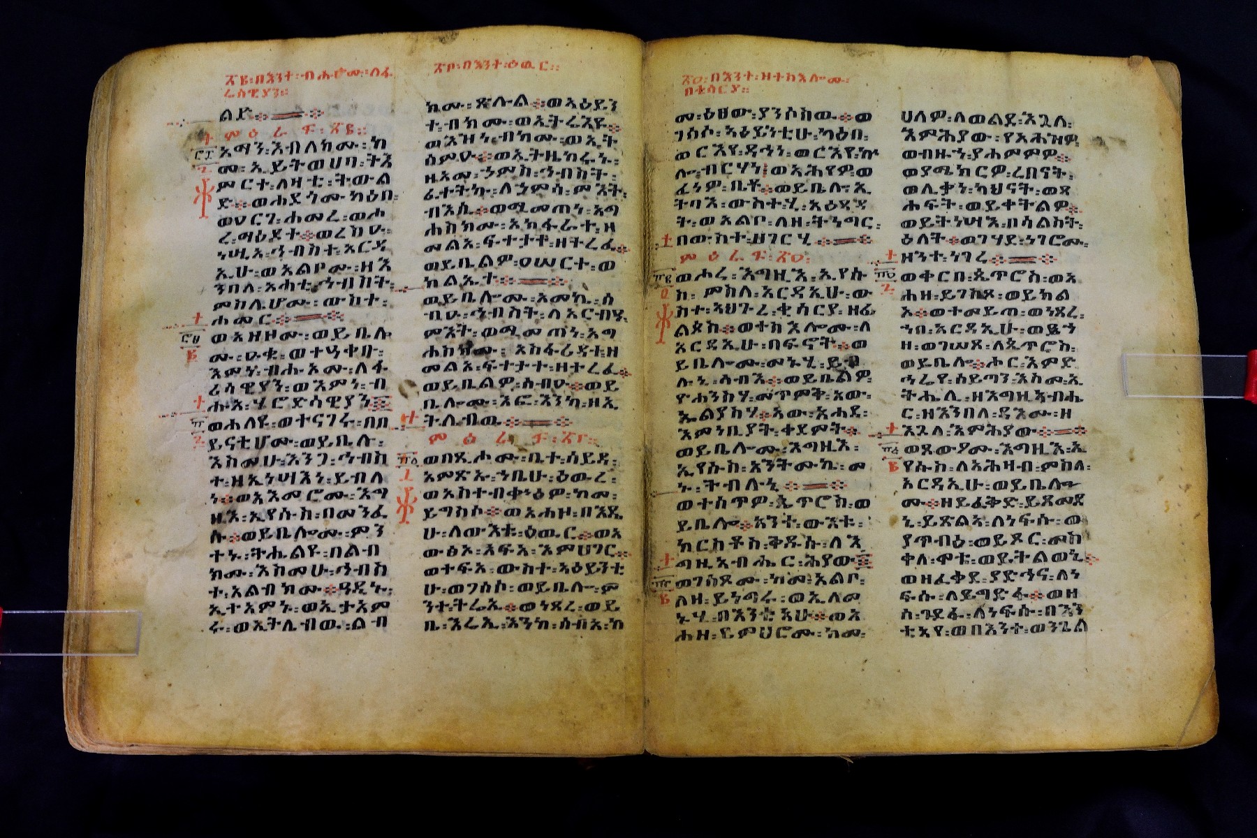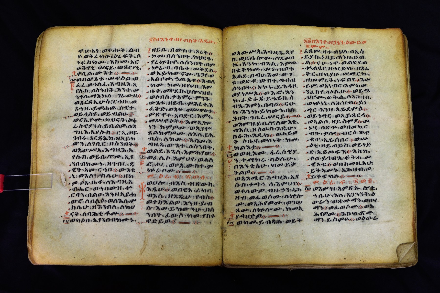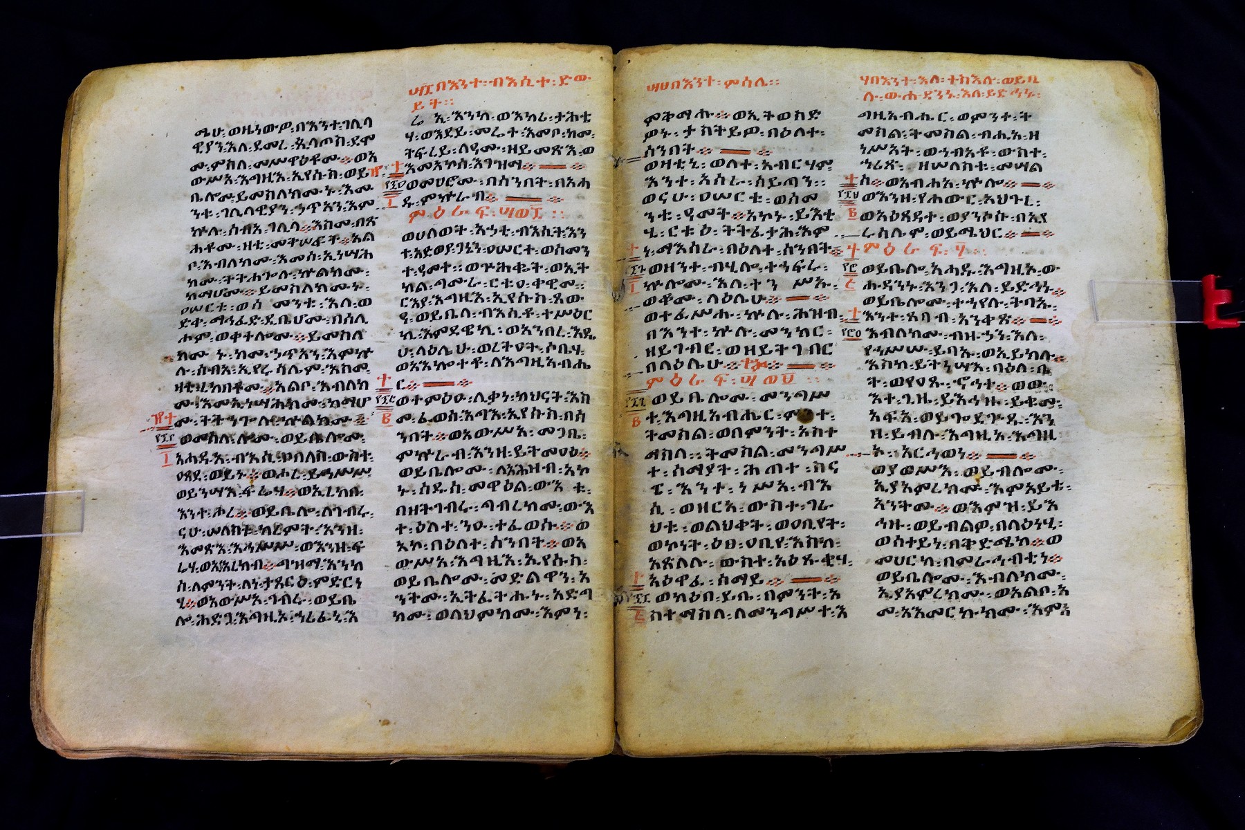 Incipit: መጽሐፈ፡ ልደቱ፡ ለእግዚእነ፡ ኢየሱስ፡ ክርስቶስ፡ ወልደ፡ ዳዊት። ወልደ፡ አብርሃም፡ አብርሃምኒ፡ ወለደ፡ ይስሐቅሃ። ወይስሐቅኒ፡ ወለደ፡ ያዕቆብሃ፡ ወያዕቆብኒ፡ ወለደ፡ ይሁዳሃ፡ ወአኃዊሁ፡ ወይሁዳኒ፡ ወልወደ፡ ፋሬስሃ፡ ወዛራ፡ እምነ<፡> ትዕማር።