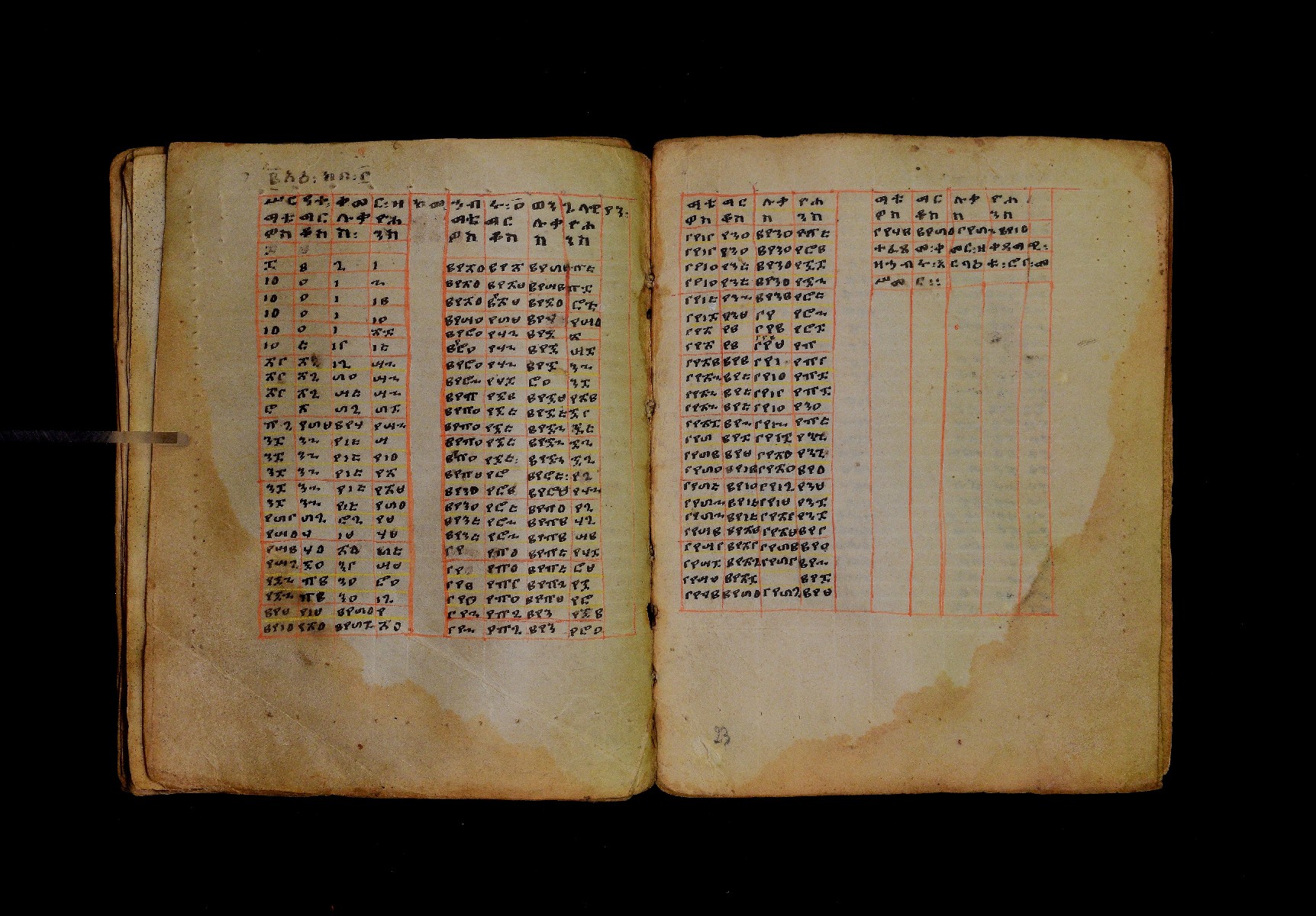 Ff. 1ra–18rb: Mäqdǝmä wängel (“Introduction to the Gospels”), in seven chapters. Incipit: በስመ፡ አብ፡ … ንቅድም፡ በረድኤተ፡ እግዚአብሔር፡ ይትባረክ፡ እግዚአብሔር፡ ወይትሌዓል፡ ዝክሩ። ዘእምኔሁ፡ ኵሉ፡ ሢመተ፡ ኀይል። ወቦቱ፡ ተፍጻሜተ፡ ኵሉ፡ ስእለት። ወኀቤሁ፡ ምብጻሐ፡ ኵሉ፡ አስተብቍዖት። በጽሕፈተ፡ መቅድመ፡ ፬ወንጌላት፡ ስቡሐን። (!) አቅማራት፡ በሰላመ፡ እግዚአብሔር፡ አሜን። =። Ff. 18rb–19vb: Gǝṣṣawe śǝrʿat (“Synopsis of classes”) Incipit: በእንተ፡ ኅብረተ፡ ቃላት፡ ዘ፬ወንጌላት፡ ግጻዌ፡ ሥርዓት። =። ወእንዘ፡ ይተሉ፡ ረድኤተ፡ ፪ባሕቲቶሙ፡ ጸሐፉ፡ እንከ፡ ወንጌለ፡ እምሐዋርያት፡ ወ፪እመትሎሆሙ፡ ፩ዘጳውሎስ፡ ወ፩ዘጴጥሮስ፡ ዘድአ፡ ዚአሁ። ምስለ፡ ማቴዎስ፡ ወዮ(18va)ሐንስ፡ ጸሐፉ፡ እንከ፡ ወንጌላተ። እንዘ፡ ኢየኀሡ፡ ክብረ፡ ለርእሶሙ። አላ፡ በከመ፡ ይትፈቀድ። Ff. 20ra–21vb: Letter of Eusebius to Carpianus Incipit: አውሴብስ፡ ለቀርጲያኖስ፡ ለዘ፡ አፈቅር፡ እኁየ፡ ፍሥሐ፡ ወዳኅና፡ ለከ፡ እምኀብ፡ አግዚአብሔር። አሞንስ፡ እንከ፡ አለክስንድራዊ፡ በብዙኅ፡ አስተሐምሞ፡ ወጽሂቅ፡ ገብሩ። ወኀደገ፡ ለነ፡ ቃለ፡ ዘከመ፡ ኃብሩ፡ ፬ወንጌል። ወእምዝሰ፡ አርእስተ፡ ምንባባት። =። ወበእንተዝ፡ እንከ፡ መፍትው፡ ጥንቶ፡ ይትልውዎ፡ ከመ፡ ሙሱነ፡ ኢይኩን። ሠለስቱኒ፡ በተሊወ፡ ንበቱ፡ ኢይትኀደግ። Ff. 22v–27v: Śərʿatä qämär zäkämä ḫabru arbaʿǝttu (Canon tables). |