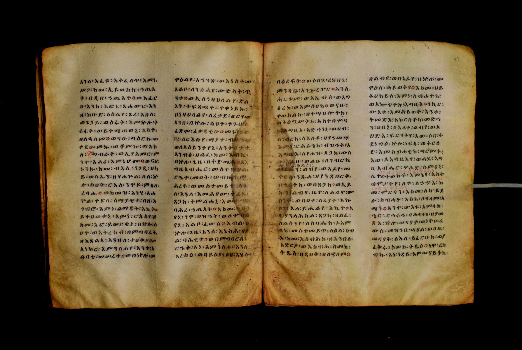 Ff. 1ra–118rb: Wǝddase Amlak (“Praise of God”), divided into readings for each weekday Incipit: በስመ፡ አብ፡ … ንወጥን፡ በረድኤተ፡ እግዚአብሔር፡ ወሠናይ፡ ስንአሁ፡ በጽሒፈ፡ ጸሎታት፡ እንተ፡ ዘሰብዓቱ፡ ዕለታት፡ በሰላመ፡ እግዚአብሔር፡ አሜን።