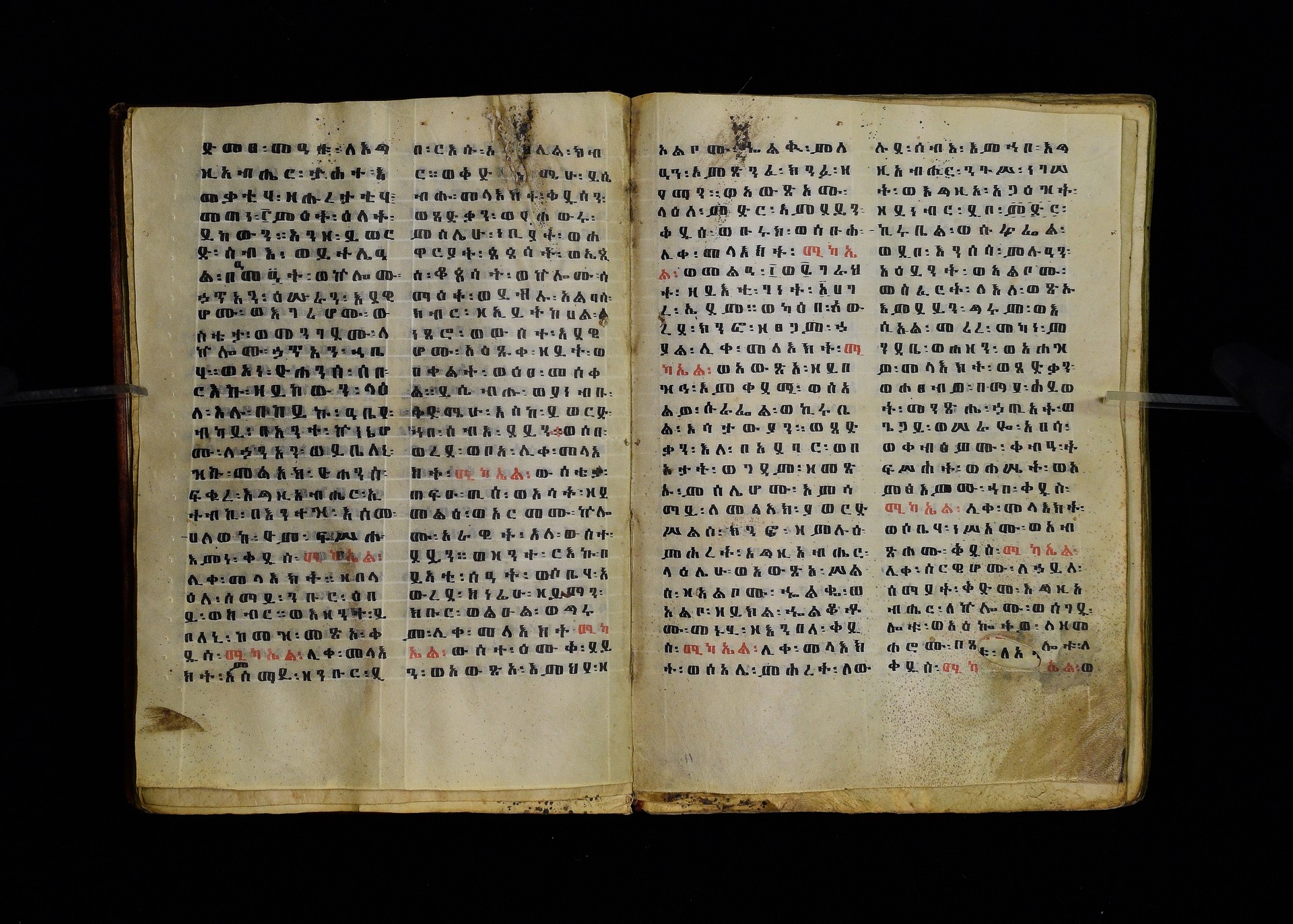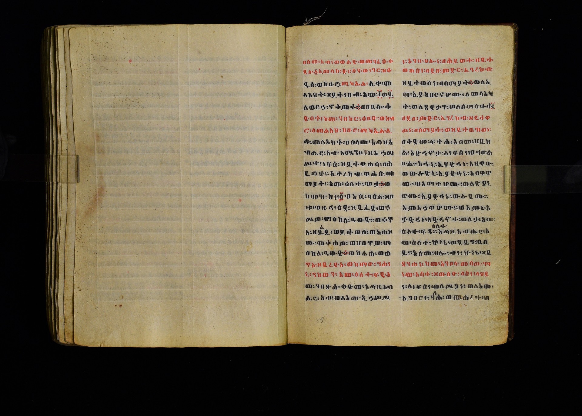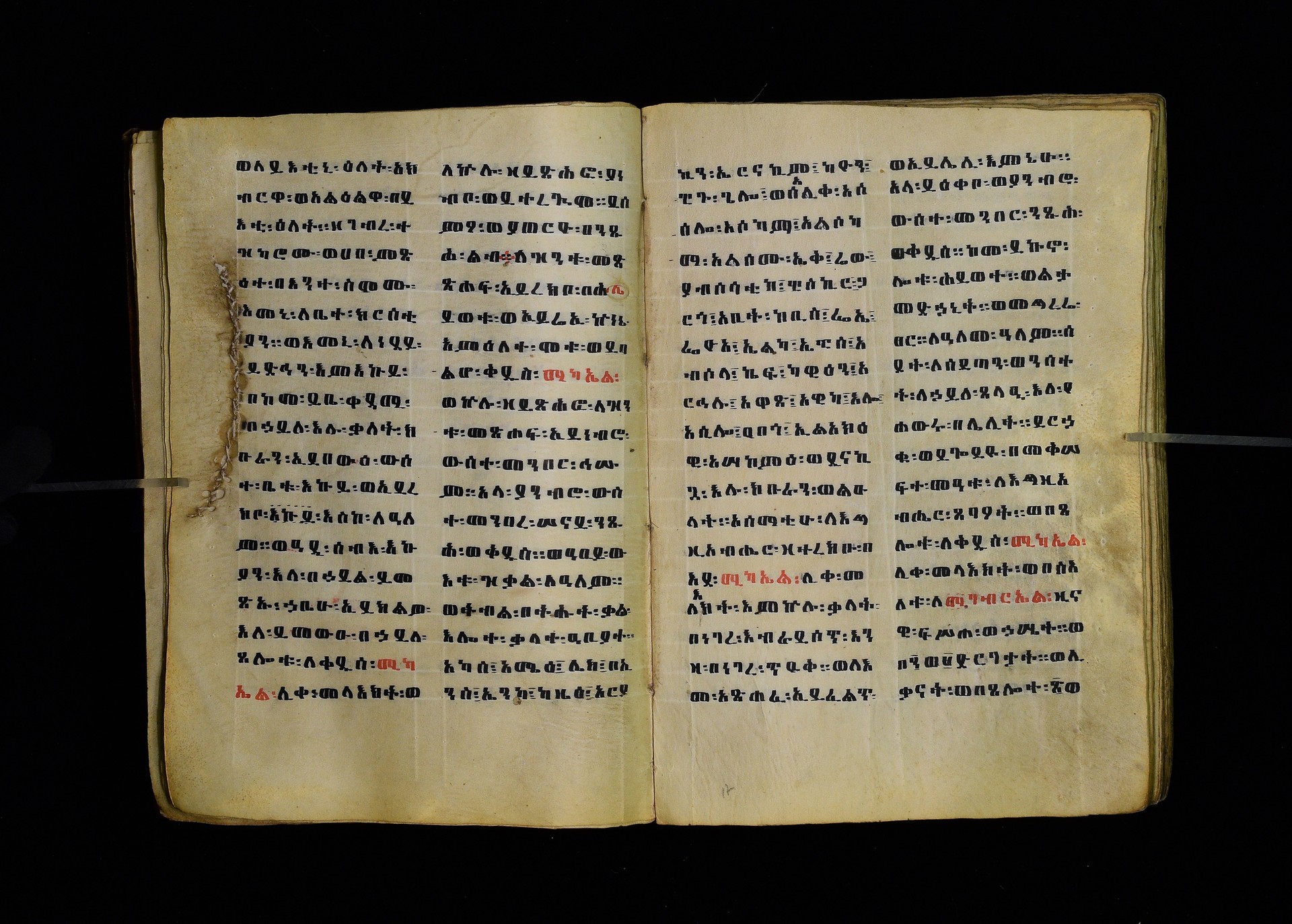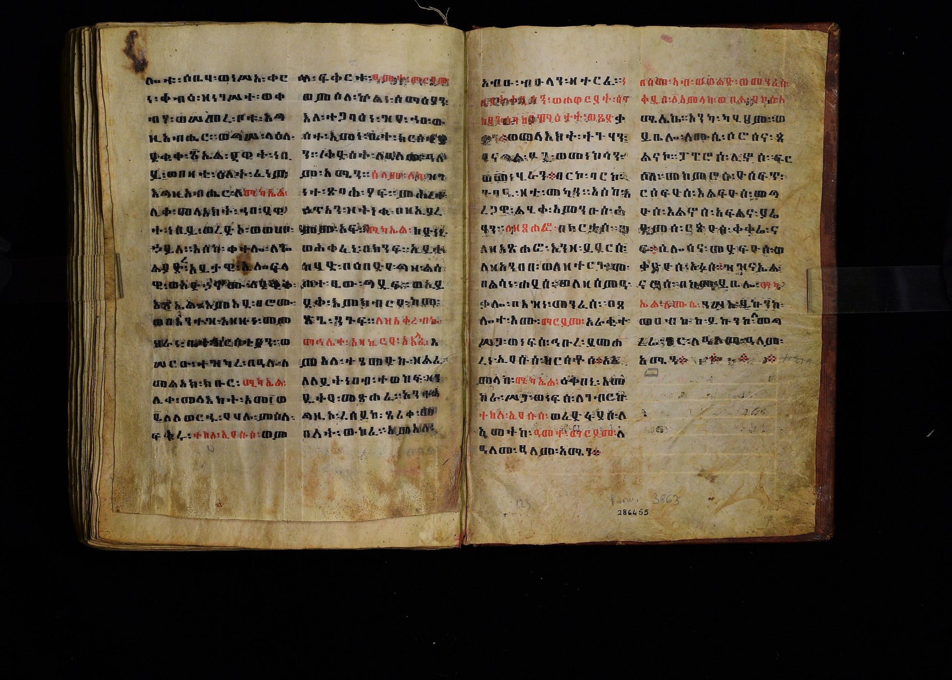 1. ff. 3ra–123rb: Dǝrsanä Mikaʾel, “Homily in Honour of St Michael” (CAe 1295). 1.1. ff. 3ra–8rb: Introduction. Incipit: በስመ፡ አብ፡ ወወልድ፡ ወመንፈስ፡ ቅዱስ፡ ፩አምላክ፡ ንቀድም፡ በረድኤተ፡ እግዚአብሔር፡ ለጽሒፈ፡ ዜና፡ ዕበዮ፡ ወክብሩ፡ ወኃይሉ፡ ወልዕልናሁ፡ ለቅዱስ፡ ሚካኤል፡ ሊቀ፡ መላእክት፡ ከመ፡ ይስዕል፡ ለነ፡ እምኀበ፡ አምላኩ፡ መሐሪ። ምሕረተ፡ ወሣህል። 1.2. ff. 9ra–23rb: Reading for 12 Ḫǝdar. 1.2.1. ff. 9ra–20rb: Homily by Timothy (Dämatewos) of Alexandria (CAe 1637). Heading: በስመ፡ አብ፡ ወወልድ፡ ወመንፈስ፡ ቅዱስ፡ ፩አምላክ፡ ዝንቱ፡ ድርሳን፡ ዘደረሰ፡ አባ፡ ደማቴዎስ፡ ዘለእስክድርያ፡ ዘይትነበብ፡ በዕለተ፡ በዓሉ፡ ለዓቢይ፡ ወክቡር፡ ወለቅዱስ፡ ሊቀ፡ መላእክት፡ ሚካኤል፡ አመ፡ ፲ወ፪ለወርኃ፡ ኅዳር፡ ያርእየኒ፡ ኀይለ፡ ወክብረ፡ ዘወሀቦ፡ እግዚአብሔር፡ 1.2.2. ff. 20rb–21ra: Introduction to the miracles performed by St Michael. Incipit: ንቀድም፡ በረድኤተ፡ እግዚአብሔር፡ ልዑል፡ ለጽሒፈ፡ ተአምራቲሁ፡ ወኃይሉ፡ ለመልአክ፡ ክቡር፡ ሚካኤል፡ ሊቀ፡ መላእክት፡ ትጉሃነ፡ ሰማይ። 1.2.3. ff. 21ra–22vb: Miracle of the Egyptians whose boat was troubled by a strong wind (CAe 7170). Heading: ተአምሪሁ፡ ለመልአክ፡ ክቡር፡ ሚካኤል፡ ሊቀ፡ መላእክት፡ ፍሡሕ፡ ዘስዑል፡ ለነድ፡ መፍርህ። Incipit: እከሥት፡ በምሳሌ፡ ወእነግር፡ አምሳለ፡ ዘእምትካት። ወኅቡዓተ፡ ዘእመሠረት። እንብብ፡ ወእፌክር፡ ተአምረ፡ ወመንክረ፡ ዘገብረ፡ ቅዱስ፡ ሚካኤል፡ 1.2.4. ff. 22vb–23rb: Commemorative notice on Michael’s appearance to Joshua. Incipit: በስመ፡ አብ፡ ወወልድ፡ ወመንፈስ፡ ቅዱስ፡ ፩አምላክ፡ አመ፡ ፲ወ፪ለኅዳር፡ በዛቲ፡ ዕለት፡ ትዝካረ፡ በዓሉ፡ ለመልአከ፡ ሣህል፡ ወምሕረት፡ ሚካኤል፡ ሊቀ፡ መላእክት፡ ወርእሰ፡ ሰማያውያን፡ መሐሪ፡ 1.2.5. f. 23rb: Rhymed sälam-hymn for Ḫǝdar. Incipit: ሰላም፡ ዕብል፡ ኪያከ፡ መልአከ። ርኅሩኅ፡ ልብ፡ ለኵሉ፡ አንተ፡ ኢኮንከ፡ ድሩከ፡ ሚካኤል፡ ሊቅየ፡ ለለእቤለከ። 1.3. ff. 24ra–33rb: Reading for 12 Taḫśaś. 1.3.1. ff. 24ra–30vb: Homily on Durataʾos and Tiyobǝstǝya (CAe 3958). Heading: በስመ፡ አብ፡ ወወልድ፡ ወመንፈስ፡ ቅዱስ፡ ፩አምላክ፡ ድርሳን፡ ወነገር፡ ዘቅዱስ፡ ወክቡር፡ ሊቀ፡ መላእክት፡ ሚካኤል፡ ዘይትነበብ፡ አመ፡ ፲ወ፪ለወርኃ፡ ታኅሣሥ፡ ስምዑ፡ ዘንተ፡ ኵልክሙ፡ አሕዛብ። 1.3.2. ff. 30vb–32va: Miracle on the poor peasant who found a treasure in a fish (CAe 7171). Heading: ተአምሪሁ፡ ለ<ሊ>ቀ፡ መላእክት፡ ሚካኤል፡ መልአክ፡ ኪዳኑ፡ ለክርስቶ(31ra)ስ፡ ንጉሥ፡ ስብሐት። Incipit: ተብሕለ፡ ከመ፡ ሀሎ፡ ፩ብእሲ፡ በውስተ፡ አሐቲ፡ ሀገር፡ መሃይምን፡ ወጻድቅ፡ ዘይፈርሆ፡ ለእግዚአብሔር፡ ወይገብር፡ ምሕረተ፡ ለነዳያን፡ 1.3.3. ff. 32va–33rb: How Michael was sent to the three youths in the furnace. Incipit: በስመ፡ አብ፡ ወወልድ፡ ወመንፈስ፡ ቅዱስ፡ ፩አምላክ፡ {አምላክት፡} አመ፡ ፲ወ፪ለወርኃ፡ ታኅሣሥ፡ (32vb) ተዝካረ፡ በዓሉ፡ ለመልአክ፡ ክቡር፡ ሚካኤል፡ ሊቀ፡ መላእክት፡ ኀበ፡ ሀገረ፡ ባቢሎን። 1.3.4. f. 33rb: Rhymed sälam-hymn for Taḫśaś. Incipit: ሰላም፡ ለከ፡ ዓቃቤ፡ ቅዱሳን፡ እምተሐውኮ። ወለፀረ፡ ነፍሶሙ፡ ዘሞቀሕኮ። አመ፡ መጽአ፡ ወልድ፡ ዘአፈ፡ ነቢያት፡ ሰበኮ። 1.4. ff. 34ra–46rb: Reading for 12 Ṭǝrr. 1.4.1. ff. 34ra–44rb: Homily on the child Tälafinos (CAe 3959). Heading: በስመ፡ አብ፡ ወወልድ፡ ወመንፈስ፡ ቅዱስ፡ ፩አምላ{ላላ}ክ፡ ሥሉስ፡ ዘኢይትሌለይ። ዕሩይ፡ ዘኢይሴደቅ፡ ቃላት። Incipit: መፍትው፡ ትሰምዕዎ፡ በለብዎ፡ እስመ፡ ተጋባእክሙ፡ ከመ፡ ታአምሩ፡ ዕበዮ፡ ለቅዱስ፡ ሚካኤል፡ ሊቀ፡ መላእክት፡ እምካልዓን፡ አብያጺሁ፡ ሊቃነ፡ መላእክት። 1.4.2. ff. 44rb–45vb: Miracle about the rich man who became poor (CAe 7172). Heading: ተአምሪሁ፡ ለቅዱስ፡ ሚካኤል<፡> ሊቀ፡ መላእክት፡ ዘ(44va)ሥዑል፡ በነደ፡ እሳት፡ ርስነ፡ ጸሎቱ፡ ወአስተበቍዖቱ፡ የሃሉ፡ ምስለ፡ ገብሩ፡ ምስለ፡ ኵልነ፡ ሕዝበ፡ ክርስቲ<ያ>ን። Incipit: ተብህለ፡ ከመ፡ ሀሎ፡ ፩ብእሲ፡ ክርስቲያናዊ፡ በውስተ፡ አሐቲ፡ ሀገር፡ ዘይፈርሆ፡ ለእግዚአብሔር፡ ወይገብር፡ ትእዛዞ፡ ወይጽሕቅ፡ ጥቀ፡ ለገቢረ፡ ሠናይ፡ ወይፈቅሮ፡ ለሚካኤል፡ ሊቀ፡ መላእክት። 1.4.3. ff. 45vb–46ra: Commemorative notice on St Michael’s appearance to Jacob. Incipit: በስመ፡ አብ፡ ወወልድ፡ ወመንፈስ፡ ቅዱስ፡ ፩አምላክ፡ አመ፡ ፲ወ፪ለወርኃ፡ ጥር፡ ተዝካረ፡ በዓሉ፡ ለመልአክ፡ ክቡር፡ ሚካኤል፡ ሊቀ፡ መላእክት፡ እስመ፡ በዛቲ፡ ዕለት፡ ፈነወ፡ እግዚአብሔር፡ ለሚካኤል