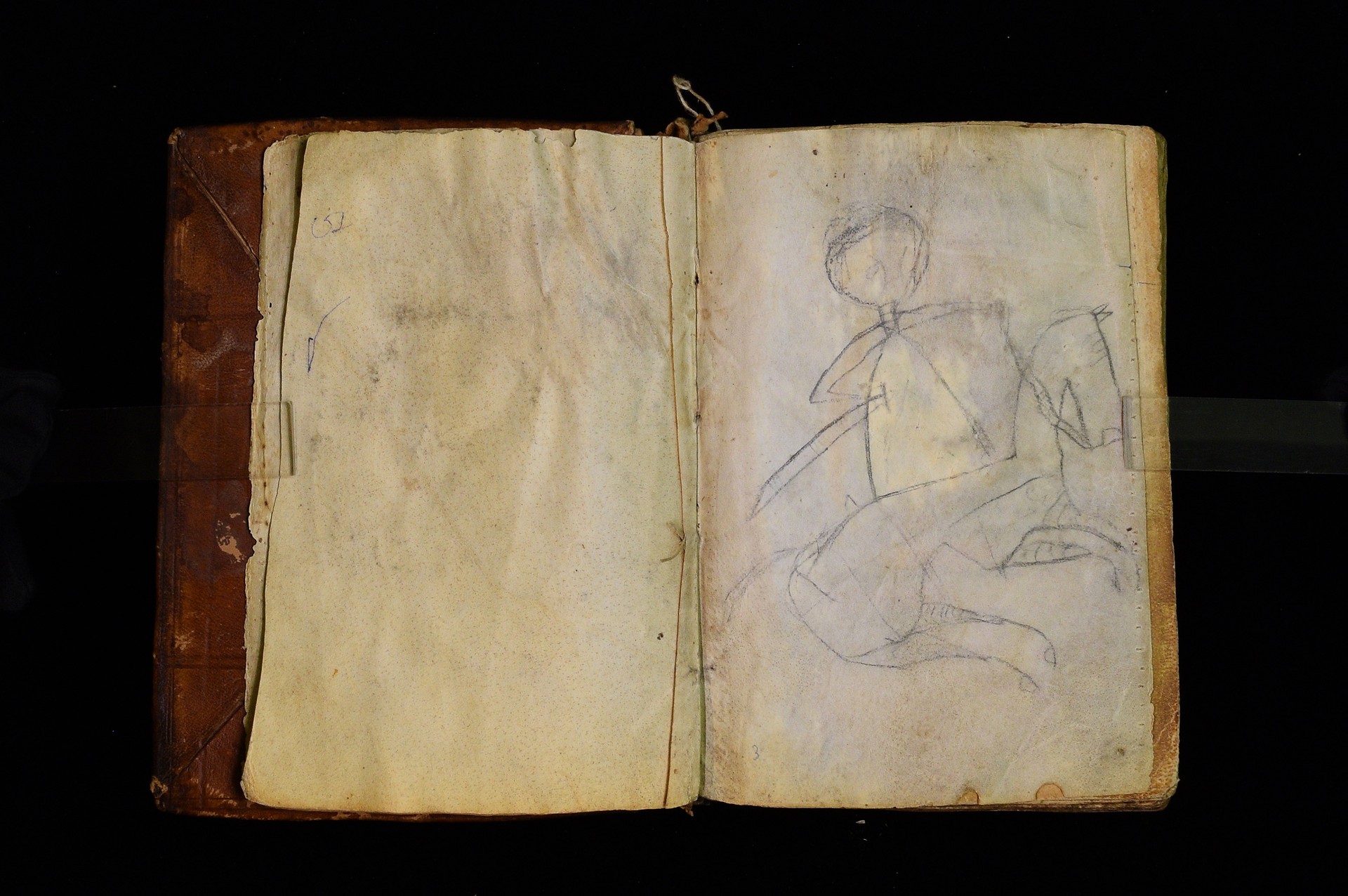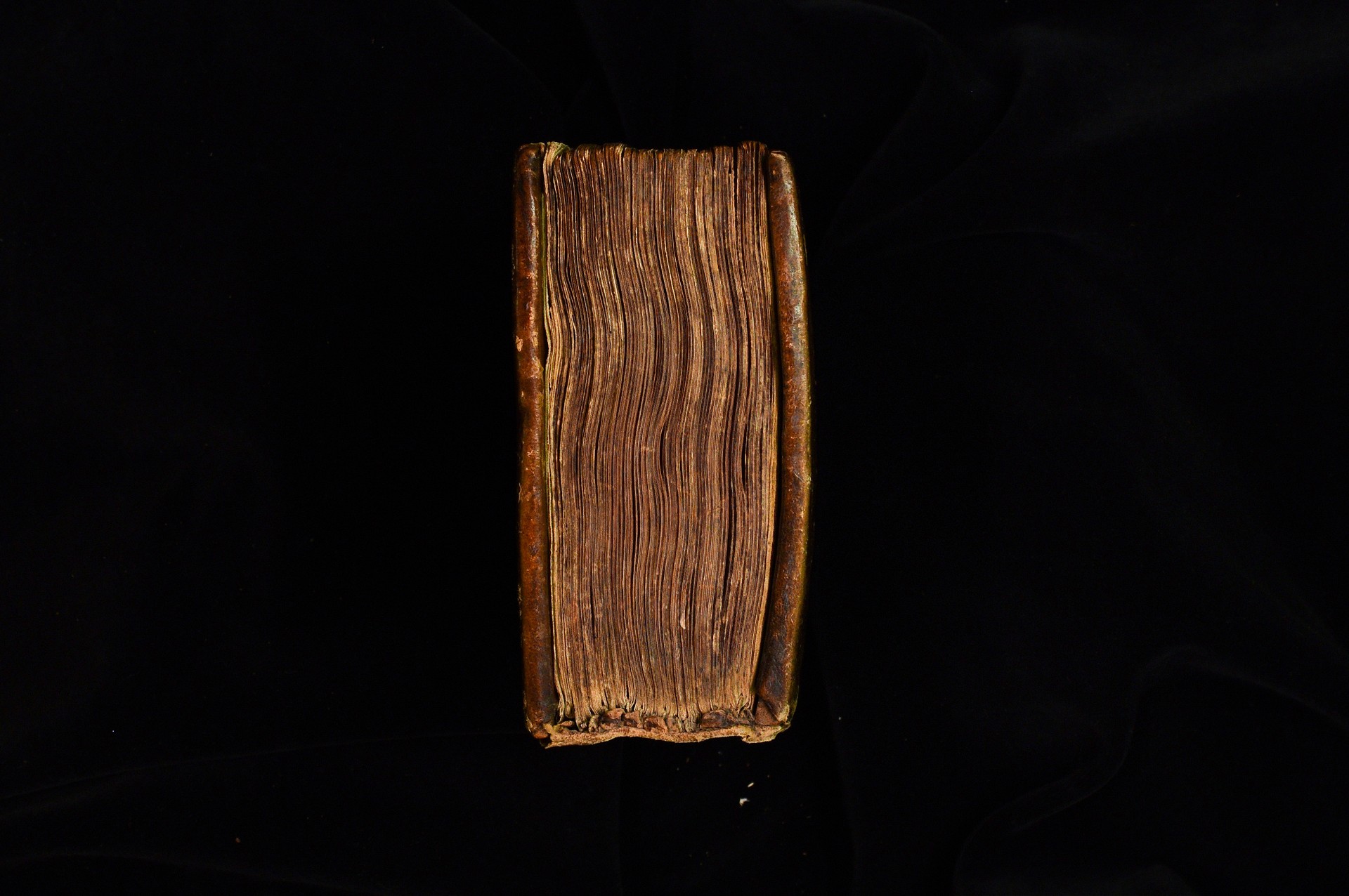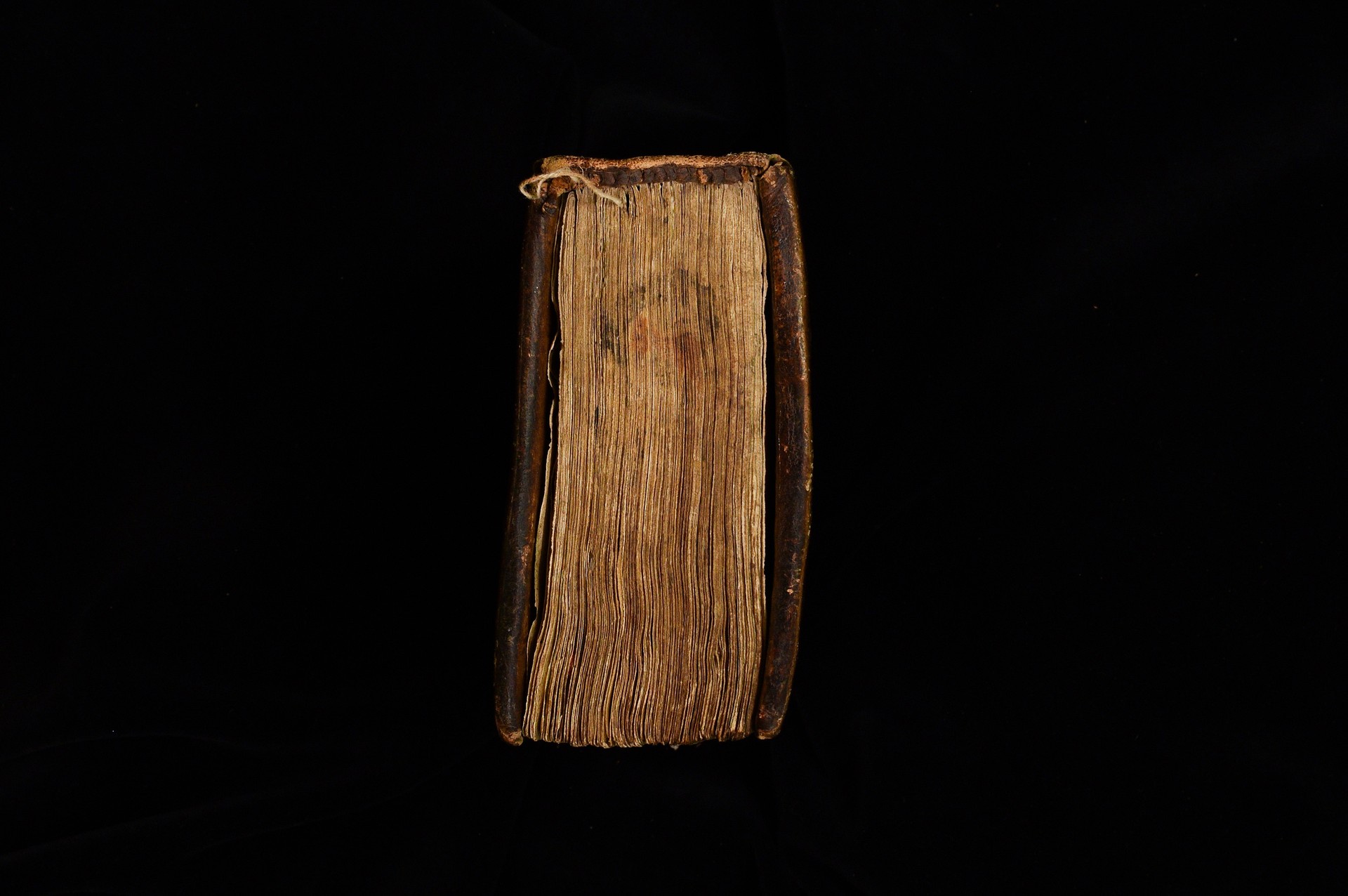 Two wooden boards, leather cover. The spine is uncovered. Four sewing stations. |