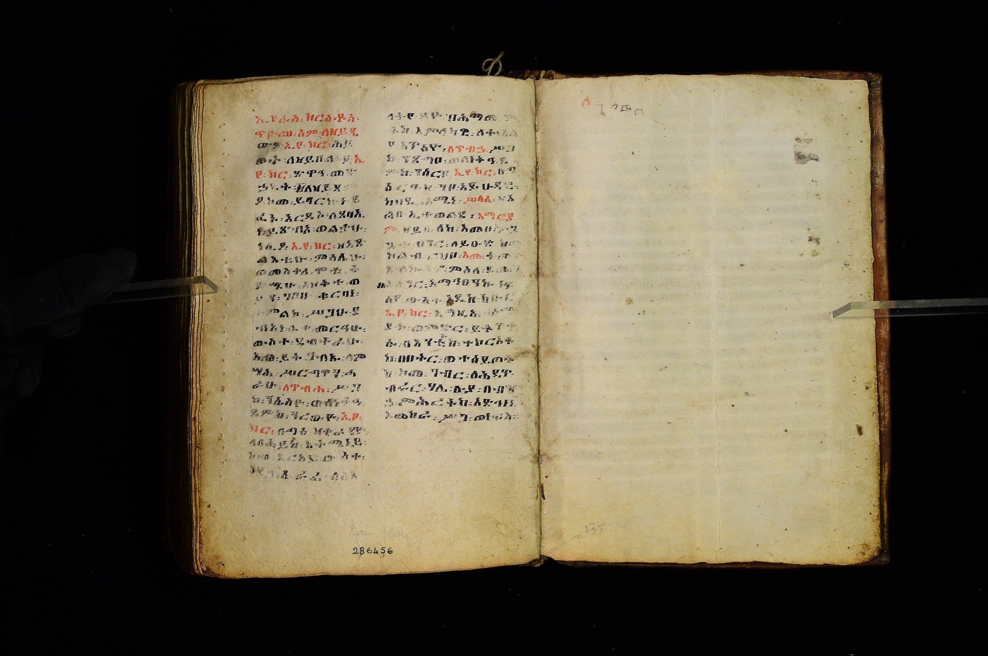 1. F. 134va–b: prayer to Jesus Christ, taken from the Säʿatat zä–lelit, “Horologium for the night”. The prayer is partly illegible due to faded ink. Incipit: ኢየሱስ፡ ክርስቶስ፡ ጥዑመ፡ ስም፡ ለዘይጼውዖ፡ ኢየ፡ ክር፡ <ኅብስት፡> ሕይወት፡ ለዘይበልዖ፡ ኢየ፡ ክር፡ ጽዋኅ፡ መድኃኒት፡ ለዘይጸምዖ፡ ከመ፡ ይባርኩነ፡ ይፈኑ፡ አርዳኦ፡ ለጸባኢነ፡ ይጽብኦ፡ ወልታሁ፡ ነሲዖ፡ |