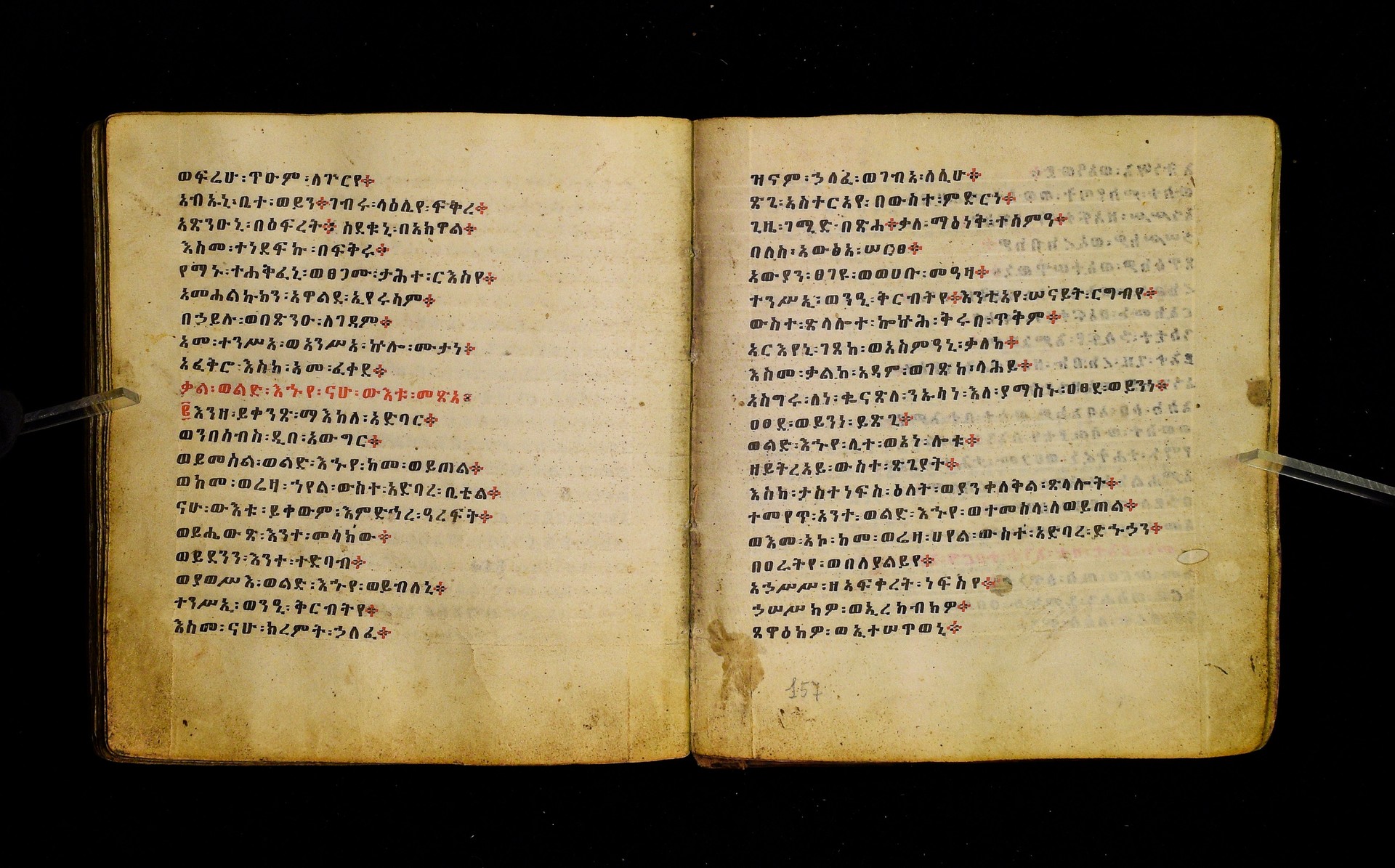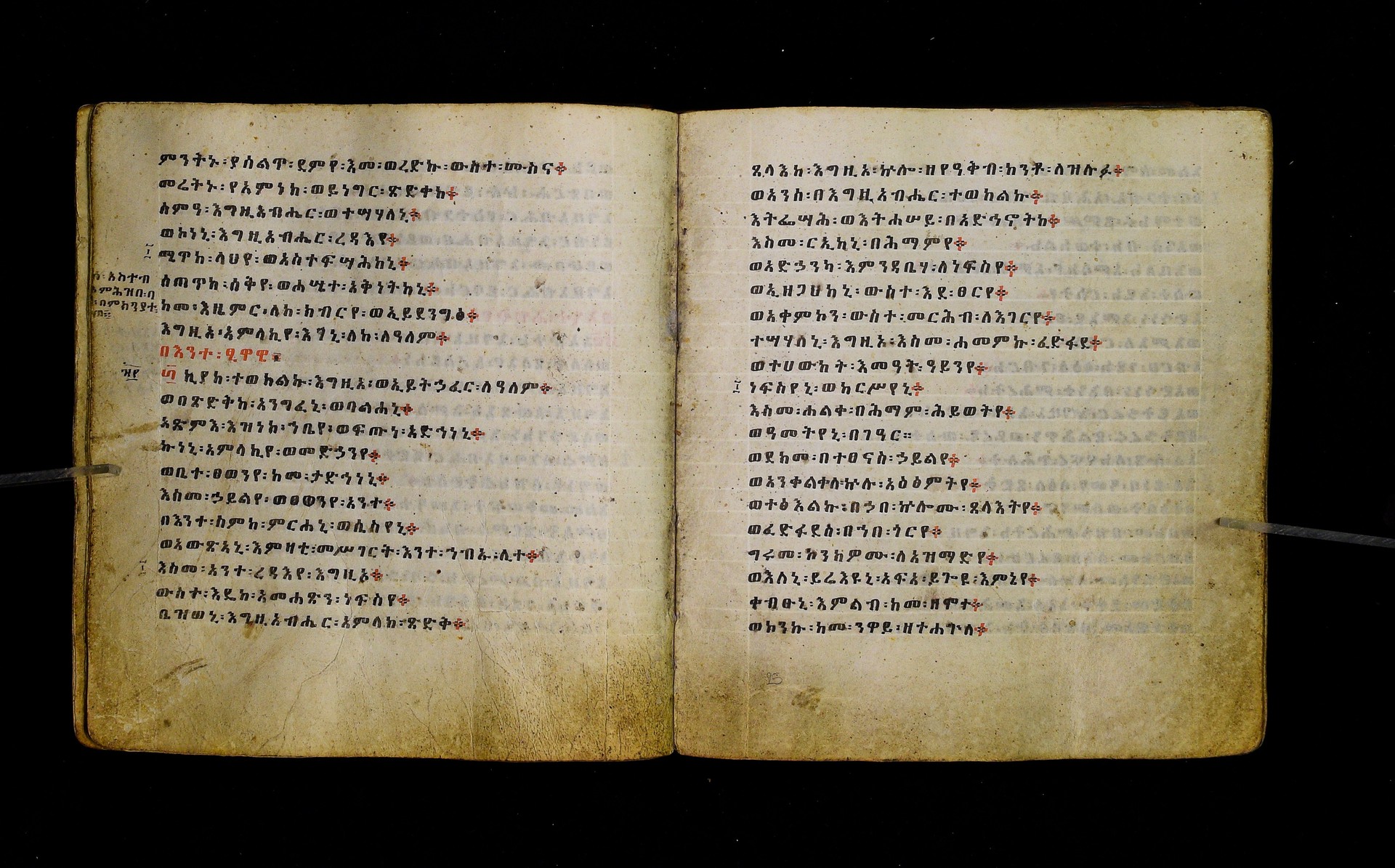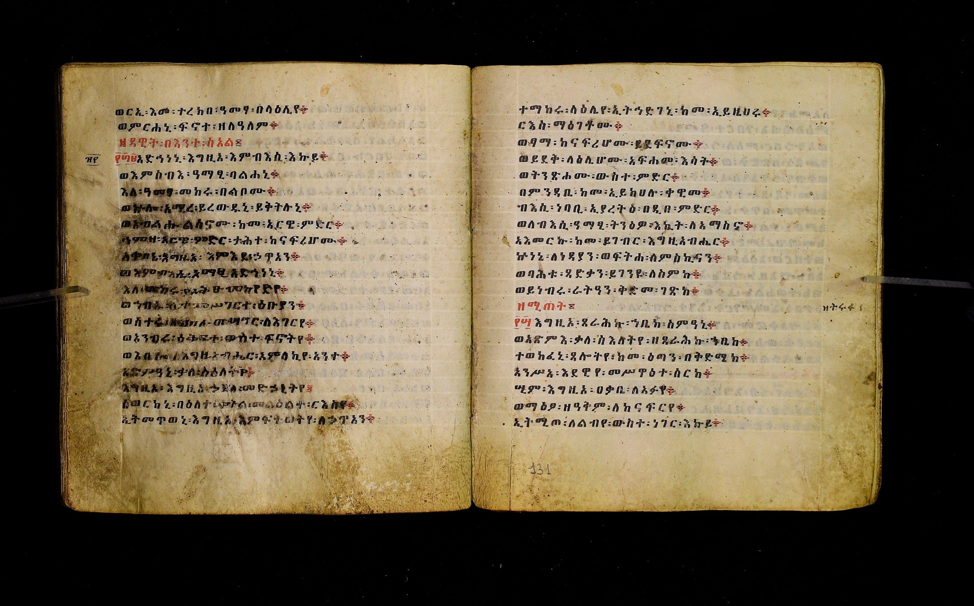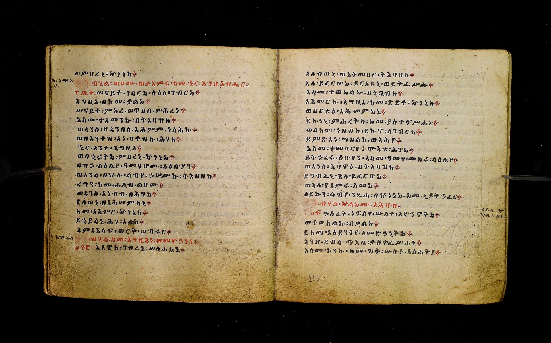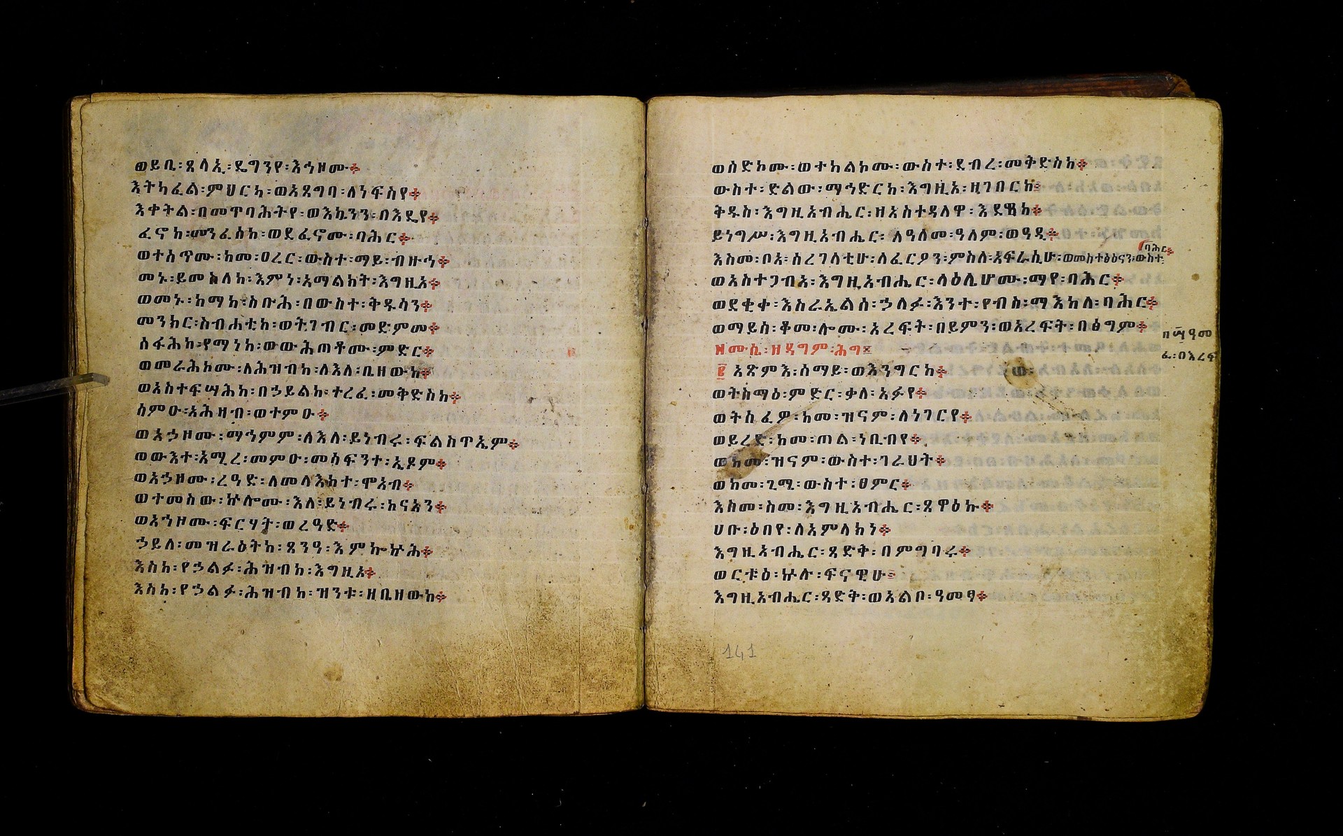 1. F. 2ra–vb: prayer to God, written on two columns in a fine handwriting. Incipit: እገይስ፡ ኀቤከ፡ አምላኪየ፡ አንተ፡ ኩነኒ፡ ረዳእየ፡ ወኩነኒ፡ ምስካይየ። ፀወንየ፡ ወኃይልየ፡ መድኃኒተ፡ ነፍስየ፡ አምላኪየ፡ ወኪያከ፡ ተወከልኩ። ኪያከ፡ ተወከልኩ፡ ኀቤከ፡ ተማኅፀንኩ፡ ኢትግድፈኒ፡ ለዝሉፉ፡ ወኢትርስአኒ፡ በምሕረትከ።. The names of Wäldä Iyäsus e Kidanä Mar[yam] are mentioned on f. 2vb. 2. F. 11r: short mäwaśǝʾt-hymn: ተፈሣሕኩ፡እስመ፡ ይቤሉኒ፡ ቤተ፡ ቤተ፡ እግዚአብሔር፡ ነሐውር። ሶበ፡ ይነቅህ፡ ካህን፡ ተከሥተ፡ ብርሃን፡ ለዓለም፡ ወተቀደሰት፡ ቤተ፡ ክርስቲያን፡ በክ፡ ወበስብሐት፡. The hymn is separated from the main text by a black vertical line and is provided with interlineal musical notation. 3. F. 163va–b: hymn entitled Mäḥaränä ab, “The Father had mercy on us”. The hymn is written in a small script and is provided with interlineal musical notation. Incipit: መሐረነ፡ አብ፡ ሃሌ፡ ሉያ፡ ተሣሃለነ፡ ወልድ፡ ሃሌ፡ ሉያ፡ መንፈስ፡ ቅዱስ፡ መሐሪ፡ ተዘከረነ፡ በሣህልከ። ለከ፡ ንፌኑ፡ ስብሐተ፡ ወለከ፡ ነዓርግ፡ አኰቴተ። መሐረነ፡ መሐሪ፡ ኃጢአተነ፡ አስተስሪ። 4. Ff. 178va–179ra: Ethiopian syllabary, written in a recent and untrained hand and followed by a short text in Amharic and Gǝʿǝz, written in the same hand. Incipit: አሊ፡ ጀረ፡ አመተ፡ ጀርጀረ፡ ነጋሢ፡ ምኒልክ፡ ቍርቍራ፡ ስመ፡ ጥርስ፡ አጥርሲ፡ አንበሳ፡ ጋማማ፡ ነምር፡ ጥፍራማ፡ ጅብ፡ ደደሳማ. |
