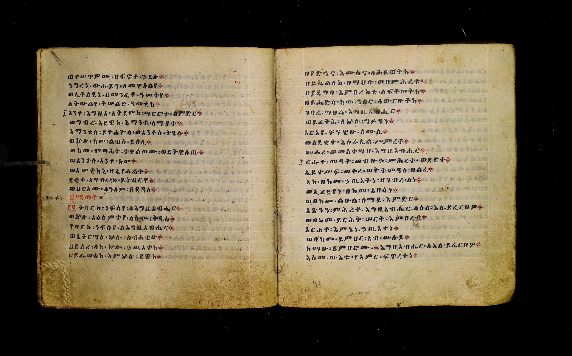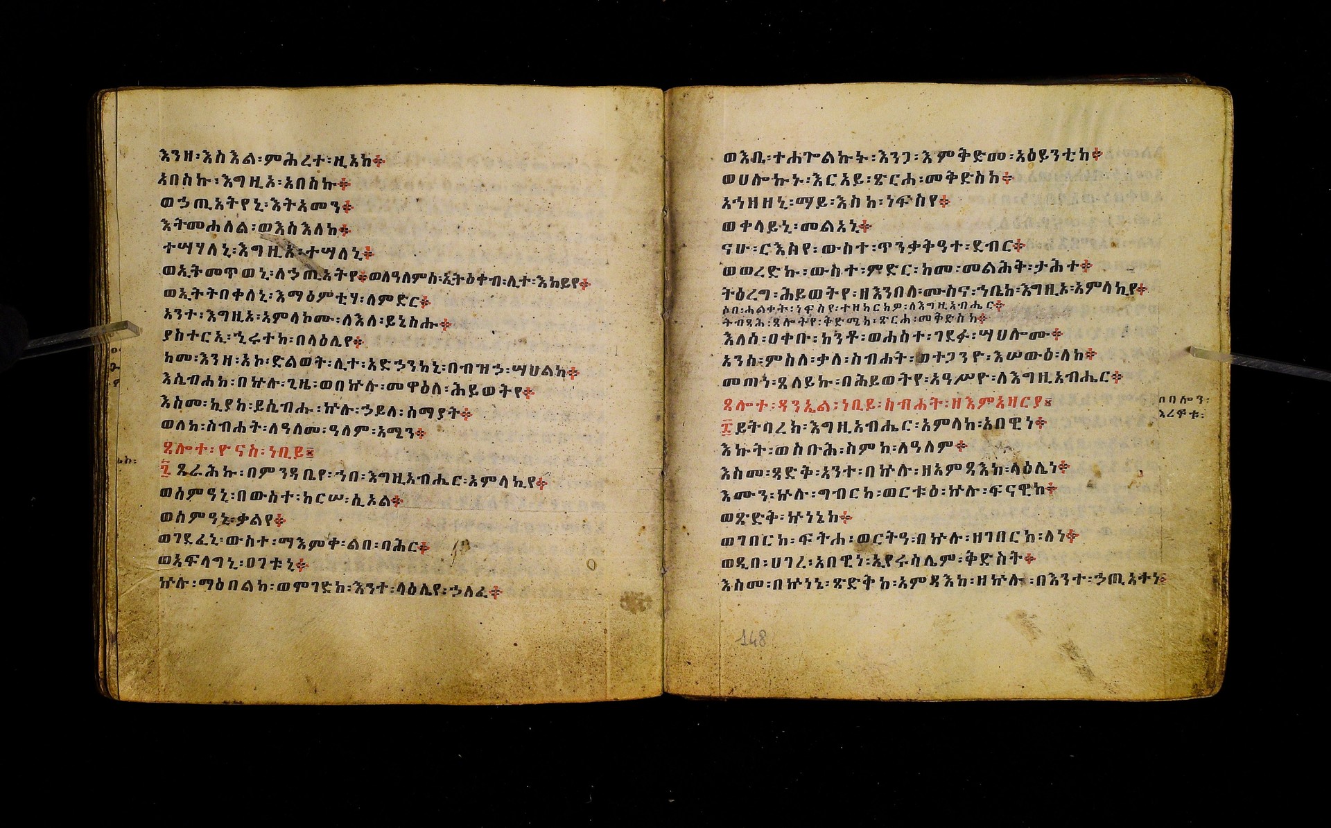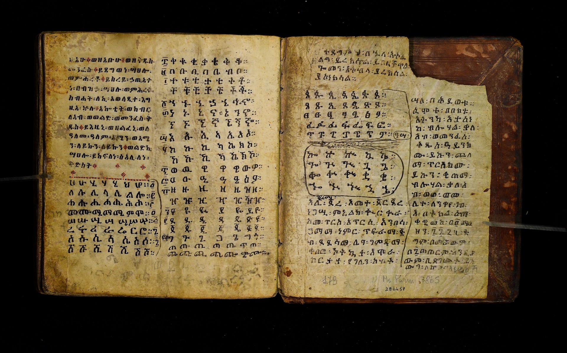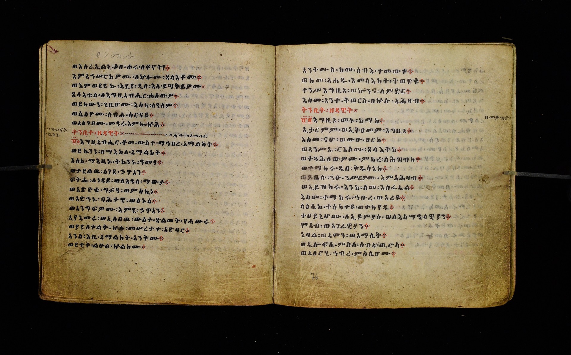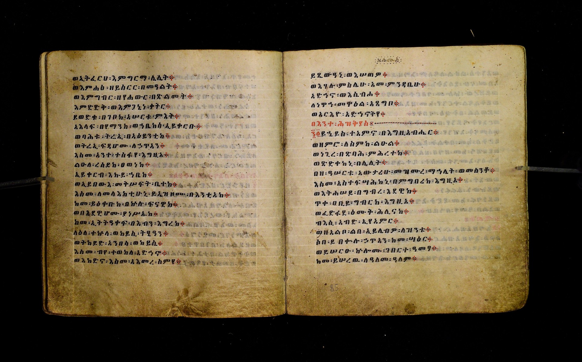 1. F. 2ra–vb: prayer to God, written on two columns in a fine handwriting. Incipit: እገይስ፡ ኀቤከ፡ አምላኪየ፡ አንተ፡ ኩነኒ፡ ረዳእየ፡ ወኩነኒ፡ ምስካይየ። ፀወንየ፡ ወኃይልየ፡ መድኃኒተ፡ ነፍስየ፡ አምላኪየ፡ ወኪያከ፡ ተወከልኩ። ኪያከ፡ ተወከልኩ፡ ኀቤከ፡ ተማኅፀንኩ፡ ኢትግድፈኒ፡ ለዝሉፉ፡ ወኢትርስአኒ፡ በምሕረትከ።. The names of Wäldä Iyäsus e Kidanä Mar[yam] are mentioned on f. 2vb. 2. F. 11r: short mäwaśǝʾt-hymn: ተፈሣሕኩ፡እስመ፡ ይቤሉኒ፡ ቤተ፡ ቤተ፡ እግዚአብሔር፡ ነሐውር። ሶበ፡ ይነቅህ፡ ካህን፡ ተከሥተ፡ ብርሃን፡ ለዓለም፡ ወተቀደሰት፡ ቤተ፡ ክርስቲያን፡ በክ፡ ወበስብሐት፡. The hymn is separated from the main text by a black vertical line and is provided with interlineal musical notation. 3. F. 163va–b: hymn entitled Mäḥaränä ab, “The Father had mercy on us”. The hymn is written in a small script and is provided with interlineal musical notation. Incipit: መሐረነ፡ አብ፡ ሃሌ፡ ሉያ፡ ተሣሃለነ፡ ወልድ፡ ሃሌ፡ ሉያ፡ መንፈስ፡ ቅዱስ፡ መሐሪ፡ ተዘከረነ፡ በሣህልከ። ለከ፡ ንፌኑ፡ ስብሐተ፡ ወለከ፡ ነዓርግ፡ አኰቴተ። መሐረነ፡ መሐሪ፡ ኃጢአተነ፡ አስተስሪ። 4. Ff. 178va–179ra: Ethiopian syllabary, written in a recent and untrained hand and followed by a short text in Amharic and Gǝʿǝz, written in the same hand. Incipit: አሊ፡ ጀረ፡ አመተ፡ ጀርጀረ፡ ነጋሢ፡ ምኒልክ፡ ቍርቍራ፡ ስመ፡ ጥርስ፡ አጥርሲ፡ አንበሳ፡ ጋማማ፡ ነምር፡ ጥፍራማ፡ ጅብ፡ ደደሳማ. |