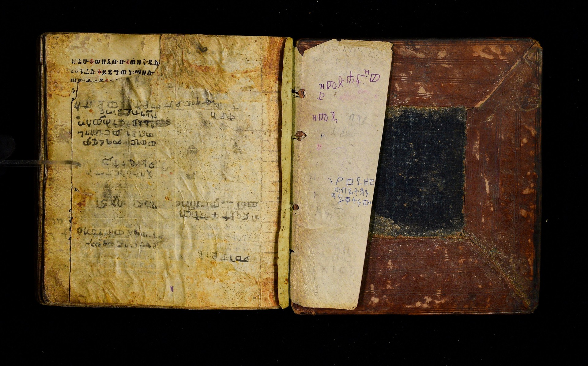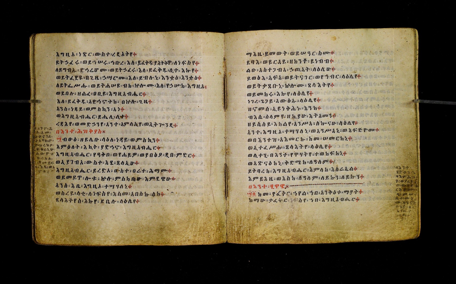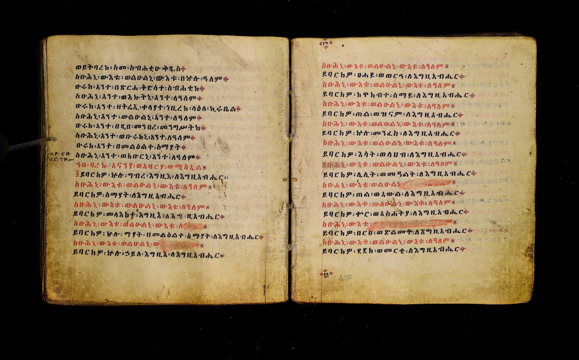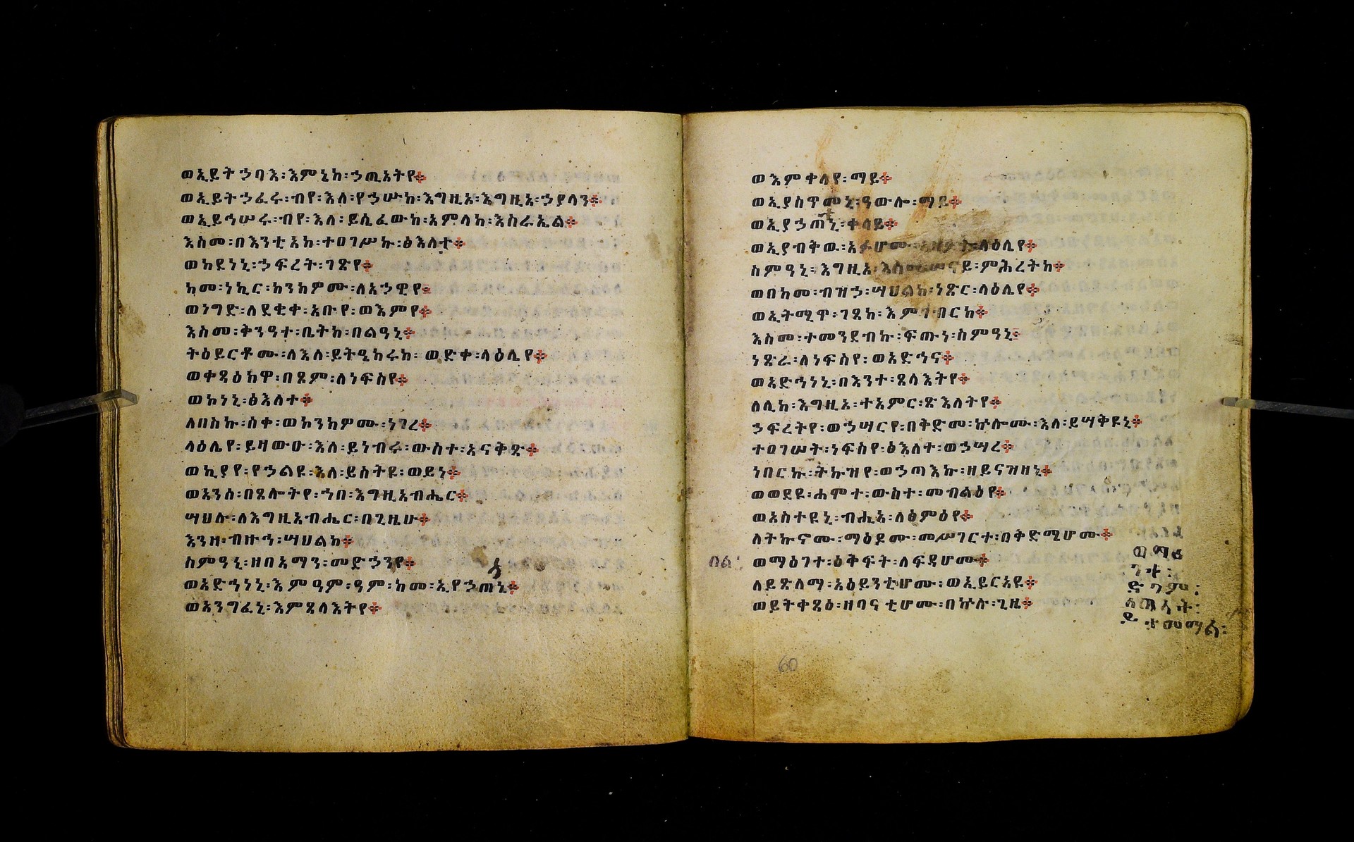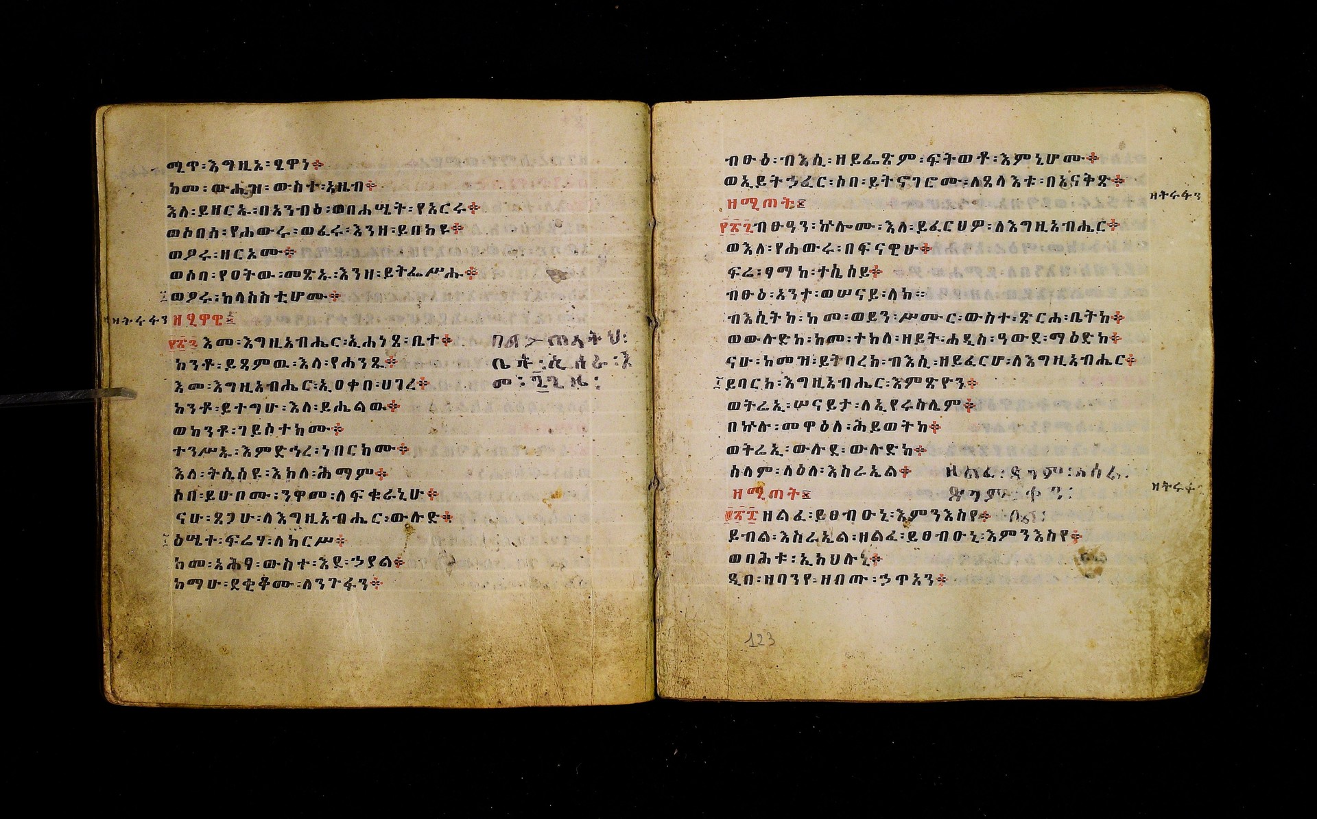 1. F. 2ra–vb: prayer to God, written on two columns in a fine handwriting. Incipit: እገይስ፡ ኀቤከ፡ አምላኪየ፡ አንተ፡ ኩነኒ፡ ረዳእየ፡ ወኩነኒ፡ ምስካይየ። ፀወንየ፡ ወኃይልየ፡ መድኃኒተ፡ ነፍስየ፡ አምላኪየ፡ ወኪያከ፡ ተወከልኩ። ኪያከ፡ ተወከልኩ፡ ኀቤከ፡ ተማኅፀንኩ፡ ኢትግድፈኒ፡ ለዝሉፉ፡ ወኢትርስአኒ፡ በምሕረትከ።. The names of Wäldä Iyäsus e Kidanä Mar[yam] are mentioned on f. 2vb. 2. F. 11r: short mäwaśǝʾt-hymn: ተፈሣሕኩ፡እስመ፡ ይቤሉኒ፡ ቤተ፡ ቤተ፡ እግዚአብሔር፡ ነሐውር። ሶበ፡ ይነቅህ፡ ካህን፡ ተከሥተ፡ ብርሃን፡ ለዓለም፡ ወተቀደሰት፡ ቤተ፡ ክርስቲያን፡ በክ፡ ወበስብሐት፡. The hymn is separated from the main text by a black vertical line and is provided with interlineal musical notation. 3. F. 163va–b: hymn entitled Mäḥaränä ab, “The Father had mercy on us”. The hymn is written in a small script and is provided with interlineal musical notation. Incipit: መሐረነ፡ አብ፡ ሃሌ፡ ሉያ፡ ተሣሃለነ፡ ወልድ፡ ሃሌ፡ ሉያ፡ መንፈስ፡ ቅዱስ፡ መሐሪ፡ ተዘከረነ፡ በሣህልከ። ለከ፡ ንፌኑ፡ ስብሐተ፡ ወለከ፡ ነዓርግ፡ አኰቴተ። መሐረነ፡ መሐሪ፡ ኃጢአተነ፡ አስተስሪ። 4. Ff. 178va–179ra: Ethiopian syllabary, written in a recent and untrained hand and followed by a short text in Amharic and Gǝʿǝz, written in the same hand. Incipit: አሊ፡ ጀረ፡ አመተ፡ ጀርጀረ፡ ነጋሢ፡ ምኒልክ፡ ቍርቍራ፡ ስመ፡ ጥርስ፡ አጥርሲ፡ አንበሳ፡ ጋማማ፡ ነምር፡ ጥፍራማ፡ ጅብ፡ ደደሳማ. |