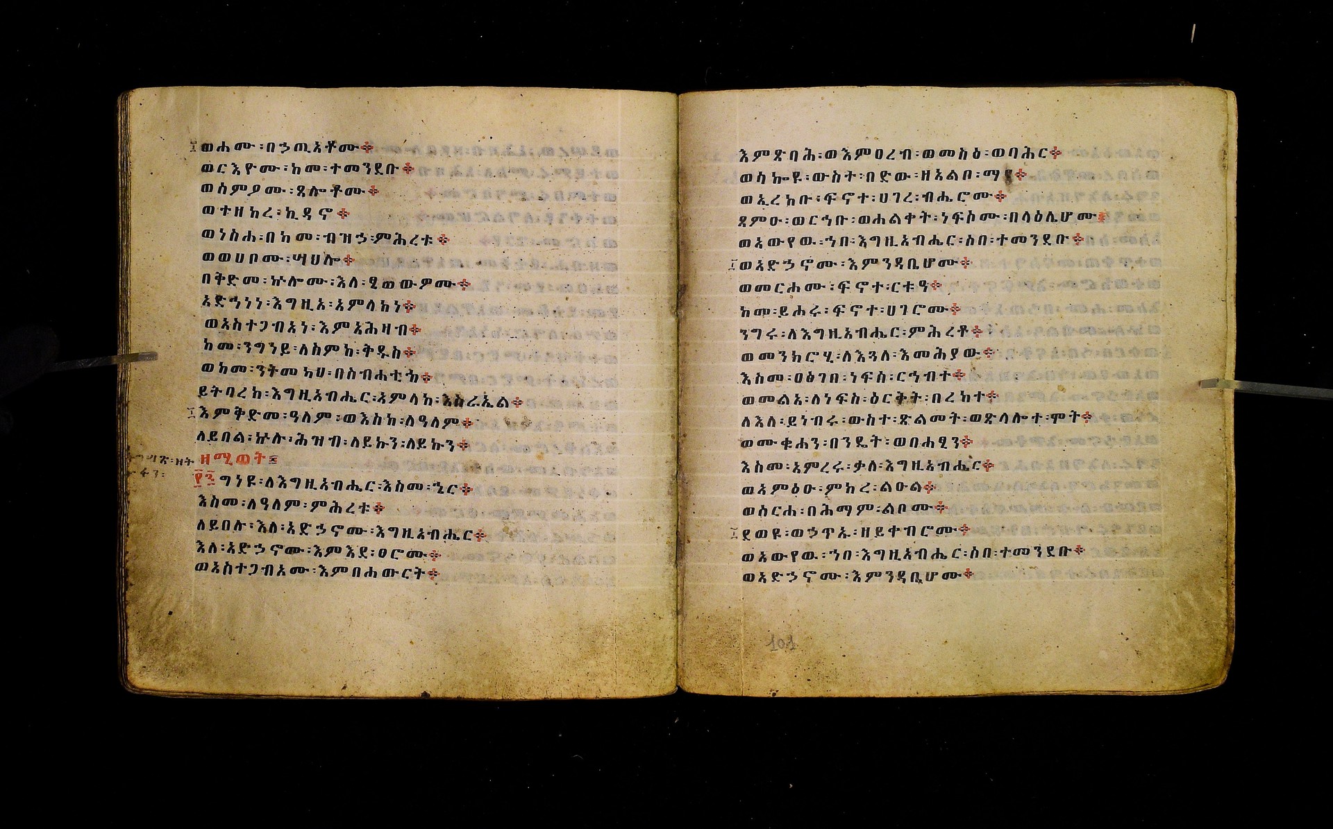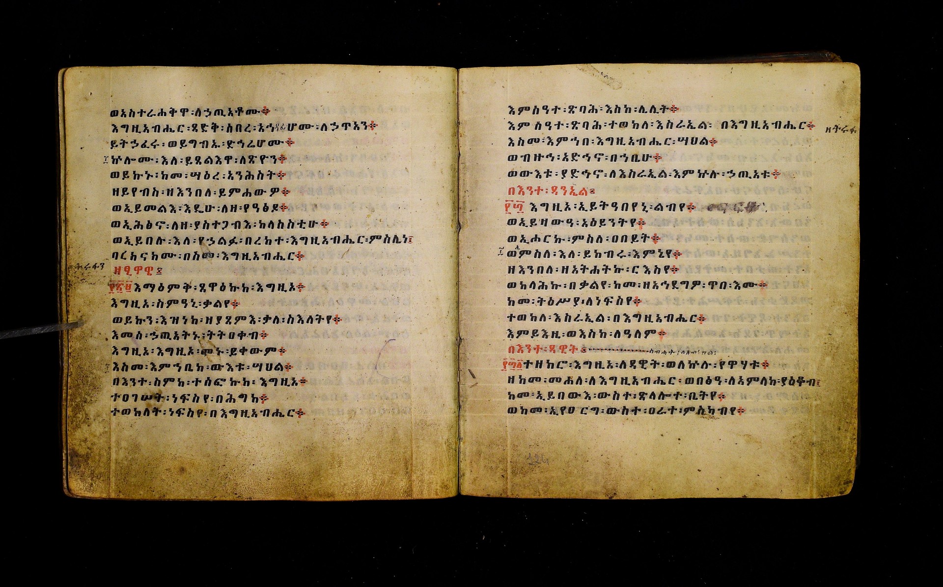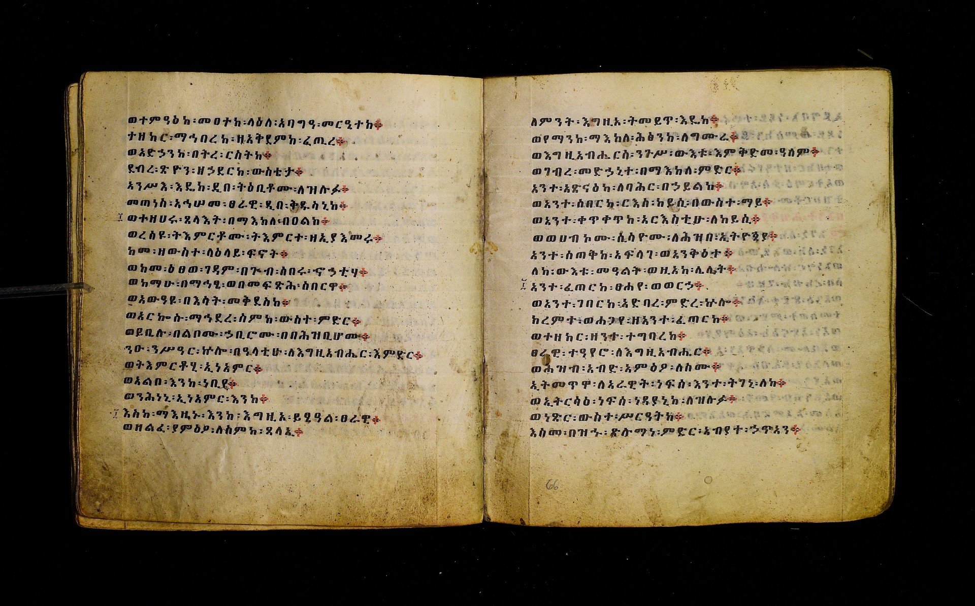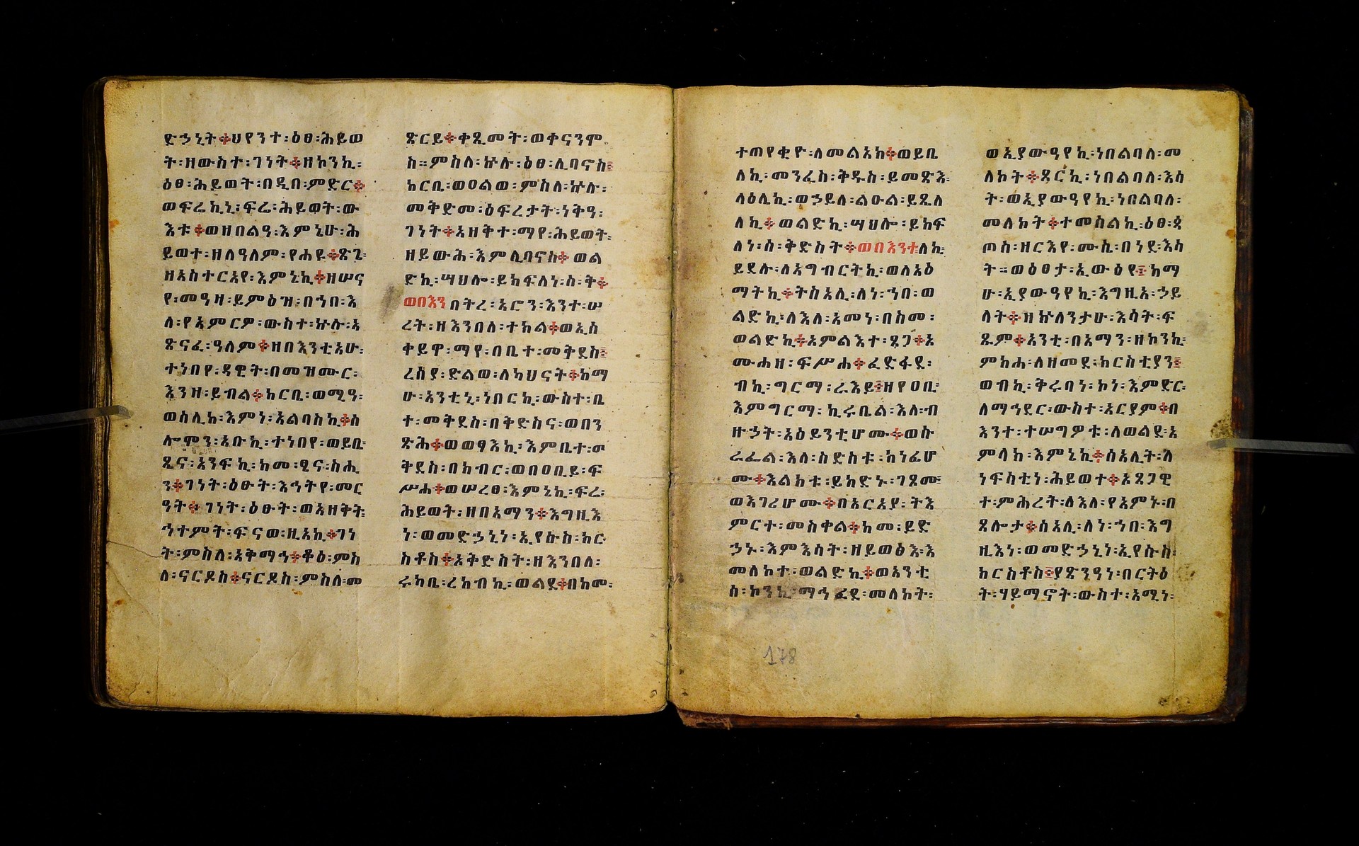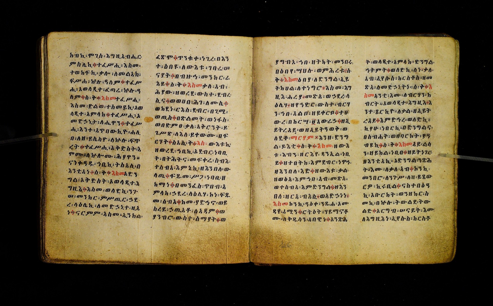 1. F. 2ra–vb: prayer to God, written on two columns in a fine handwriting. Incipit: እገይስ፡ ኀቤከ፡ አምላኪየ፡ አንተ፡ ኩነኒ፡ ረዳእየ፡ ወኩነኒ፡ ምስካይየ። ፀወንየ፡ ወኃይልየ፡ መድኃኒተ፡ ነፍስየ፡ አምላኪየ፡ ወኪያከ፡ ተወከልኩ። ኪያከ፡ ተወከልኩ፡ ኀቤከ፡ ተማኅፀንኩ፡ ኢትግድፈኒ፡ ለዝሉፉ፡ ወኢትርስአኒ፡ በምሕረትከ።. The names of Wäldä Iyäsus e Kidanä Mar[yam] are mentioned on f. 2vb. 2. F. 11r: short mäwaśǝʾt-hymn: ተፈሣሕኩ፡እስመ፡ ይቤሉኒ፡ ቤተ፡ ቤተ፡ እግዚአብሔር፡ ነሐውር። ሶበ፡ ይነቅህ፡ ካህን፡ ተከሥተ፡ ብርሃን፡ ለዓለም፡ ወተቀደሰት፡ ቤተ፡ ክርስቲያን፡ በክ፡ ወበስብሐት፡. The hymn is separated from the main text by a black vertical line and is provided with interlineal musical notation. 3. F. 163va–b: hymn entitled Mäḥaränä ab, “The Father had mercy on us”. The hymn is written in a small script and is provided with interlineal musical notation. Incipit: መሐረነ፡ አብ፡ ሃሌ፡ ሉያ፡ ተሣሃለነ፡ ወልድ፡ ሃሌ፡ ሉያ፡ መንፈስ፡ ቅዱስ፡ መሐሪ፡ ተዘከረነ፡ በሣህልከ። ለከ፡ ንፌኑ፡ ስብሐተ፡ ወለከ፡ ነዓርግ፡ አኰቴተ። መሐረነ፡ መሐሪ፡ ኃጢአተነ፡ አስተስሪ። 4. Ff. 178va–179ra: Ethiopian syllabary, written in a recent and untrained hand and followed by a short text in Amharic and Gǝʿǝz, written in the same hand. Incipit: አሊ፡ ጀረ፡ አመተ፡ ጀርጀረ፡ ነጋሢ፡ ምኒልክ፡ ቍርቍራ፡ ስመ፡ ጥርስ፡ አጥርሲ፡ አንበሳ፡ ጋማማ፡ ነምር፡ ጥፍራማ፡ ጅብ፡ ደደሳማ. |