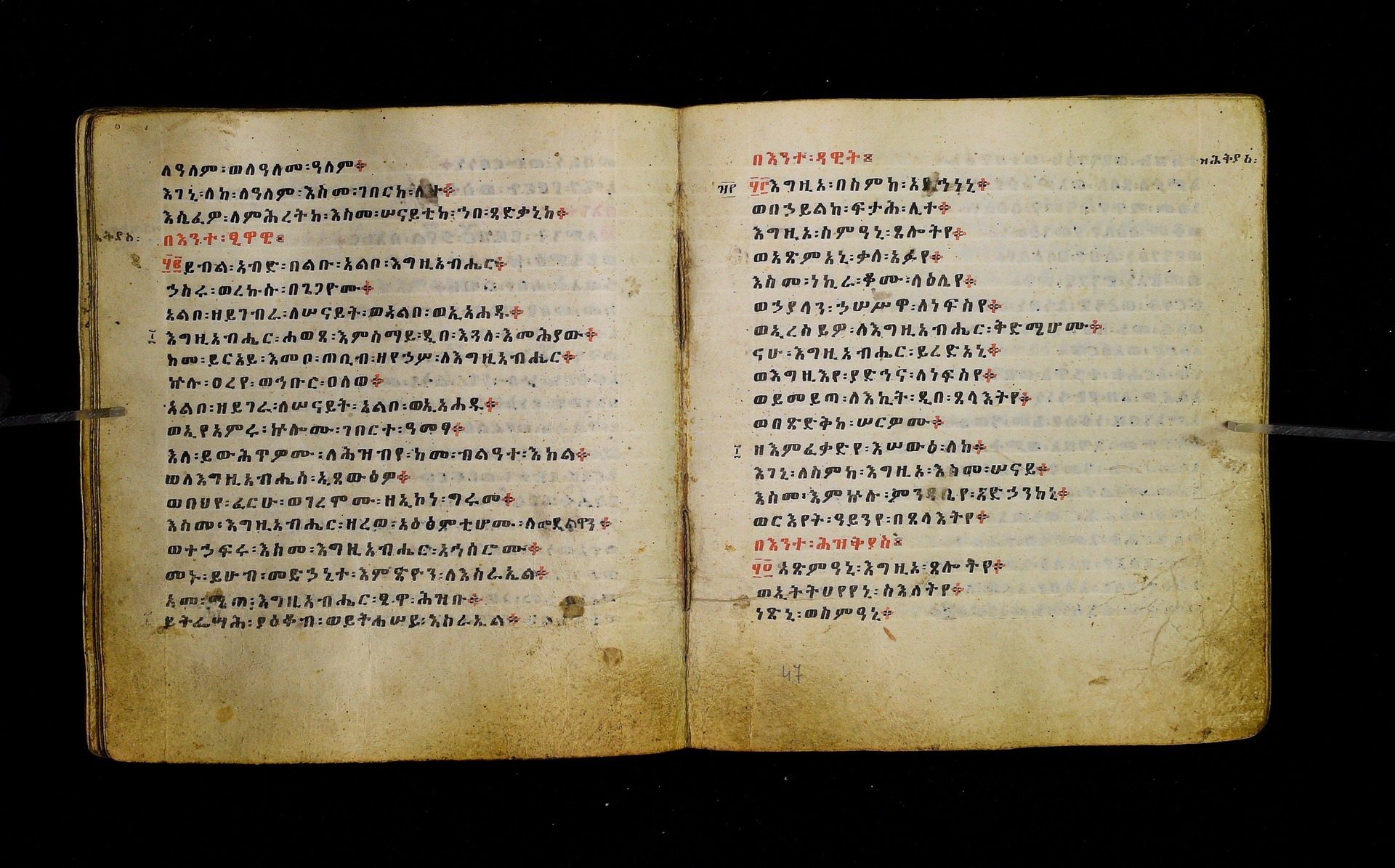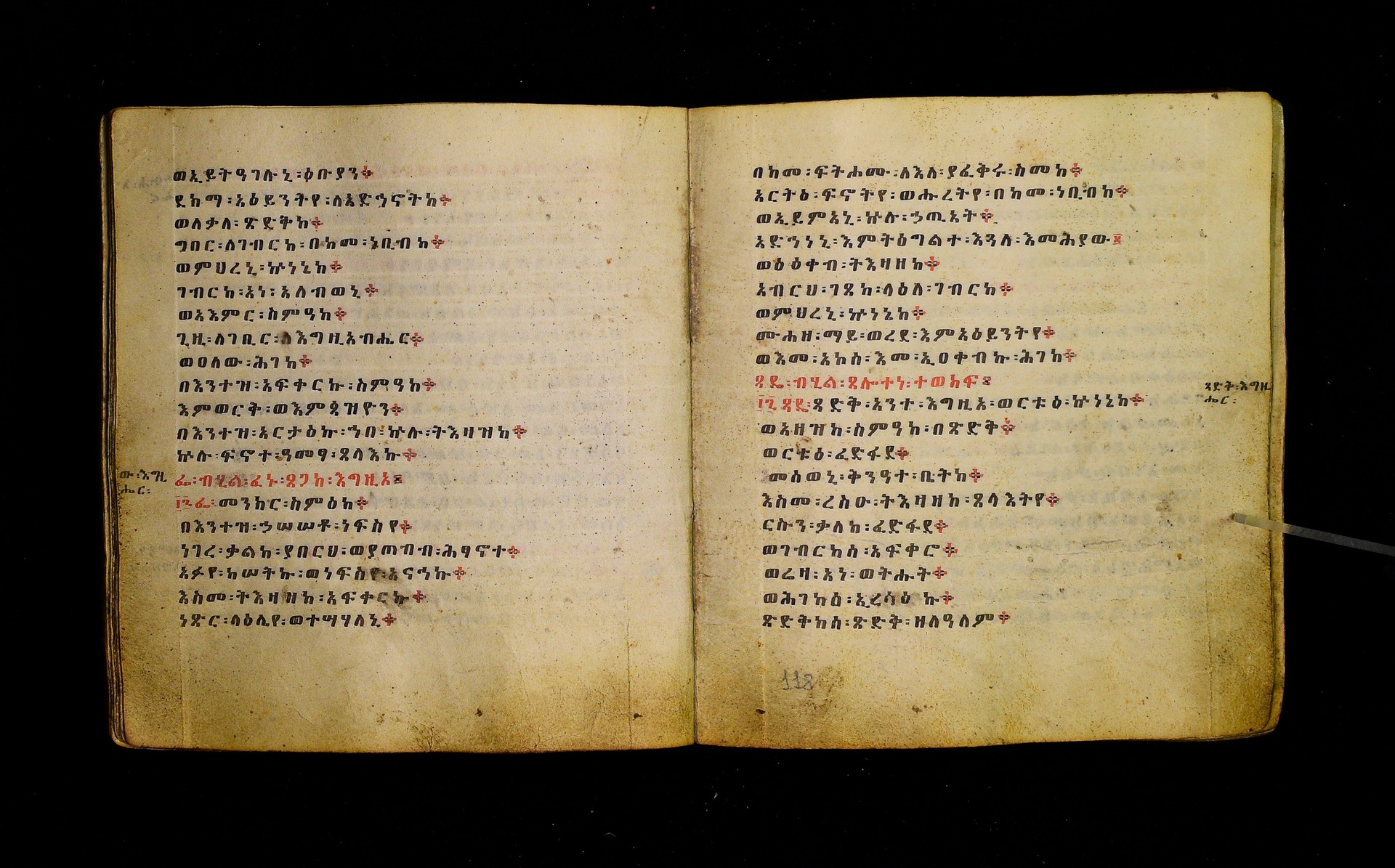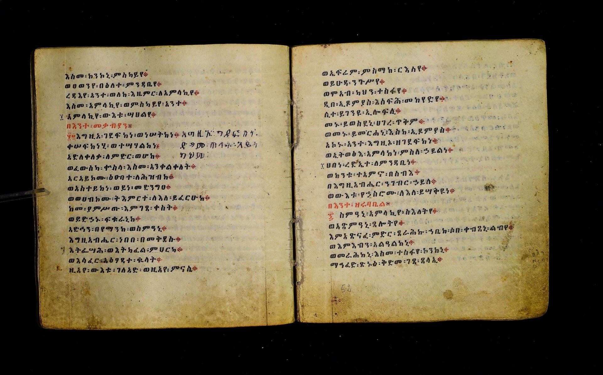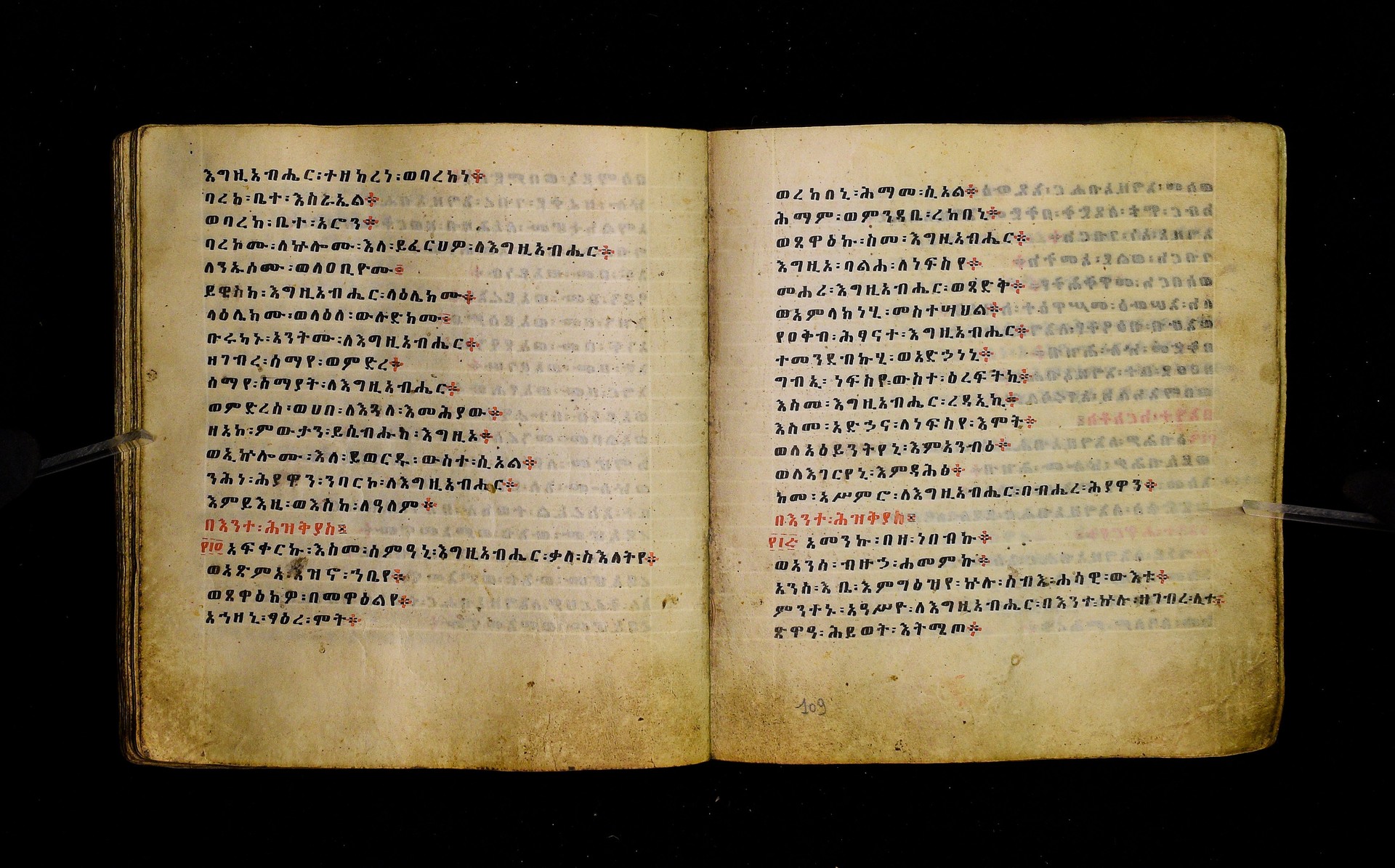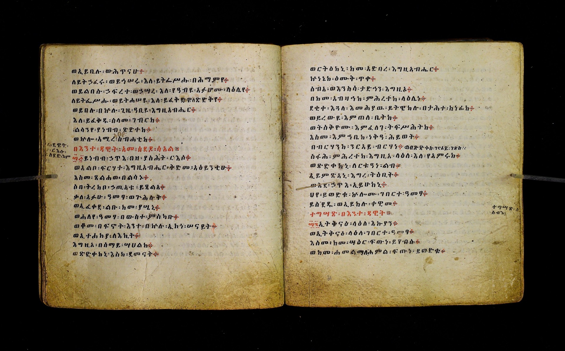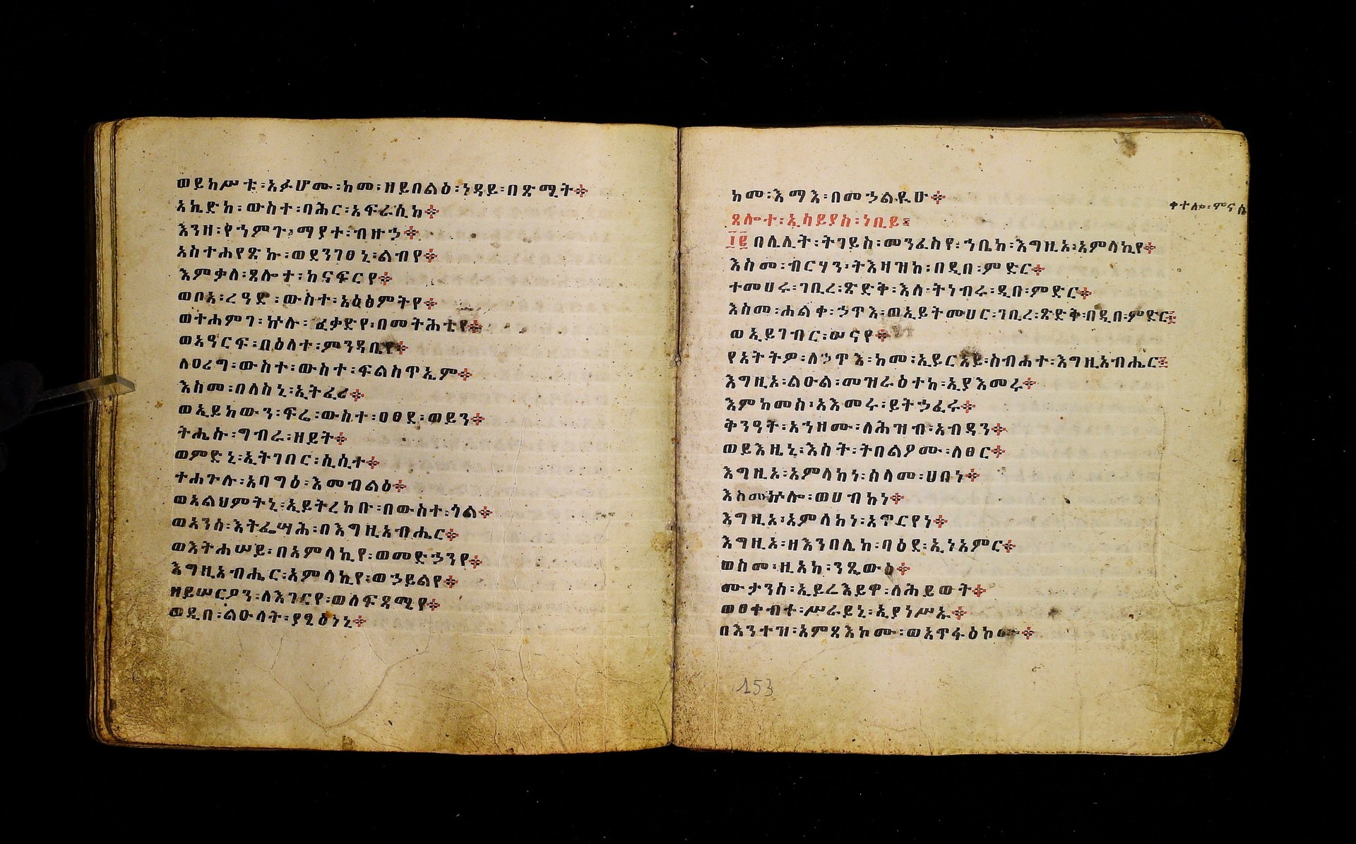1. F. 2ra–vb: prayer to God, written on two columns in a fine handwriting. Incipit: እገይስ፡ ኀቤከ፡ አምላኪየ፡ አንተ፡ ኩነኒ፡ ረዳእየ፡ ወኩነኒ፡ ምስካይየ። ፀወንየ፡ ወኃይልየ፡ መድኃኒተ፡ ነፍስየ፡ አምላኪየ፡ ወኪያከ፡ ተወከልኩ። ኪያከ፡ ተወከልኩ፡ ኀቤከ፡ ተማኅፀንኩ፡ ኢትግድፈኒ፡ ለዝሉፉ፡ ወኢትርስአኒ፡ በምሕረትከ።. The names of Wäldä Iyäsus e Kidanä Mar[yam] are mentioned on f. 2vb. 2. F. 11r: short mäwaśǝʾt-hymn: ተፈሣሕኩ፡እስመ፡ ይቤሉኒ፡ ቤተ፡ ቤተ፡ እግዚአብሔር፡ ነሐውር። ሶበ፡ ይነቅህ፡ ካህን፡ ተከሥተ፡ ብርሃን፡ ለዓለም፡ ወተቀደሰት፡ ቤተ፡ ክርስቲያን፡ በክ፡ ወበስብሐት፡. The hymn is separated from the main text by a black vertical line and is provided with interlineal musical notation. 3. F. 163va–b: hymn entitled Mäḥaränä ab, “The Father had mercy on us”. The hymn is written in a small script and is provided with interlineal musical notation. Incipit: መሐረነ፡ አብ፡ ሃሌ፡ ሉያ፡ ተሣሃለነ፡ ወልድ፡ ሃሌ፡ ሉያ፡ መንፈስ፡ ቅዱስ፡ መሐሪ፡ ተዘከረነ፡ በሣህልከ። ለከ፡ ንፌኑ፡ ስብሐተ፡ ወለከ፡ ነዓርግ፡ አኰቴተ። መሐረነ፡ መሐሪ፡ ኃጢአተነ፡ አስተስሪ። 4. Ff. 178va–179ra: Ethiopian syllabary, written in a recent and untrained hand and followed by a short text in Amharic and Gǝʿǝz, written in the same hand. Incipit: አሊ፡ ጀረ፡ አመተ፡ ጀርጀረ፡ ነጋሢ፡ ምኒልክ፡ ቍርቍራ፡ ስመ፡ ጥርስ፡ አጥርሲ፡ አንበሳ፡ ጋማማ፡ ነምር፡ ጥፍራማ፡ ጅብ፡ ደደሳማ. |
