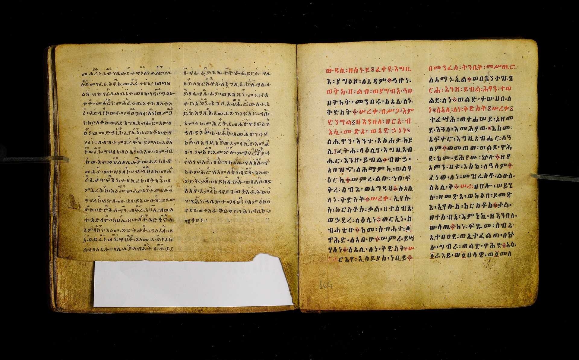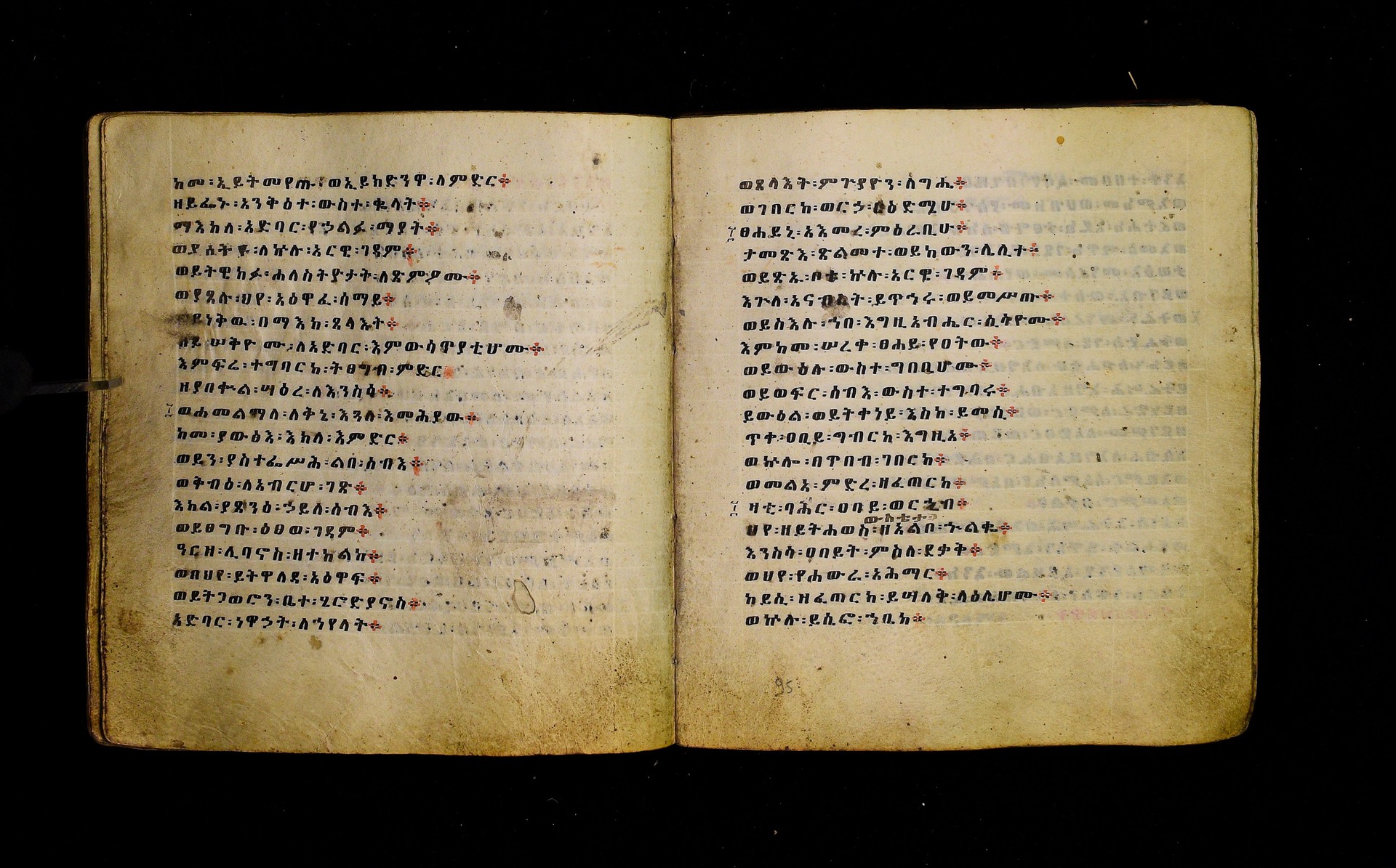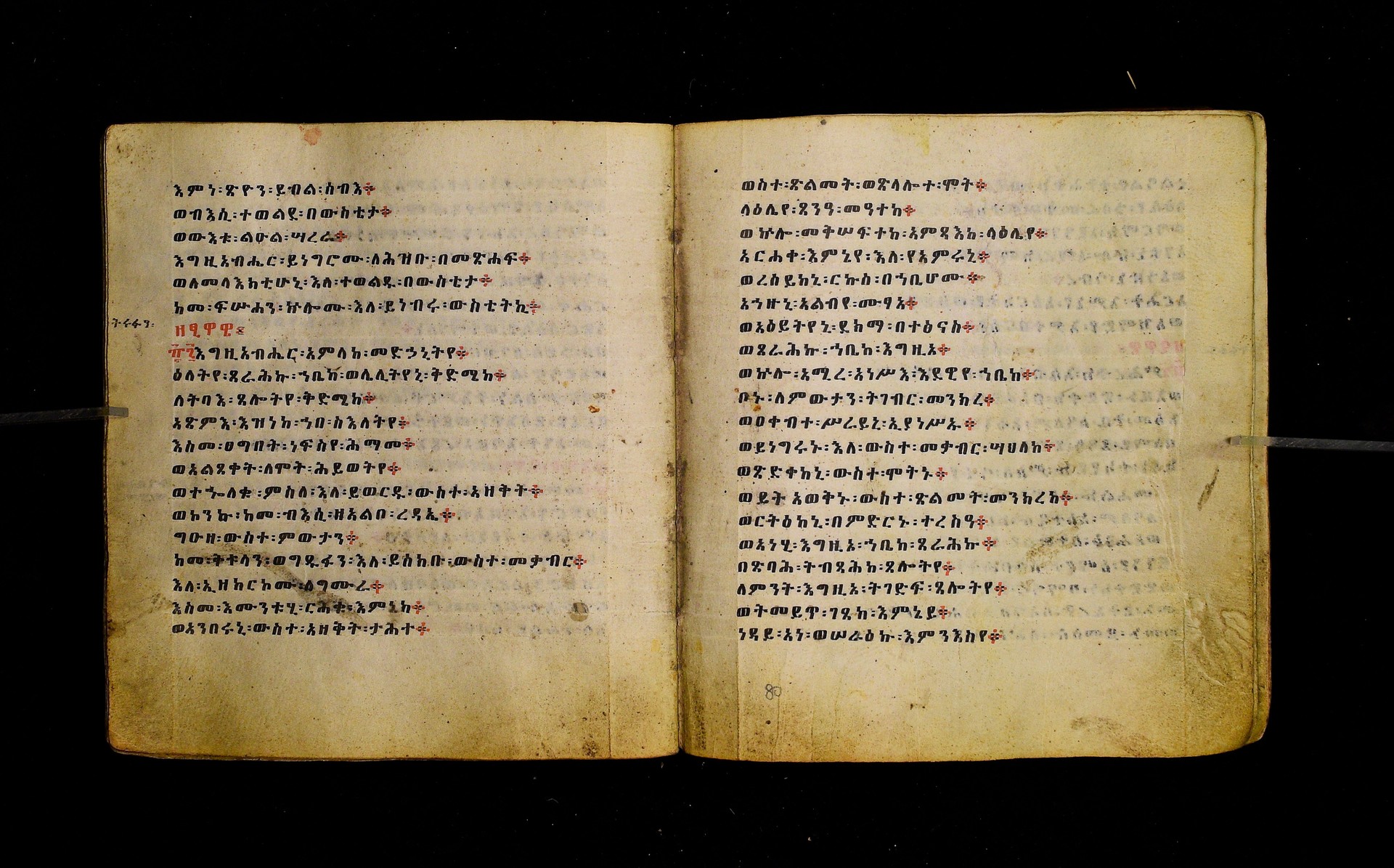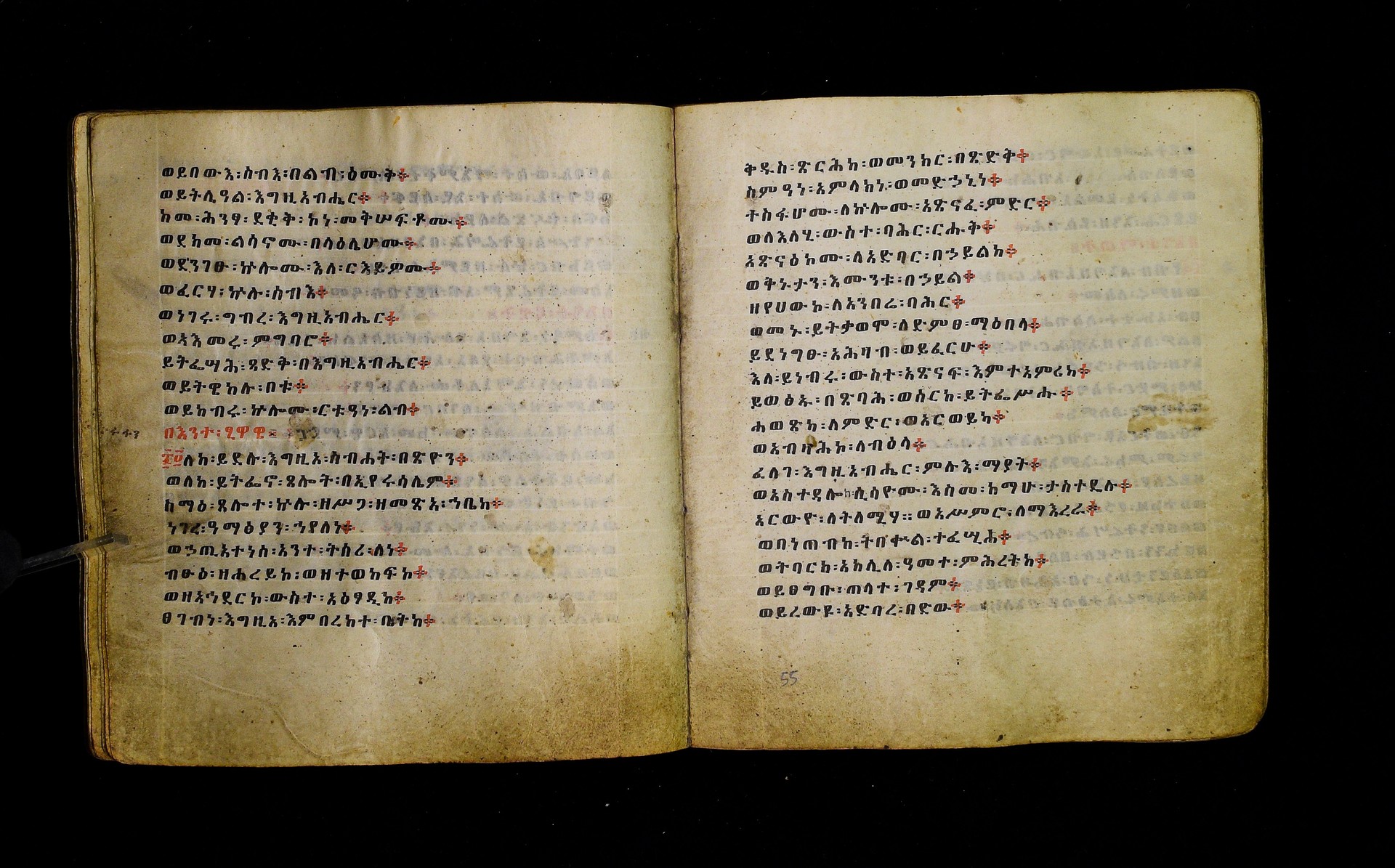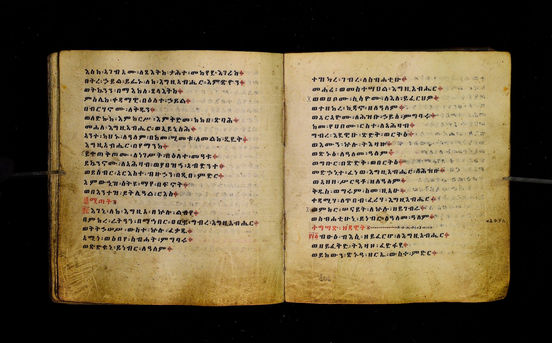 1. F. 2ra–vb: prayer to God, written on two columns in a fine handwriting. Incipit: እገይስ፡ ኀቤከ፡ አምላኪየ፡ አንተ፡ ኩነኒ፡ ረዳእየ፡ ወኩነኒ፡ ምስካይየ። ፀወንየ፡ ወኃይልየ፡ መድኃኒተ፡ ነፍስየ፡ አምላኪየ፡ ወኪያከ፡ ተወከልኩ። ኪያከ፡ ተወከልኩ፡ ኀቤከ፡ ተማኅፀንኩ፡ ኢትግድፈኒ፡ ለዝሉፉ፡ ወኢትርስአኒ፡ በምሕረትከ።. The names of Wäldä Iyäsus e Kidanä Mar[yam] are mentioned on f. 2vb. 2. F. 11r: short mäwaśǝʾt-hymn: ተፈሣሕኩ፡እስመ፡ ይቤሉኒ፡ ቤተ፡ ቤተ፡ እግዚአብሔር፡ ነሐውር። ሶበ፡ ይነቅህ፡ ካህን፡ ተከሥተ፡ ብርሃን፡ ለዓለም፡ ወተቀደሰት፡ ቤተ፡ ክርስቲያን፡ በክ፡ ወበስብሐት፡. The hymn is separated from the main text by a black vertical line and is provided with interlineal musical notation. 3. F. 163va–b: hymn entitled Mäḥaränä ab, “The Father had mercy on us”. The hymn is written in a small script and is provided with interlineal musical notation. Incipit: መሐረነ፡ አብ፡ ሃሌ፡ ሉያ፡ ተሣሃለነ፡ ወልድ፡ ሃሌ፡ ሉያ፡ መንፈስ፡ ቅዱስ፡ መሐሪ፡ ተዘከረነ፡ በሣህልከ። ለከ፡ ንፌኑ፡ ስብሐተ፡ ወለከ፡ ነዓርግ፡ አኰቴተ። መሐረነ፡ መሐሪ፡ ኃጢአተነ፡ አስተስሪ። 4. Ff. 178va–179ra: Ethiopian syllabary, written in a recent and untrained hand and followed by a short text in Amharic and Gǝʿǝz, written in the same hand. Incipit: አሊ፡ ጀረ፡ አመተ፡ ጀርጀረ፡ ነጋሢ፡ ምኒልክ፡ ቍርቍራ፡ ስመ፡ ጥርስ፡ አጥርሲ፡ አንበሳ፡ ጋማማ፡ ነምር፡ ጥፍራማ፡ ጅብ፡ ደደሳማ. |